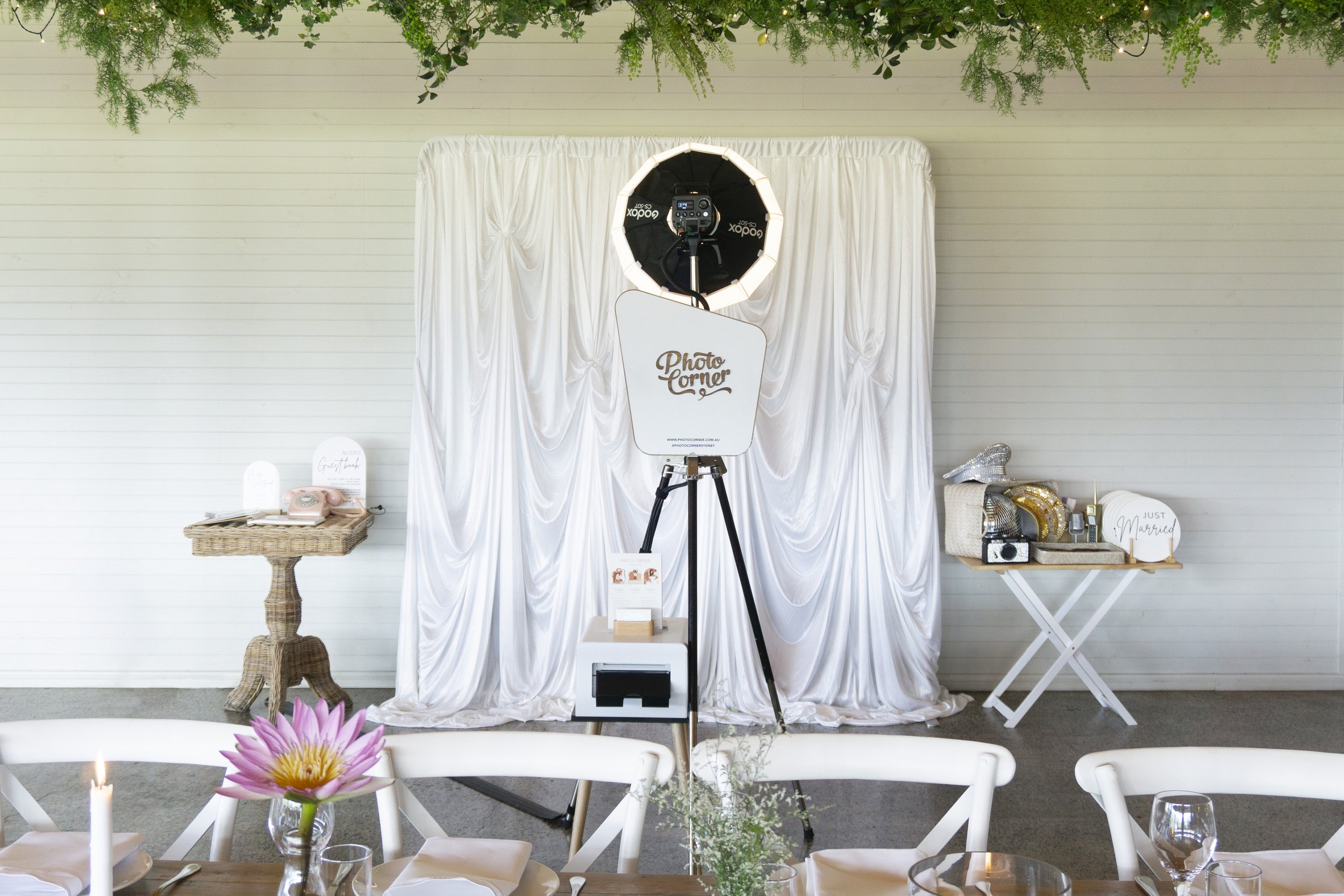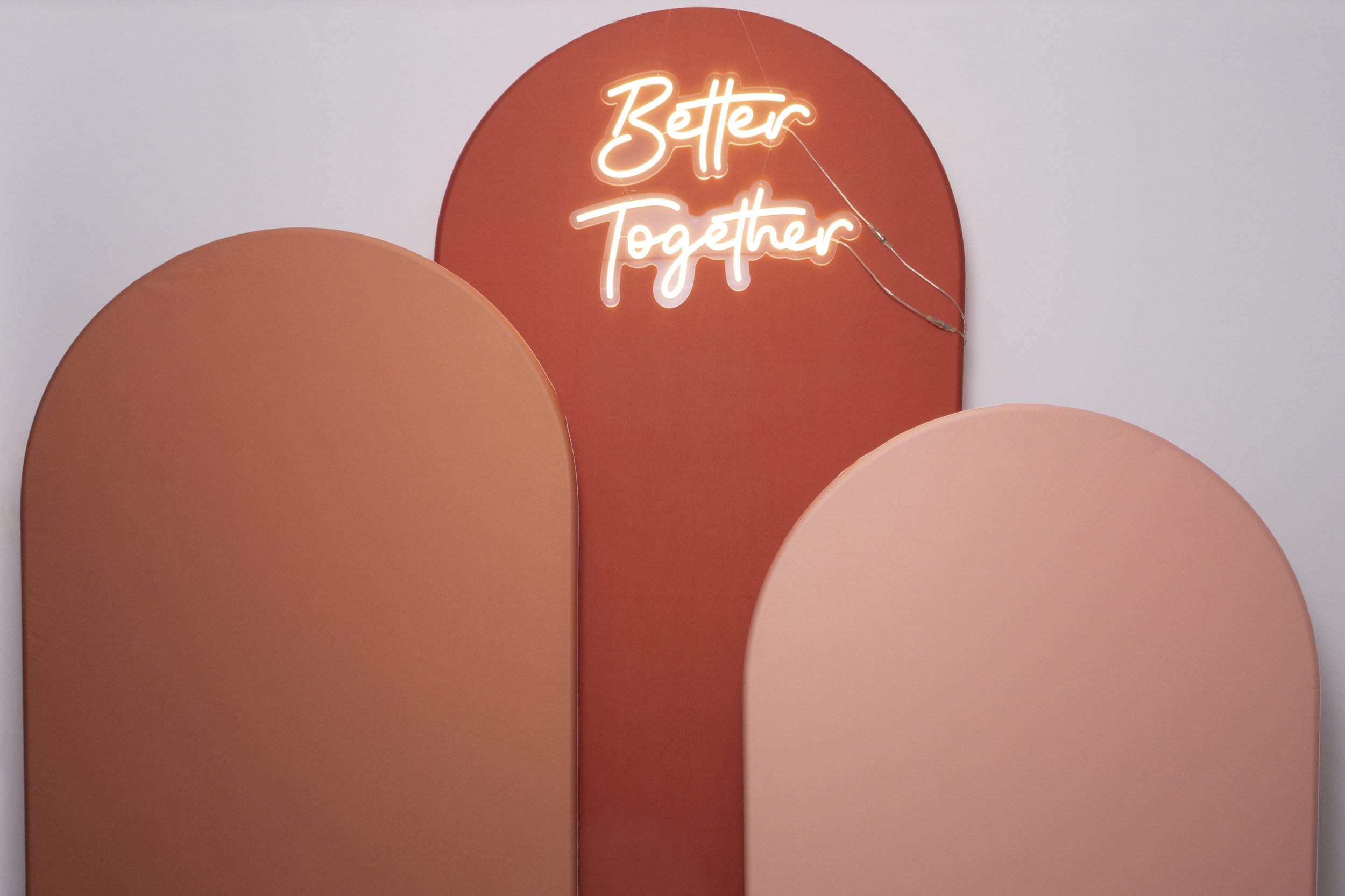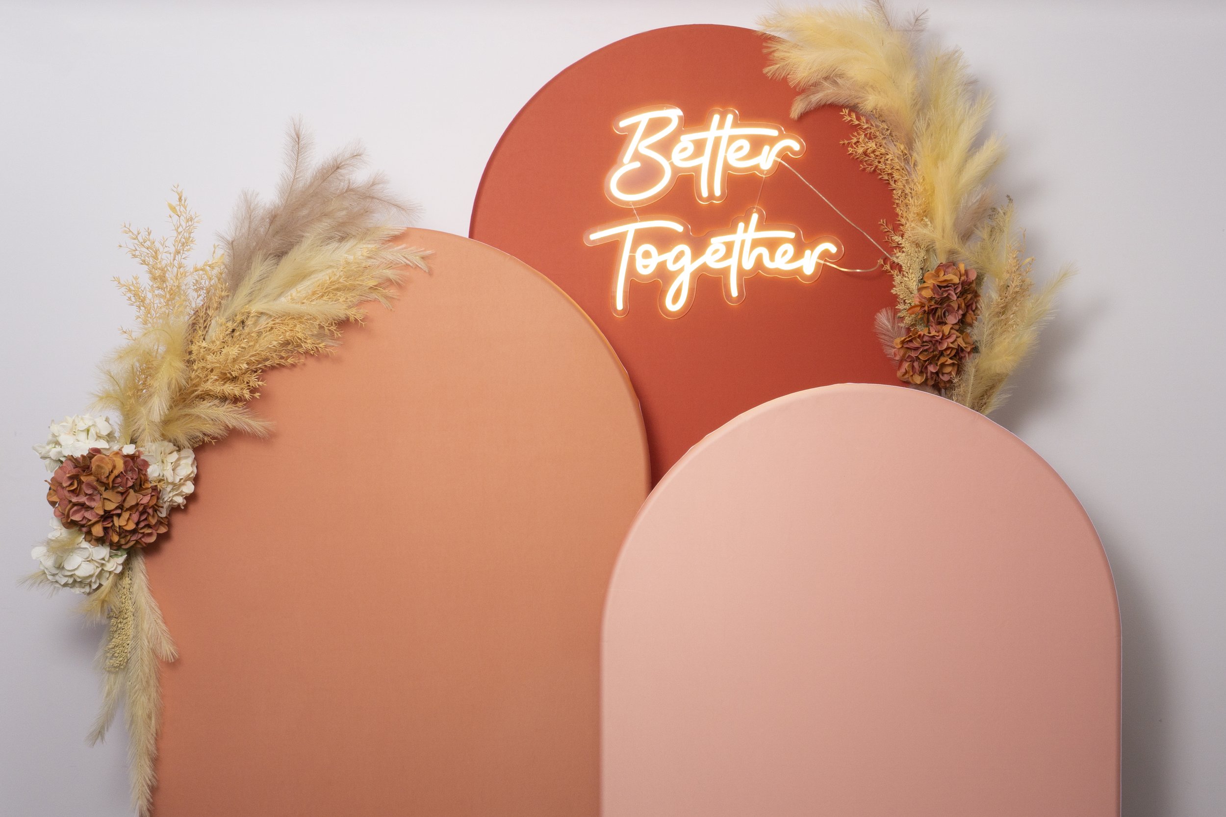 Neon sign optional. Florals not included — ask us about adding bespoke floral styling.