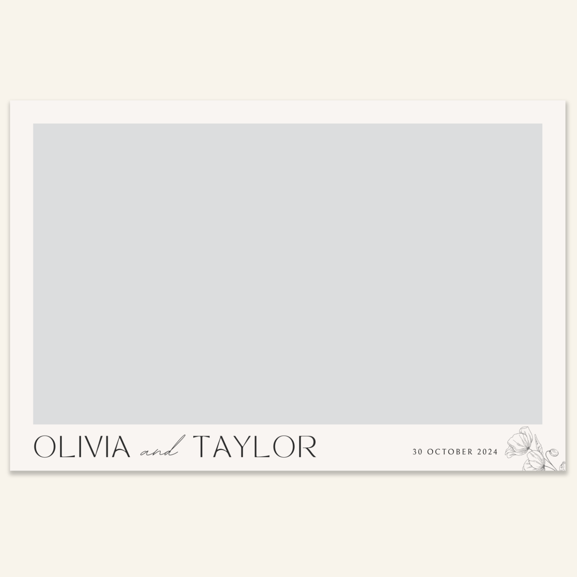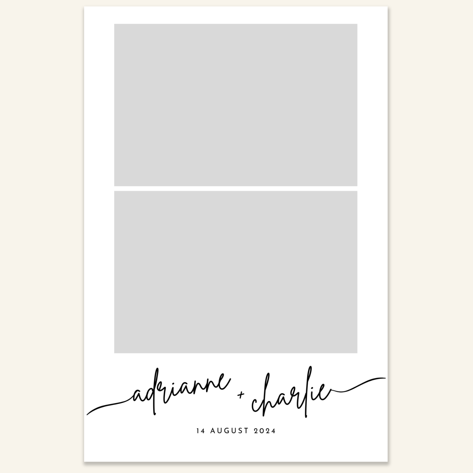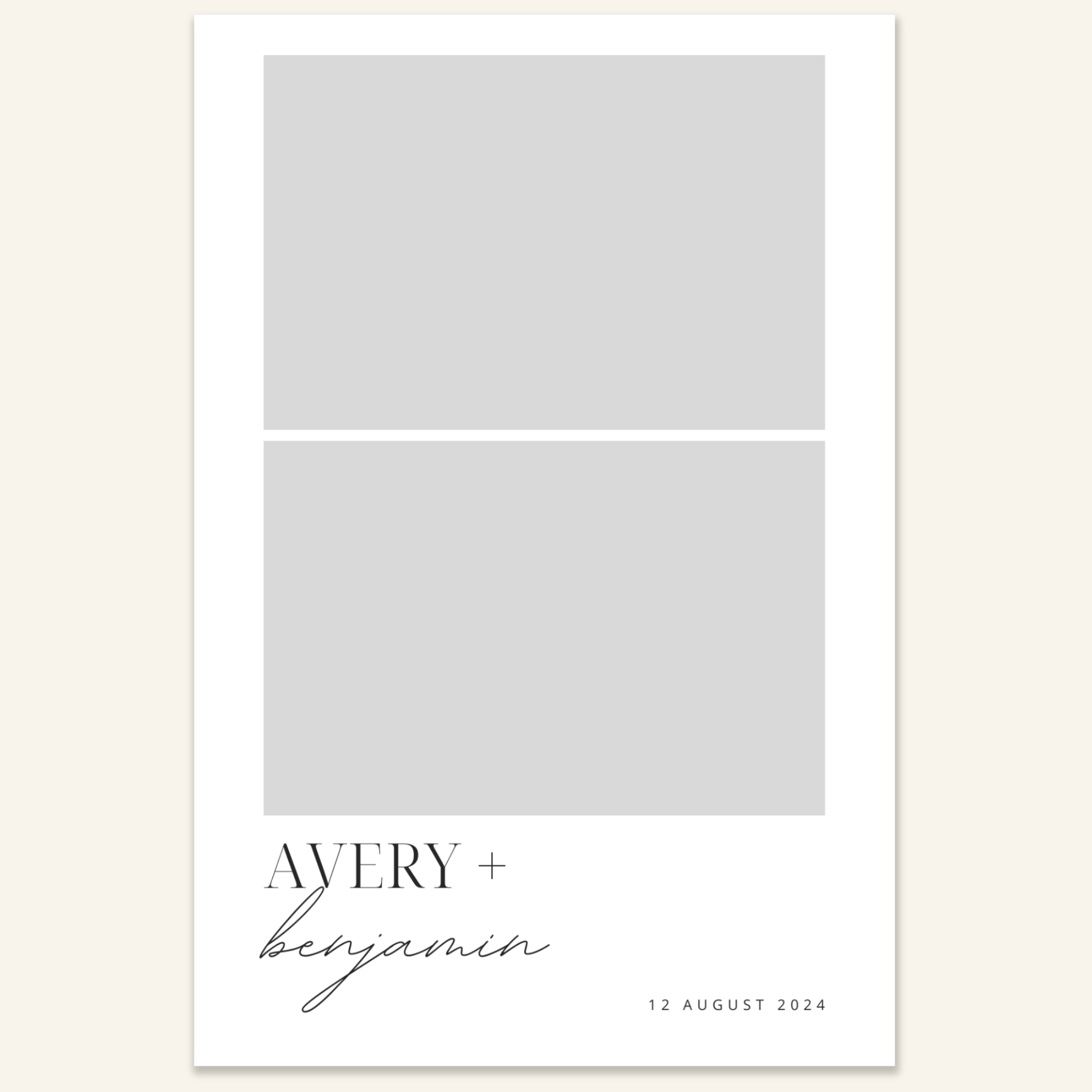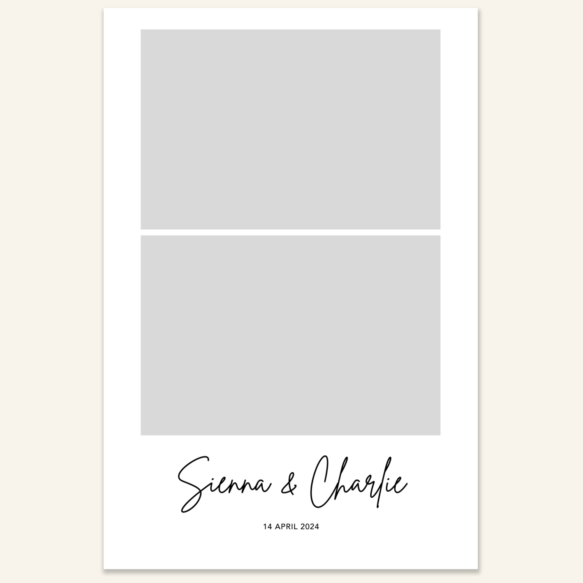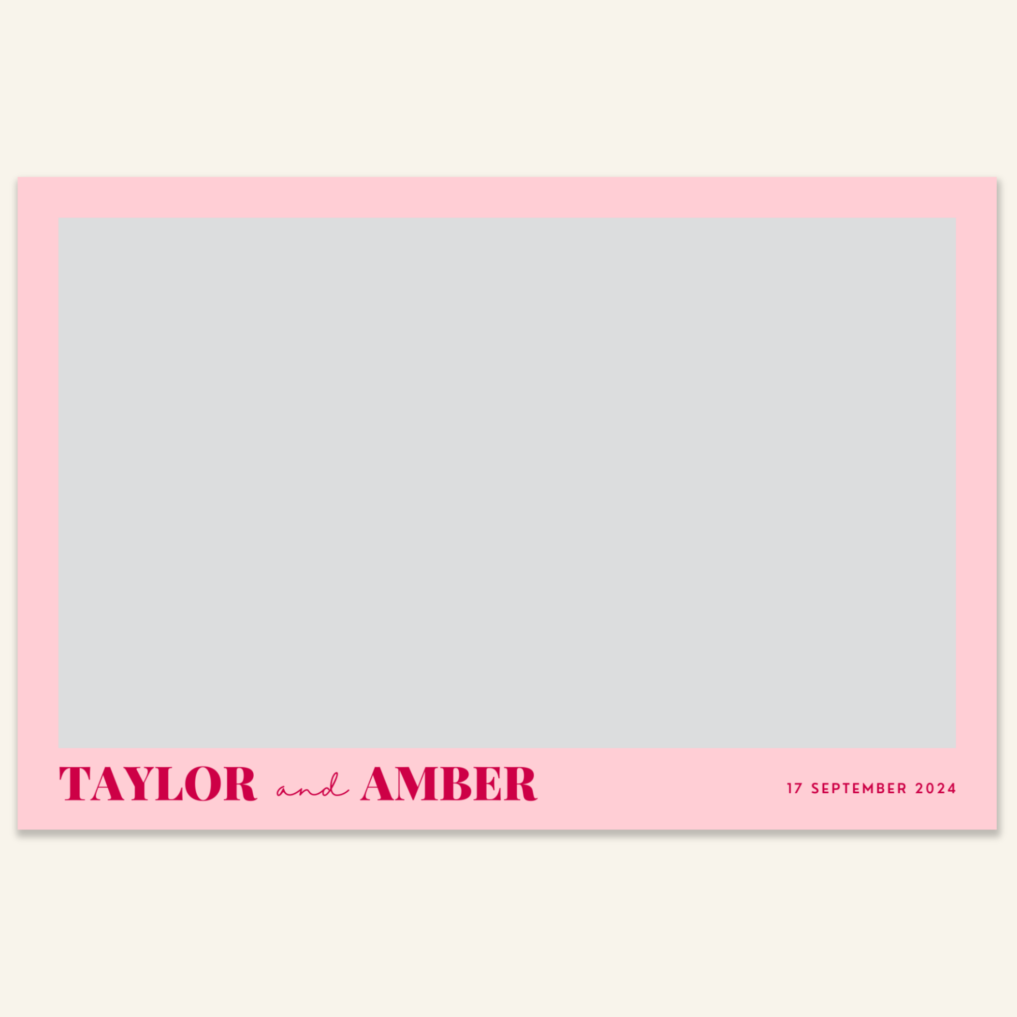 Step 3: Personalise your print template by adding your event name, date, and/or custom message. (eg. Sophia & Lucas / 12 April 2024 / Thanks for joining us!)