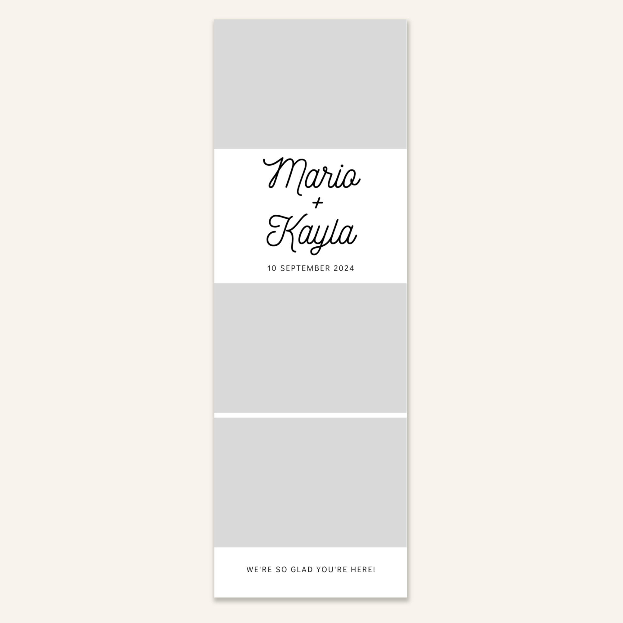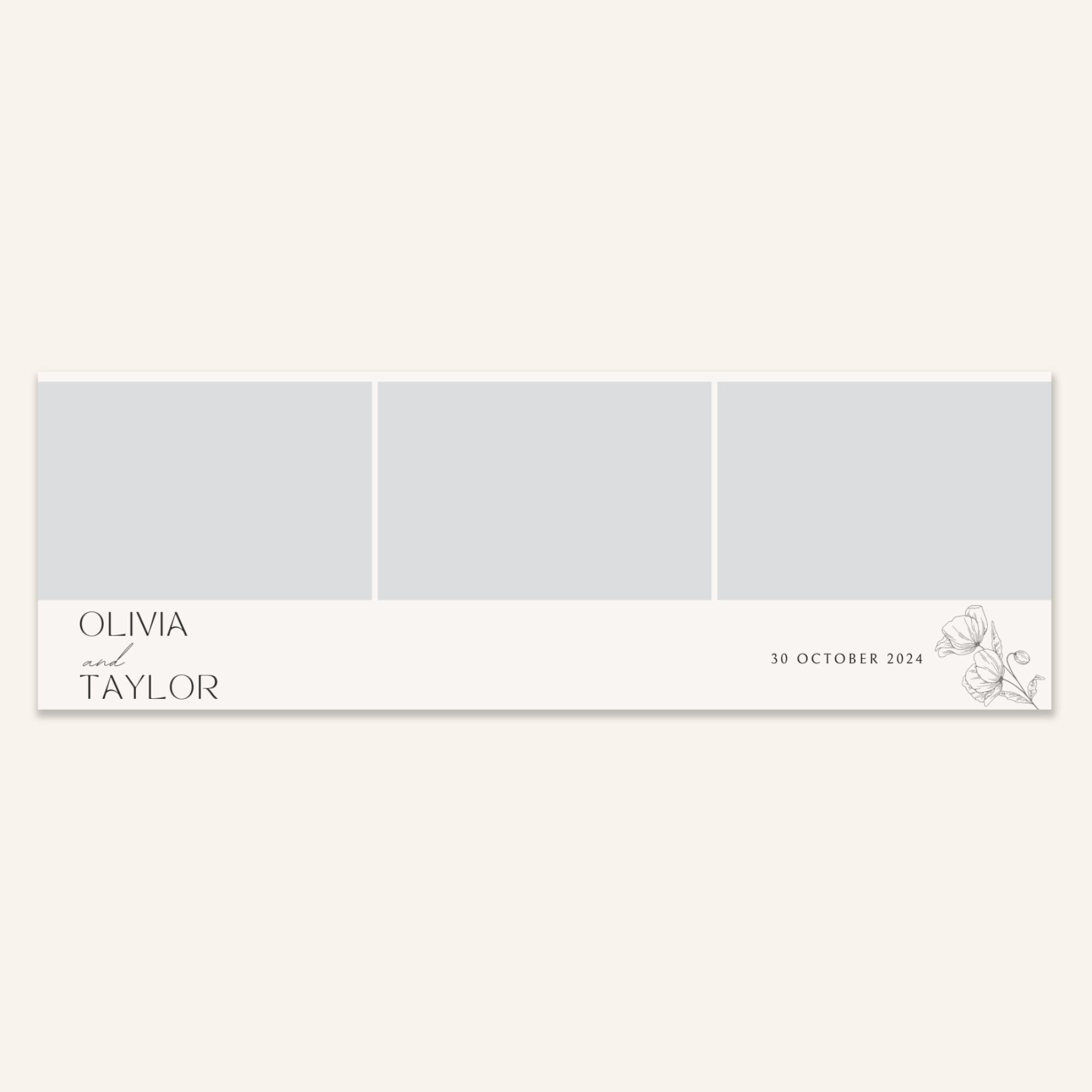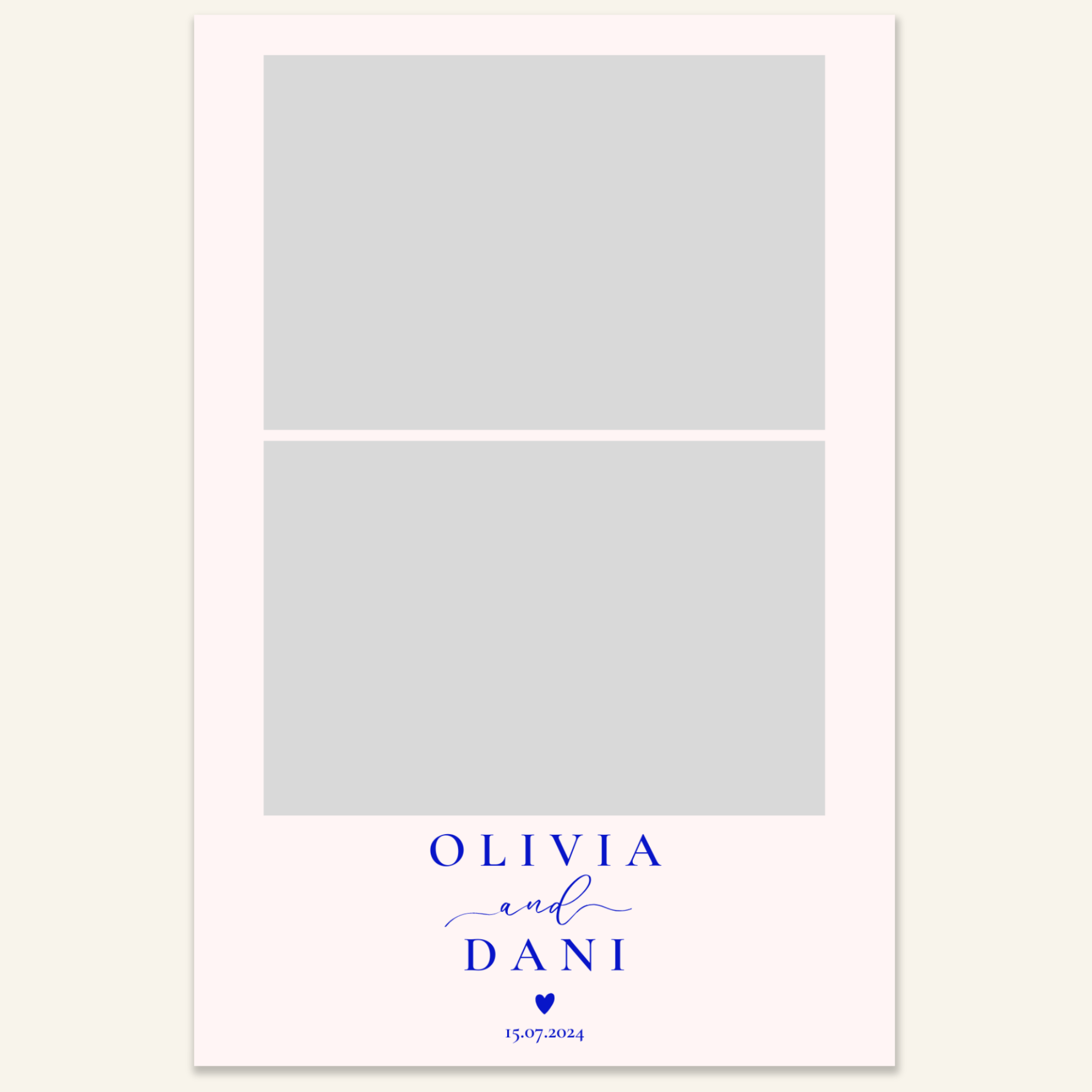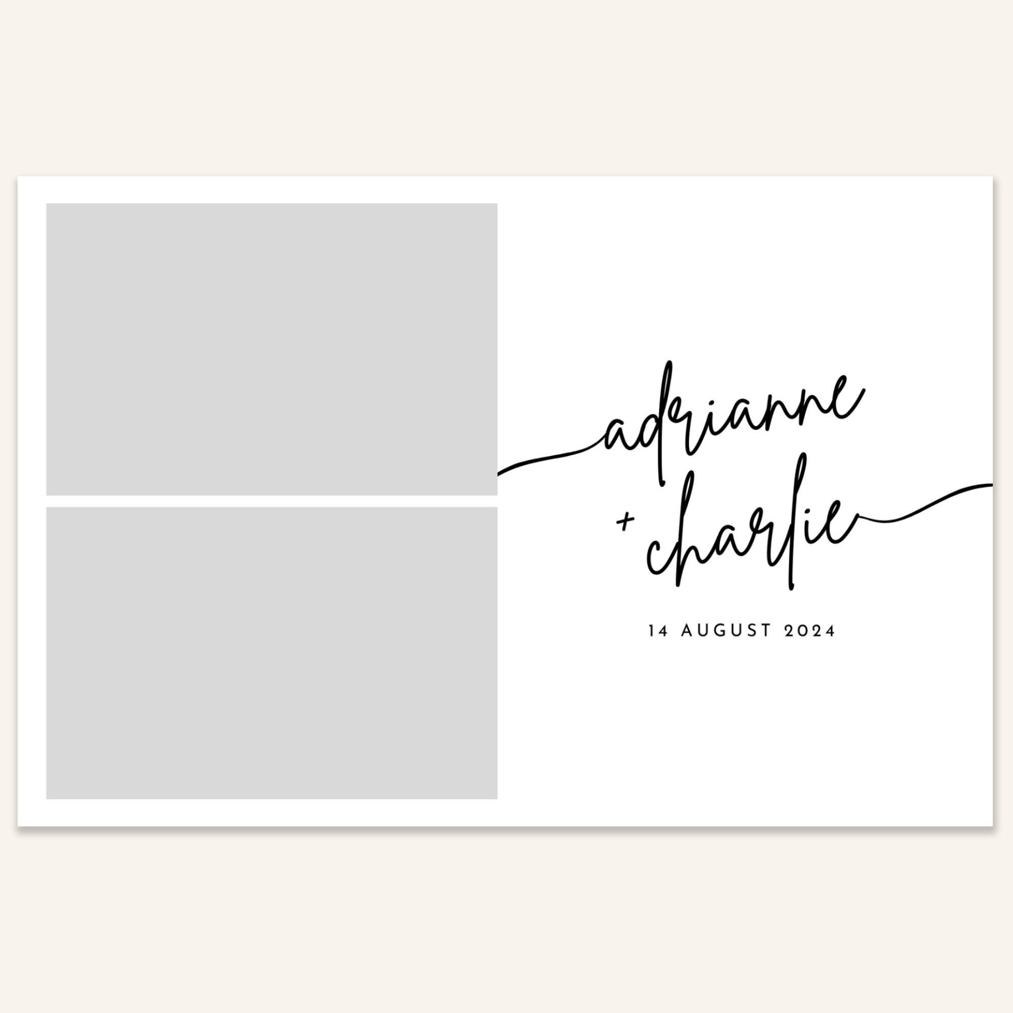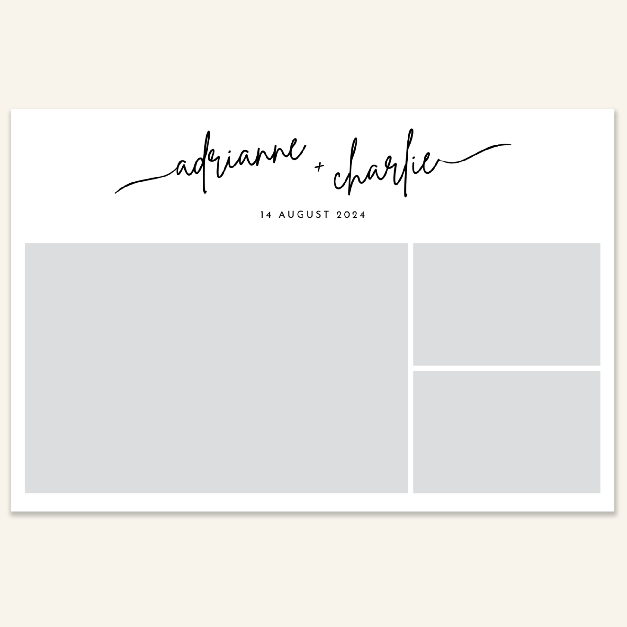 Step 3: Personalise your print template by adding your event name, date, and/or custom message. (eg. Sophia & Lucas / 12 April 2024 / Thanks for joining us!)