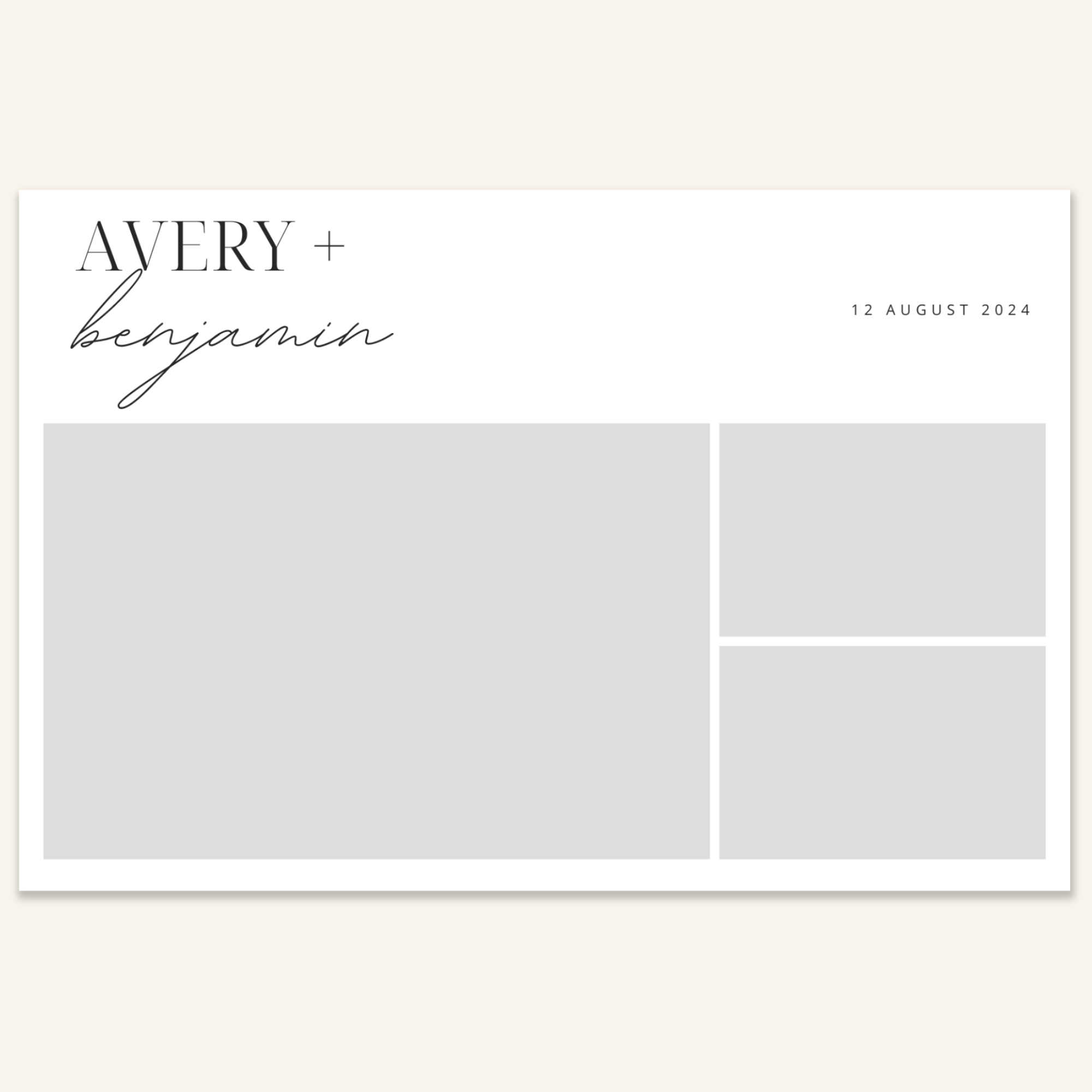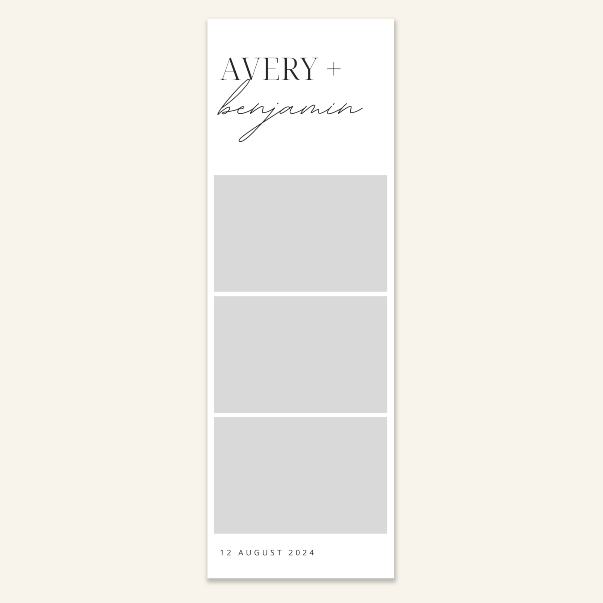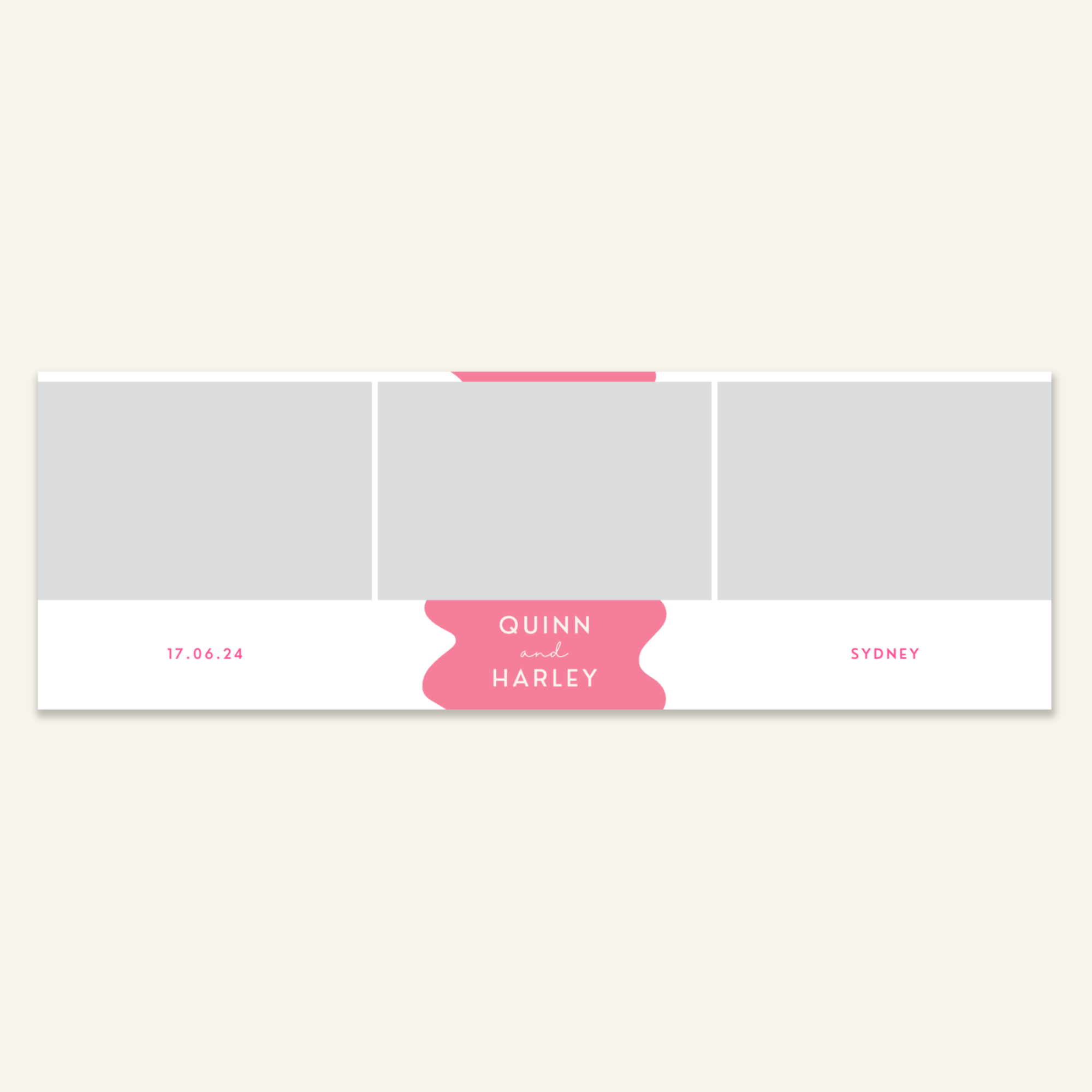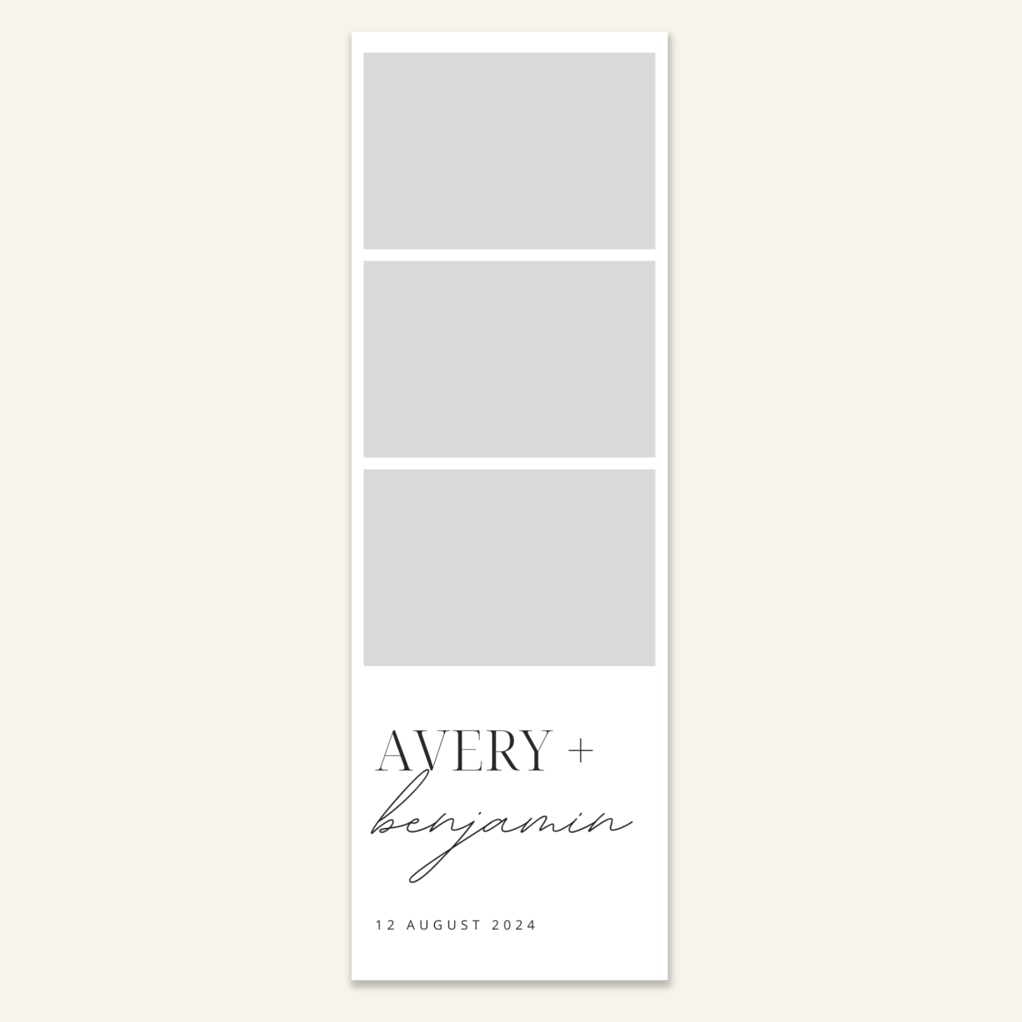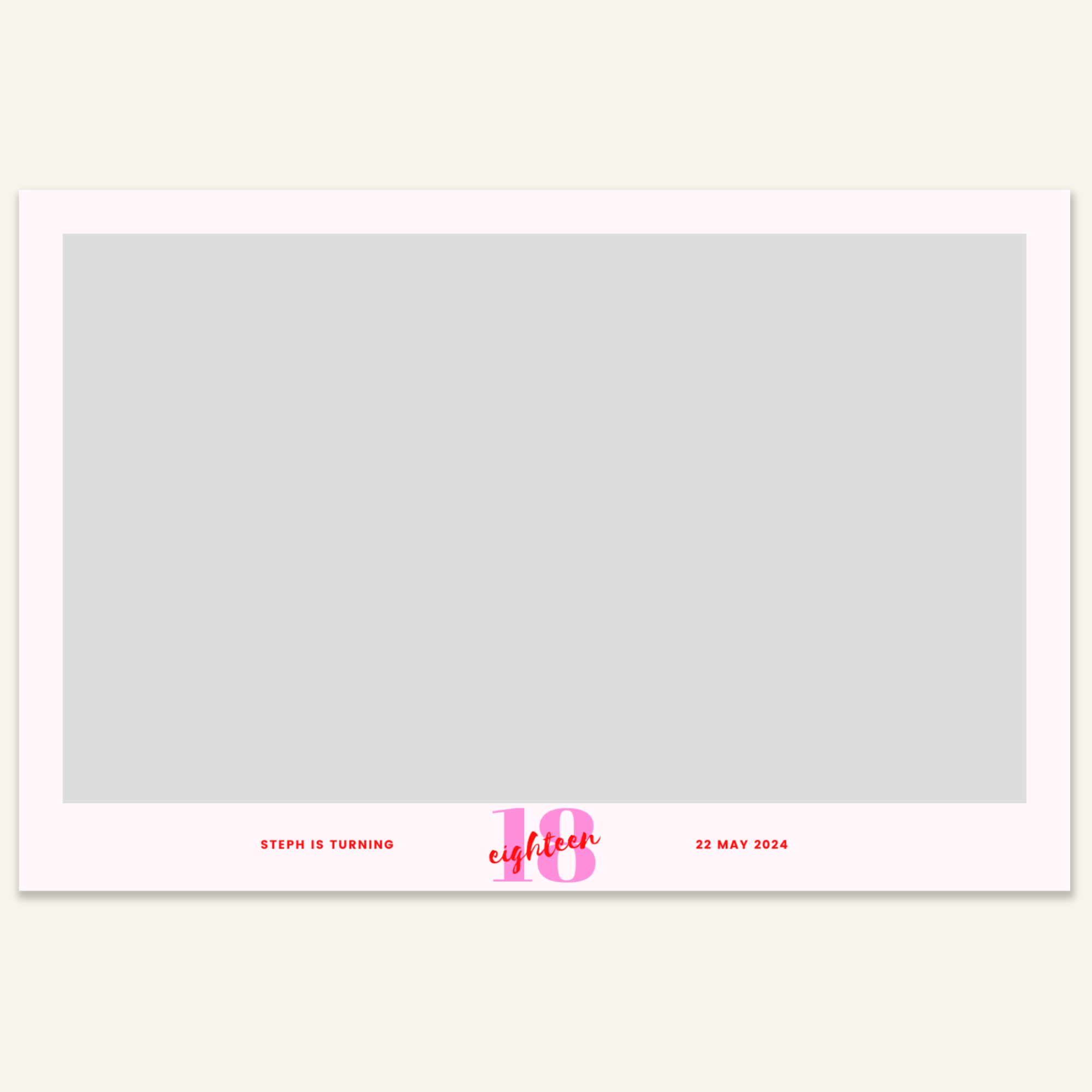 Step 3: Personalise your print template by adding your event name, date, and/or custom message. (eg. Sophia & Lucas / 12 April 2024 / Thanks for joining us!)