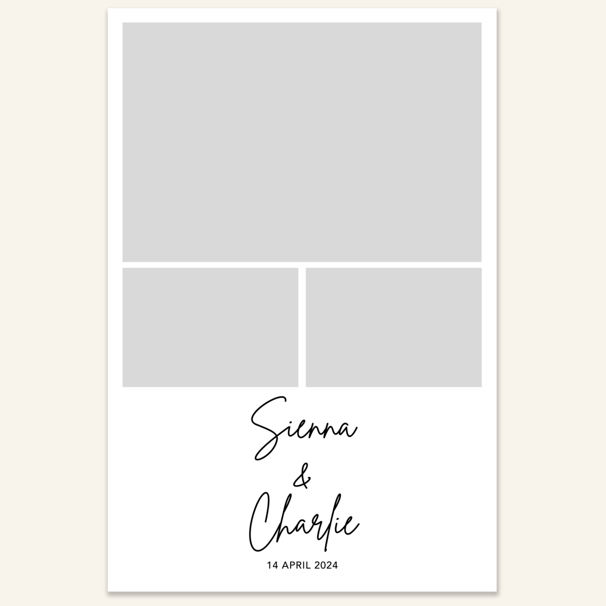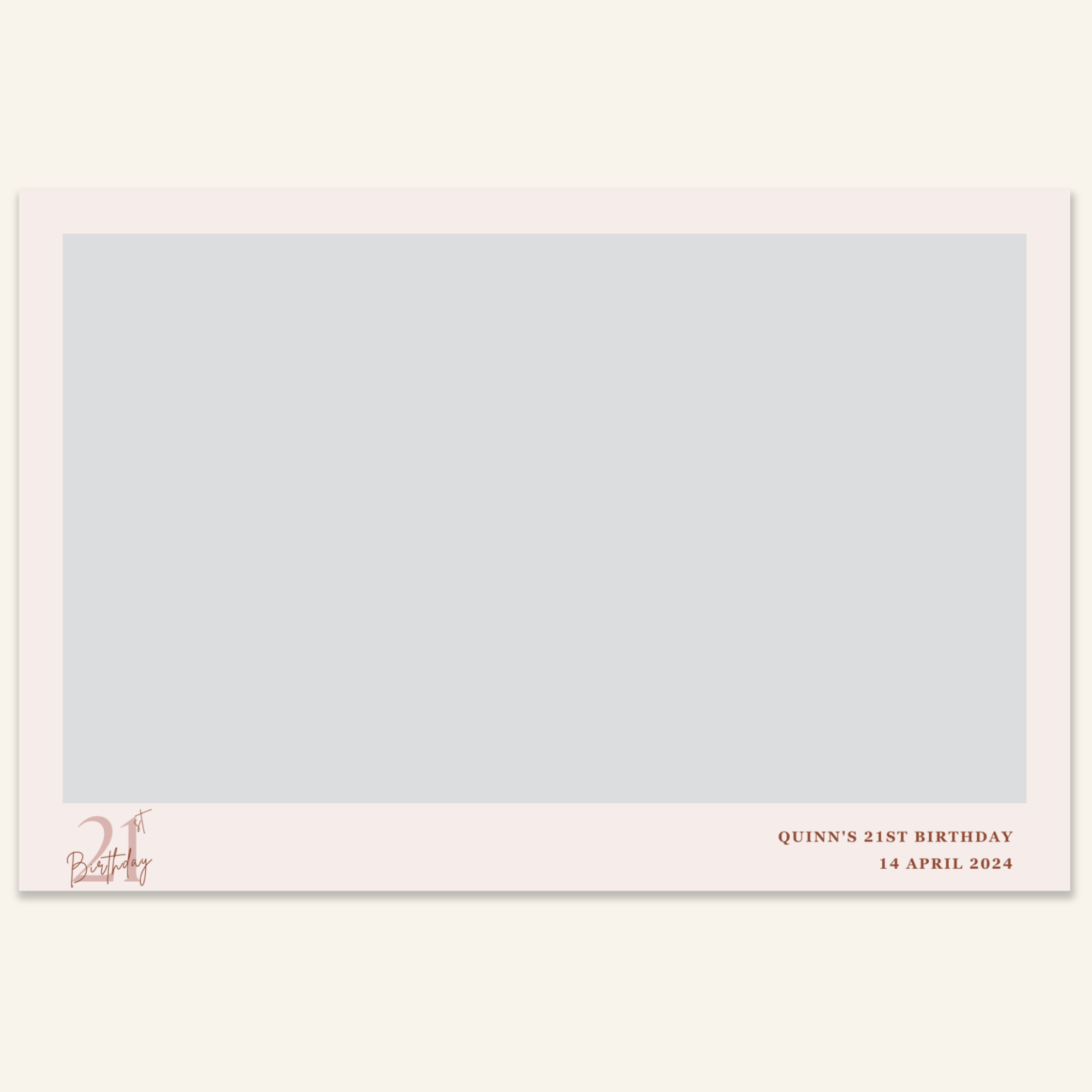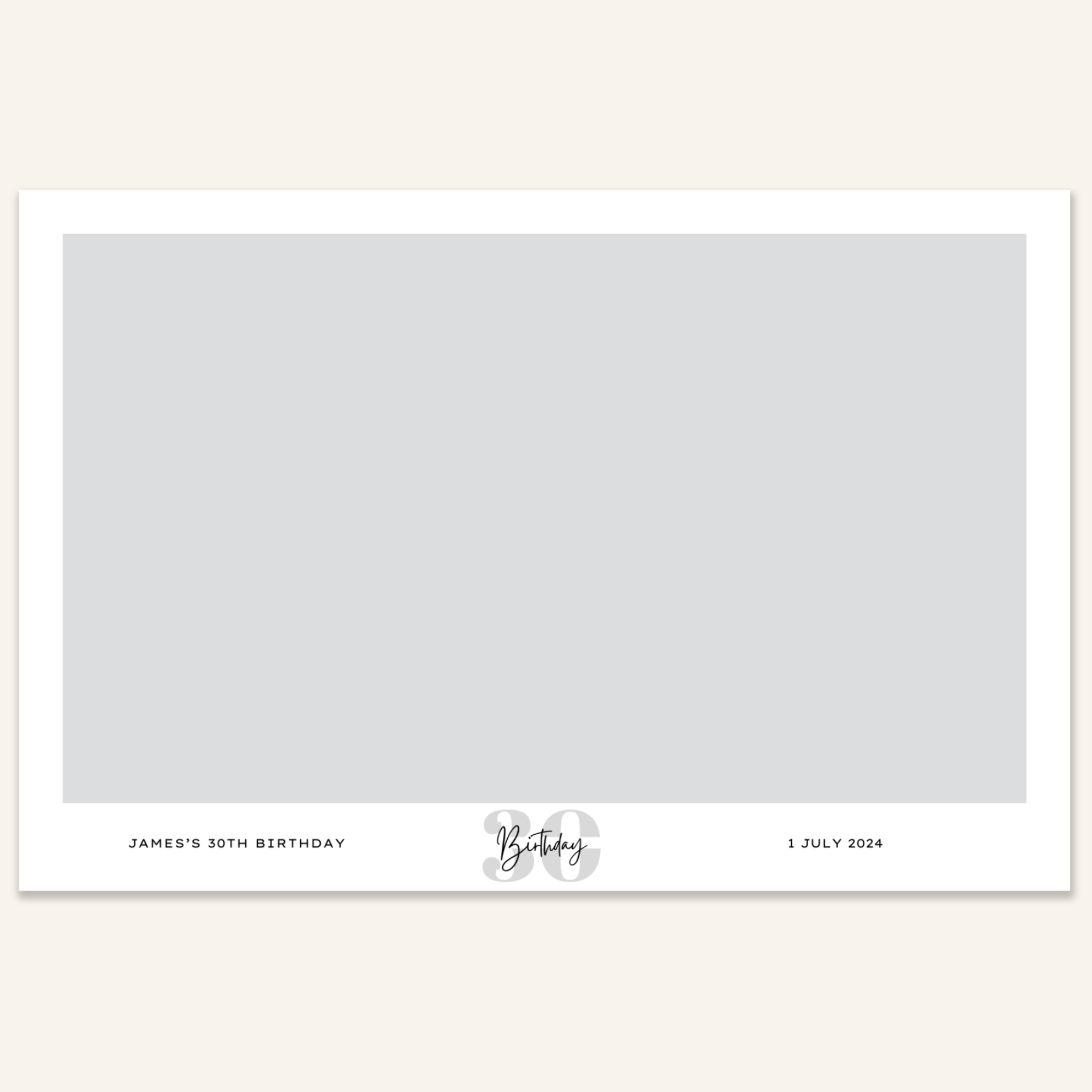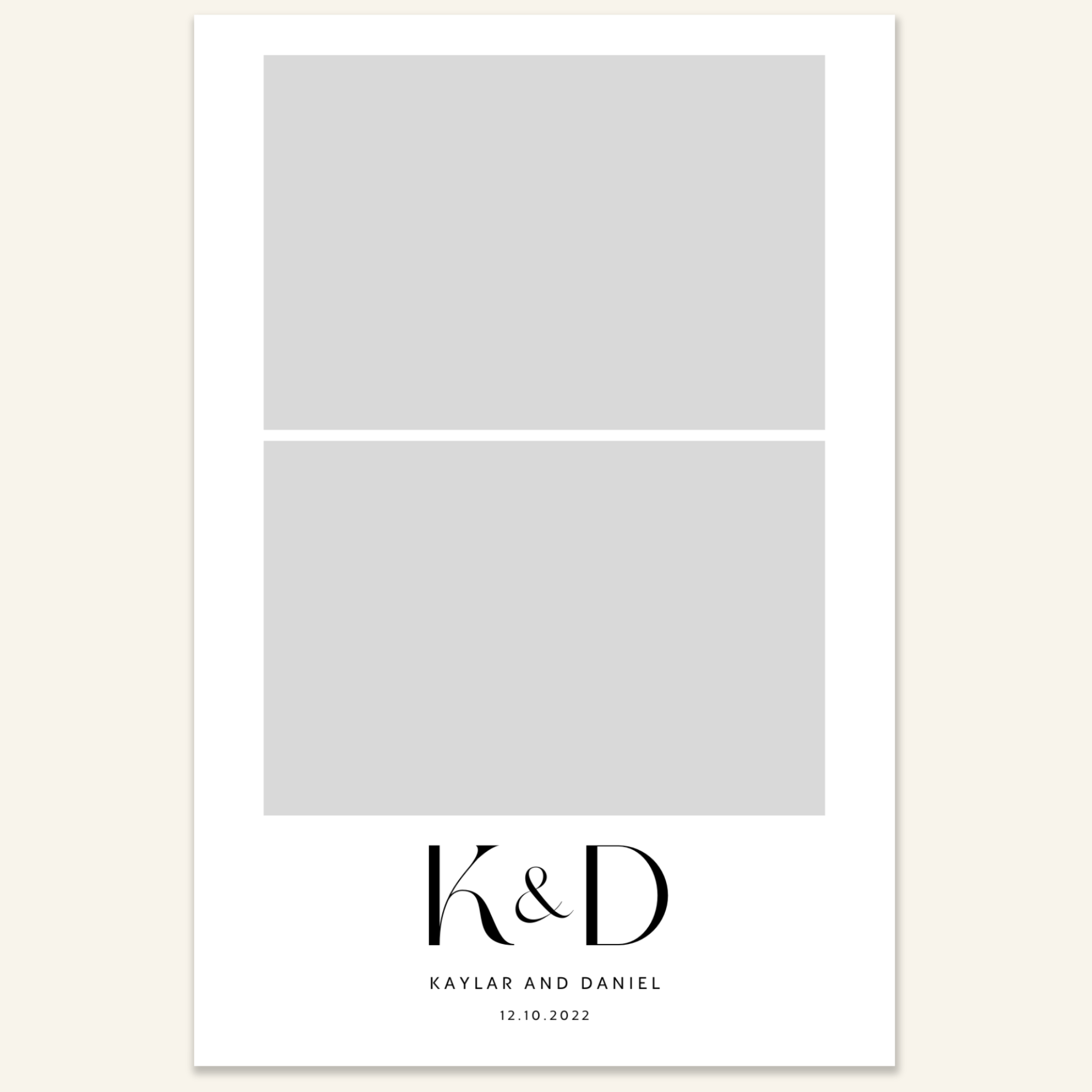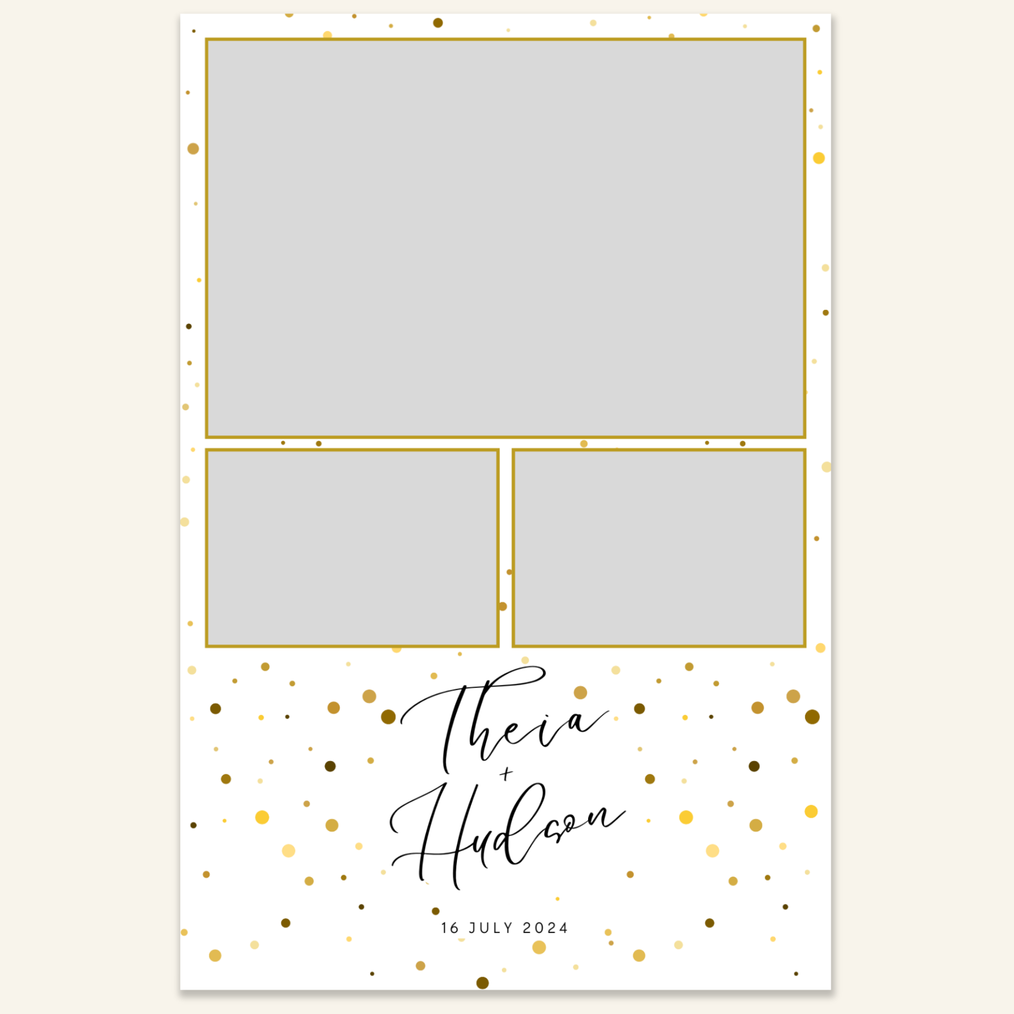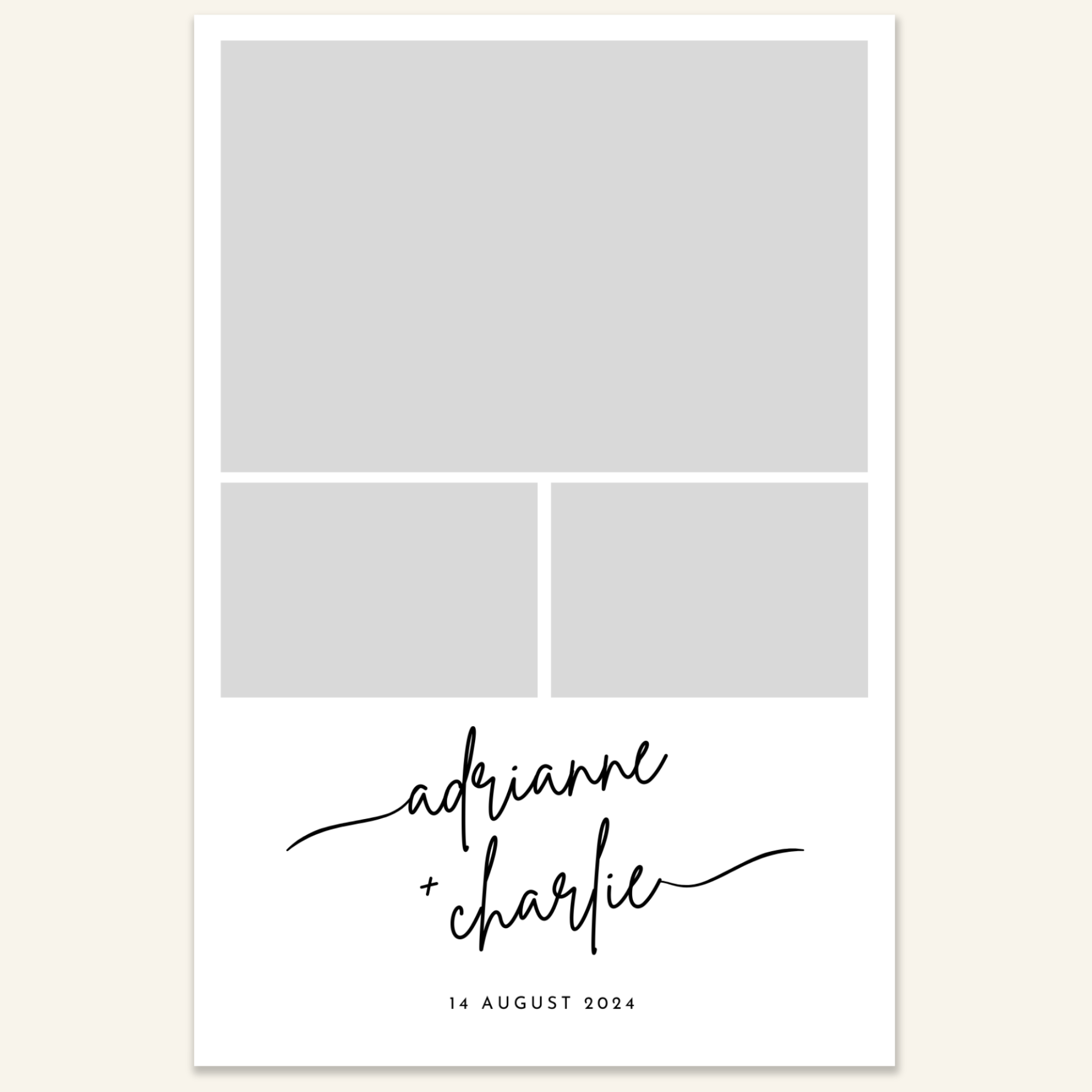 Step 3: Personalise your print template by adding your event name, date, and/or custom message. (eg. Sophia & Lucas / 12 April 2024 / Thanks for joining us!)