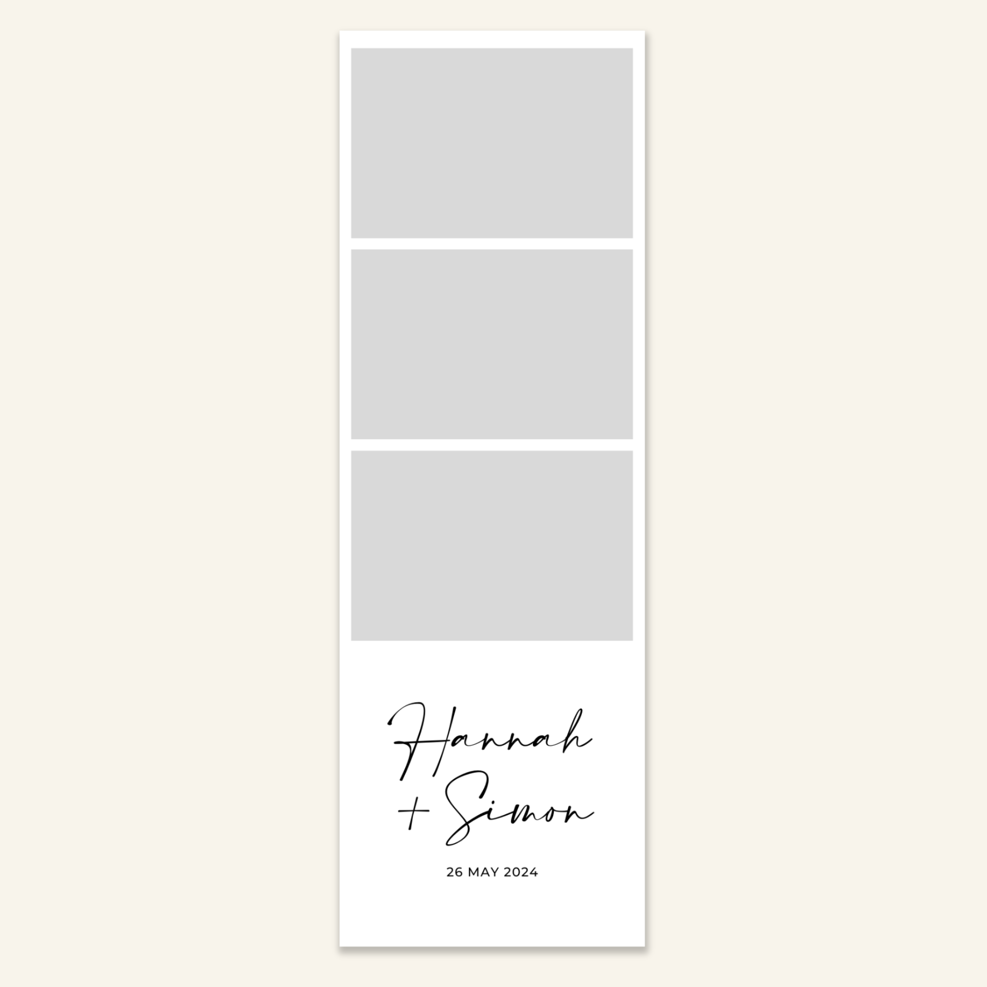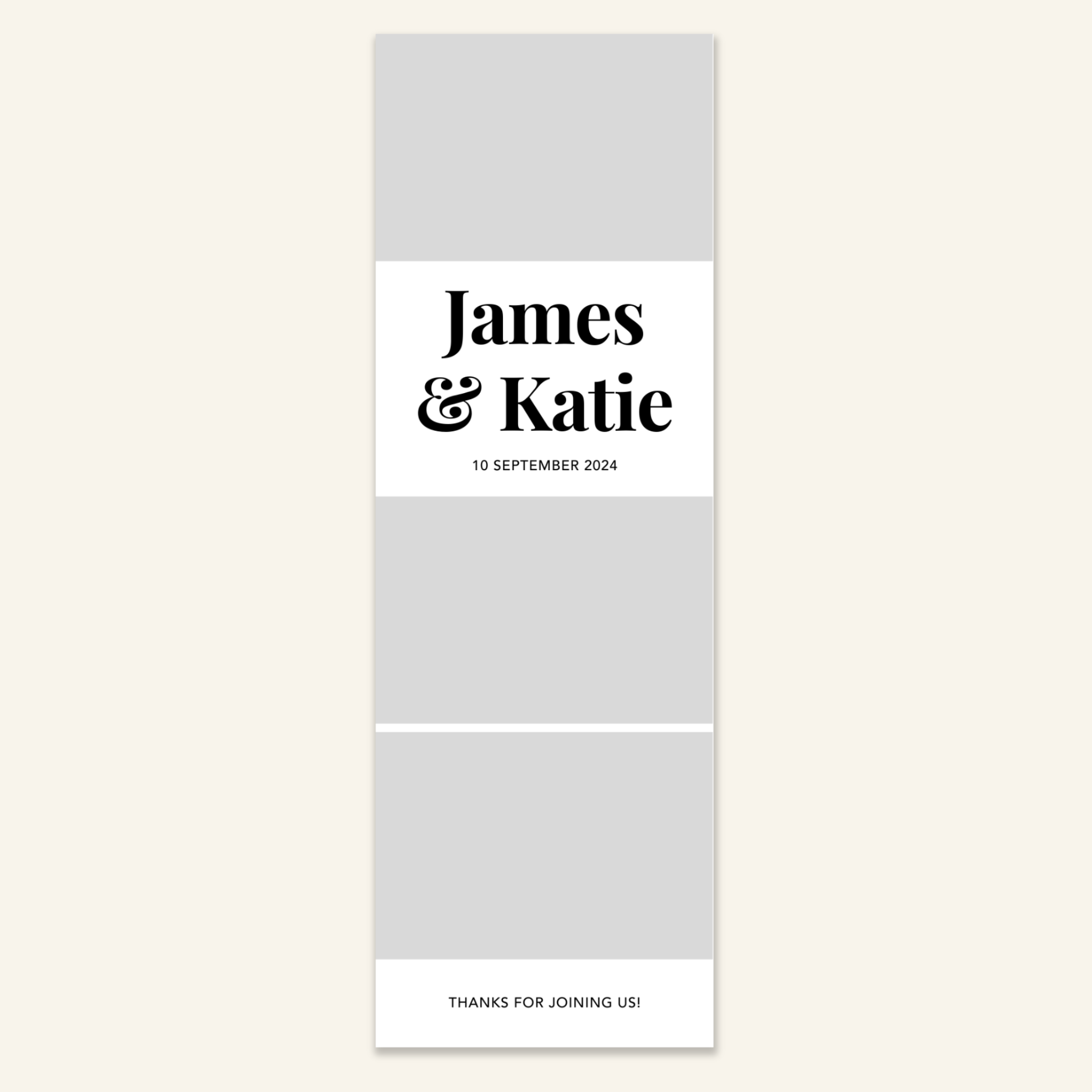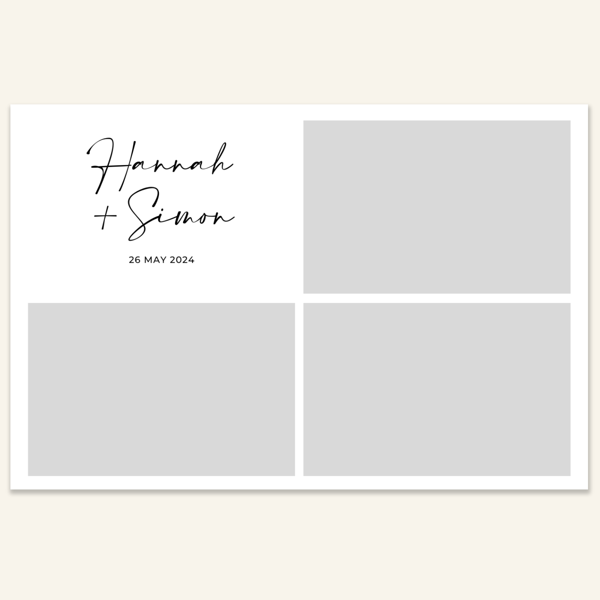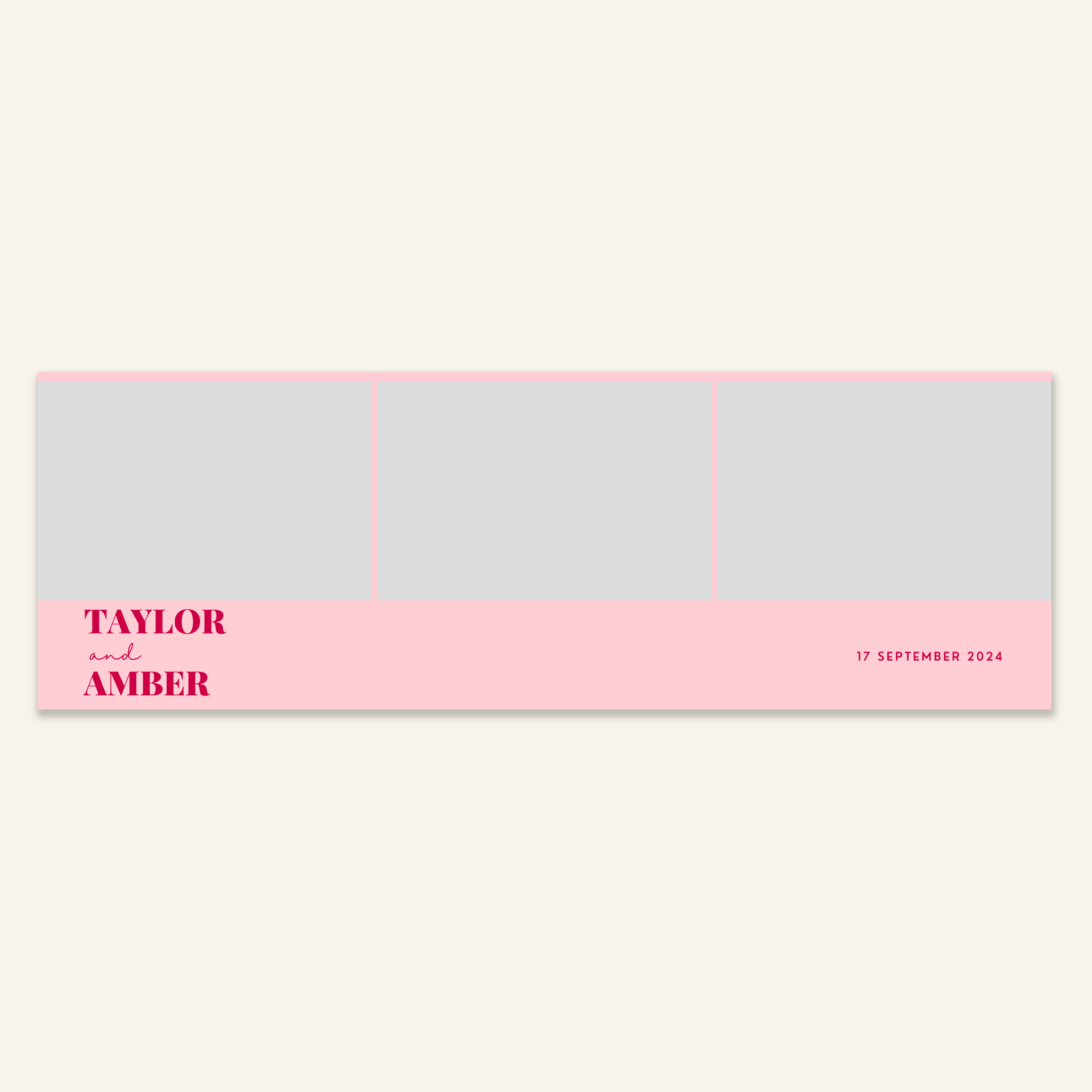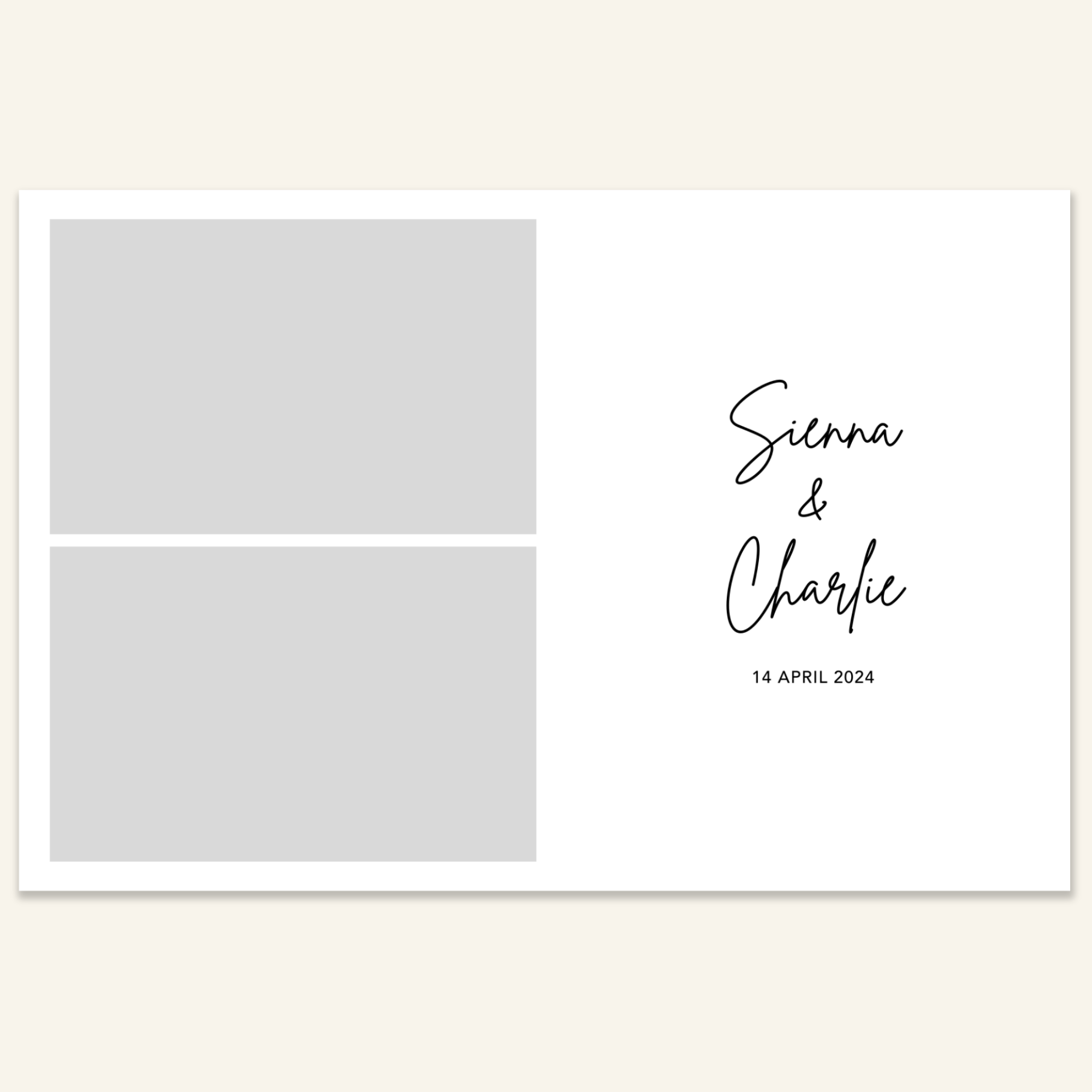 Step 3: Personalise your print template by adding your event name, date, and/or custom message. (eg. Sophia & Lucas / 12 April 2024 / Thanks for joining us!)