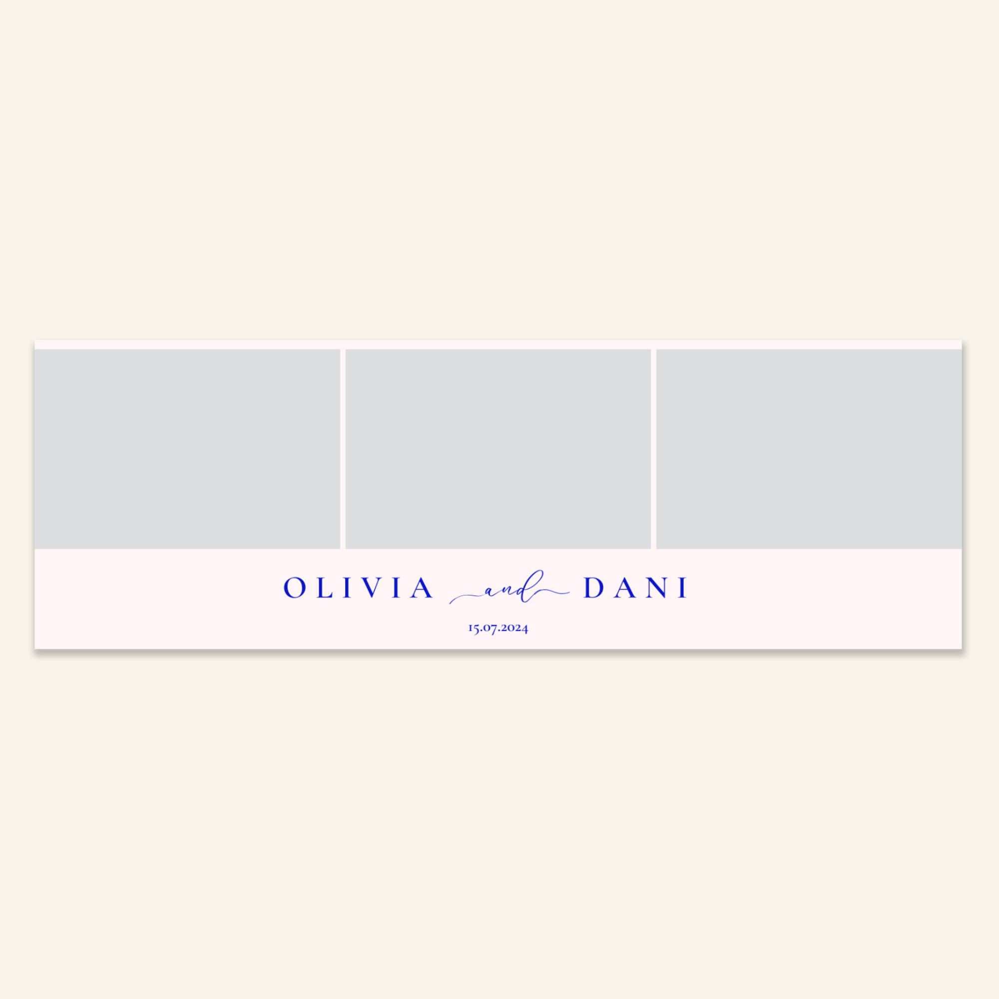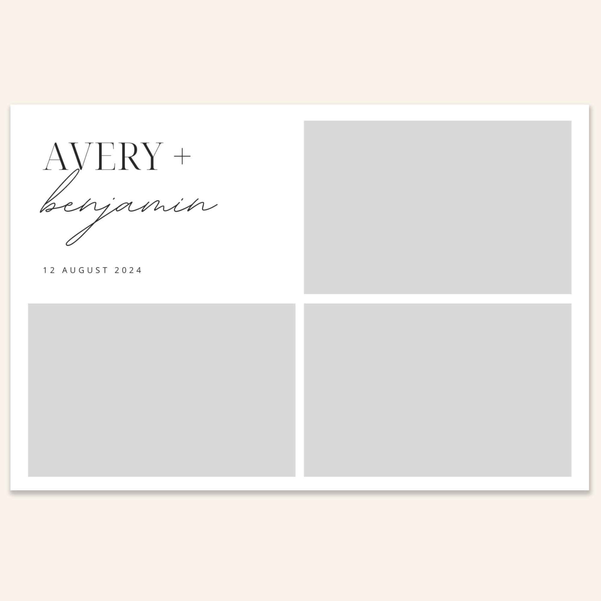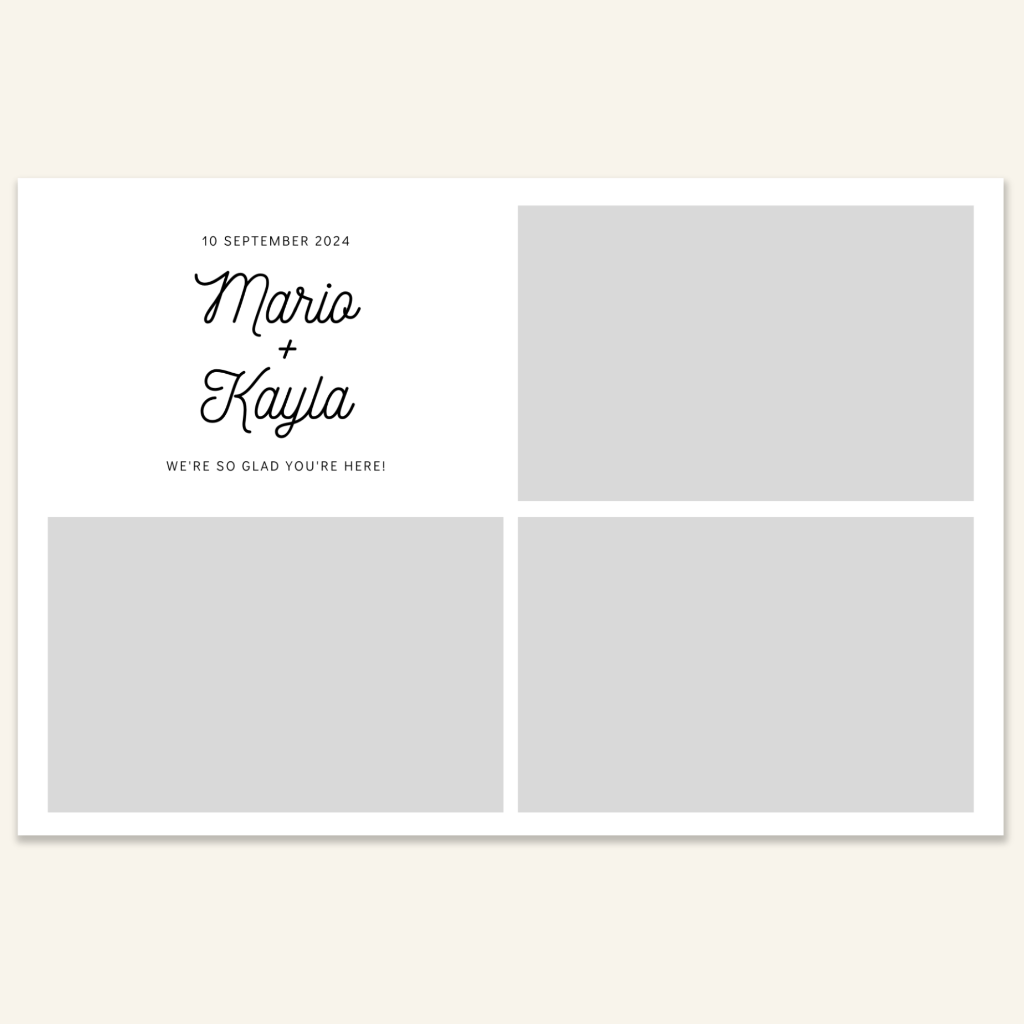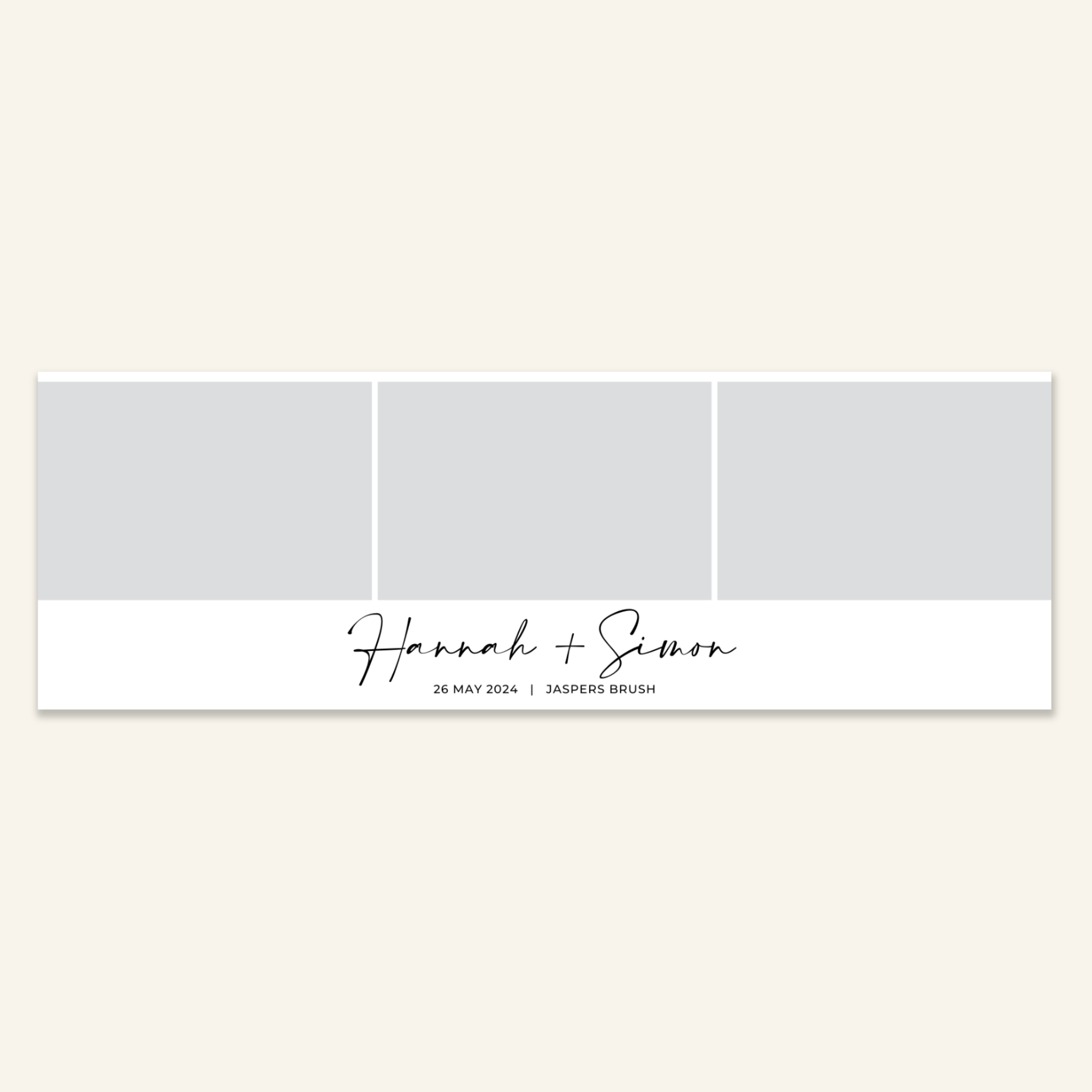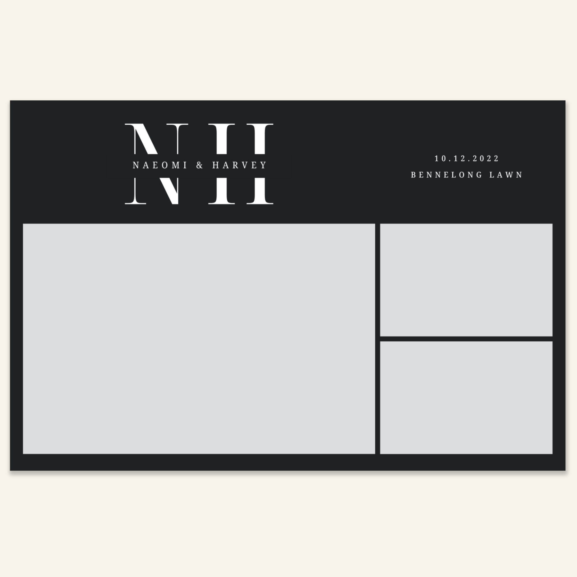 Step 3: Personalise your print template by adding your event name, date, and/or custom message. (eg. Sophia & Lucas / 12 April 2024 / Thanks for joining us!)