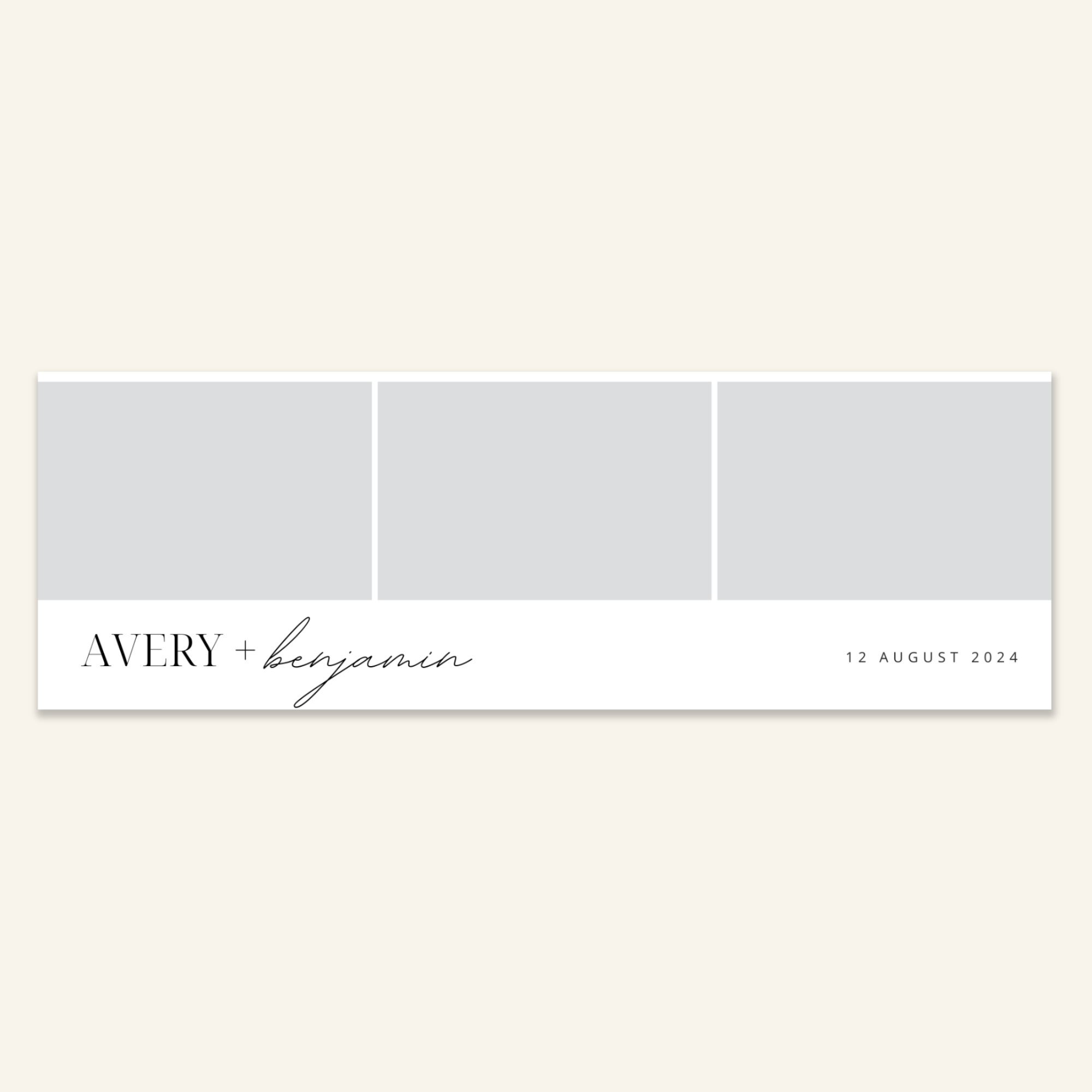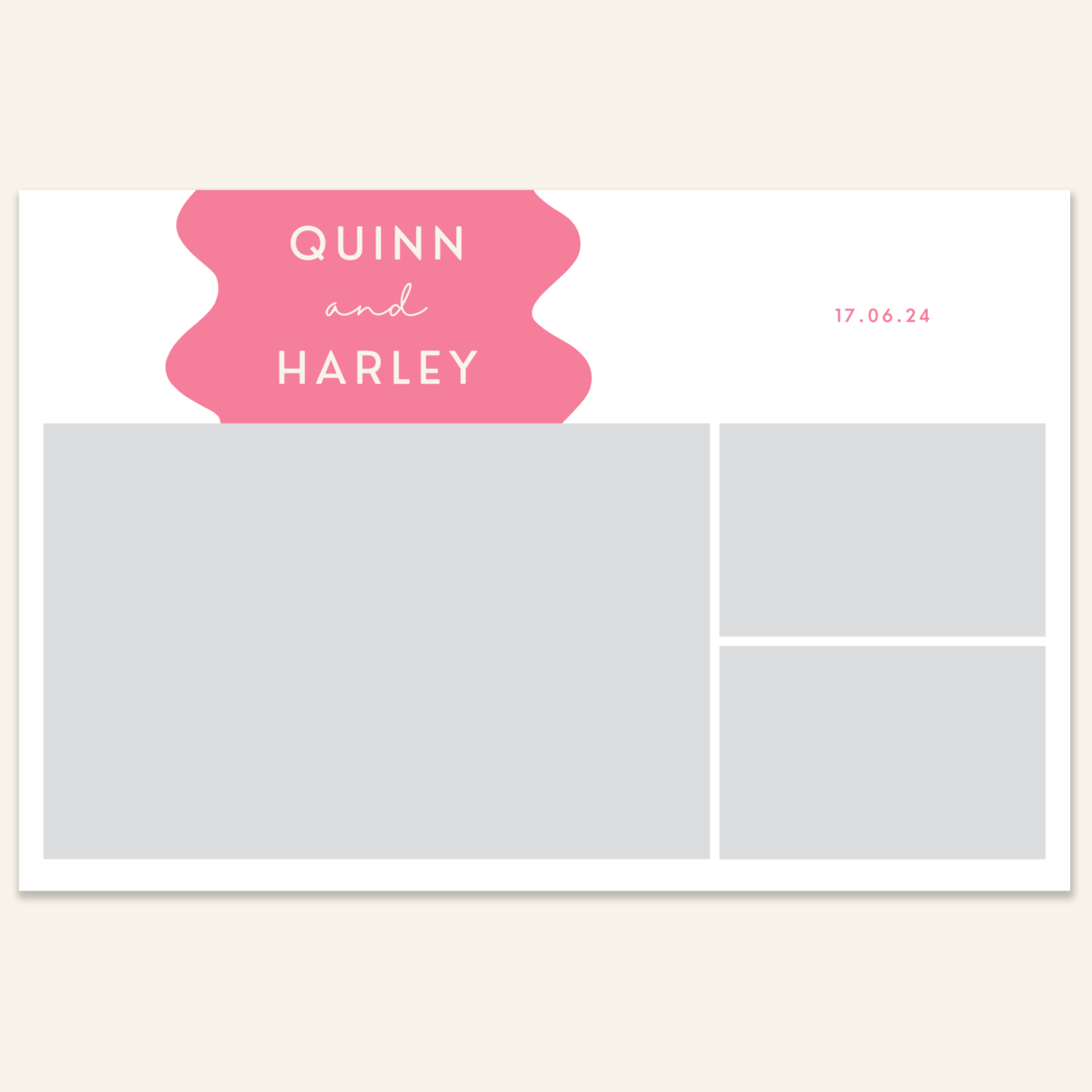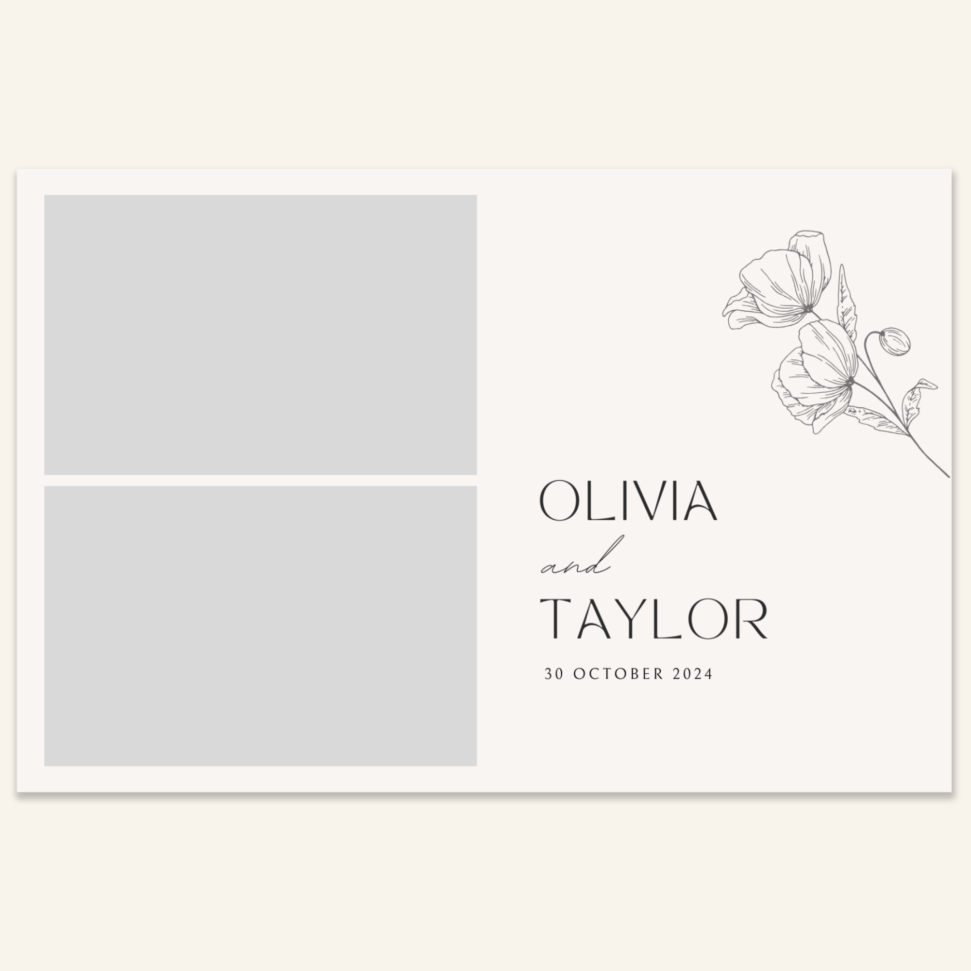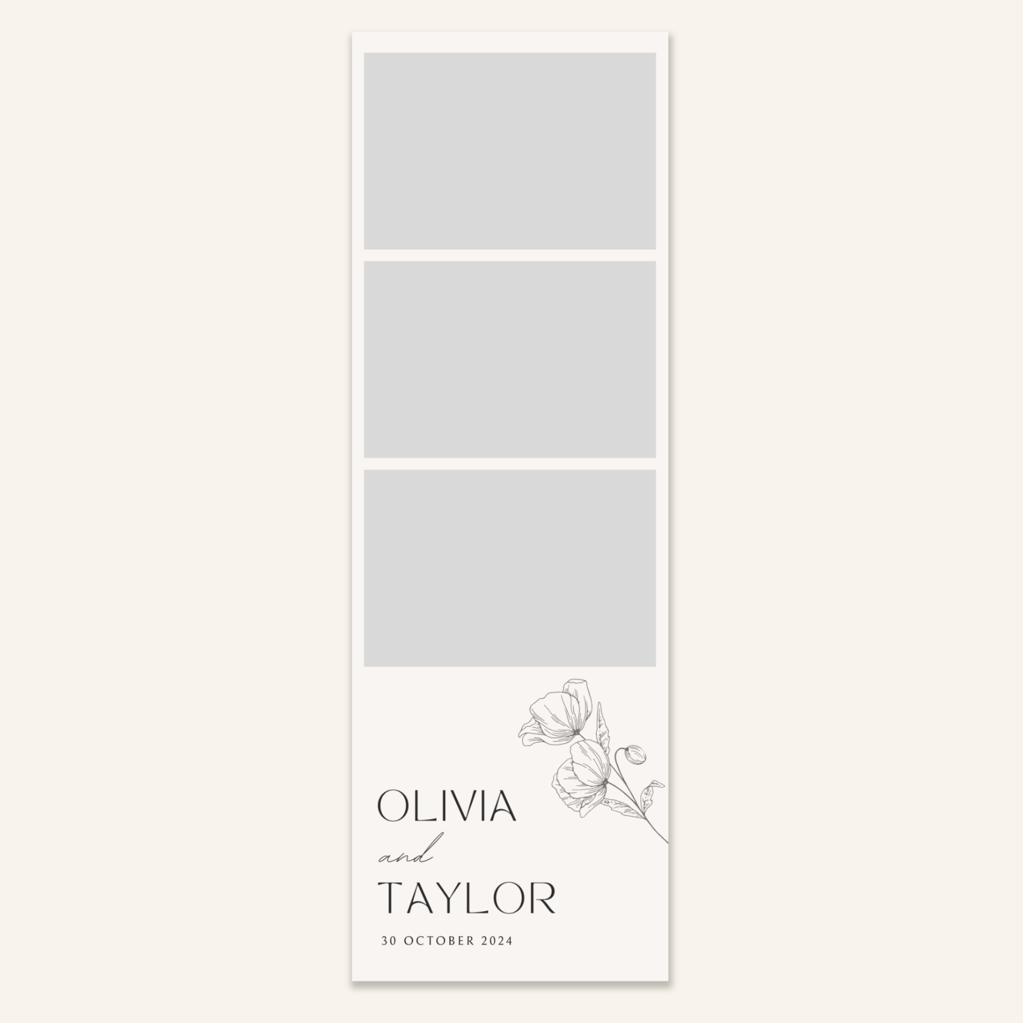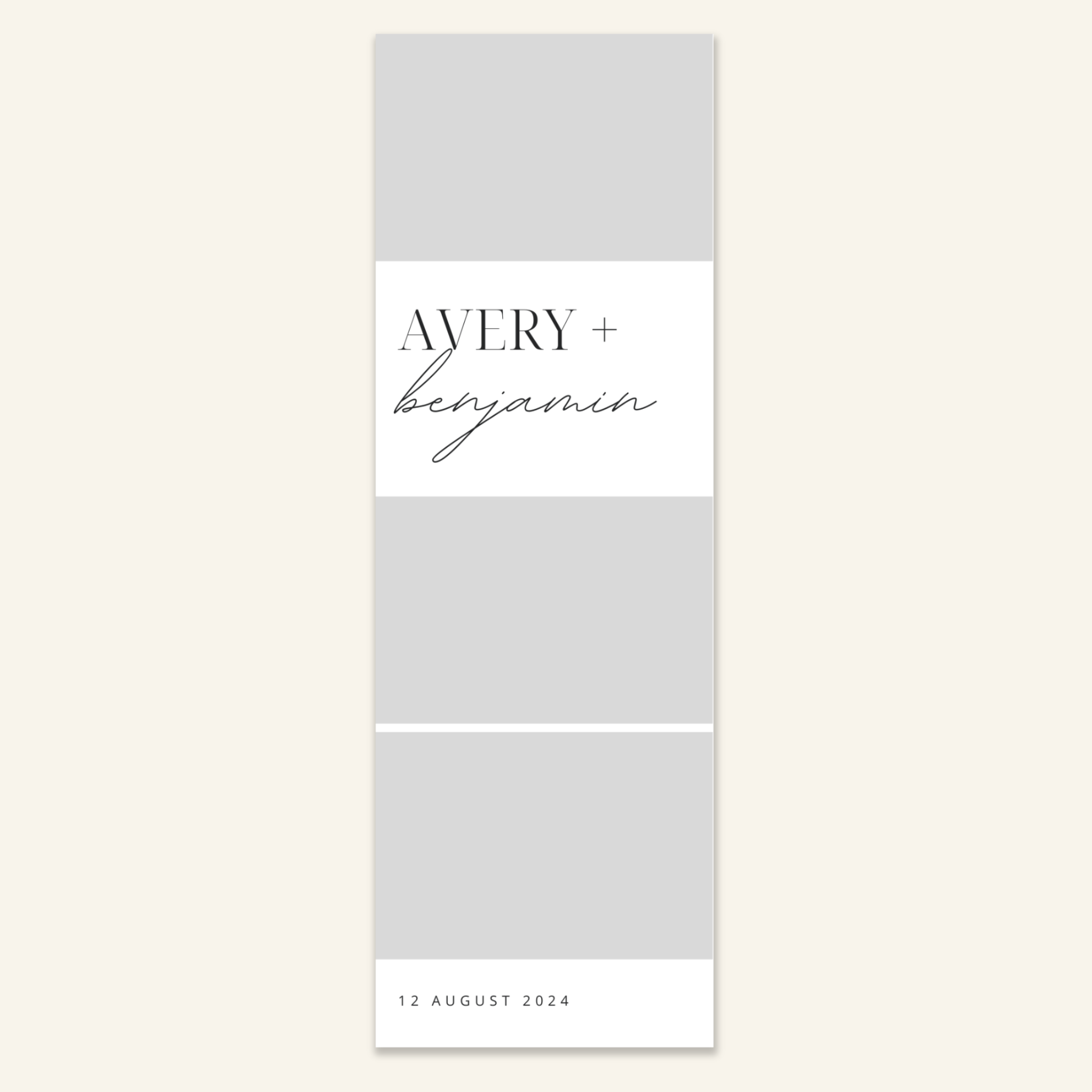 Step 3: Personalise your print template by adding your event name, date, and/or custom message. (eg. Sophia & Lucas / 12 April 2024 / Thanks for joining us!)