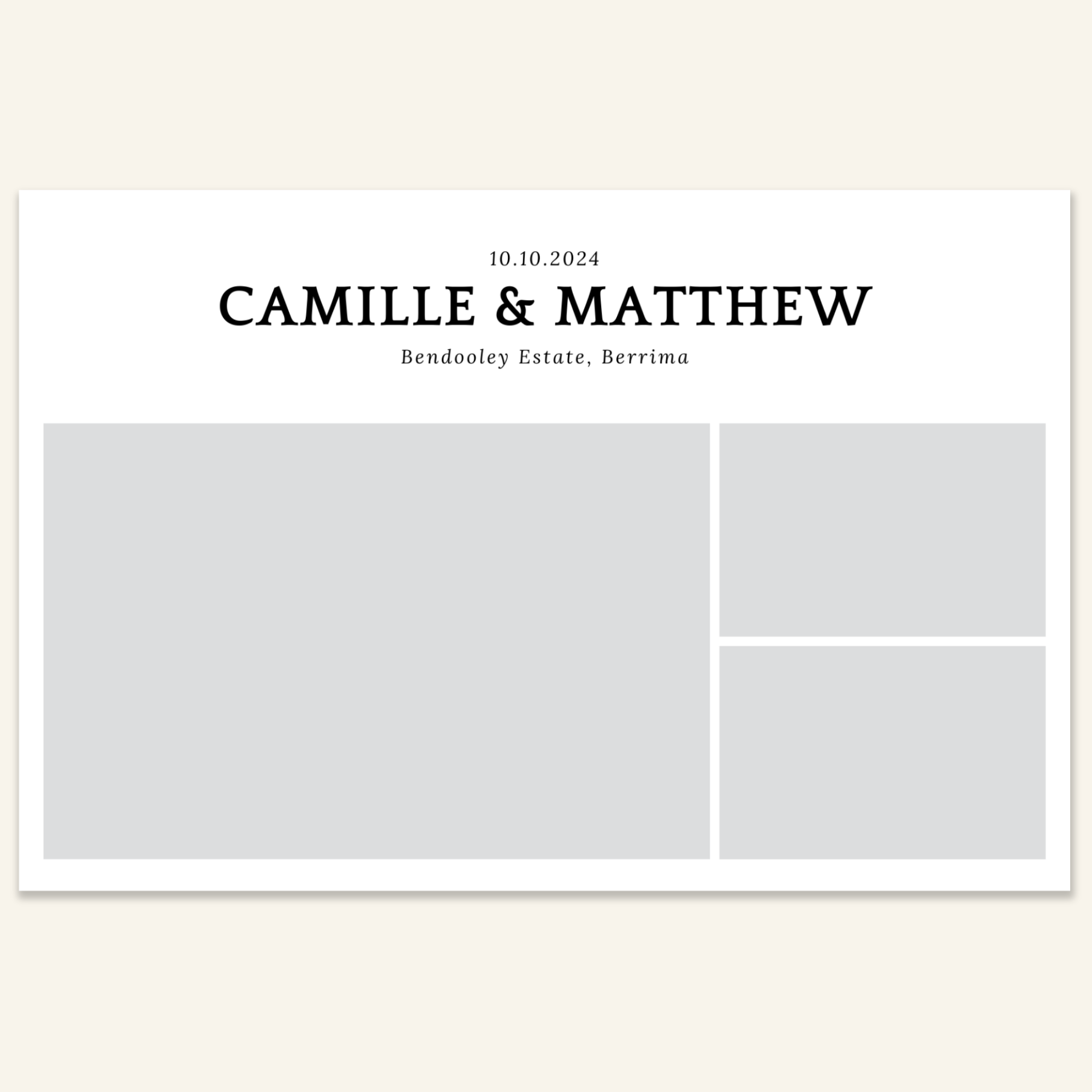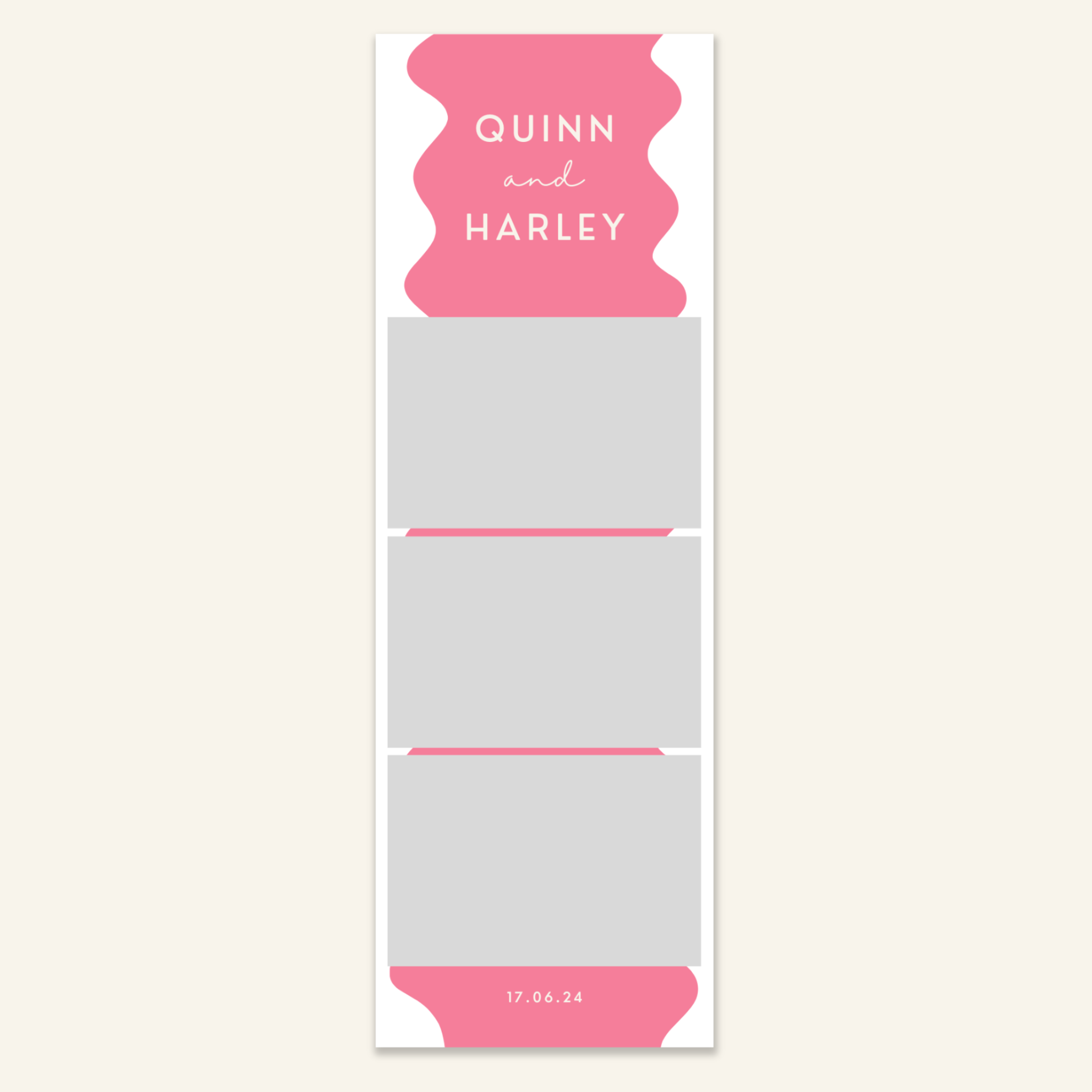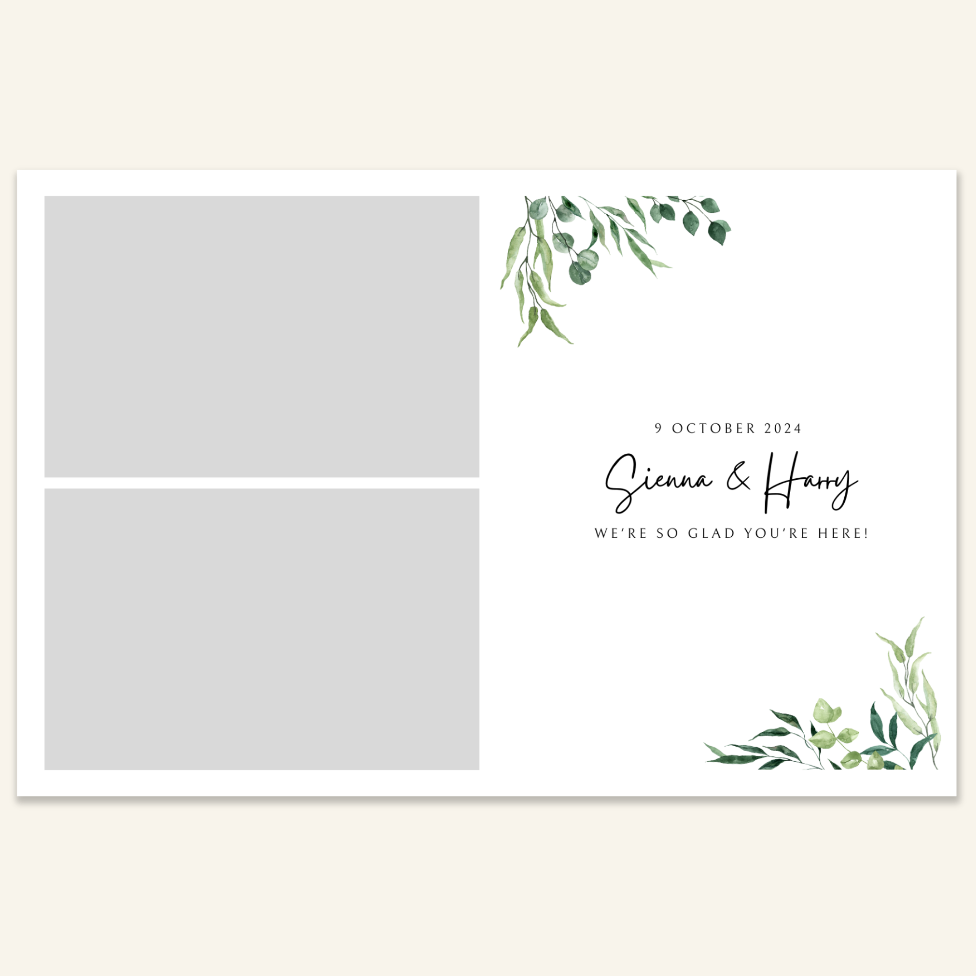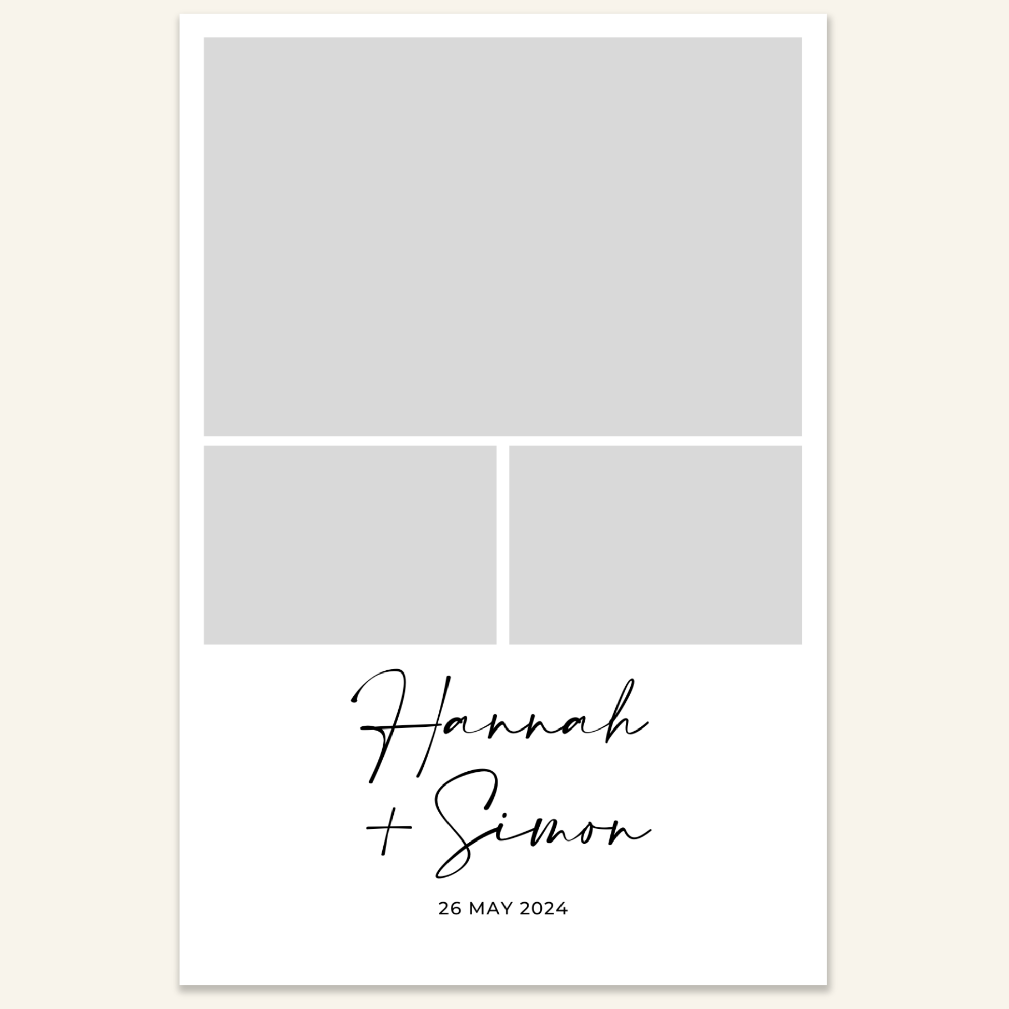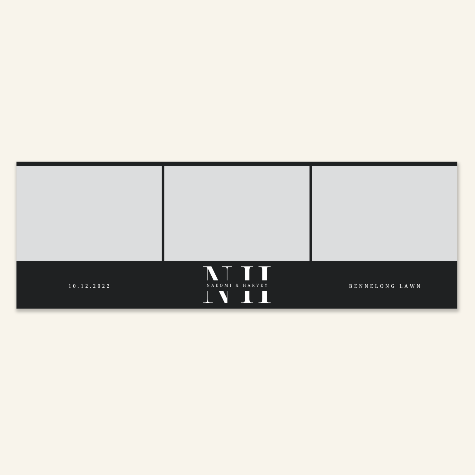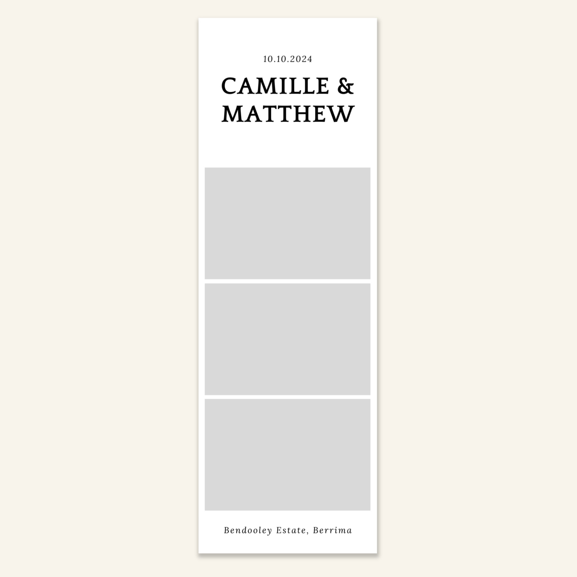 Step 3: Personalise your print template by adding your event name, date, and/or custom message. (eg. Sophia & Lucas / 12 April 2024 / Thanks for joining us!)