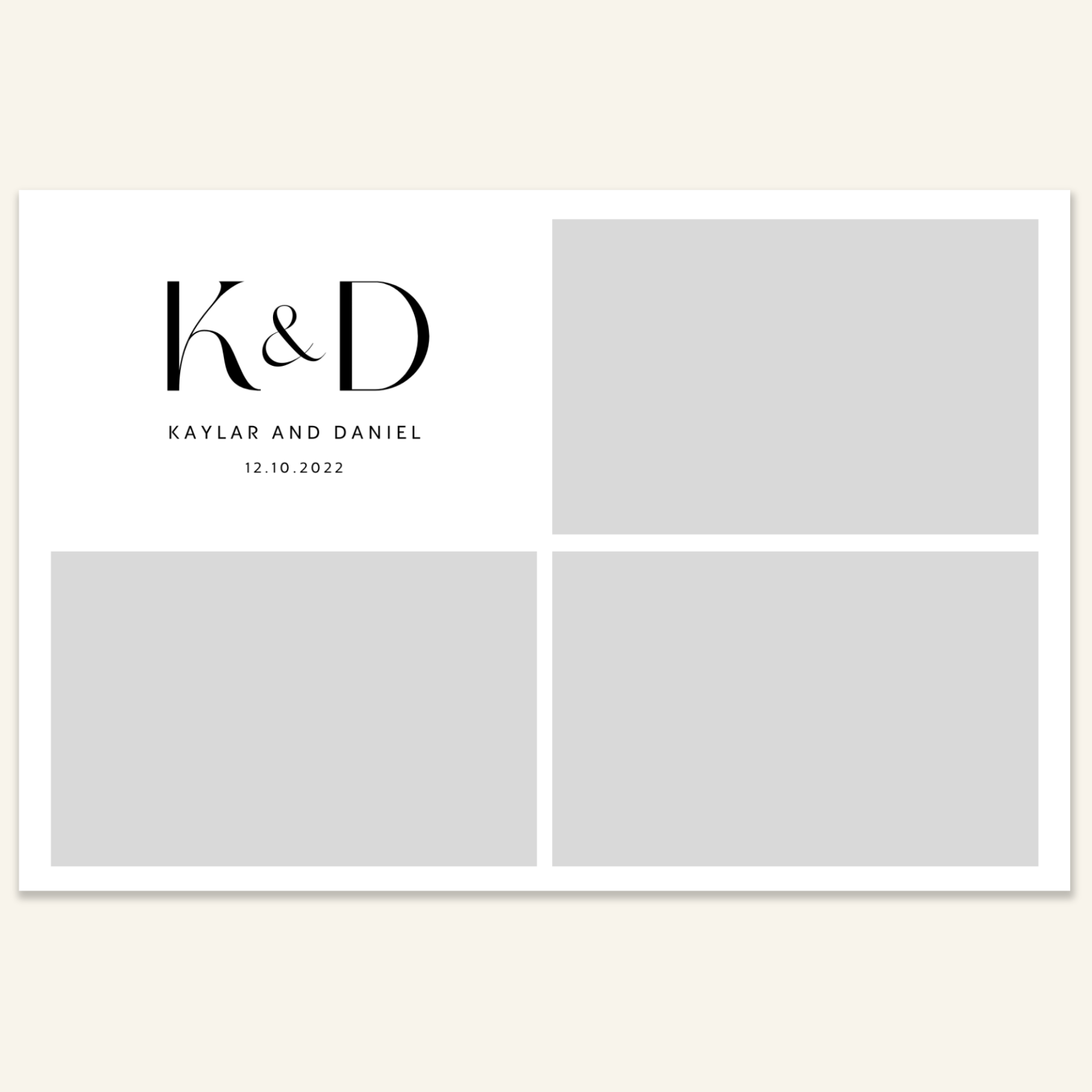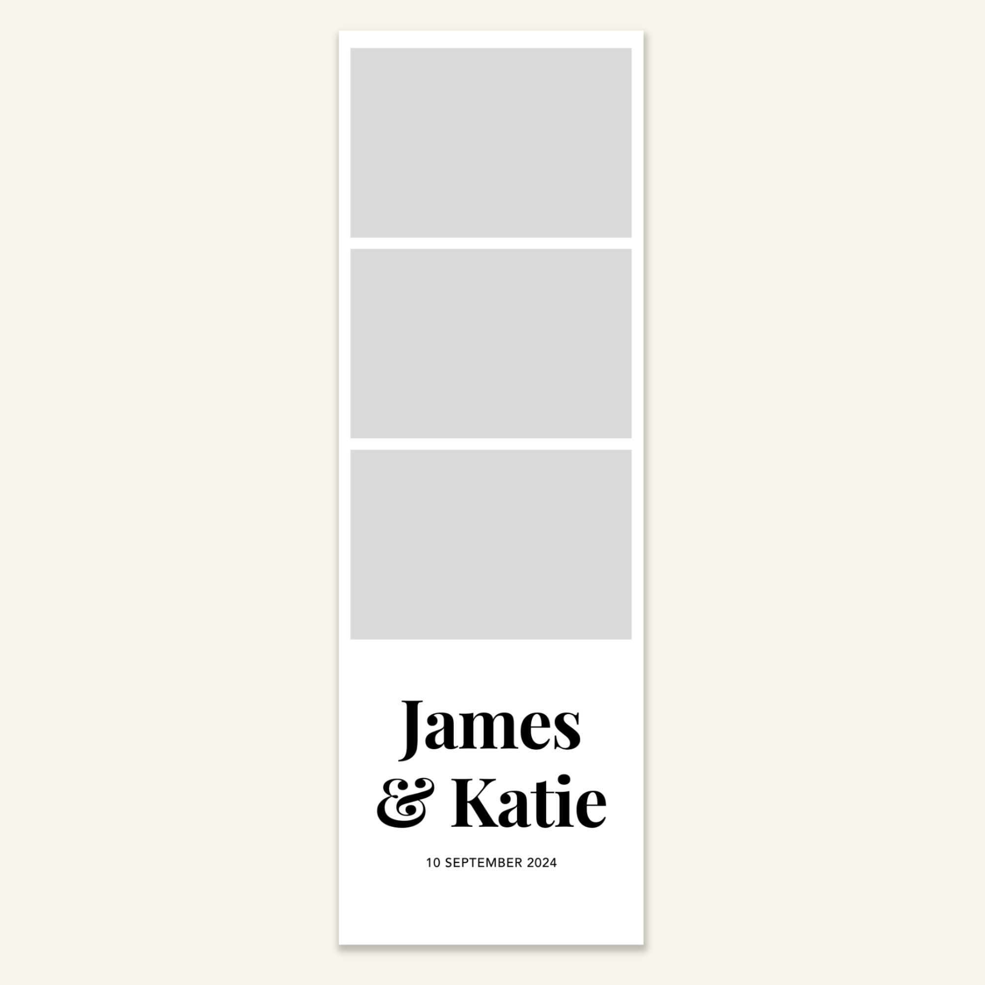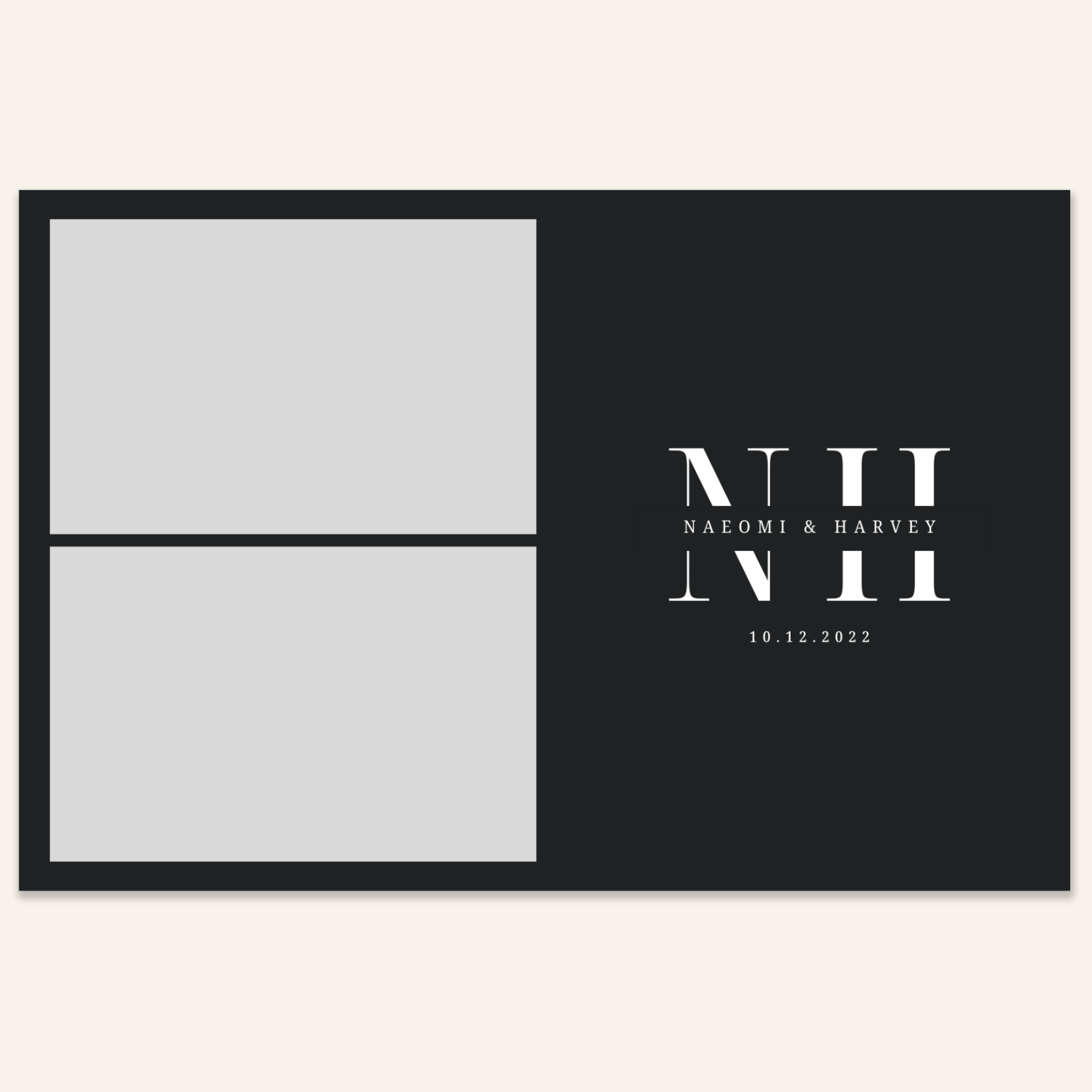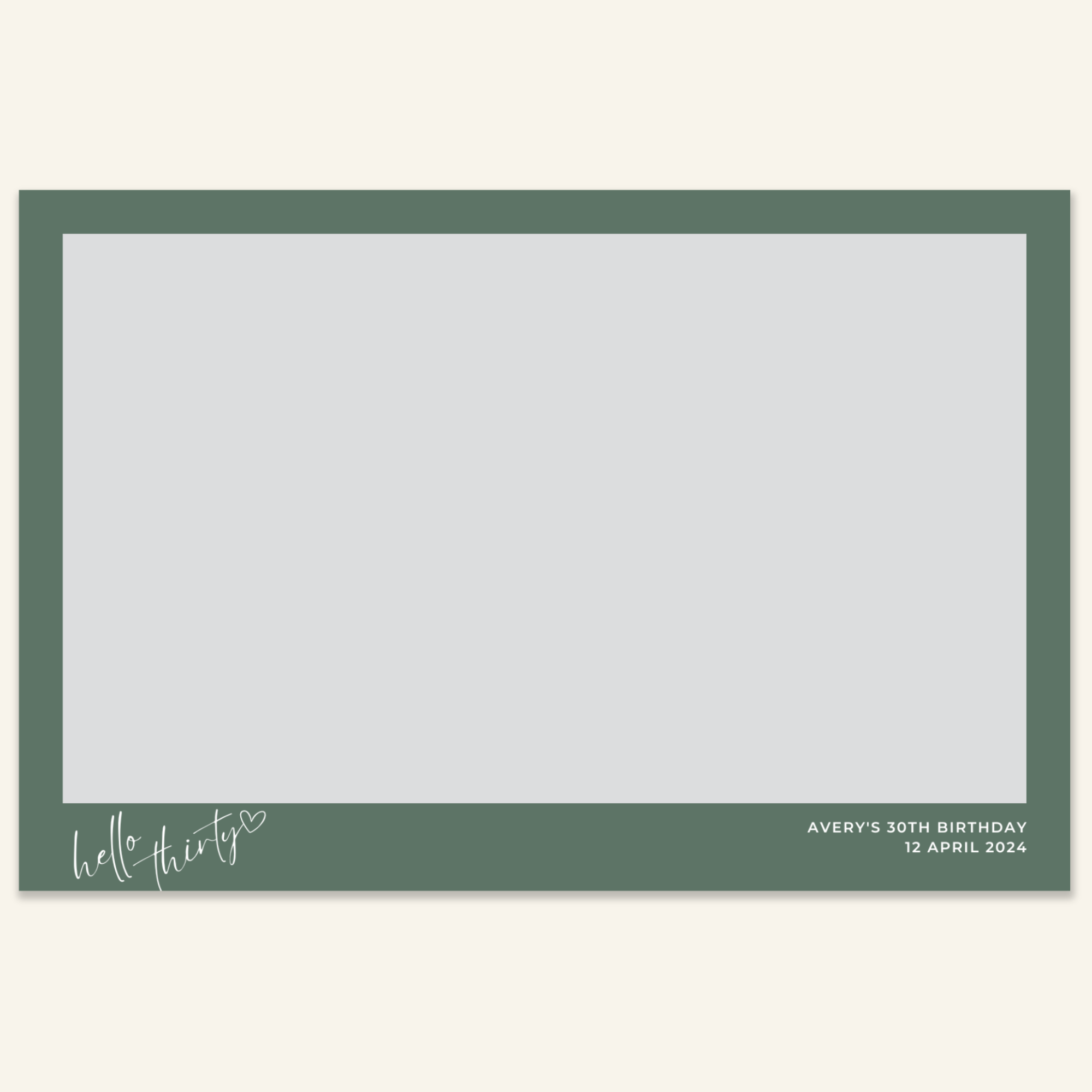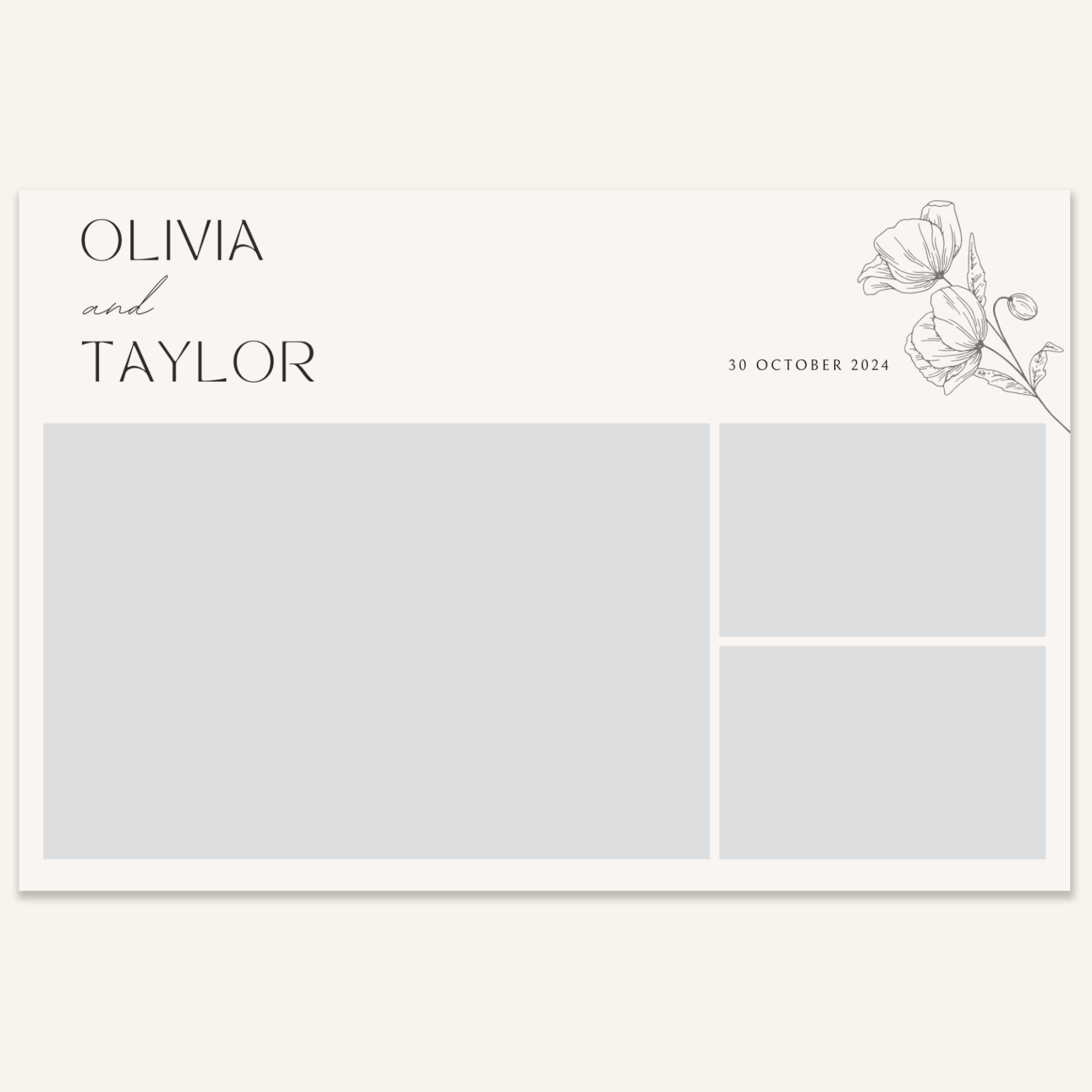 Step 3: Personalise your print template by adding your event name, date, and/or custom message. (eg. Sophia & Lucas / 12 April 2024 / Thanks for joining us!)