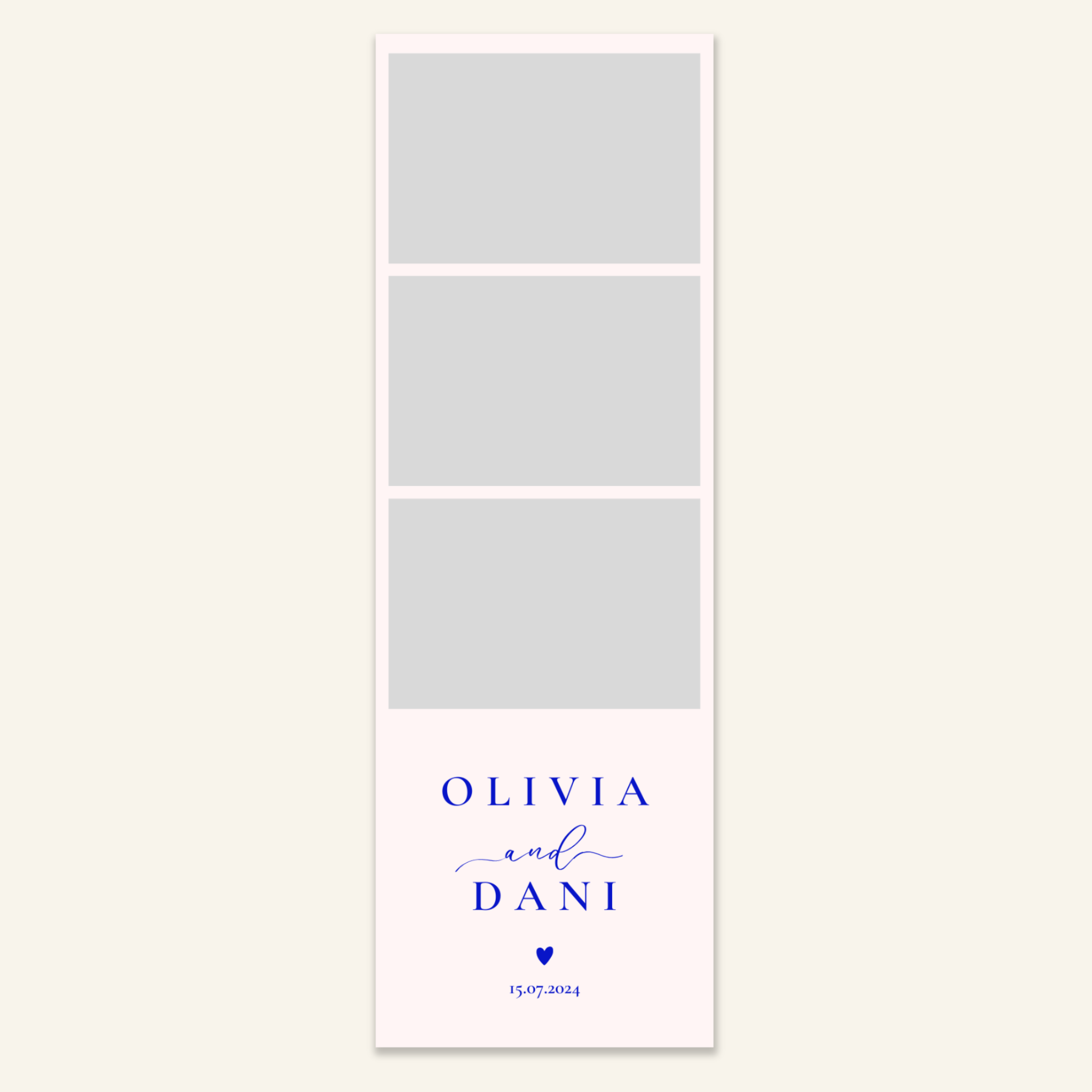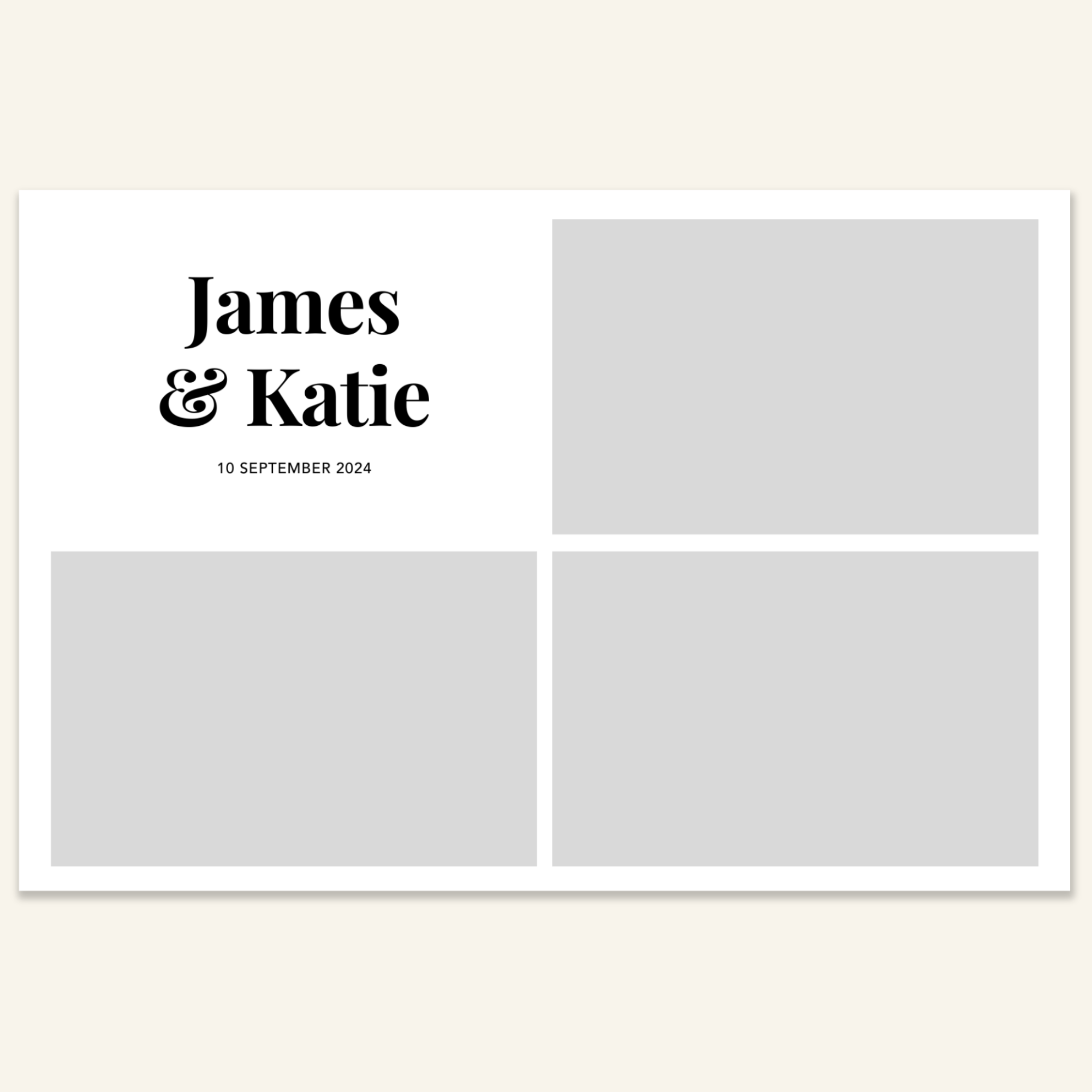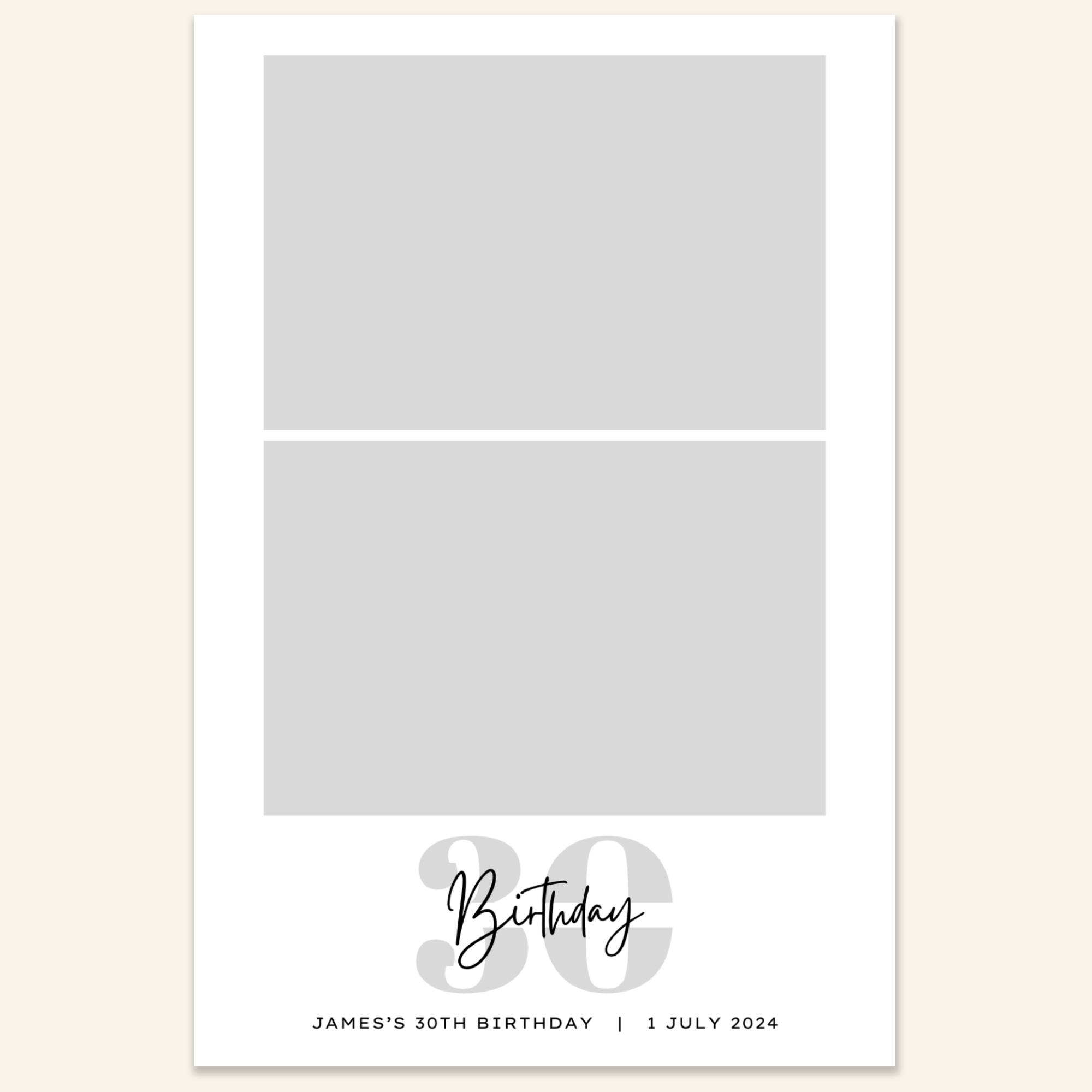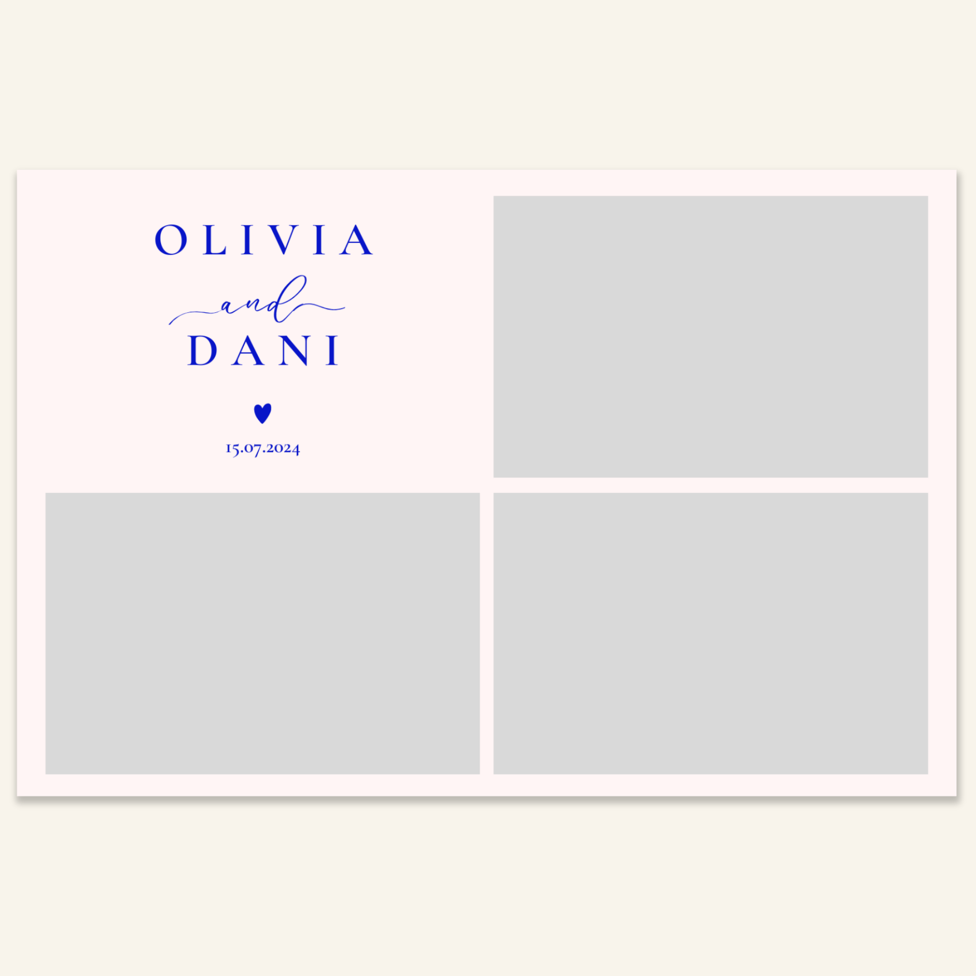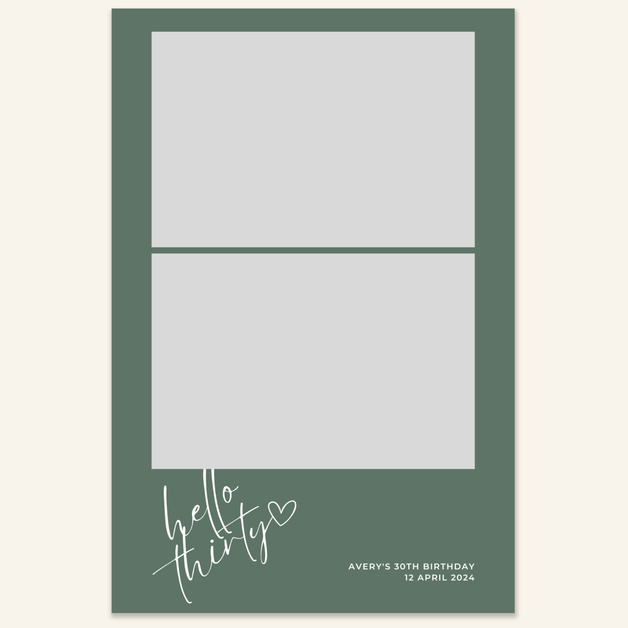Step 3: Personalise your print template by adding your event name, date, and/or custom message. (eg. Sophia & Lucas / 12 April 2024 / Thanks for joining us!)