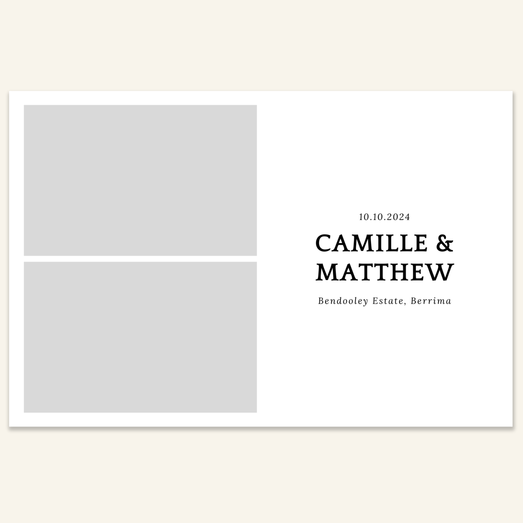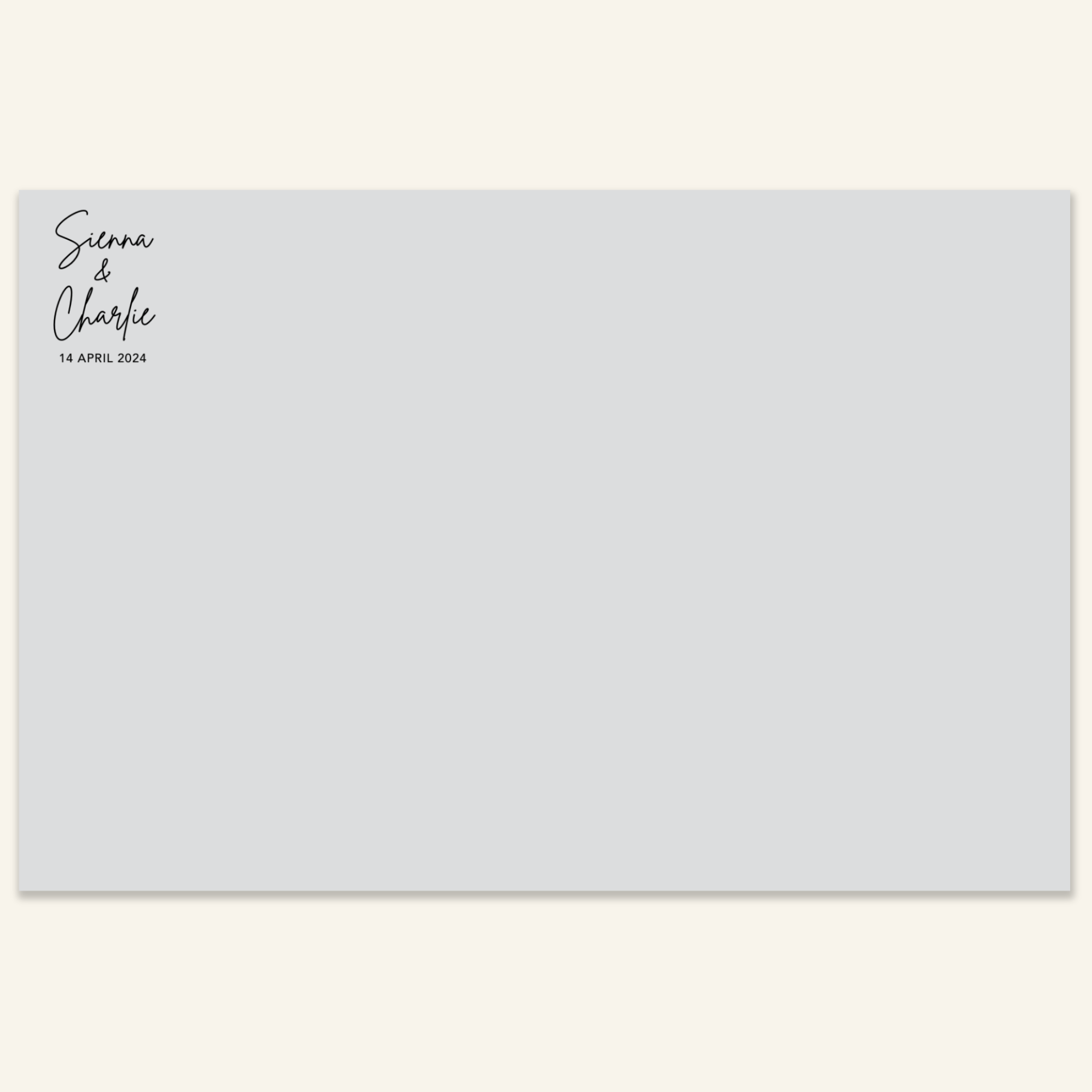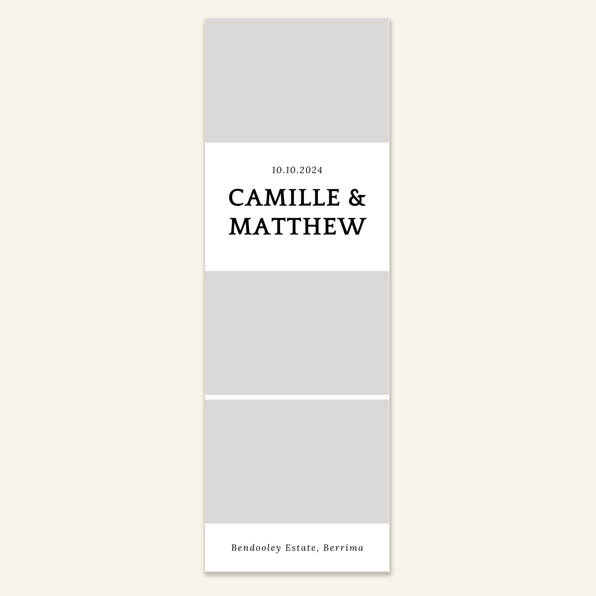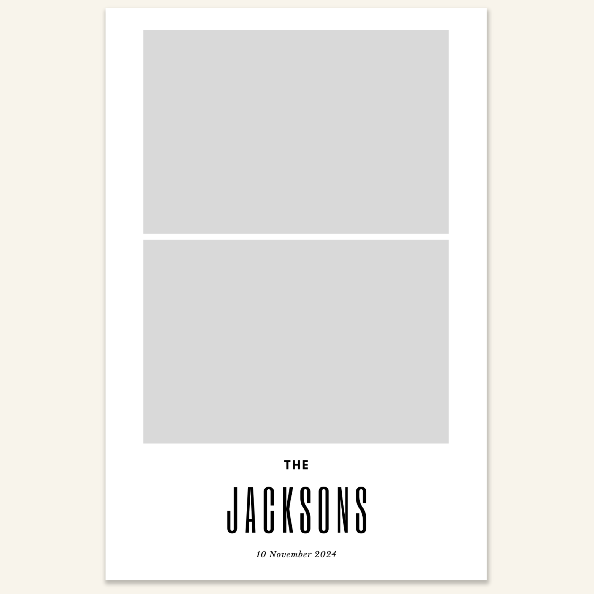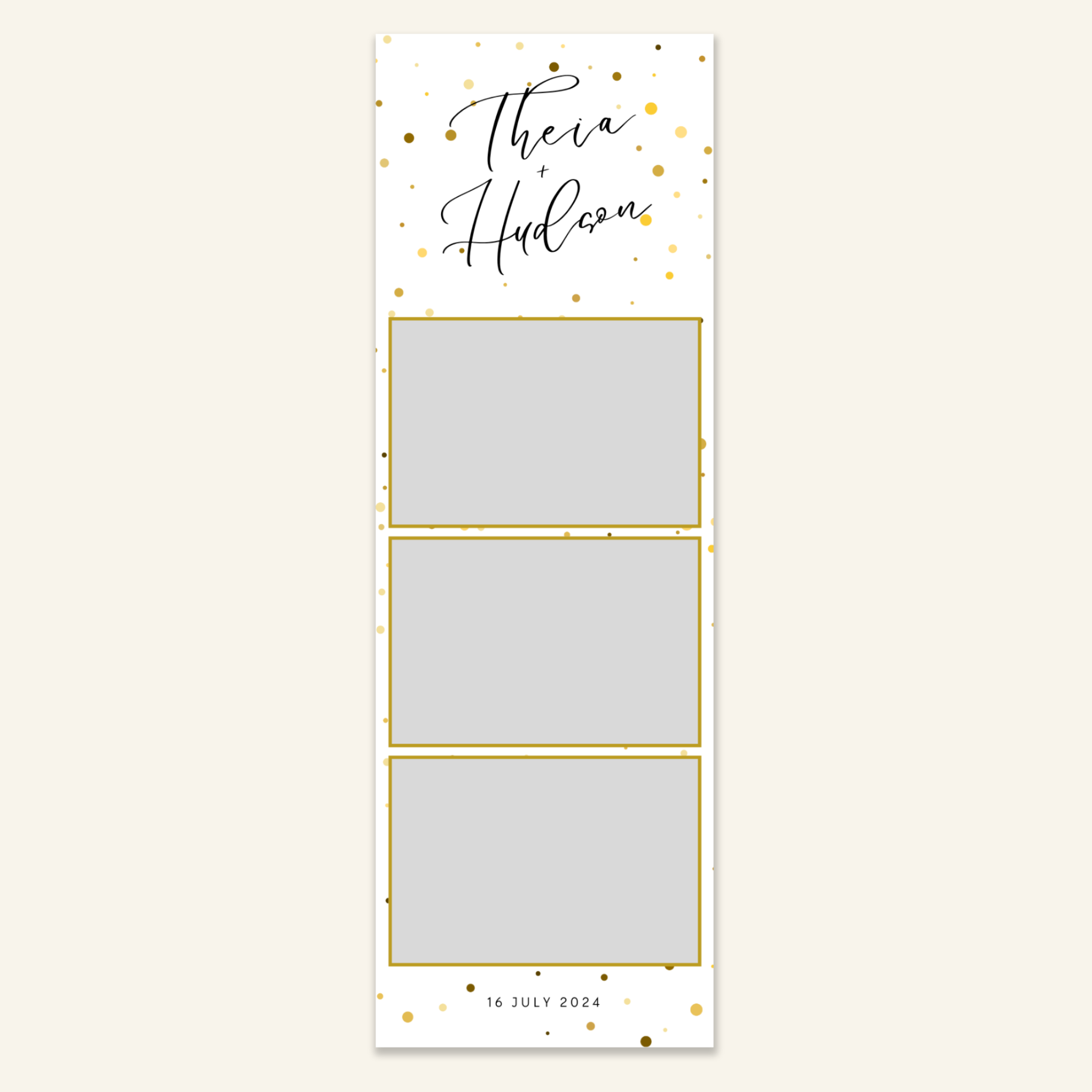 Step 3: Personalise your print template by adding your event name, date, and/or custom message. (eg. Sophia & Lucas / 12 April 2024 / Thanks for joining us!)