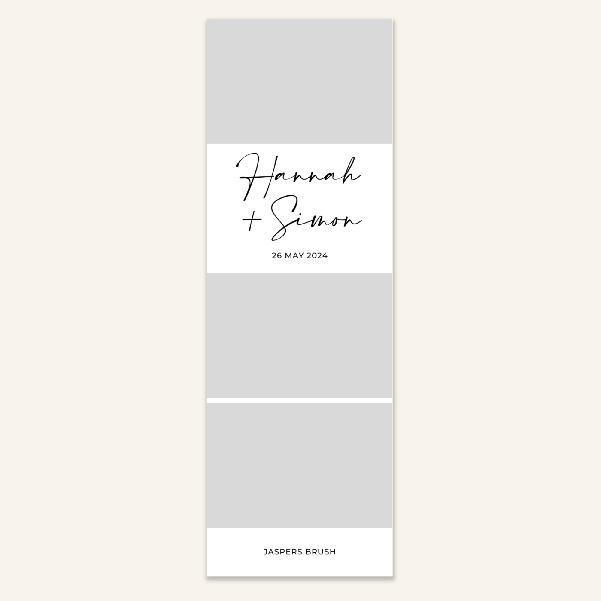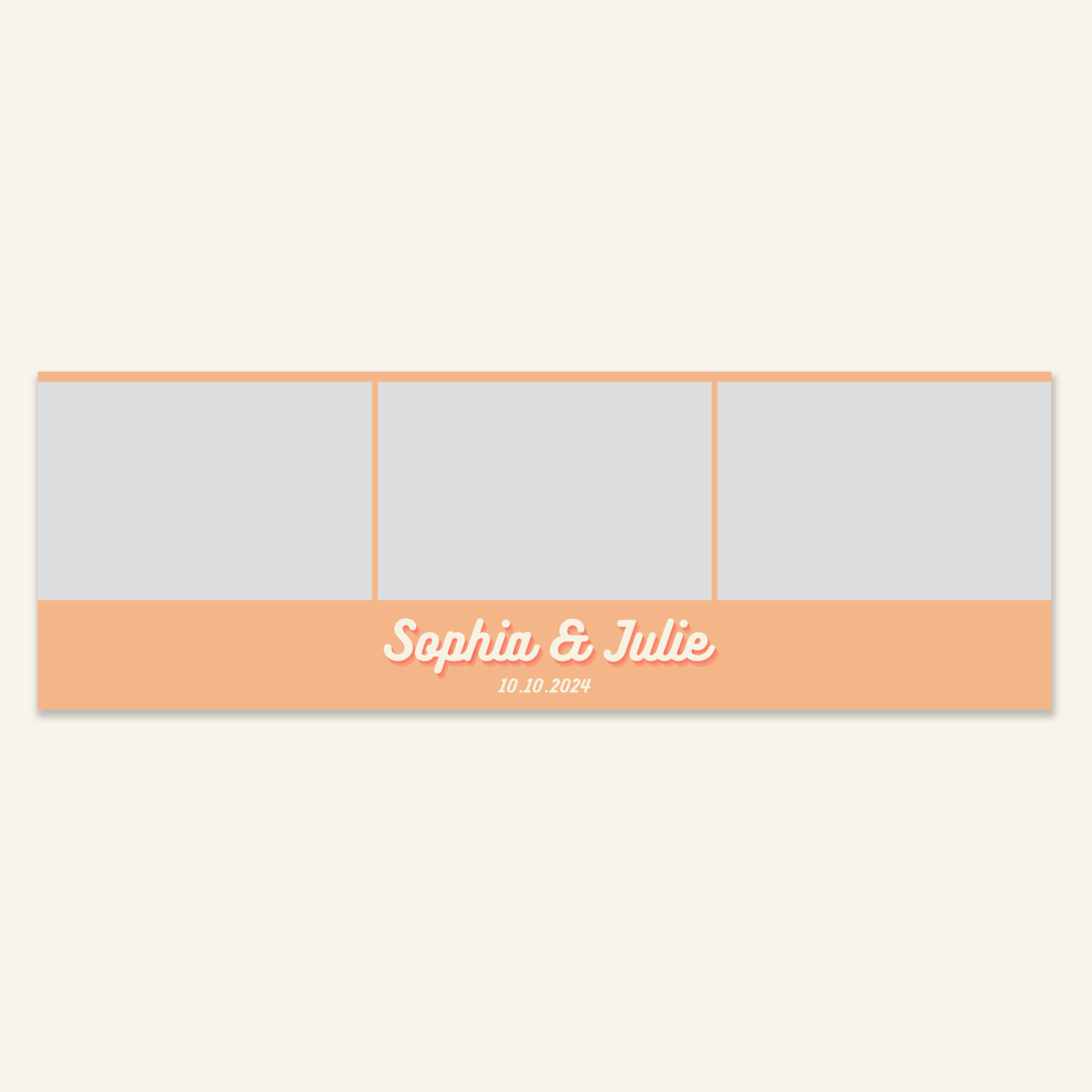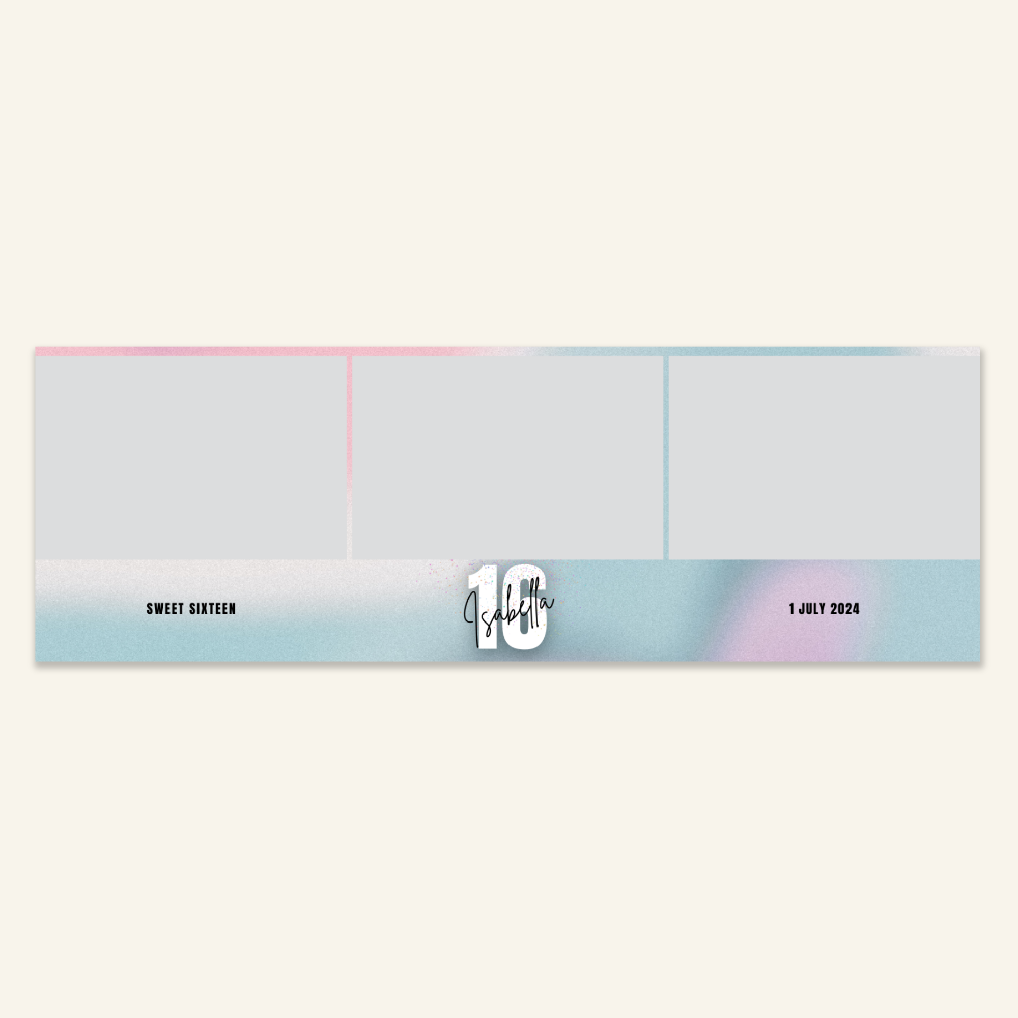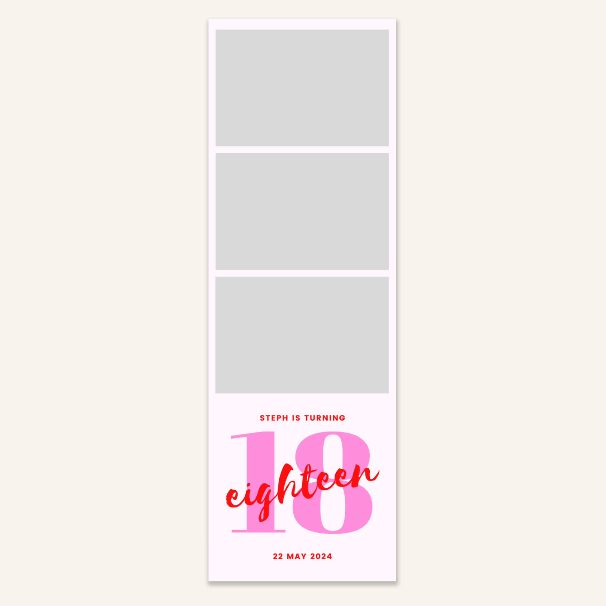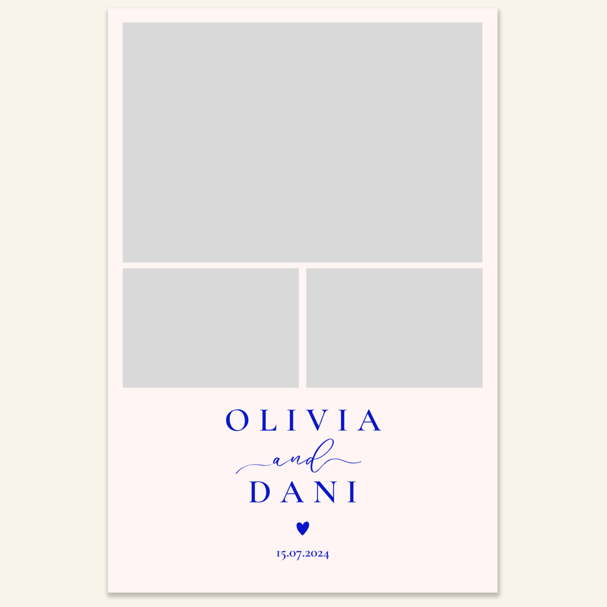 Step 3: Personalise your print template by adding your event name, date, and/or custom message. (eg. Sophia & Lucas / 12 April 2024 / Thanks for joining us!)