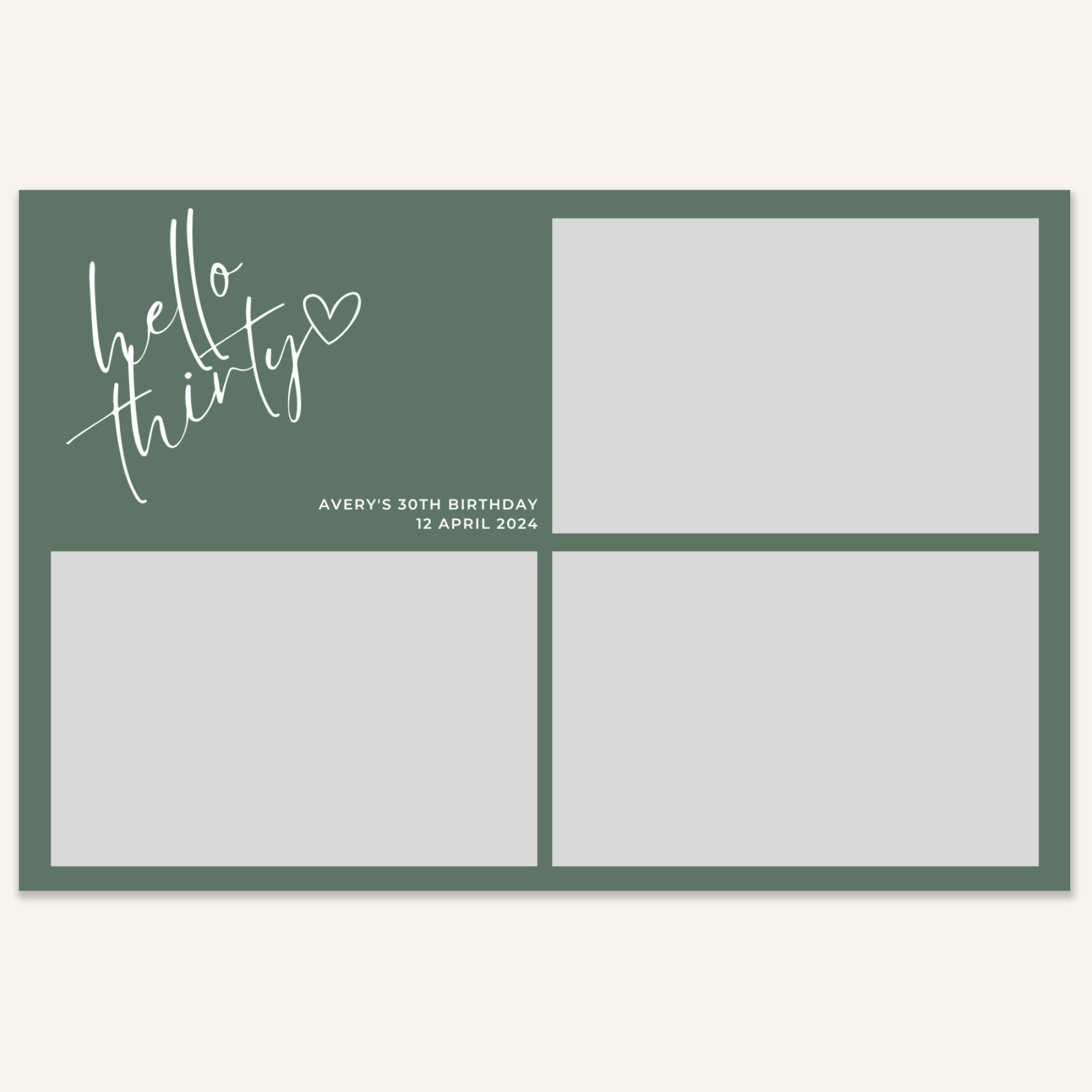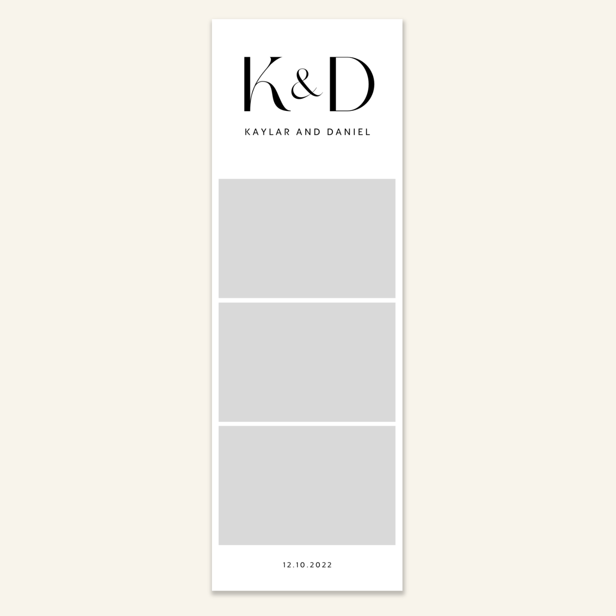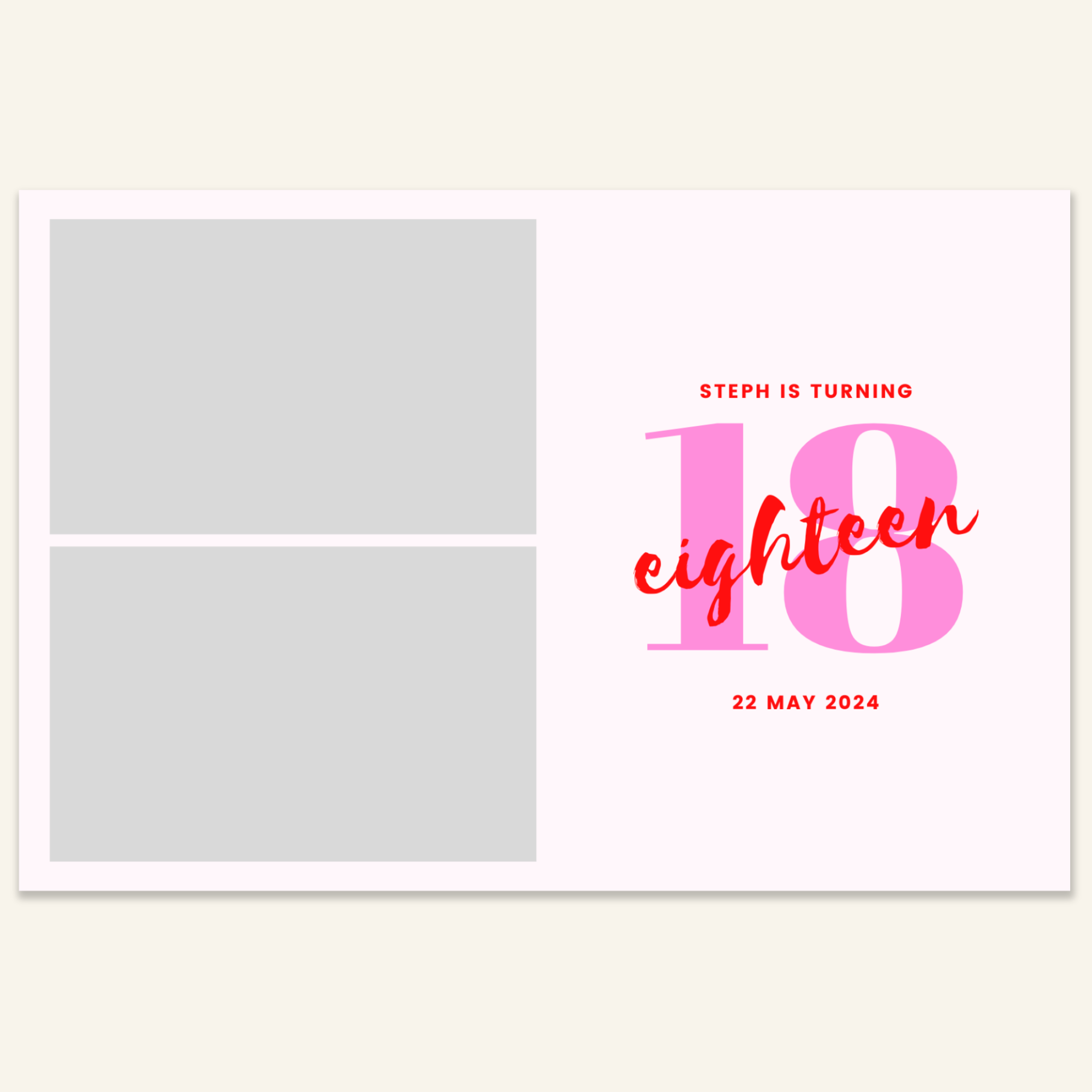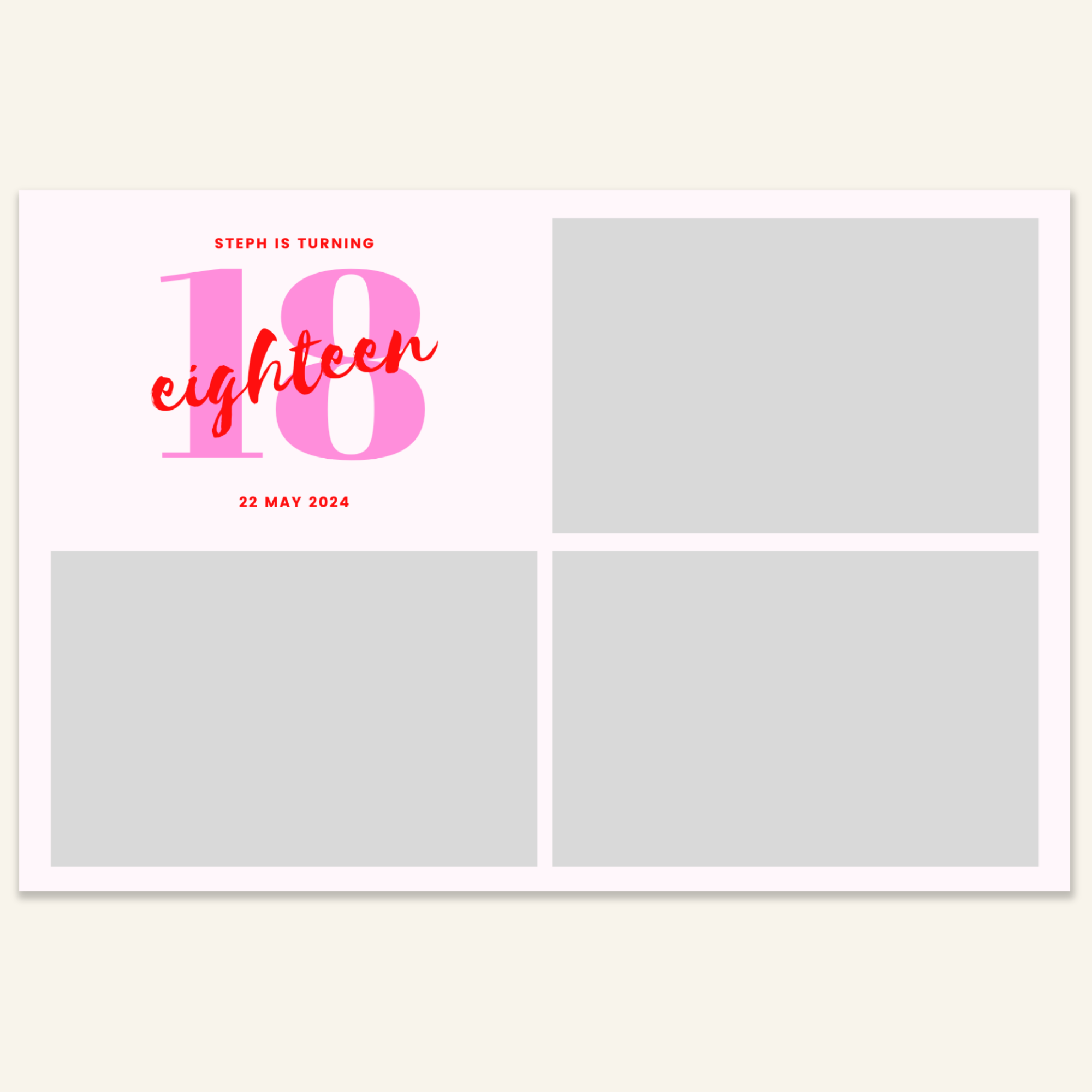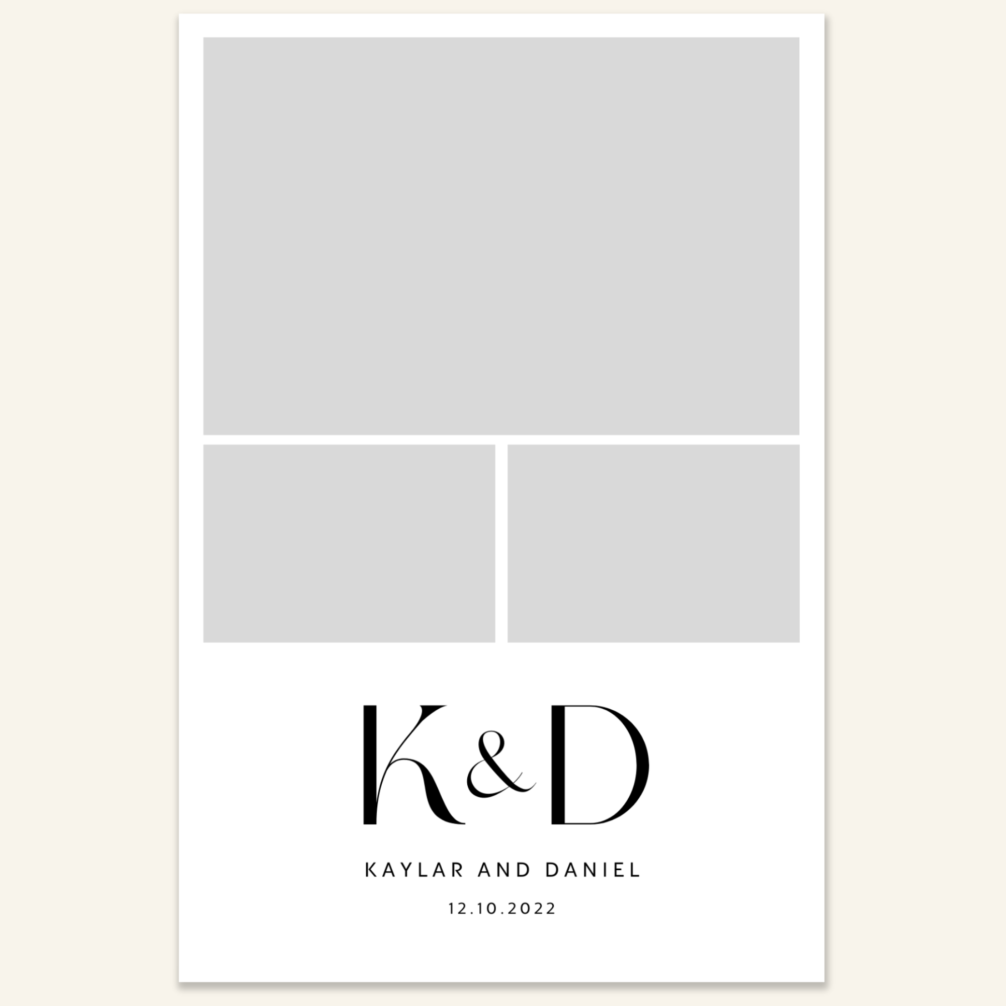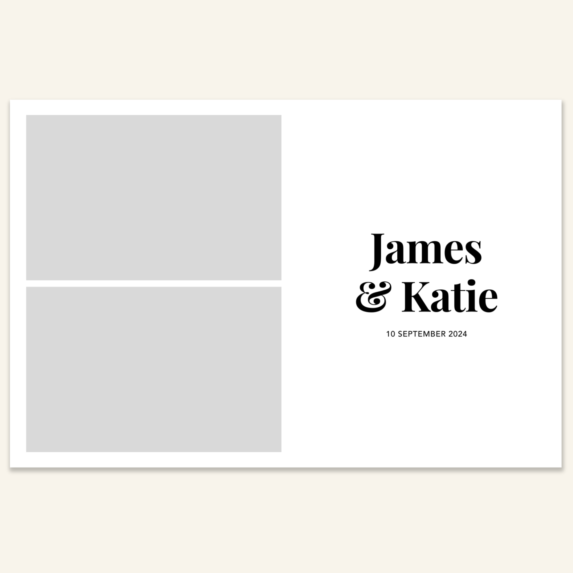 Step 3: Personalise your print template by adding your event name, date, and/or custom message. (eg. Sophia & Lucas / 12 April 2024 / Thanks for joining us!)
