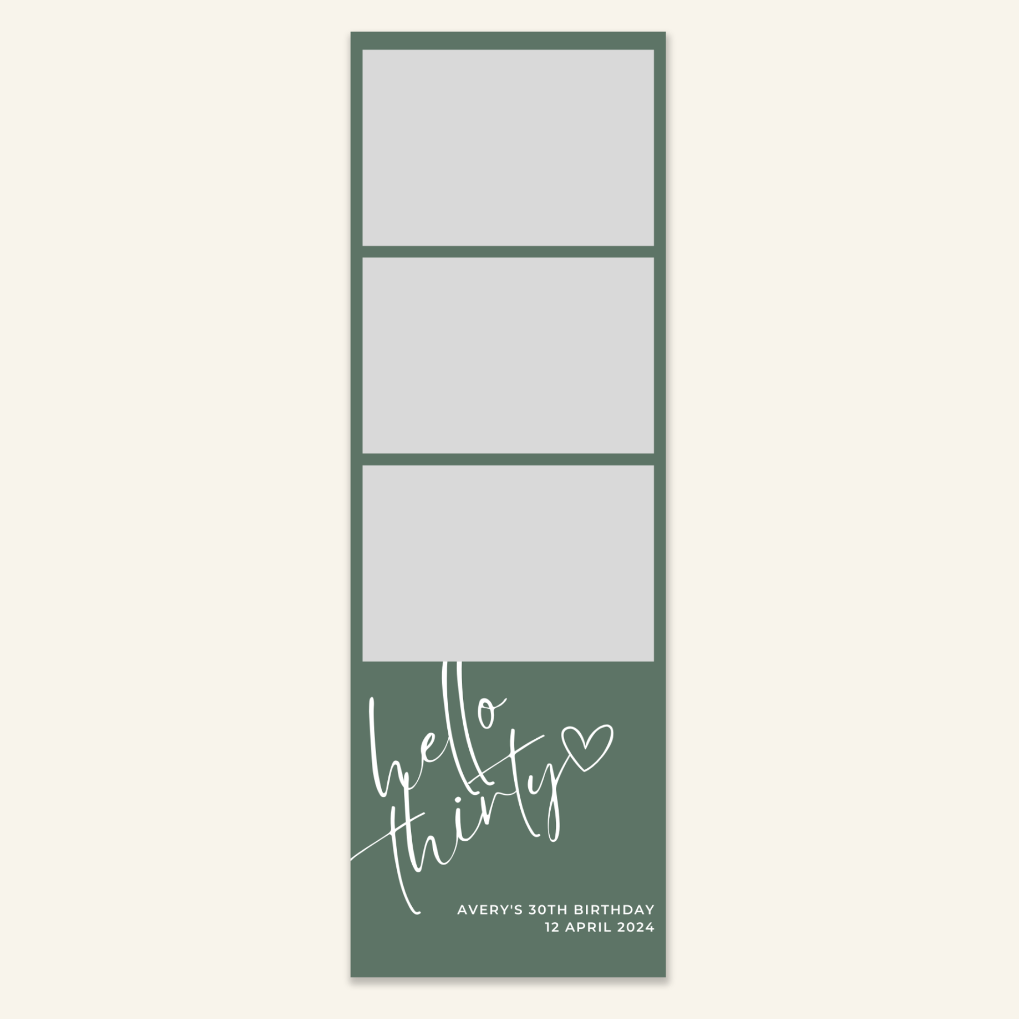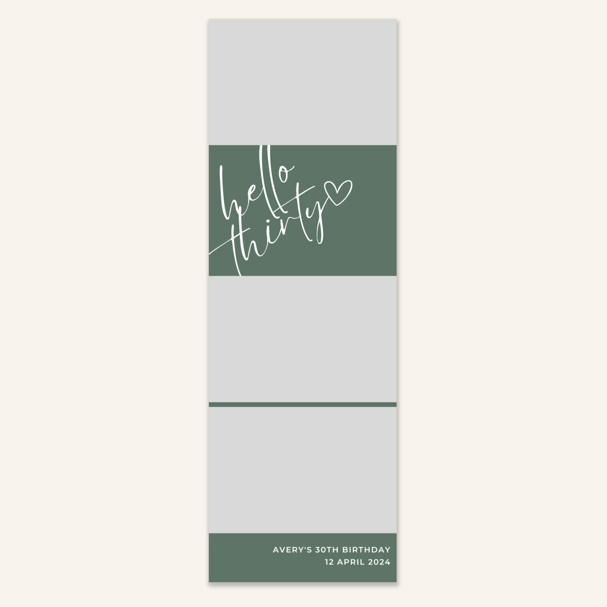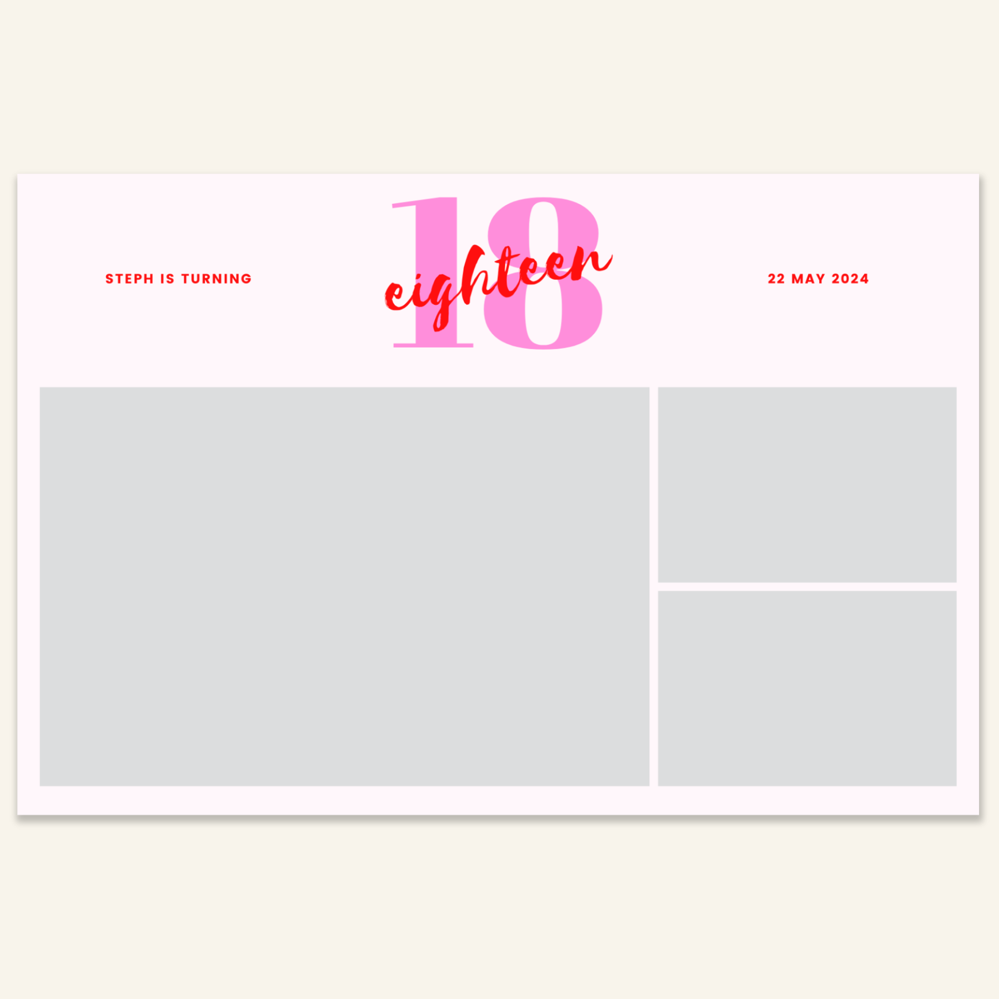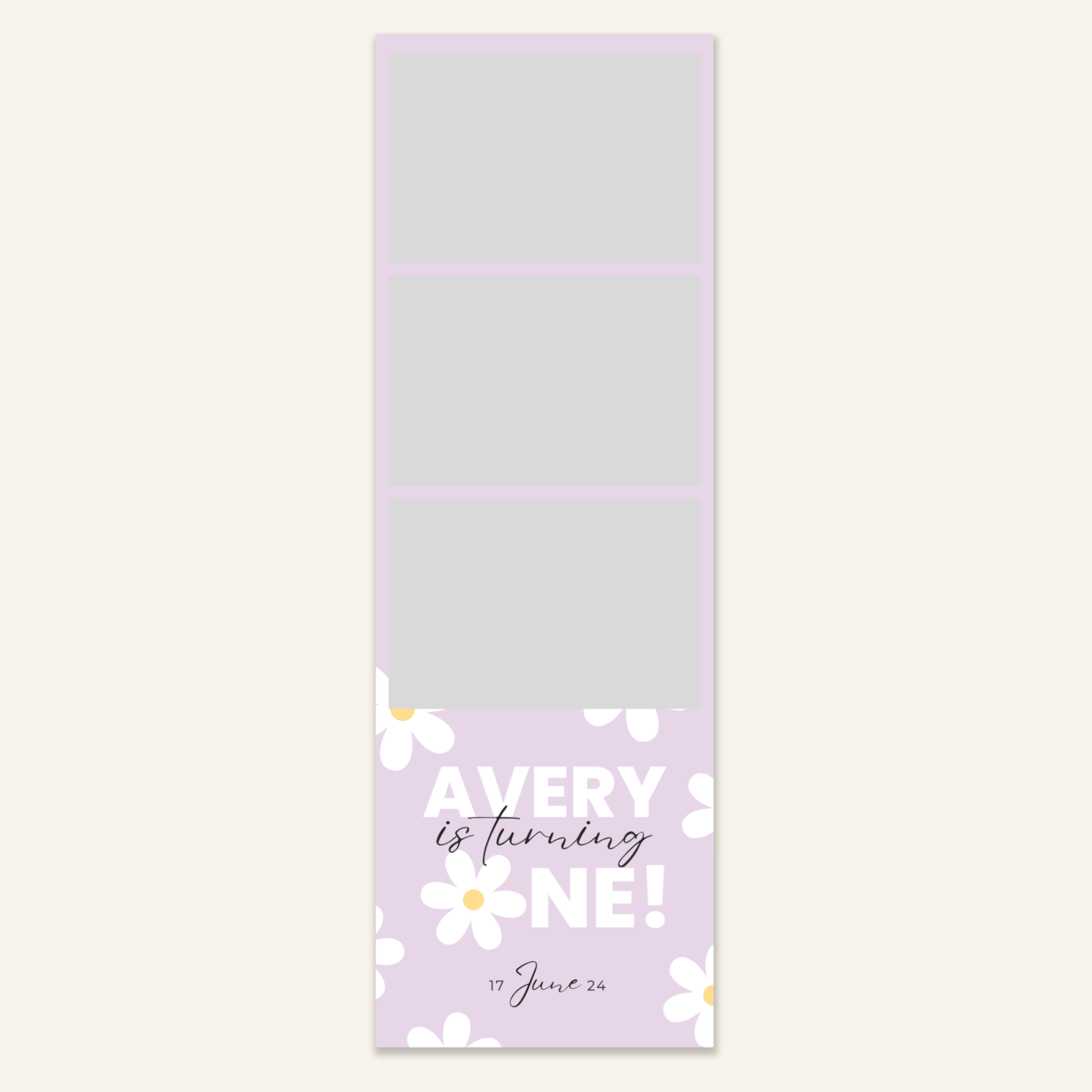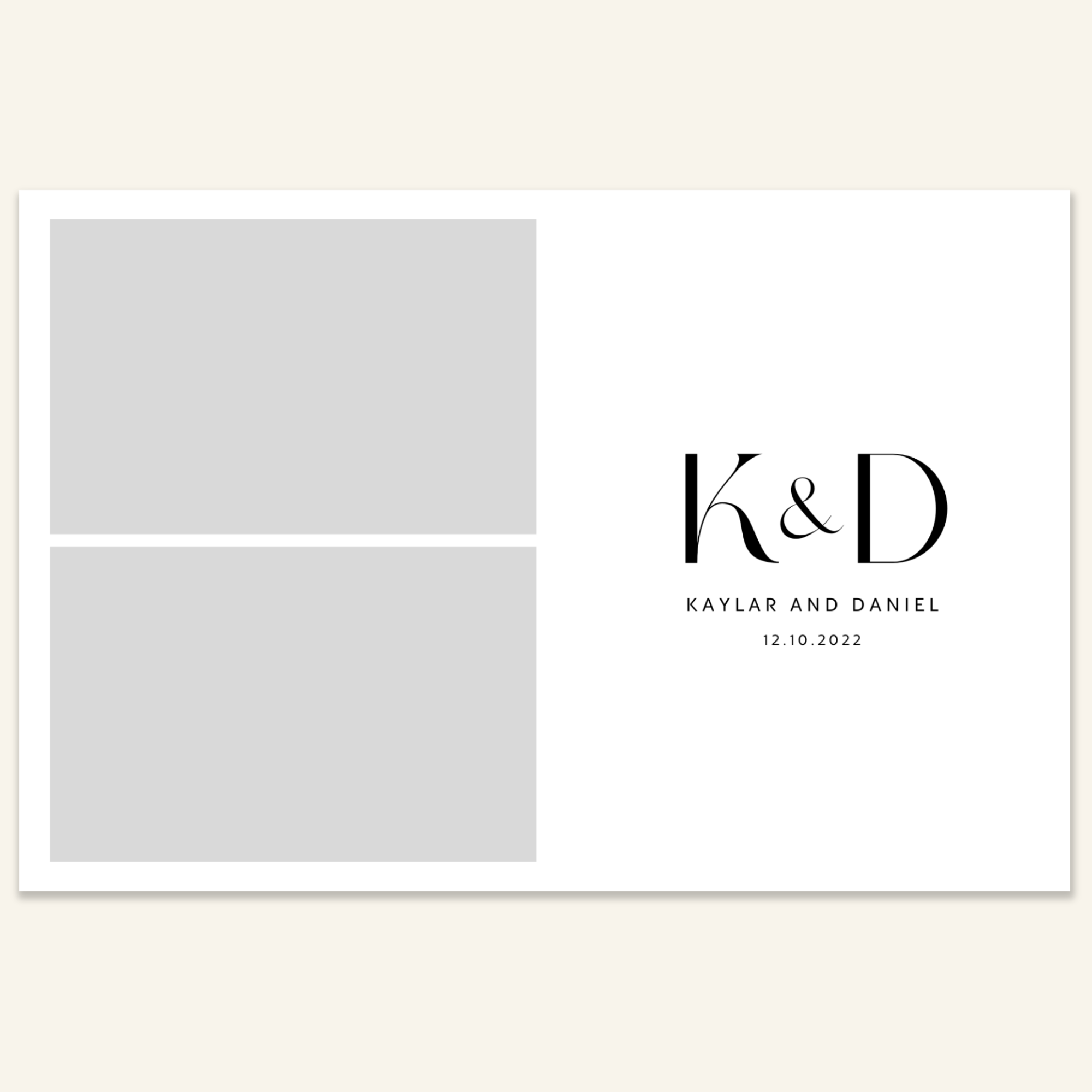 Step 3: Personalise your print template by adding your event name, date, and/or custom message. (eg. Sophia & Lucas / 12 April 2024 / Thanks for joining us!)