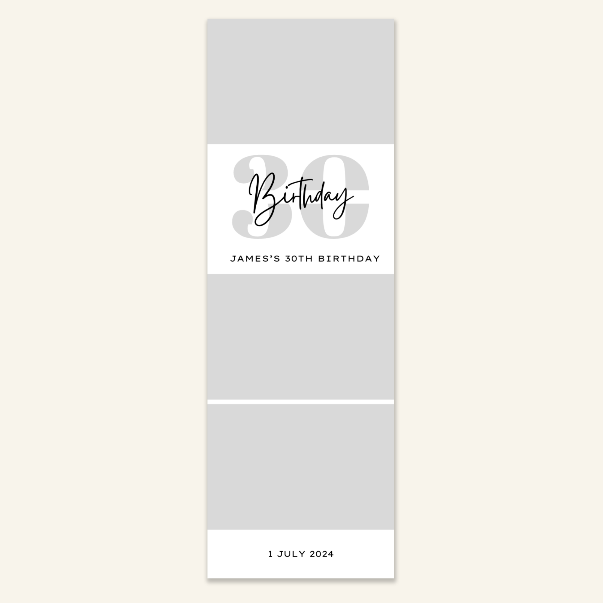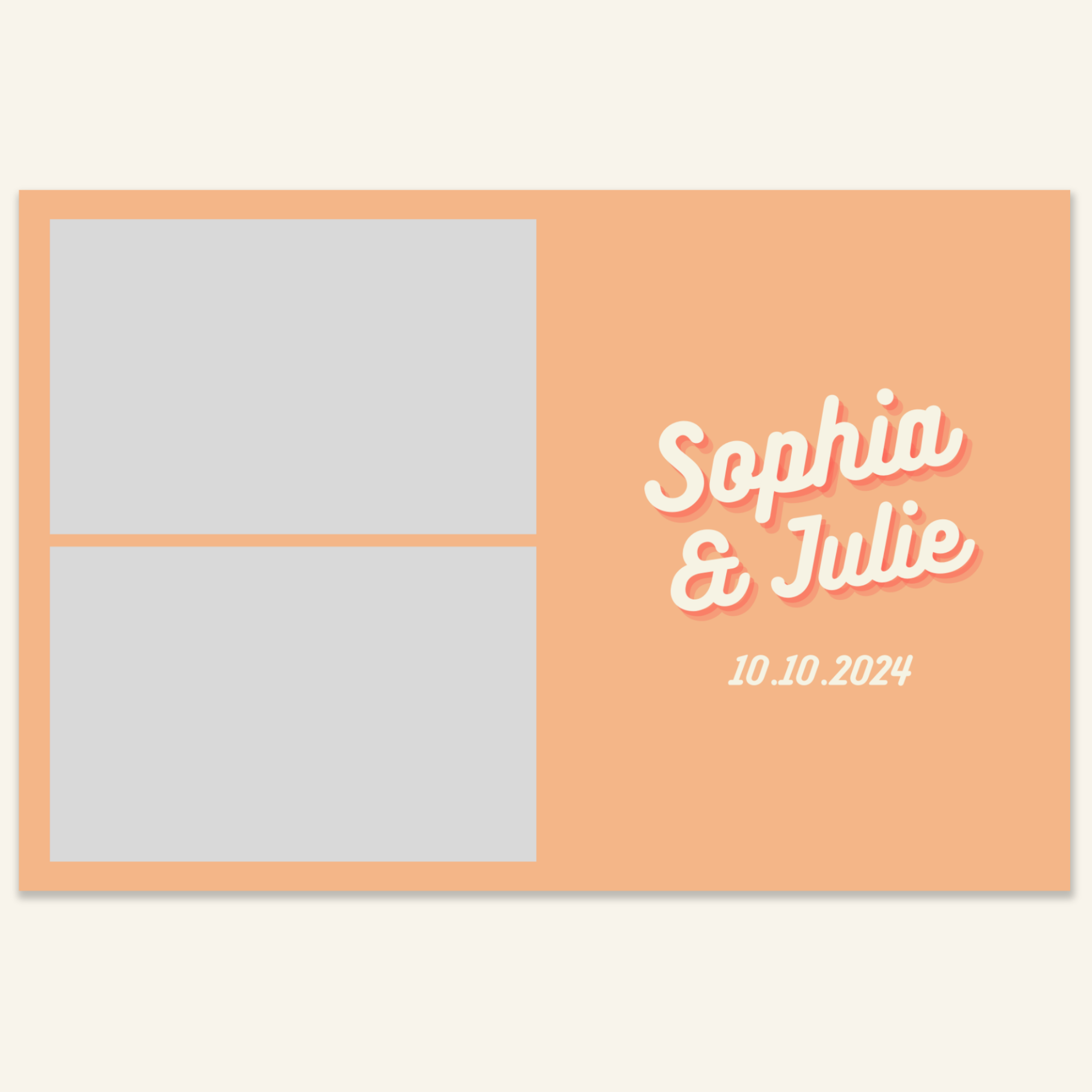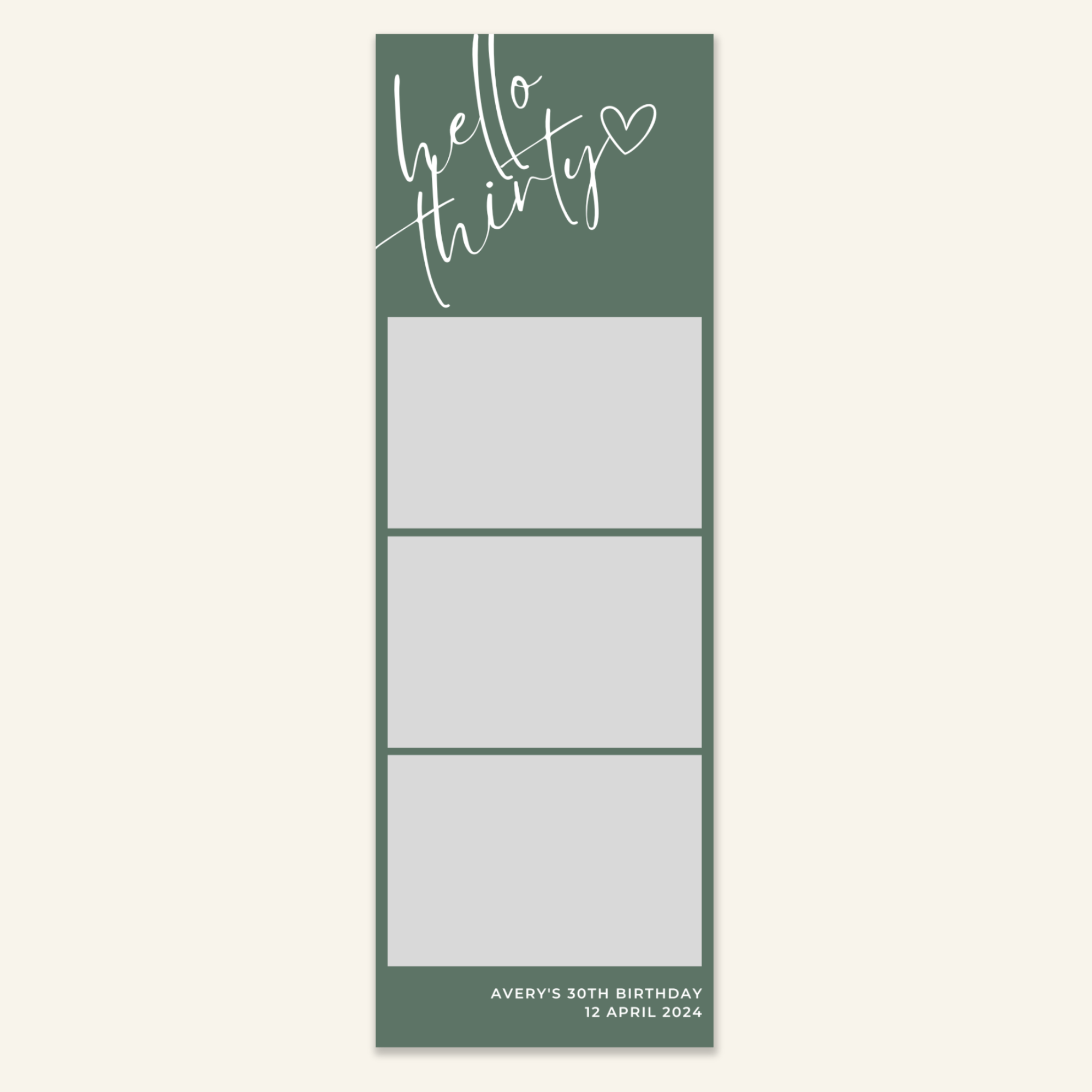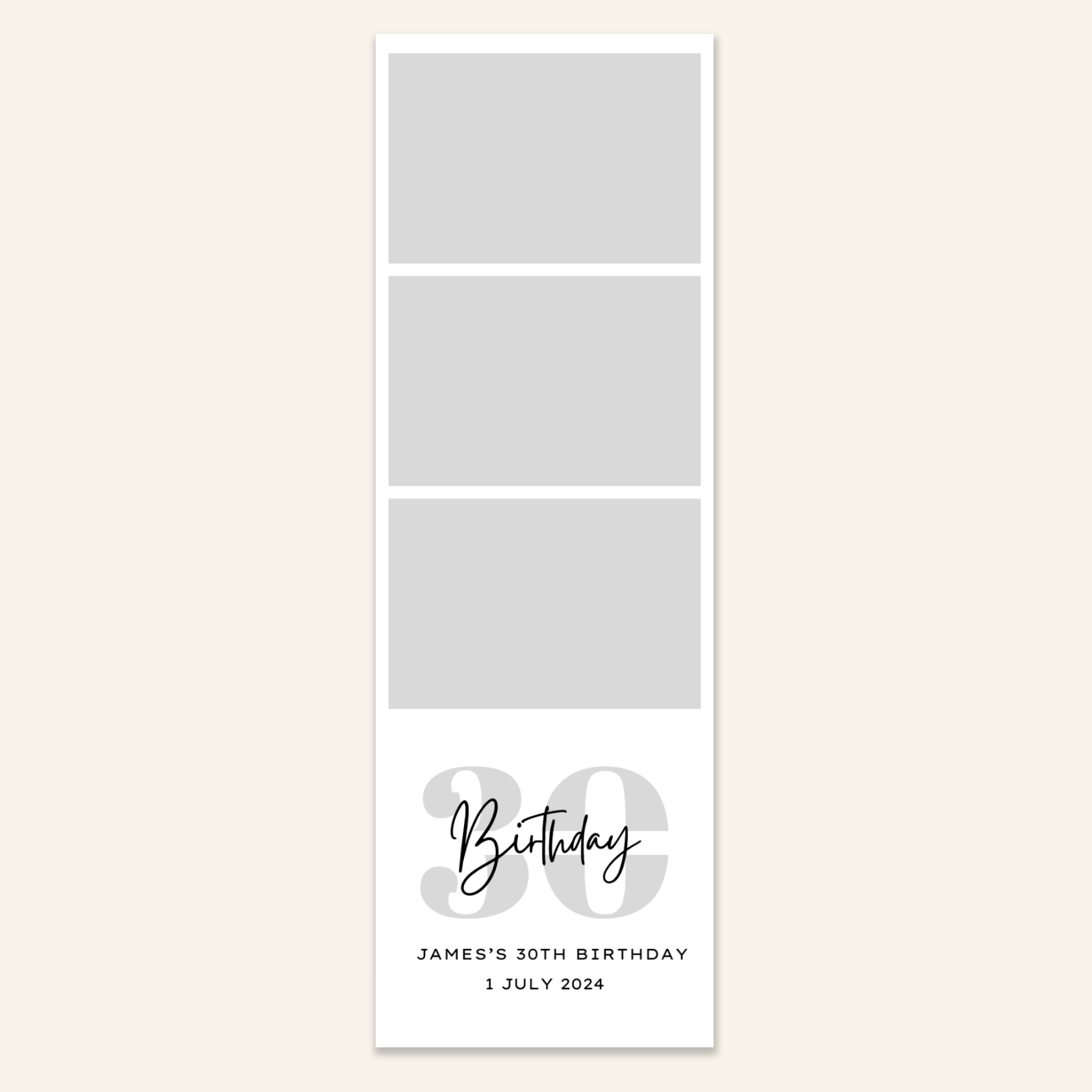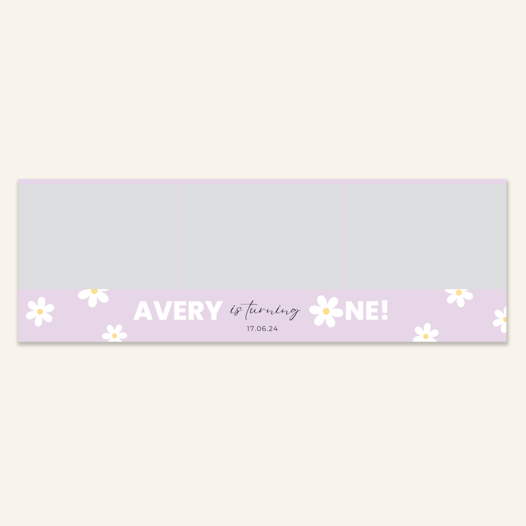 Step 3: Personalise your print template by adding your event name, date, and/or custom message. (eg. Sophia & Lucas / 12 April 2024 / Thanks for joining us!)