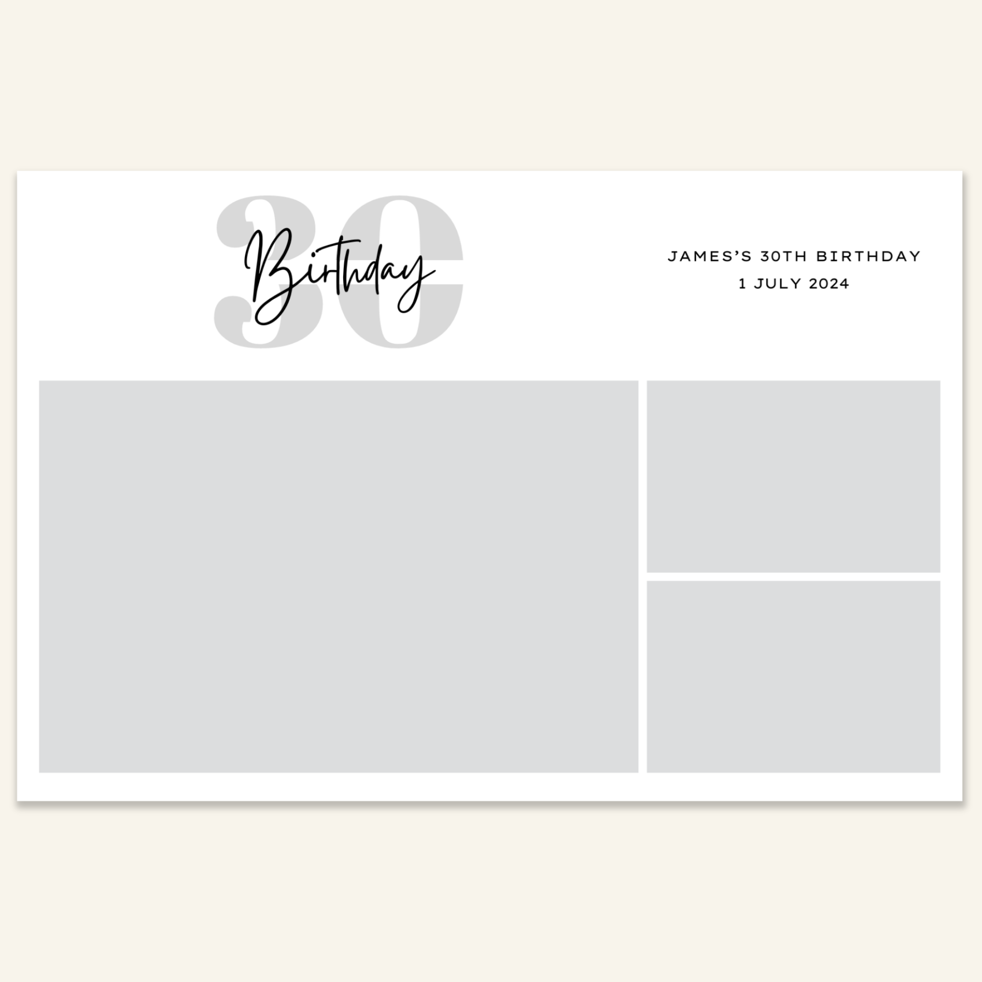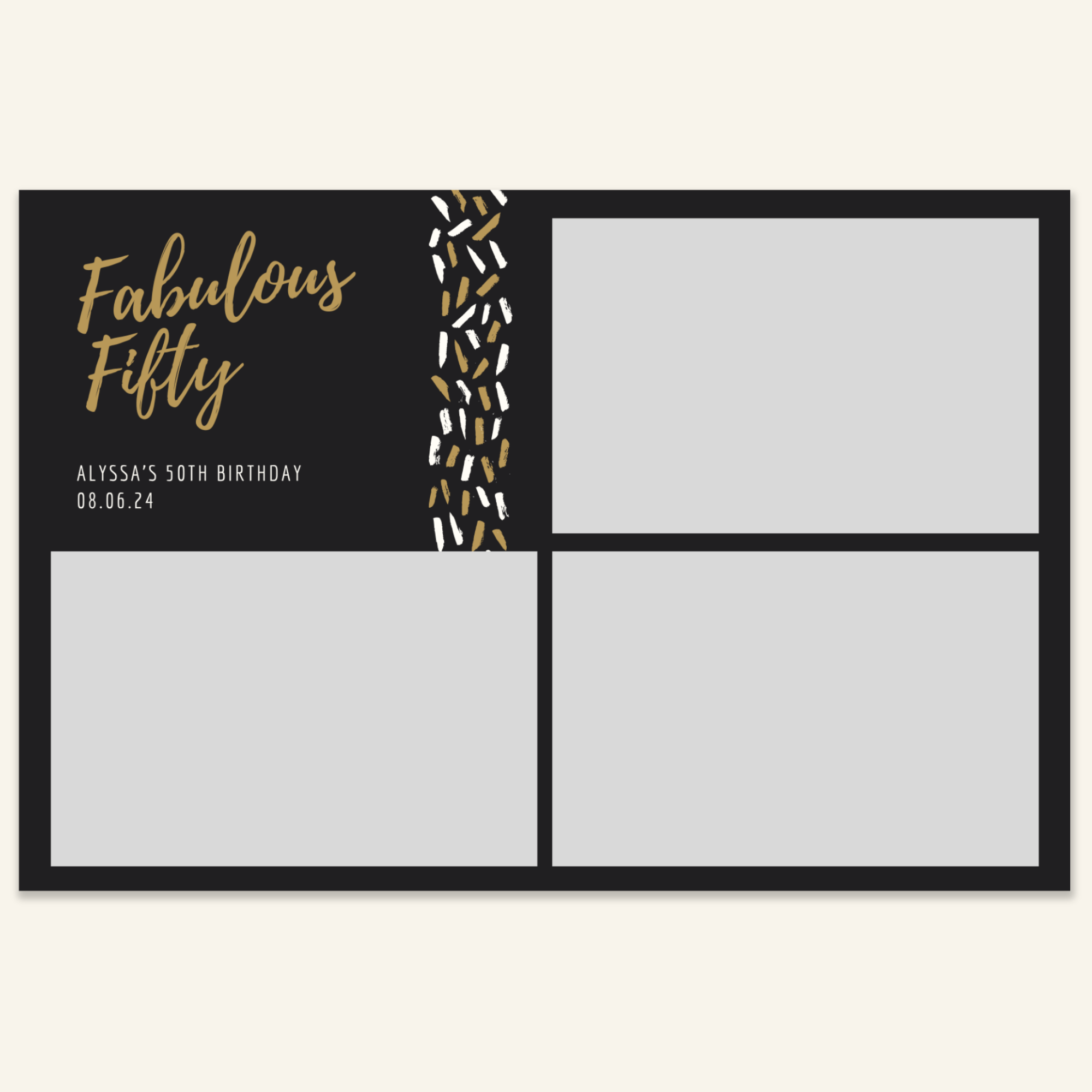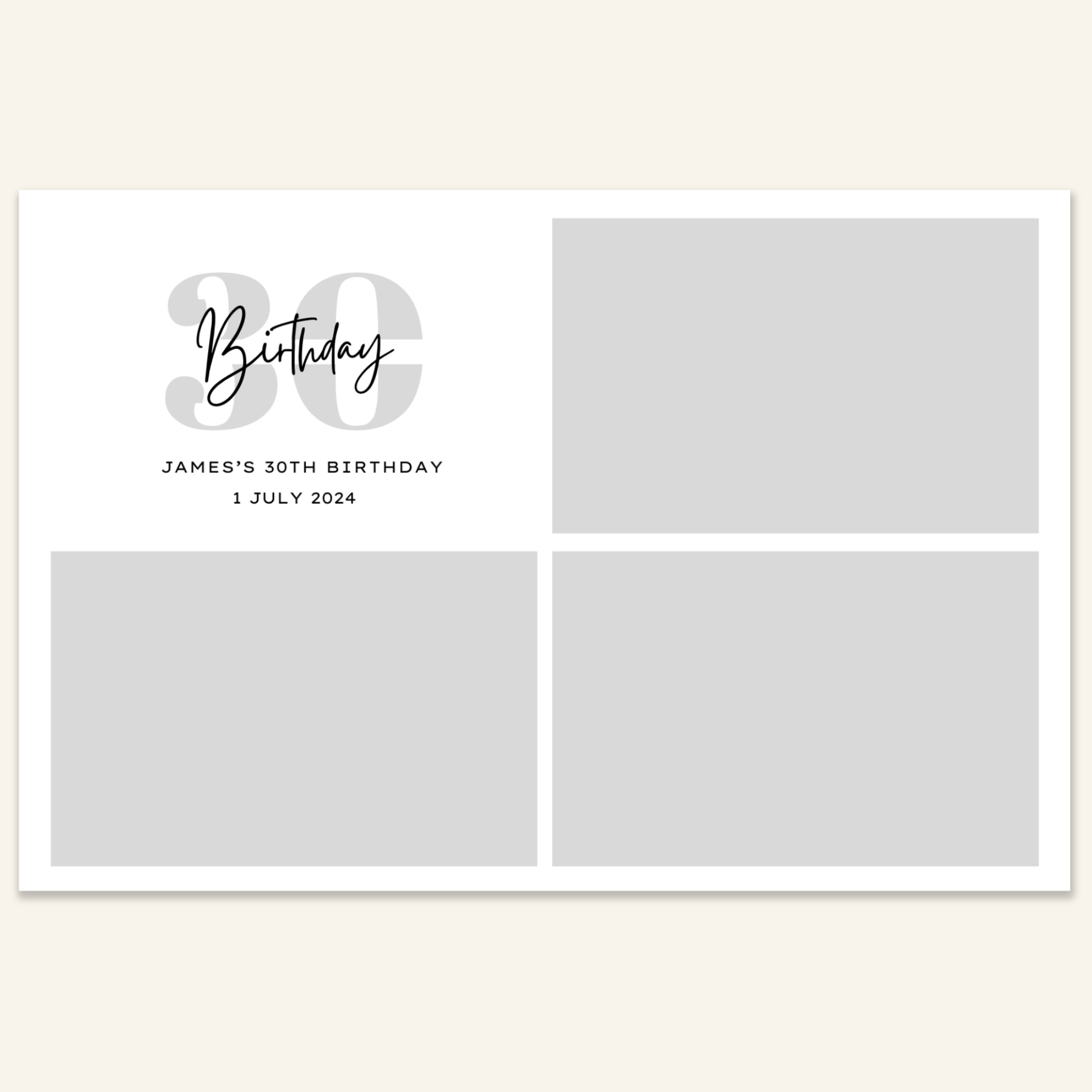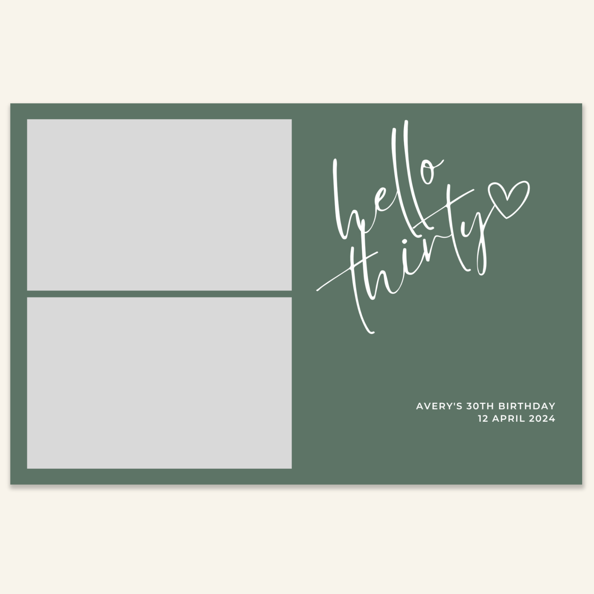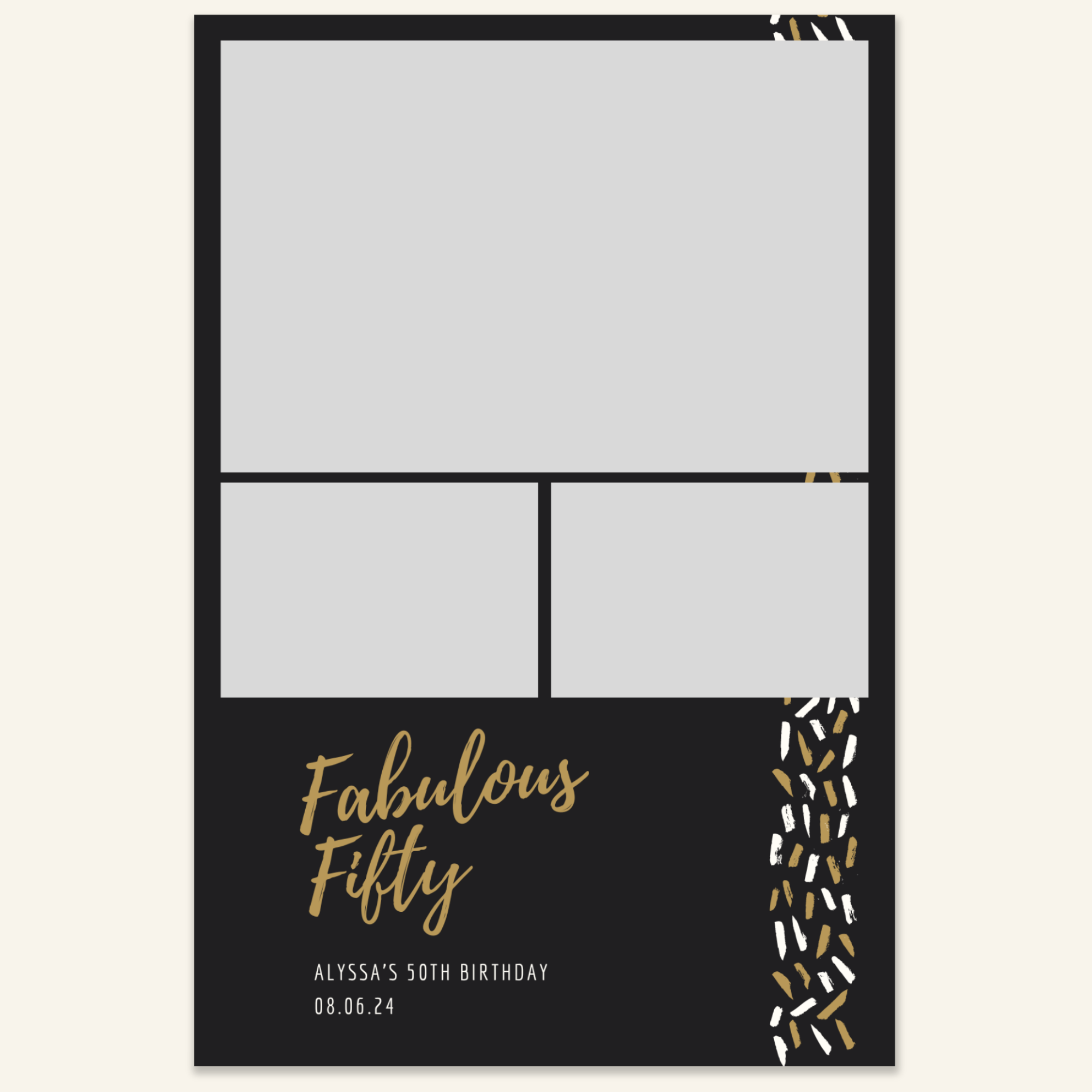Step 3: Personalise your print template by adding your event name, date, and/or custom message. (eg. Sophia & Lucas / 12 April 2024 / Thanks for joining us!)