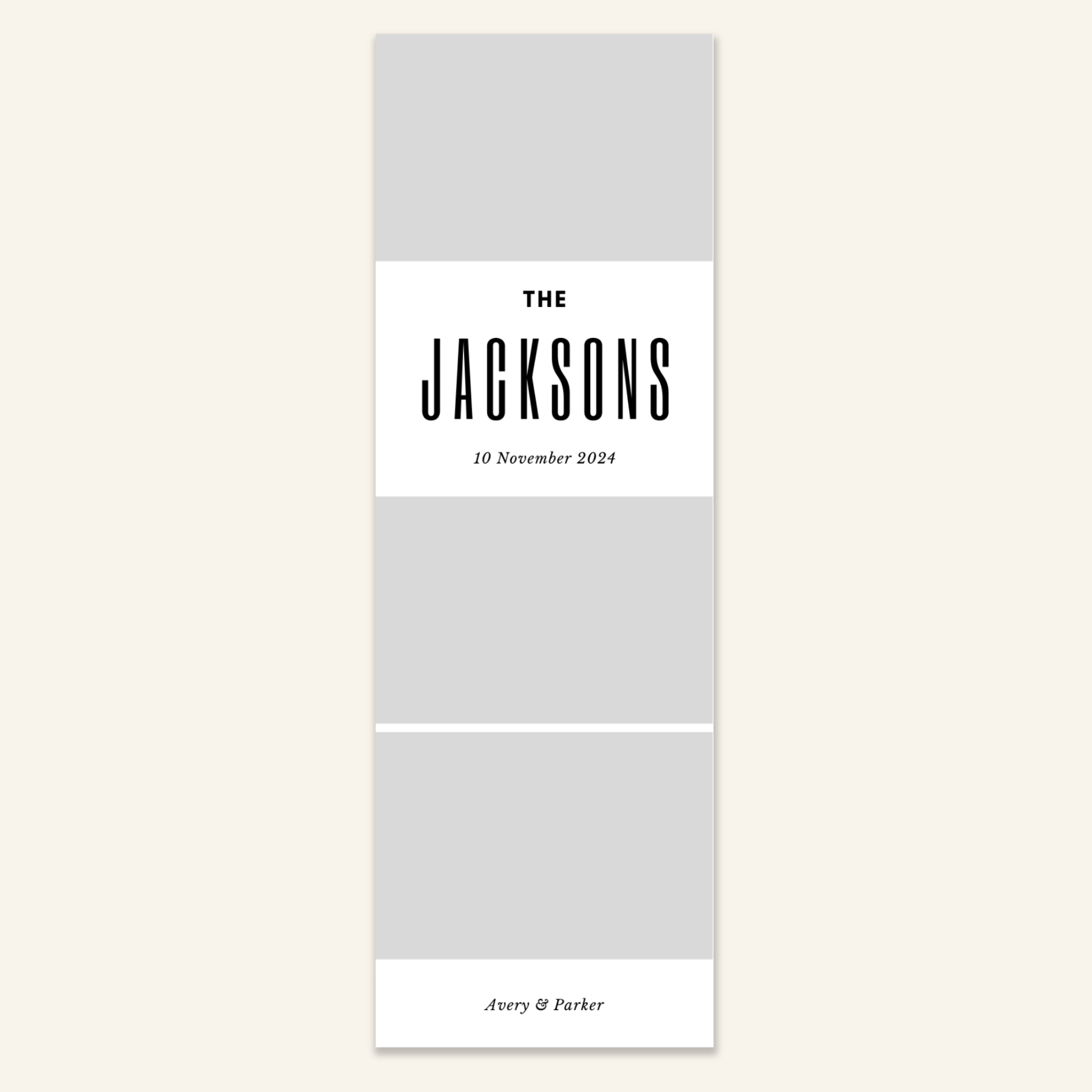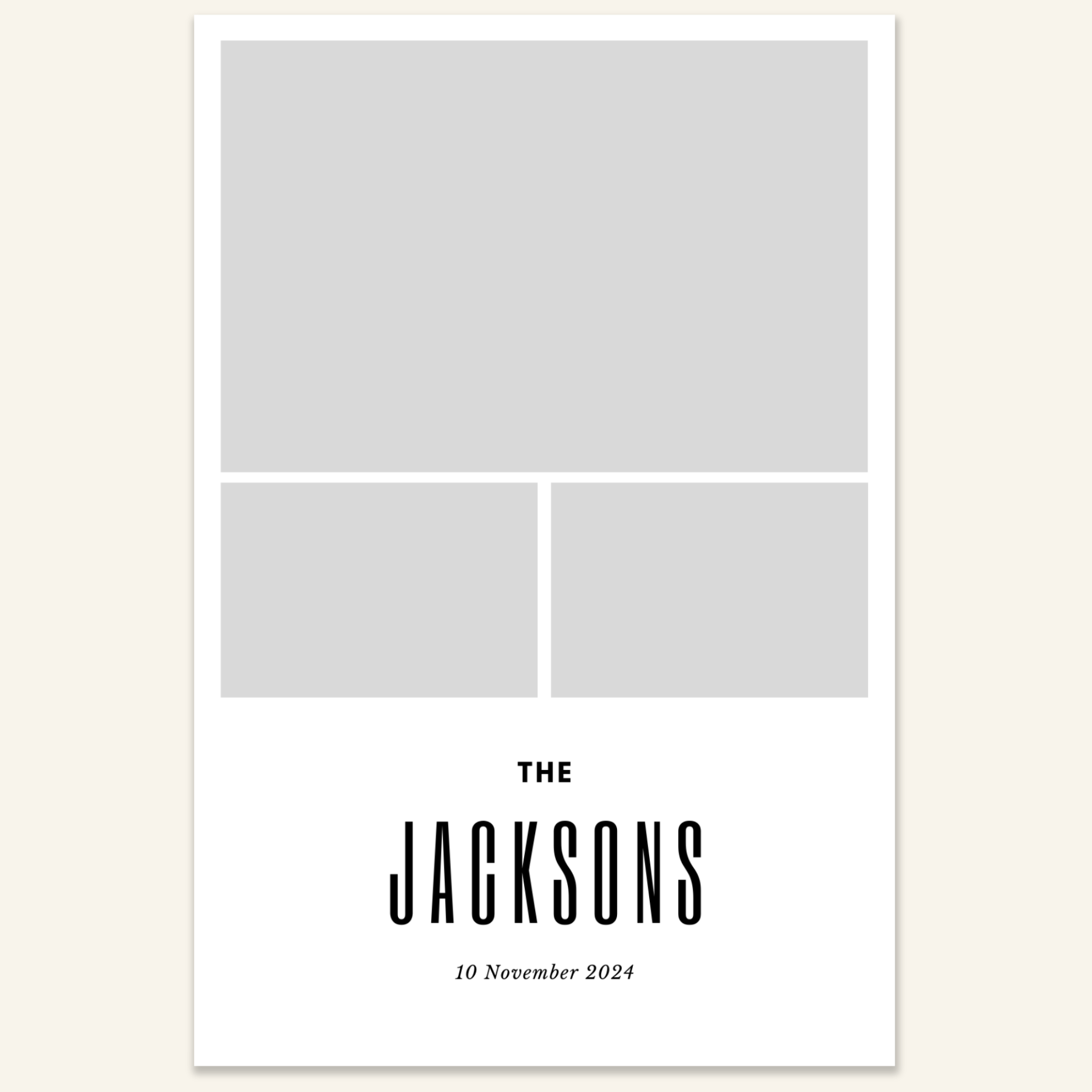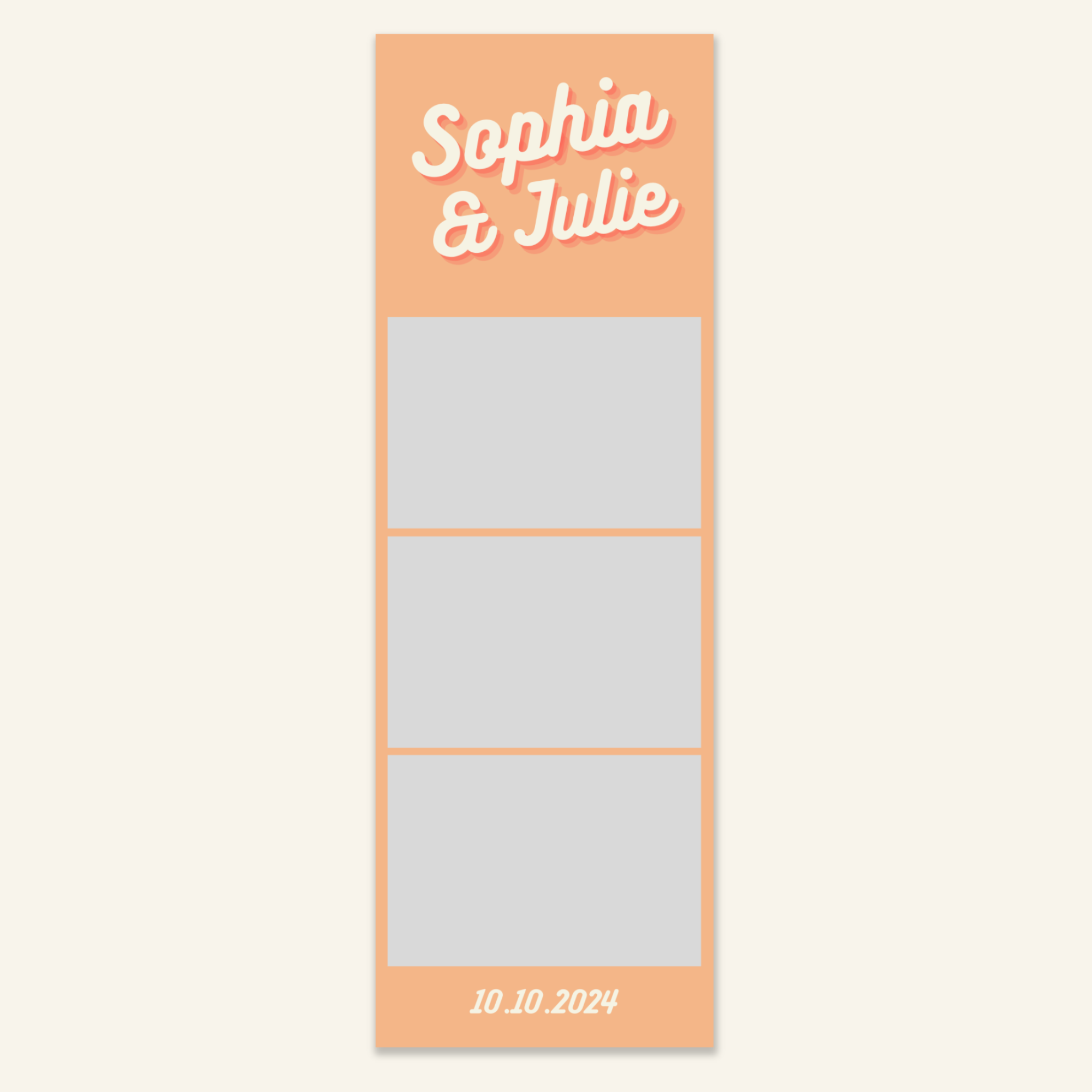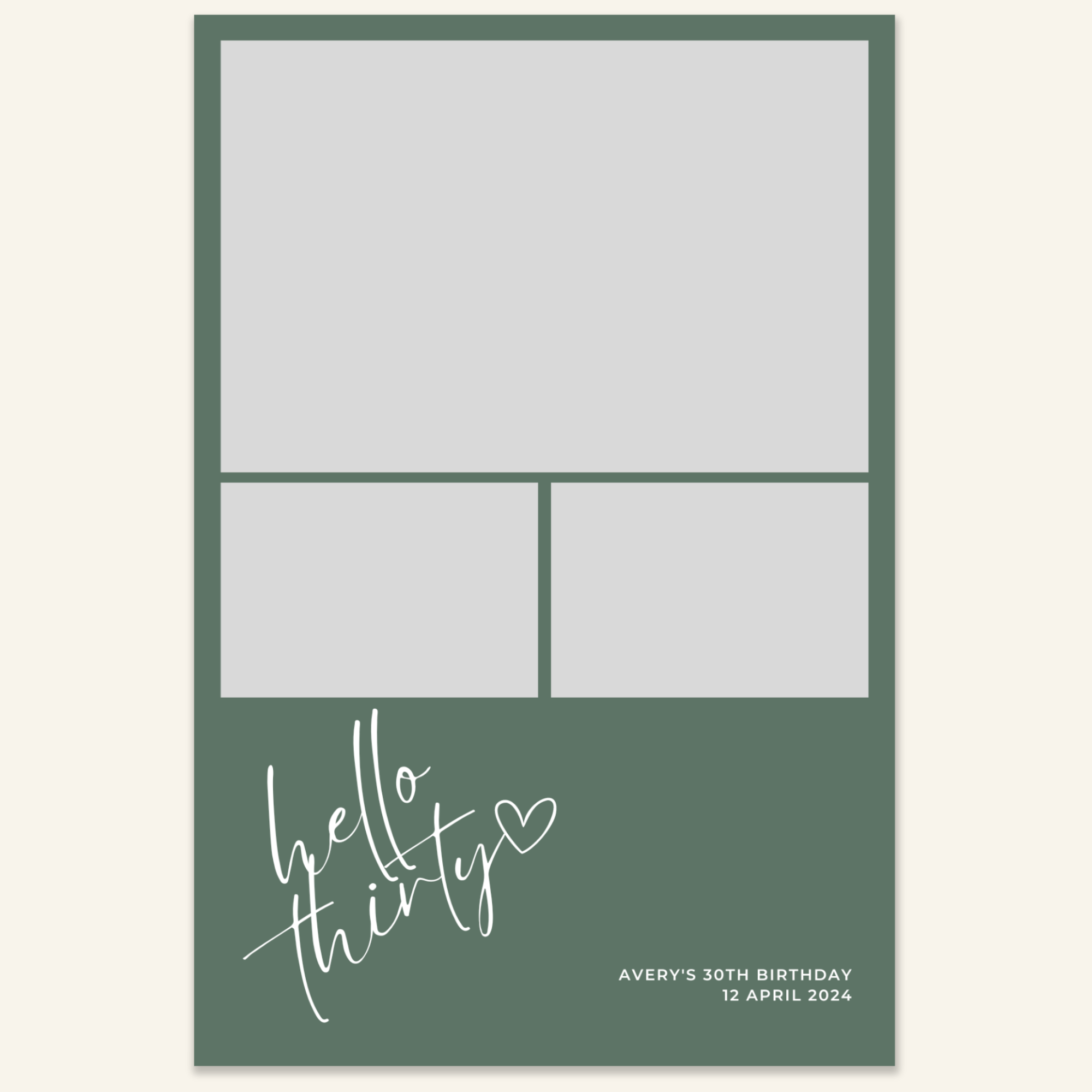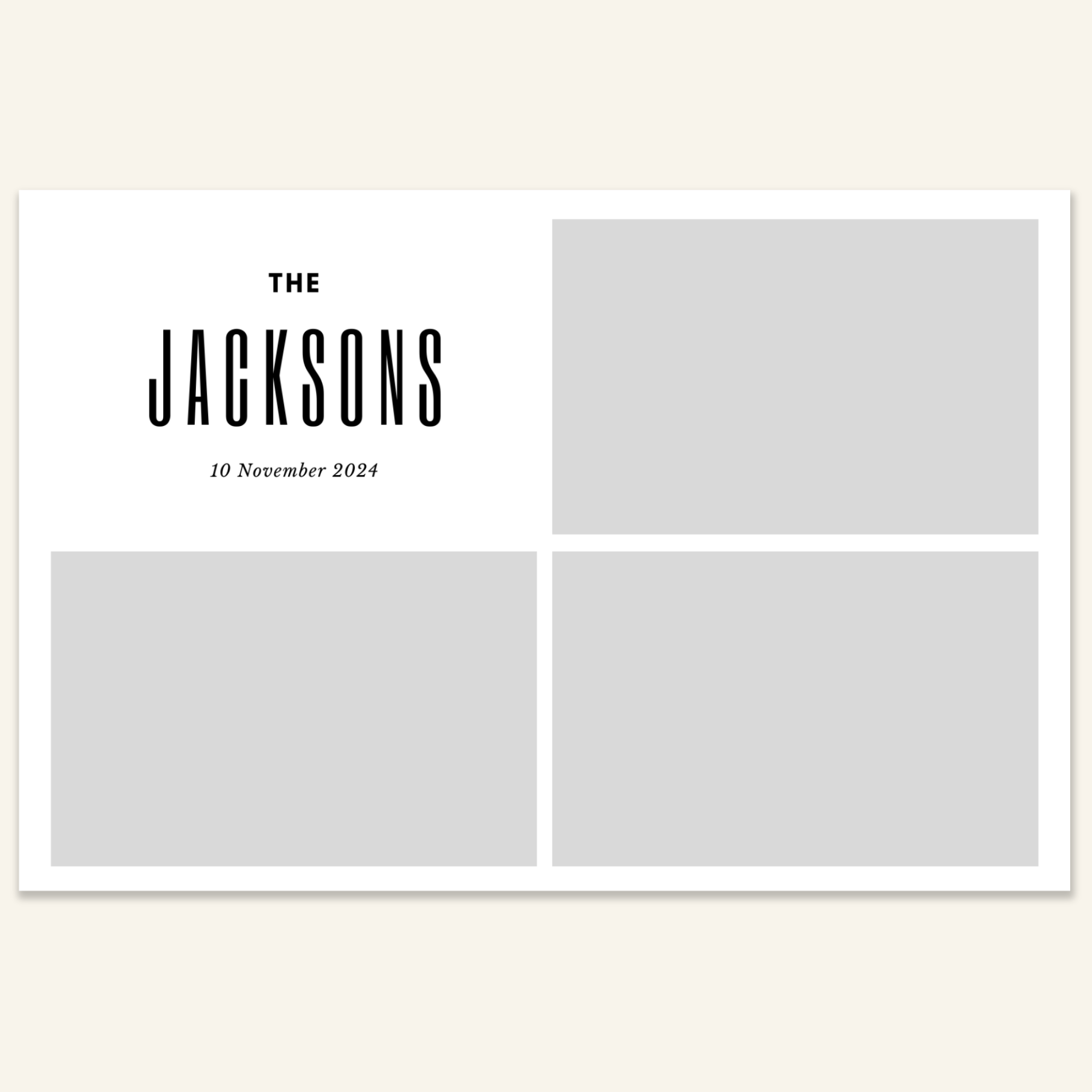 Step 3: Personalise your print template by adding your event name, date, and/or custom message. (eg. Sophia & Lucas / 12 April 2024 / Thanks for joining us!)