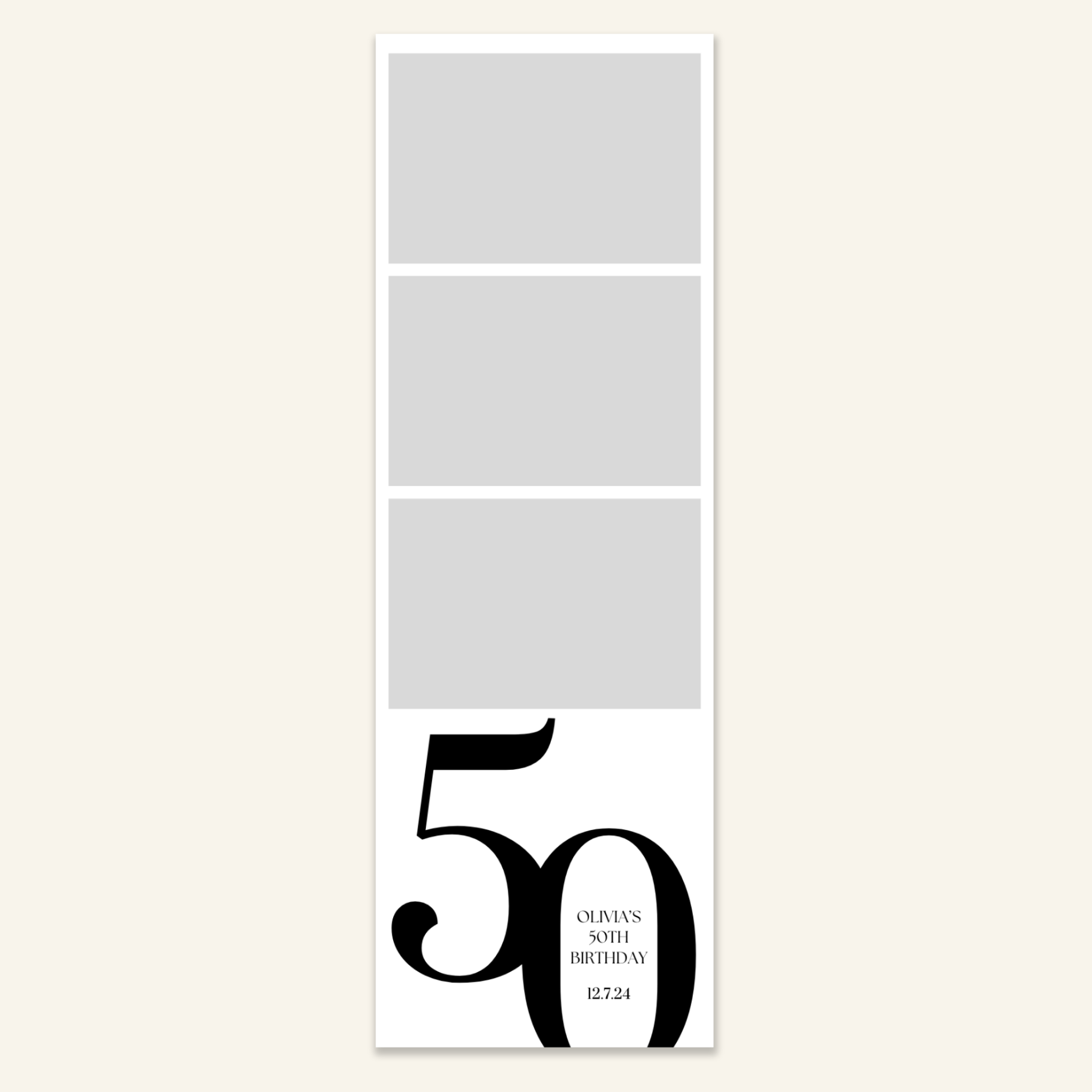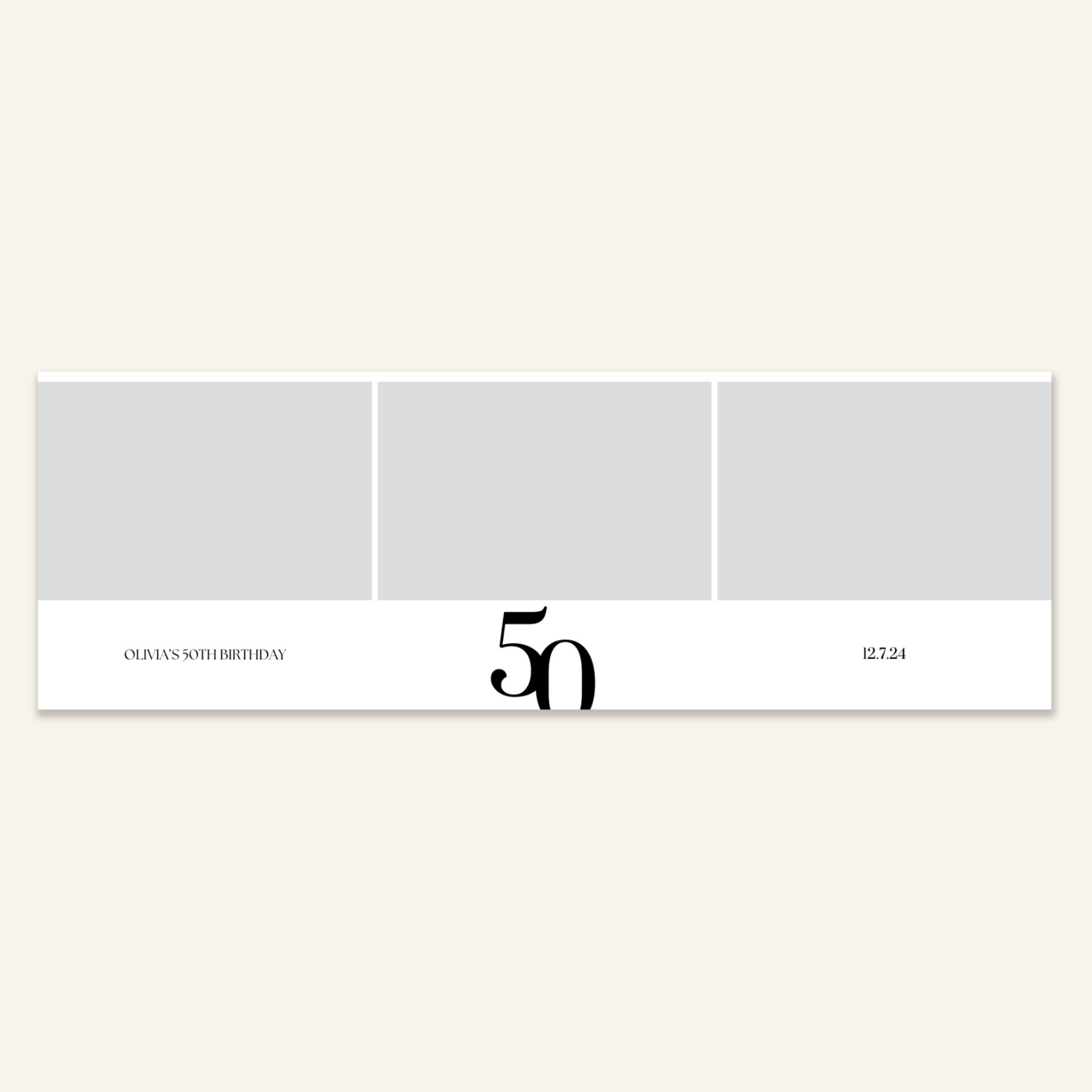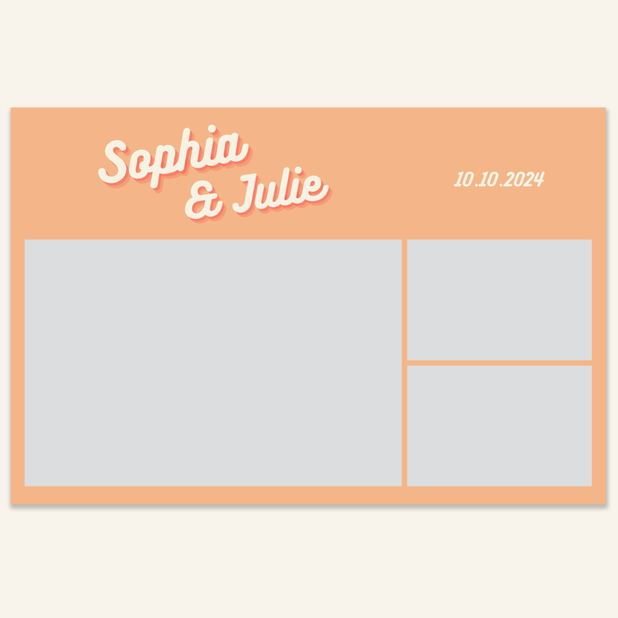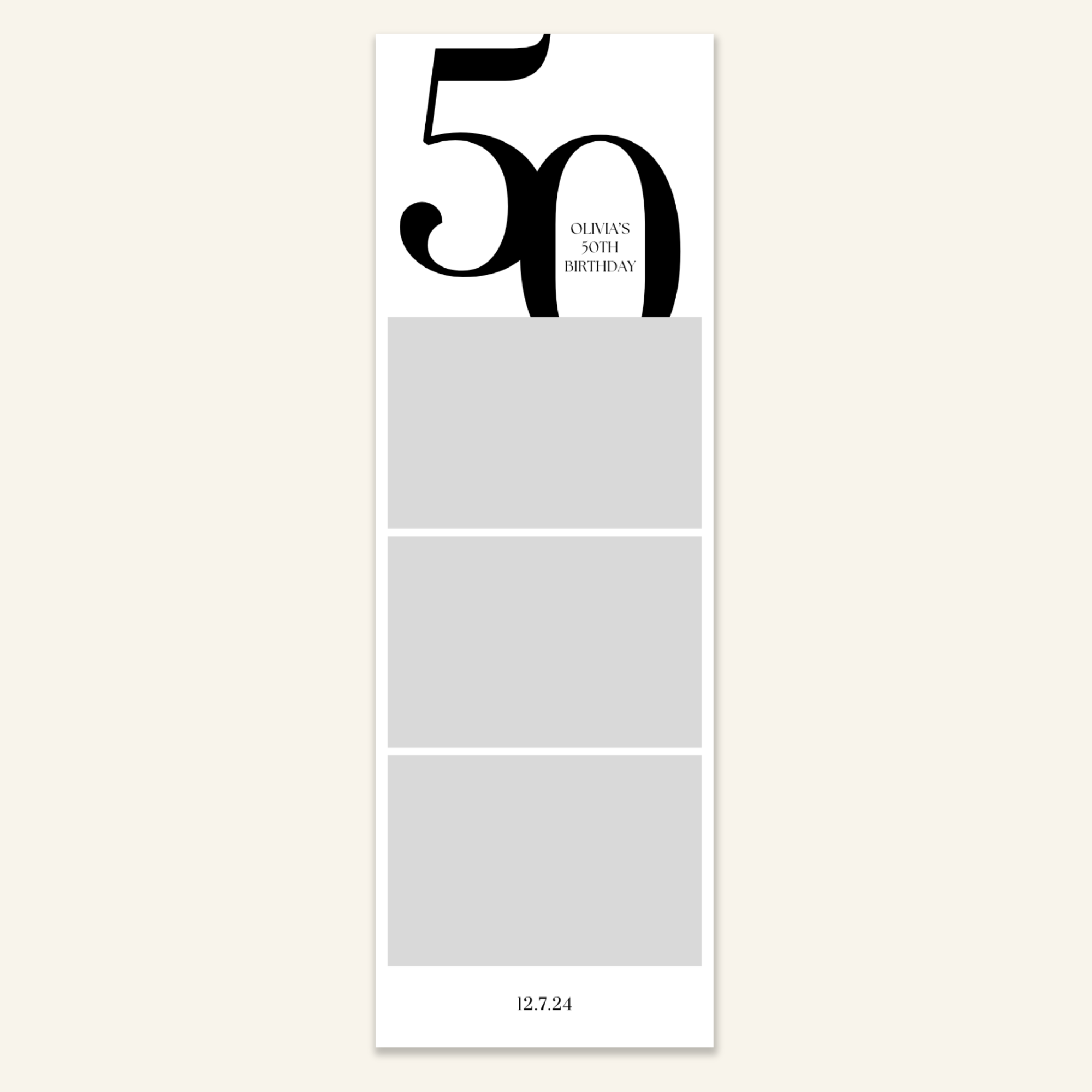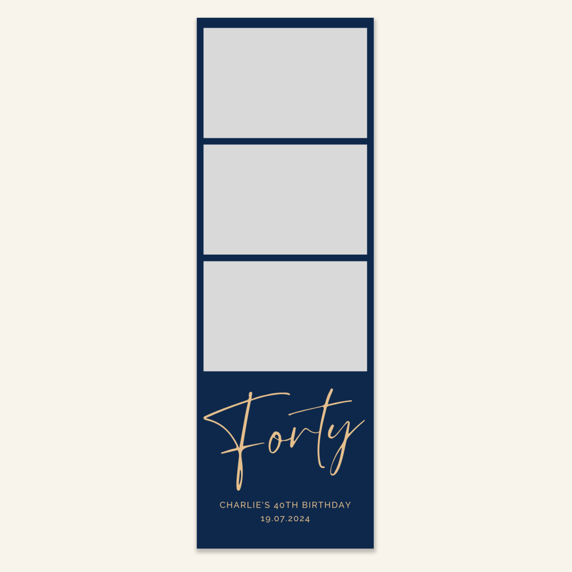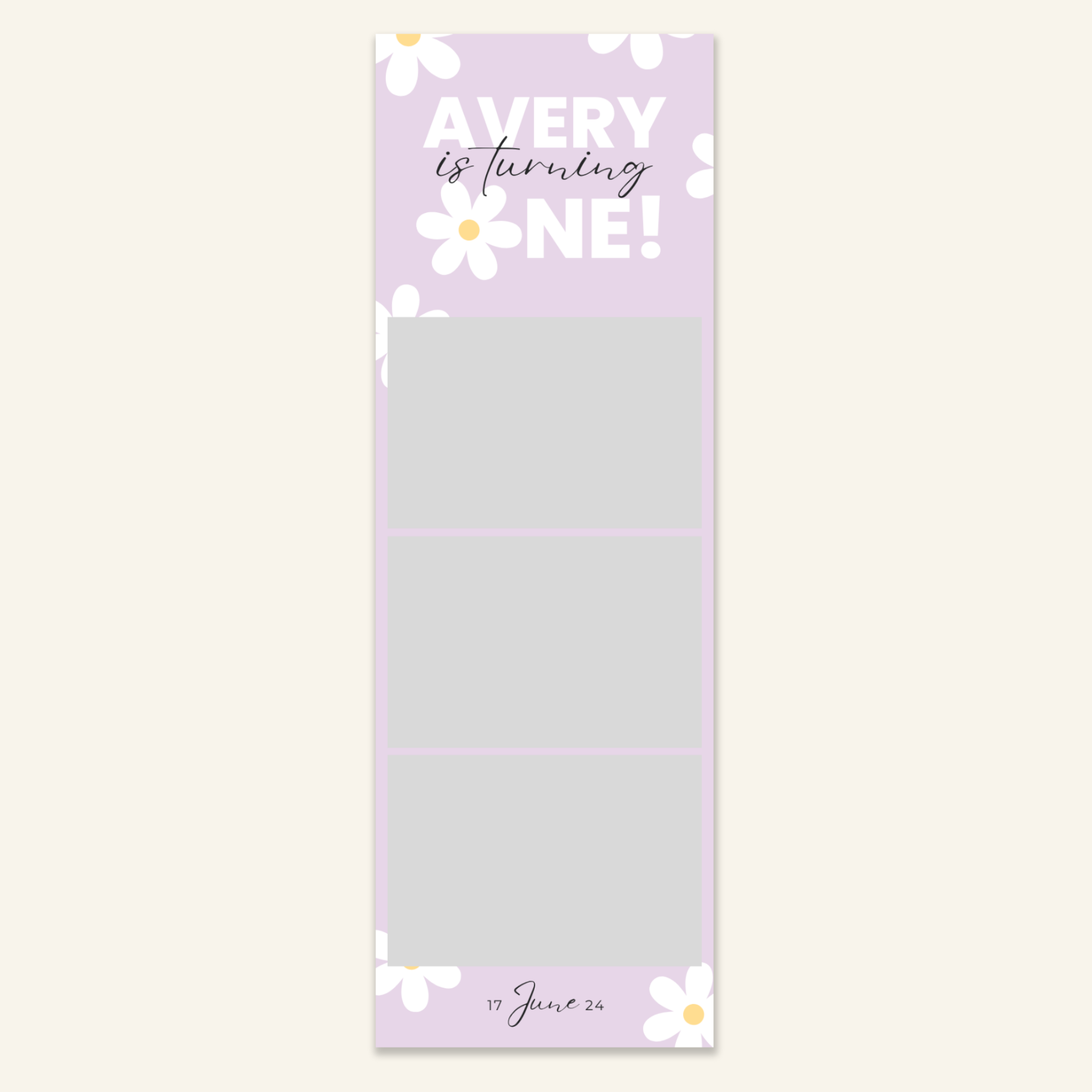 Step 3: Personalise your print template by adding your event name, date, and/or custom message. (eg. Sophia & Lucas / 12 April 2024 / Thanks for joining us!)