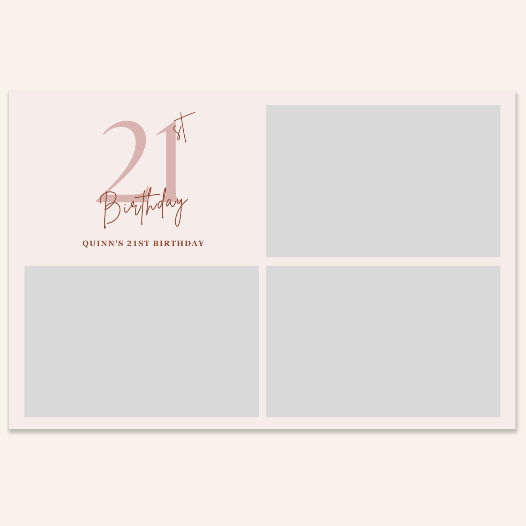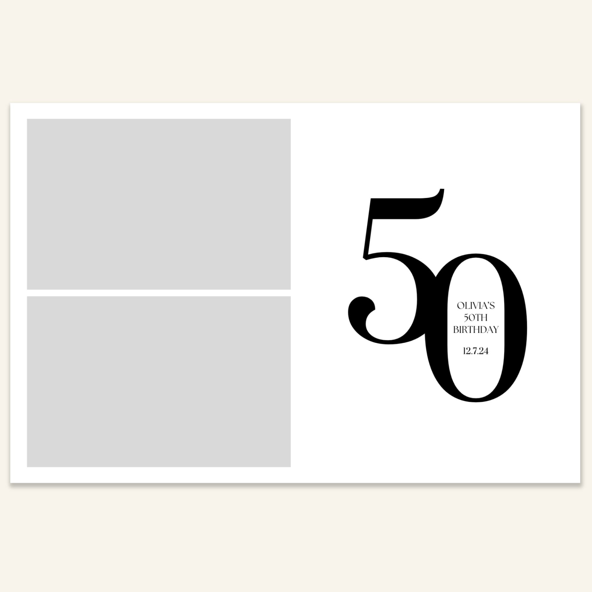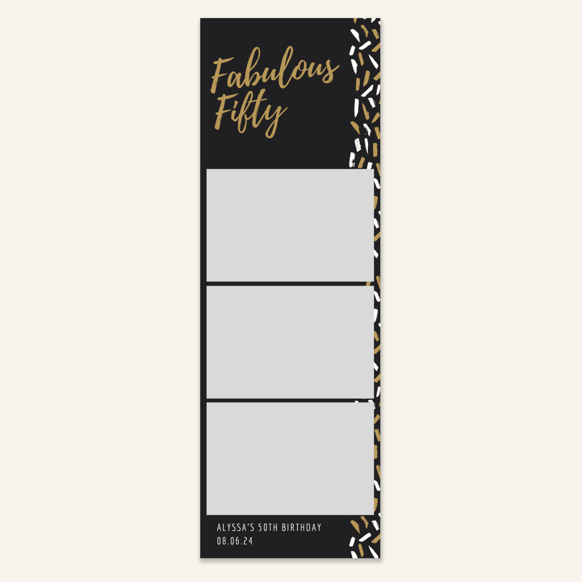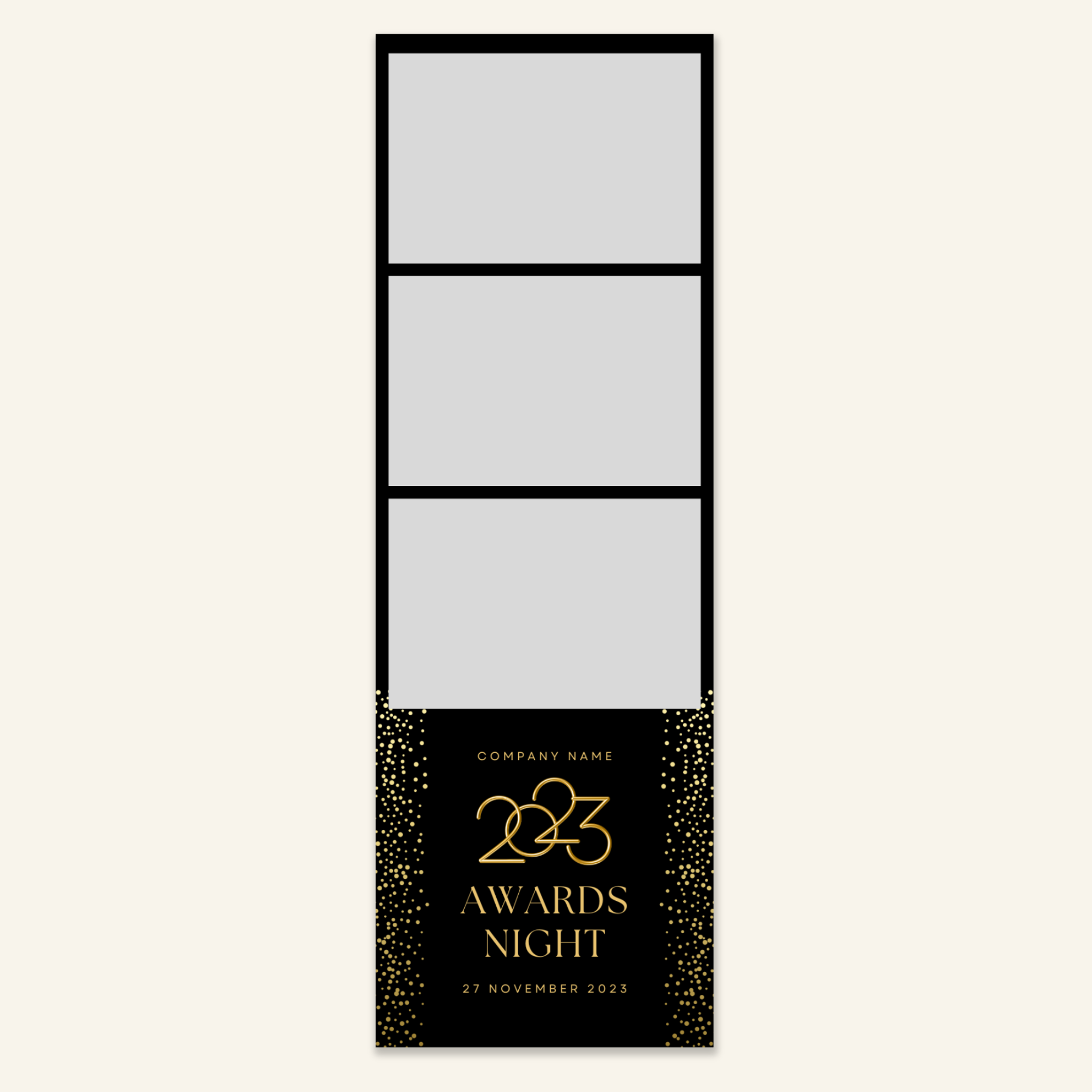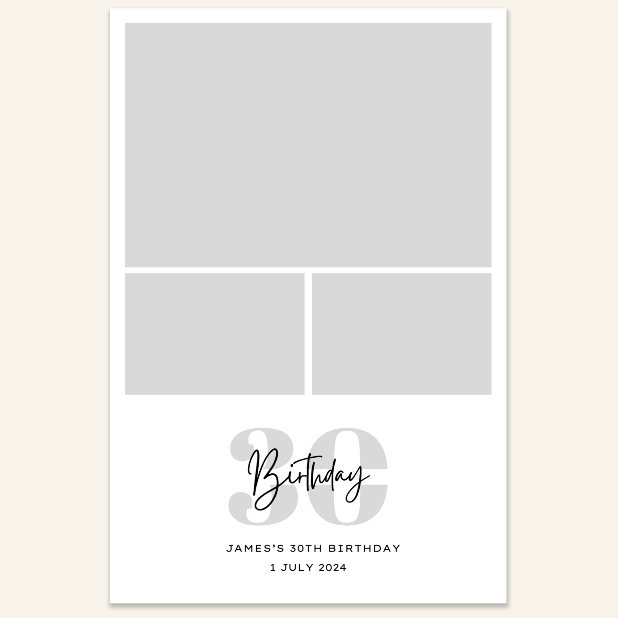 Step 3: Personalise your print template by adding your event name, date, and/or custom message. (eg. Sophia & Lucas / 12 April 2024 / Thanks for joining us!)