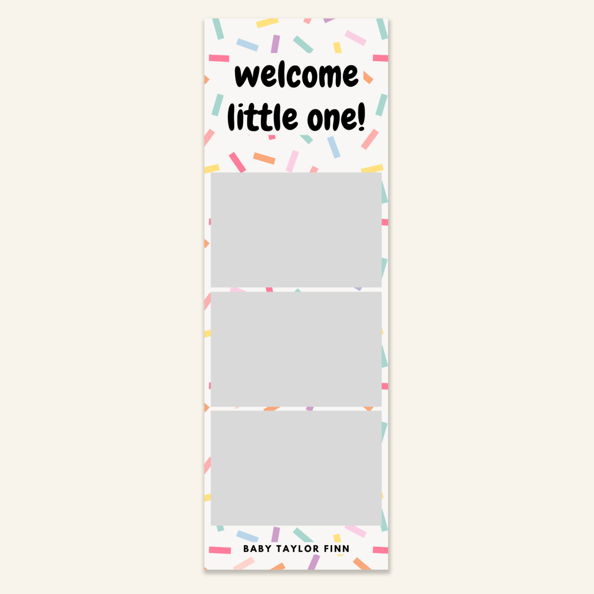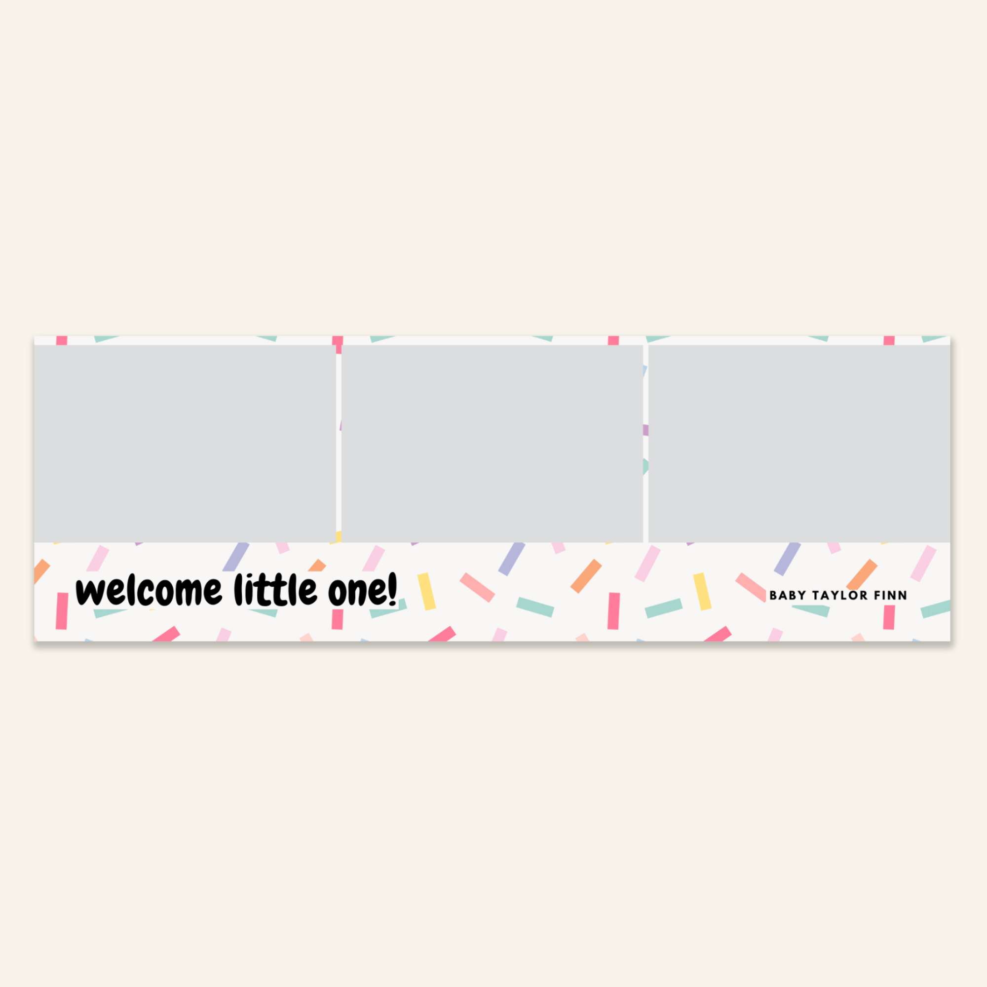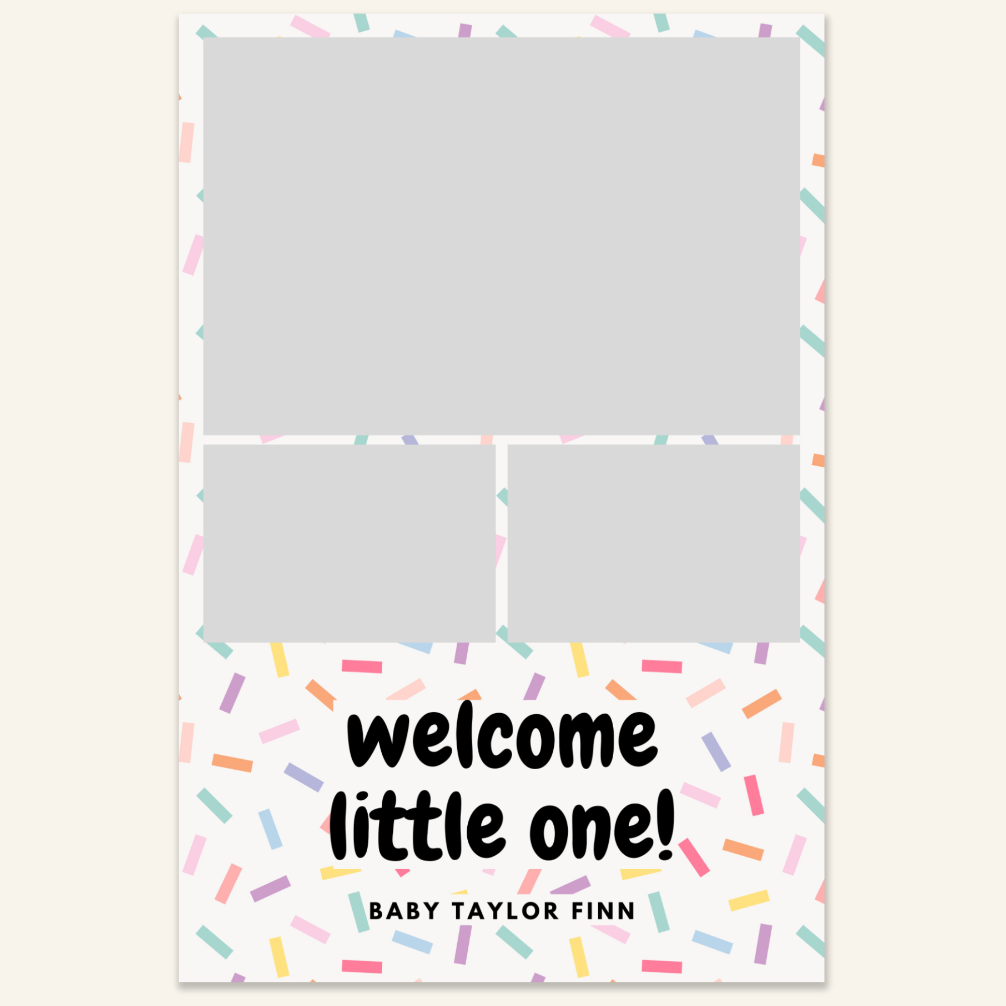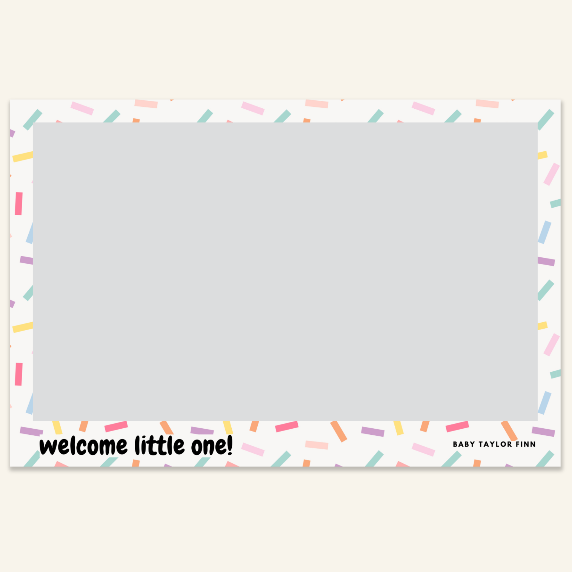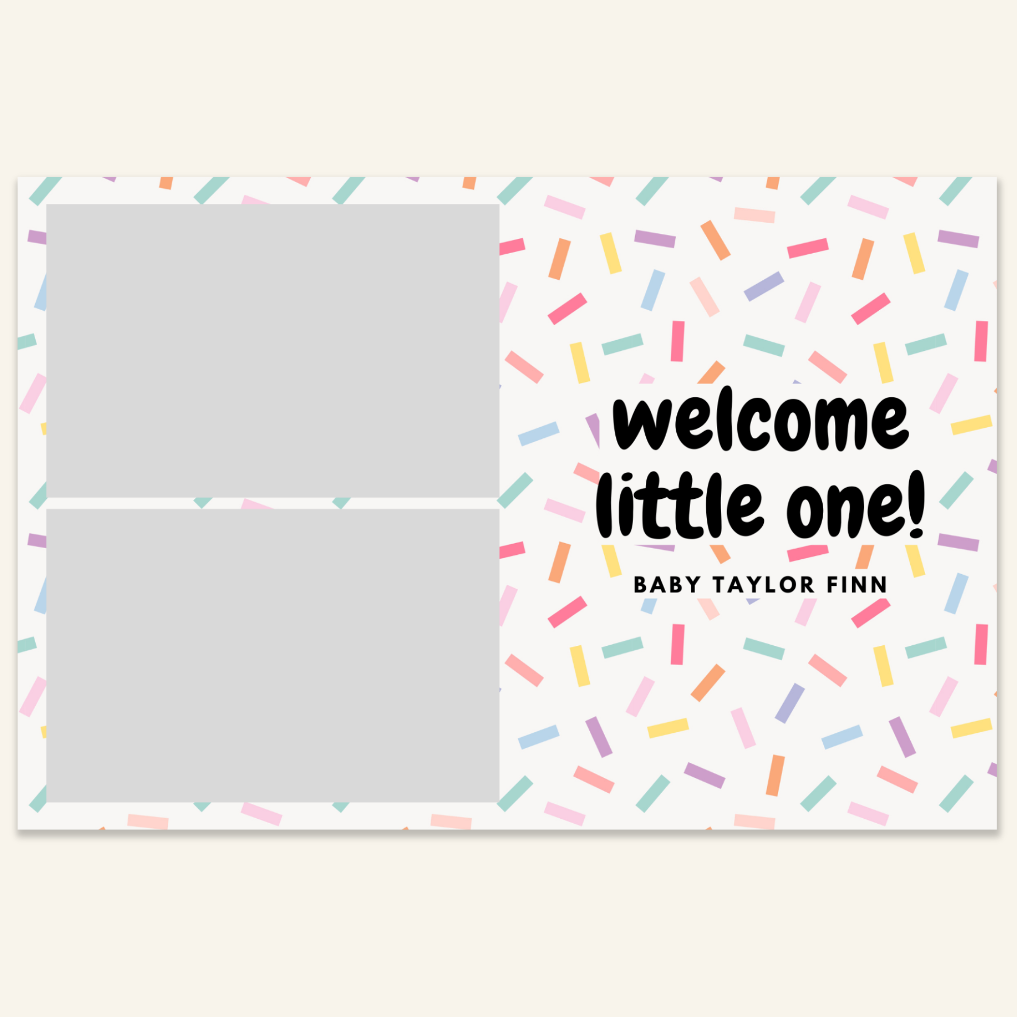 Step 3: Personalise your print template by adding your event name, date, and/or custom message. (eg. Sophia & Lucas / 12 April 2024 / Thanks for joining us!)