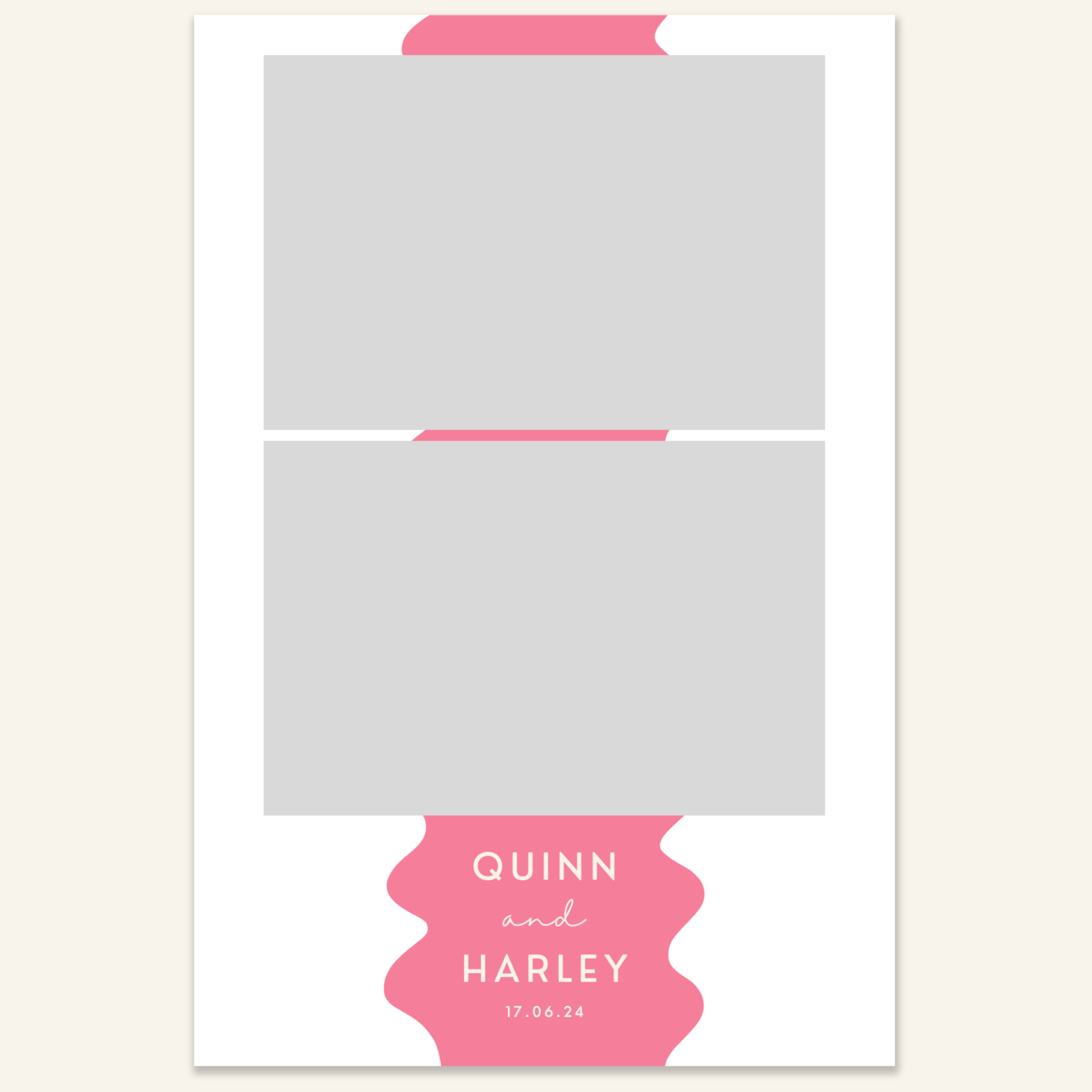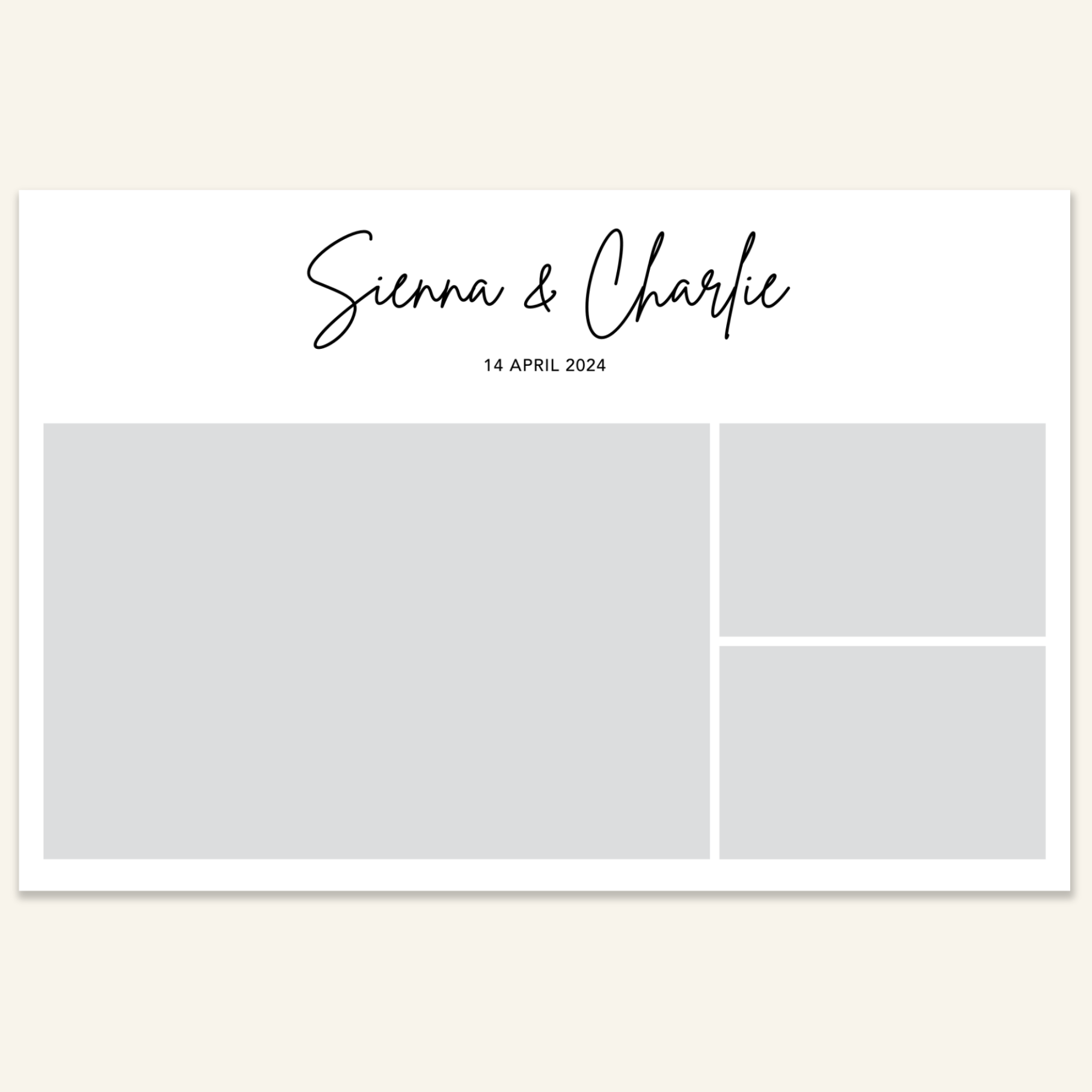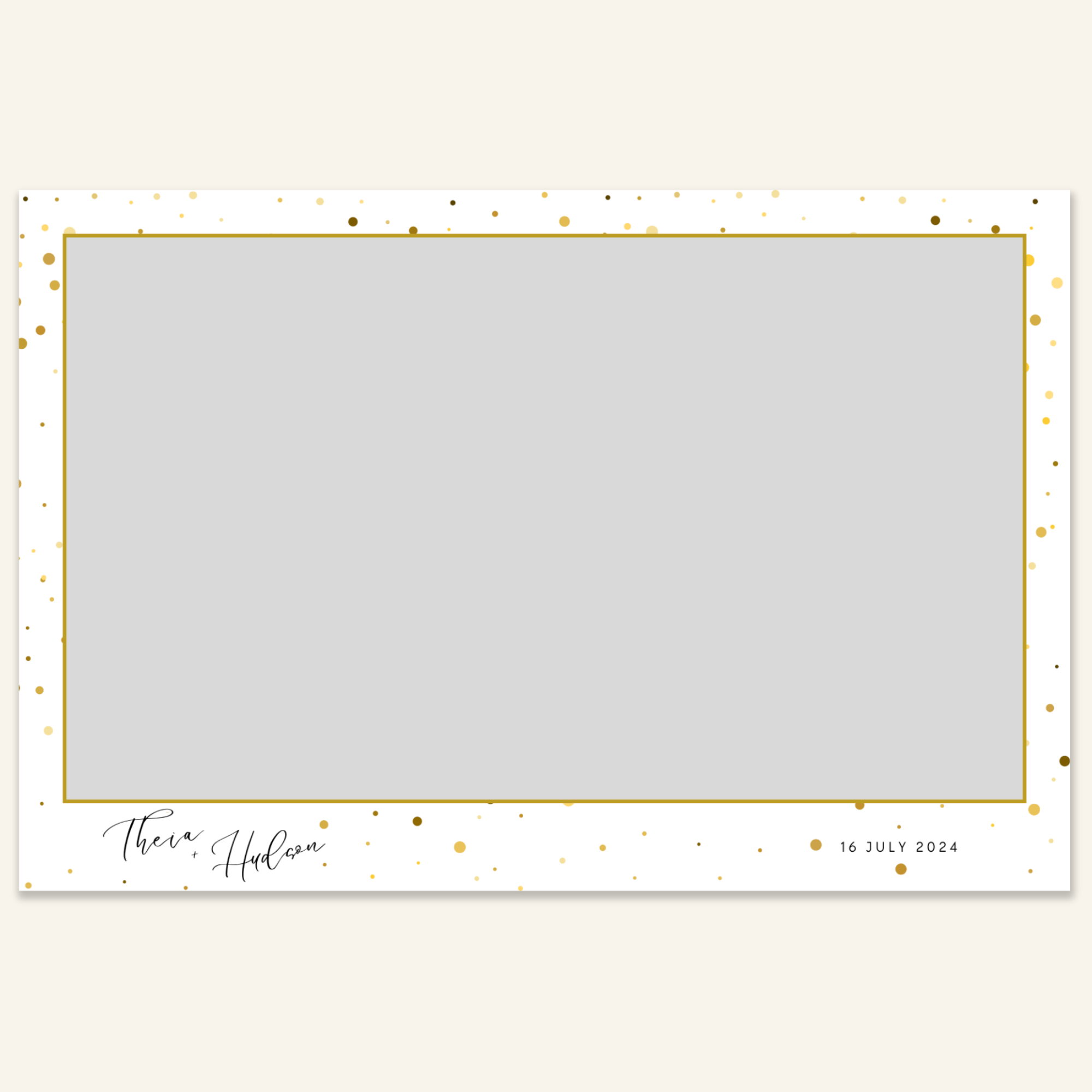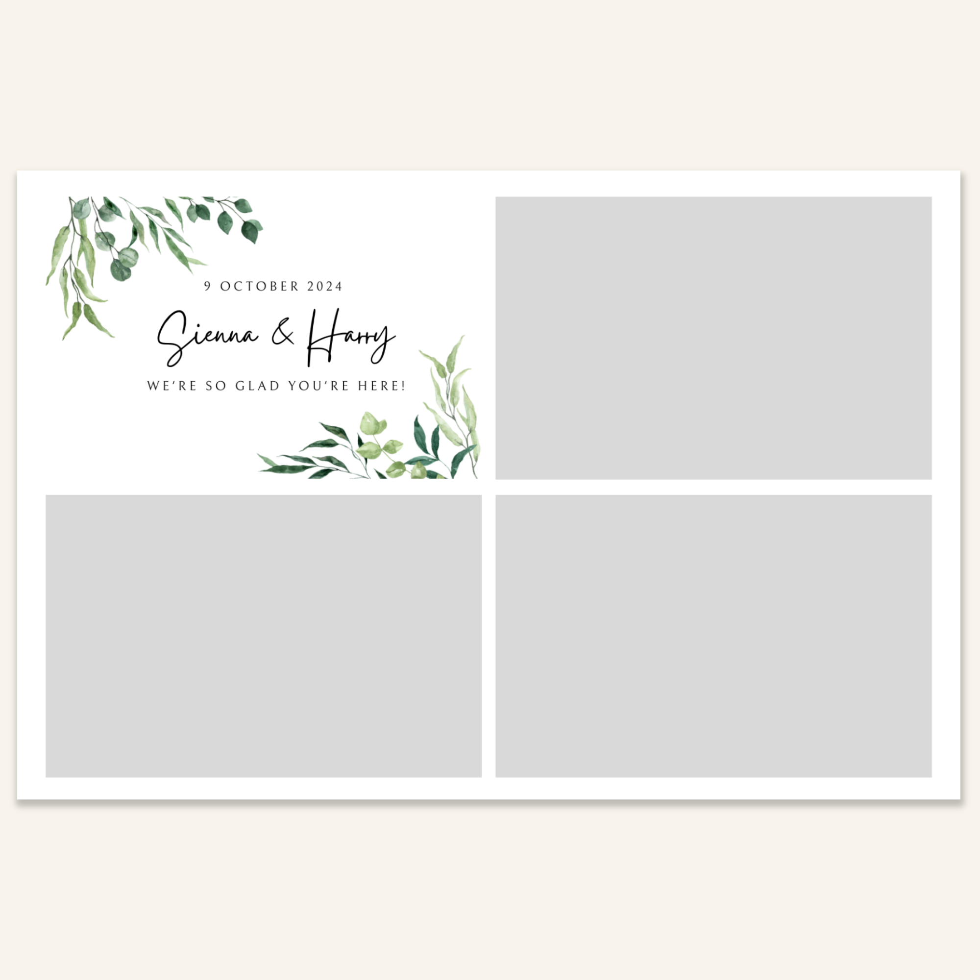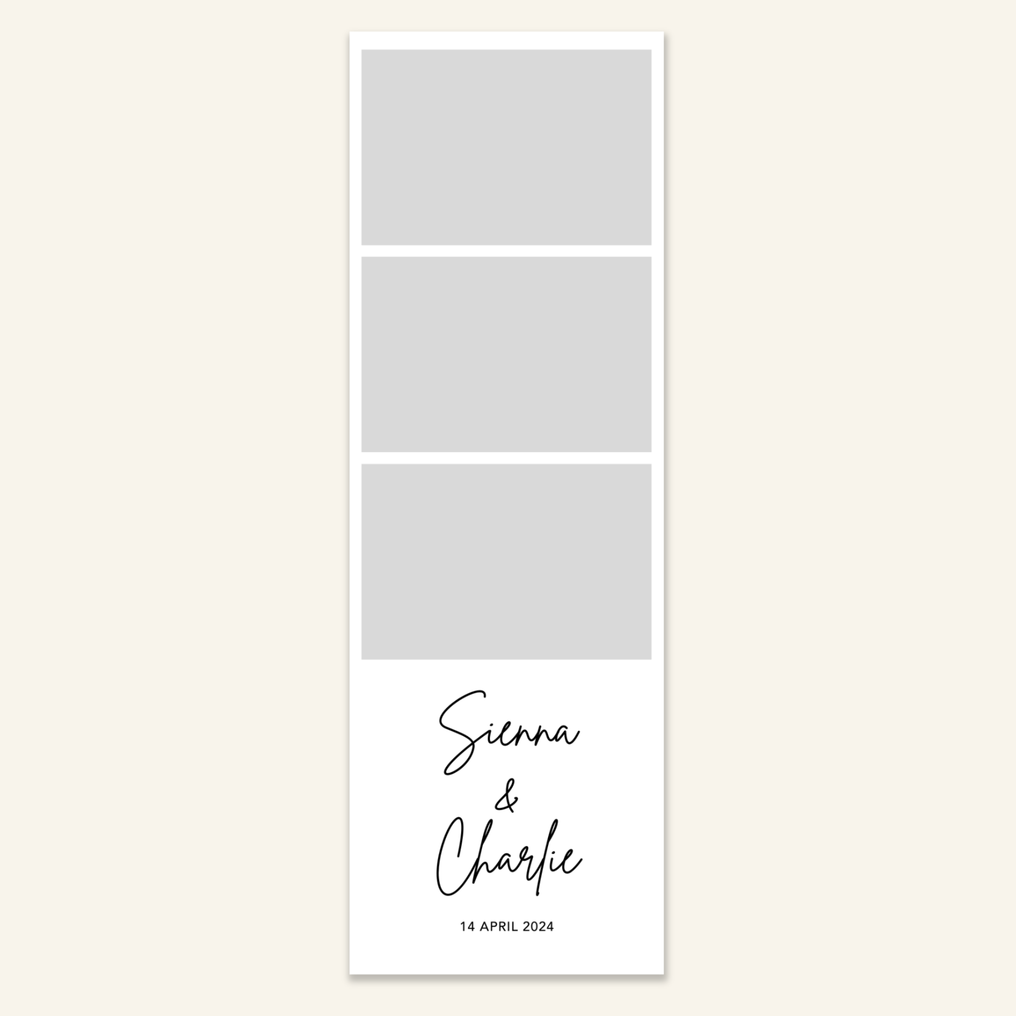 Step 3: Personalise your print template by adding your event name, date, and/or custom message. (eg. Sophia & Lucas / 12 April 2024 / Thanks for joining us!)