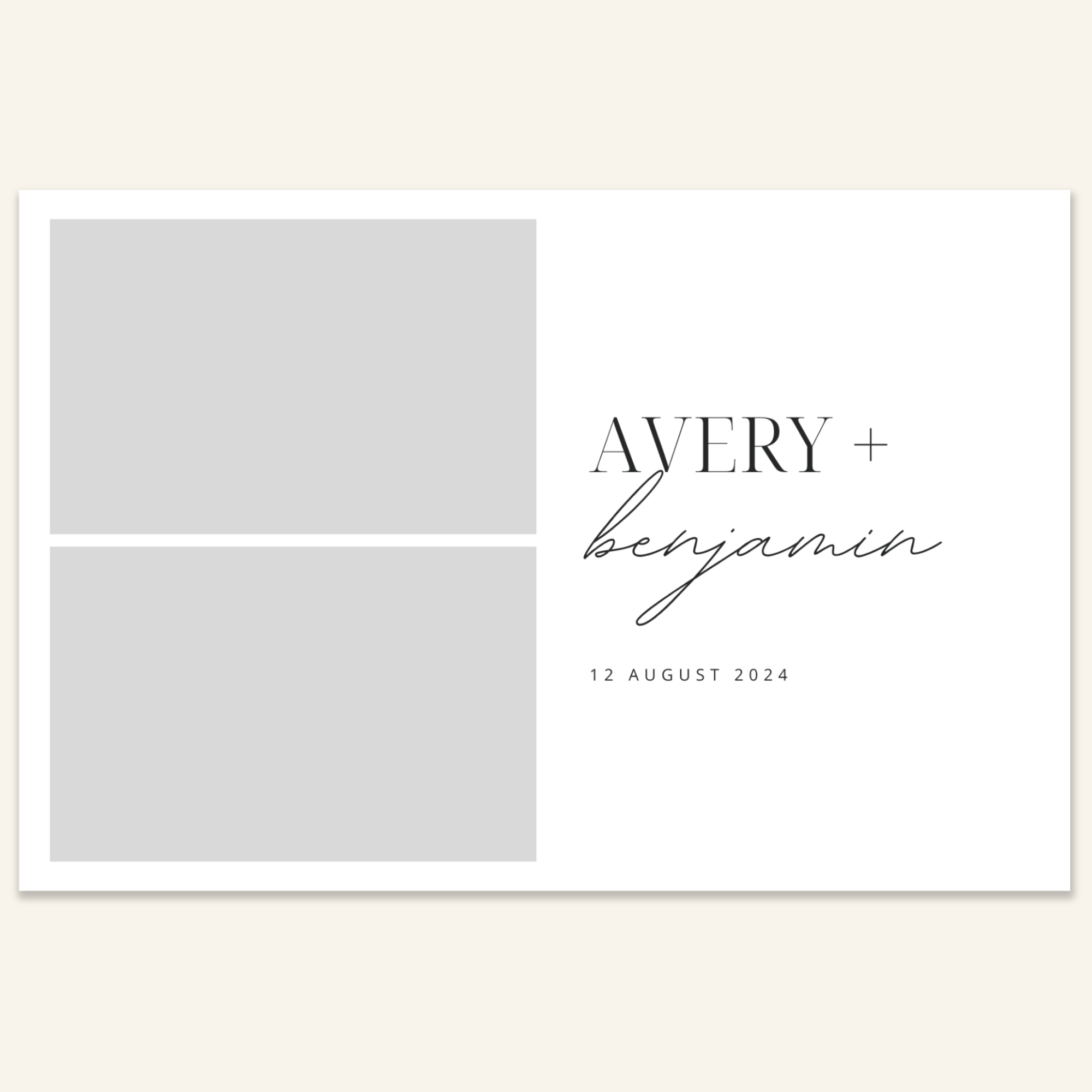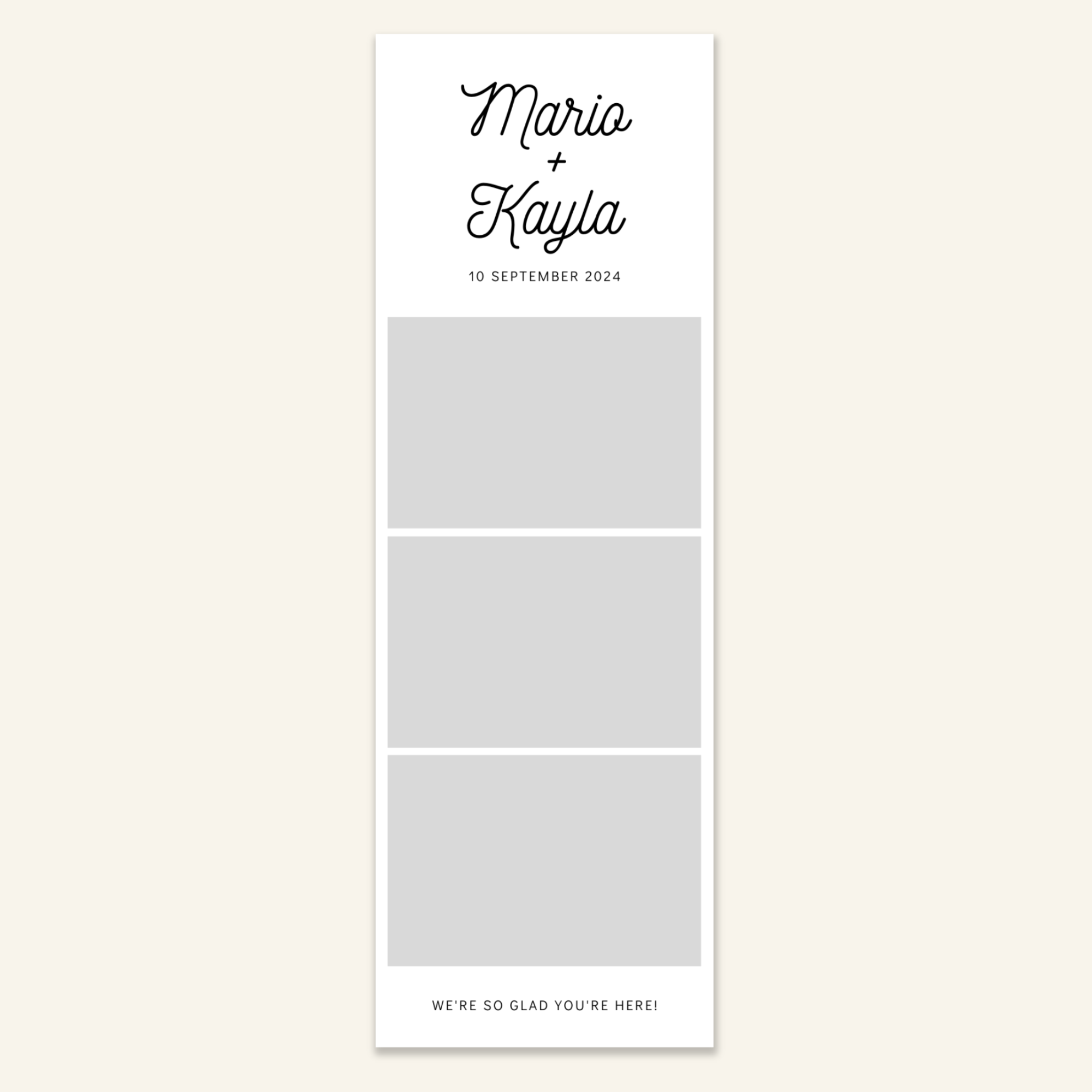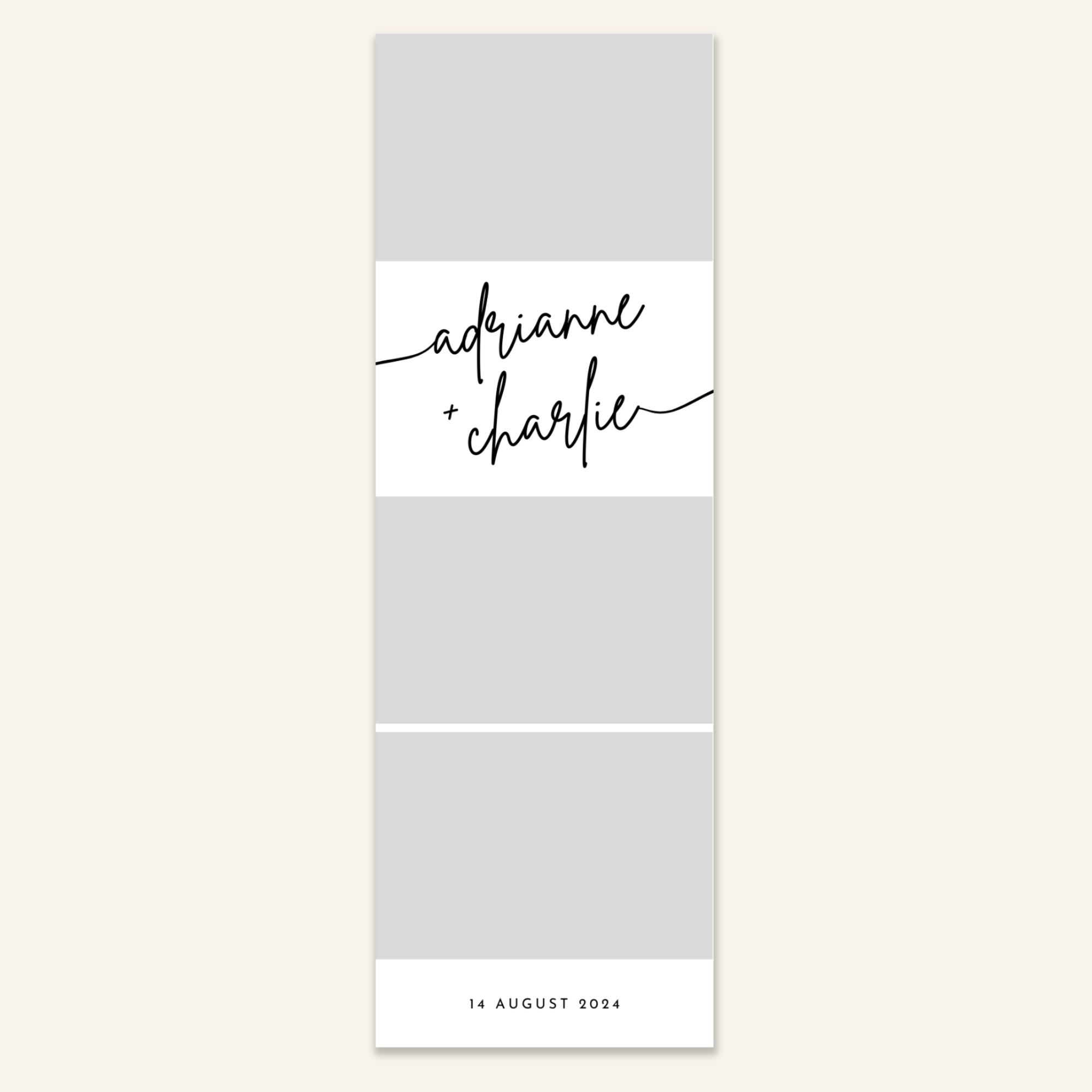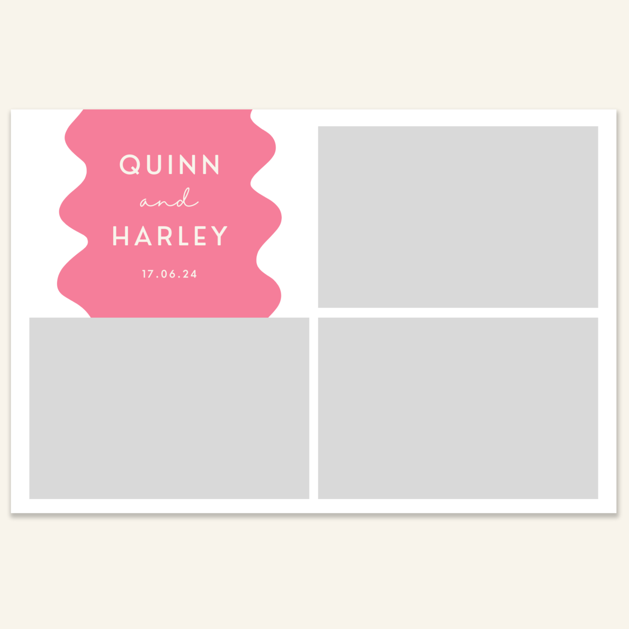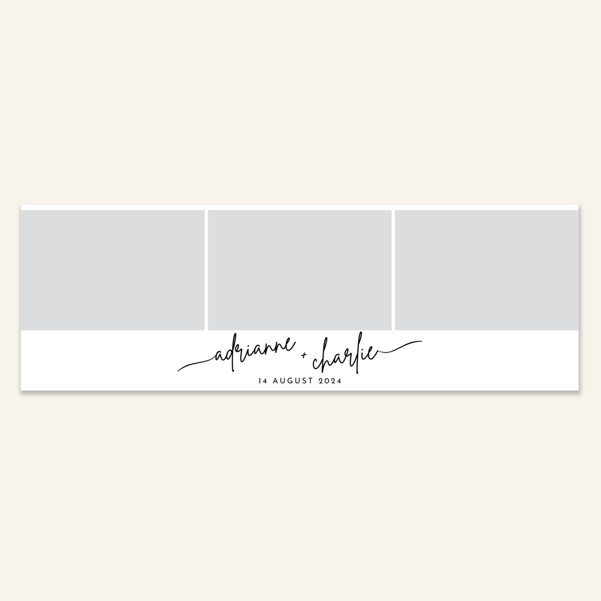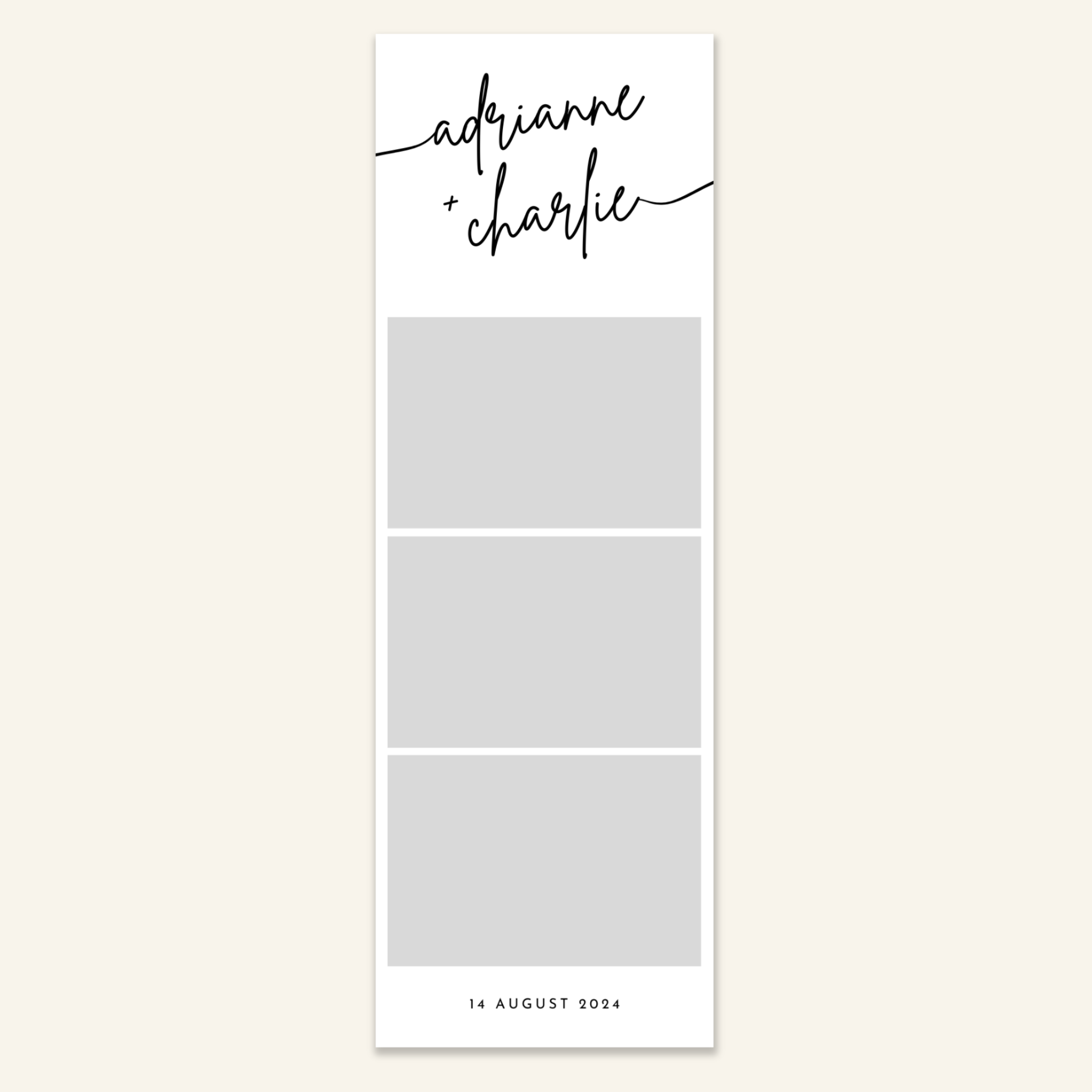 Step 3: Personalise your print template by adding your event name, date, and/or custom message. (eg. Sophia & Lucas / 12 April 2024 / Thanks for joining us!)