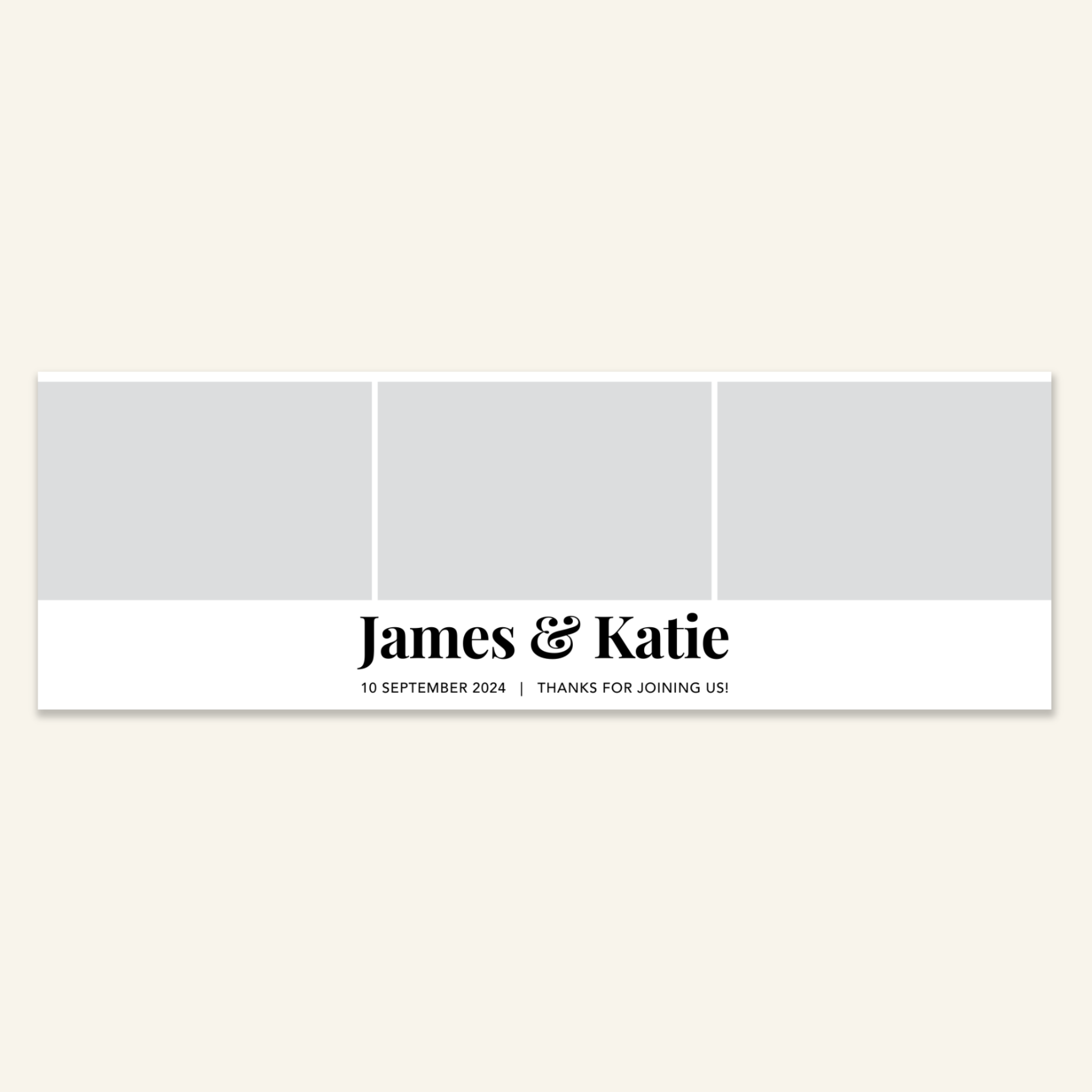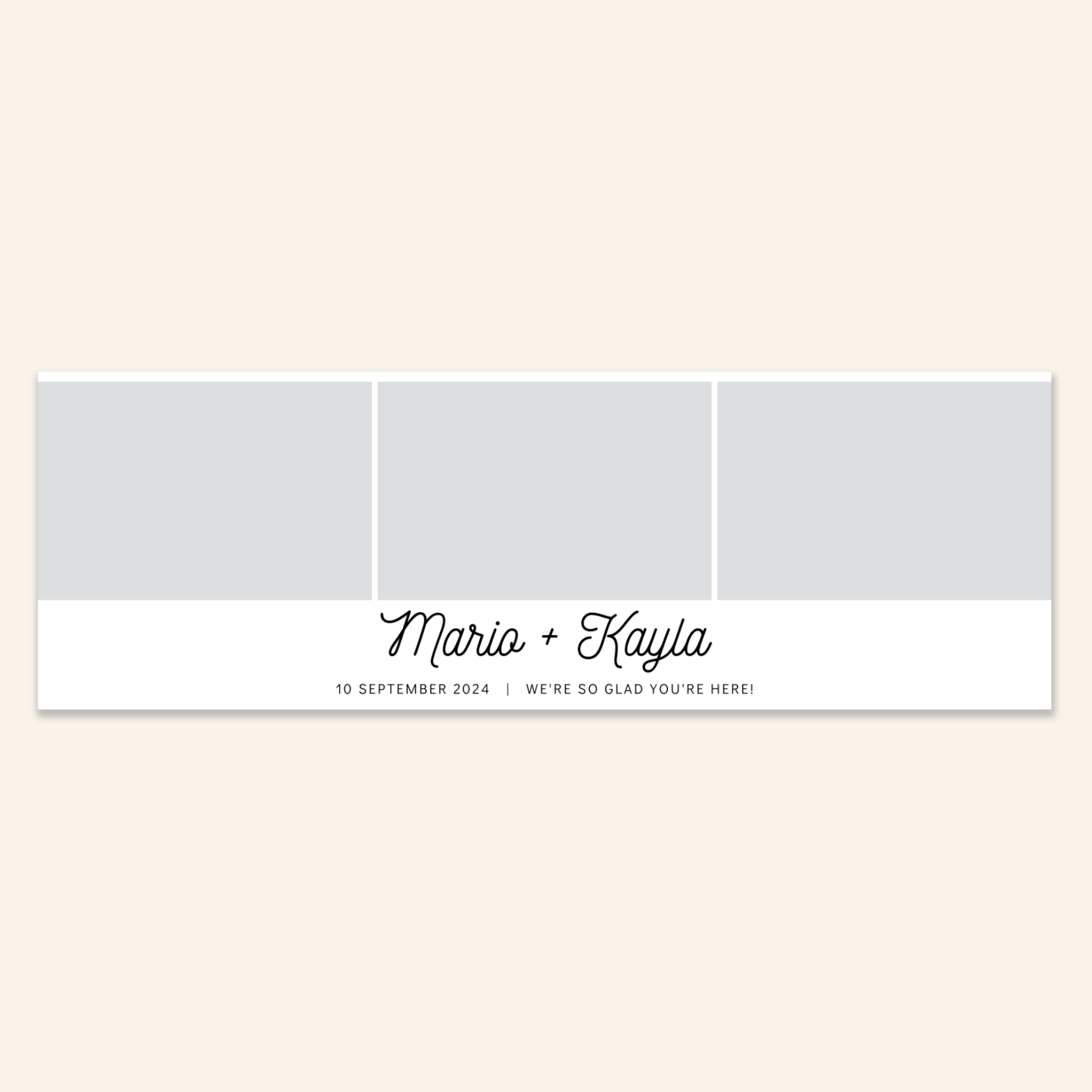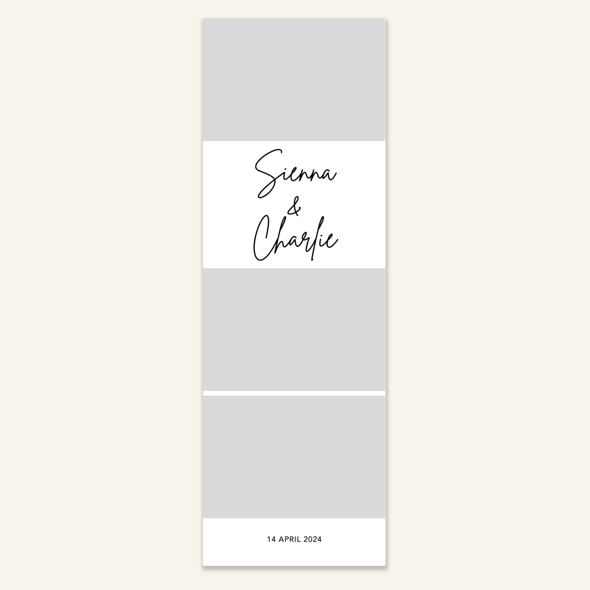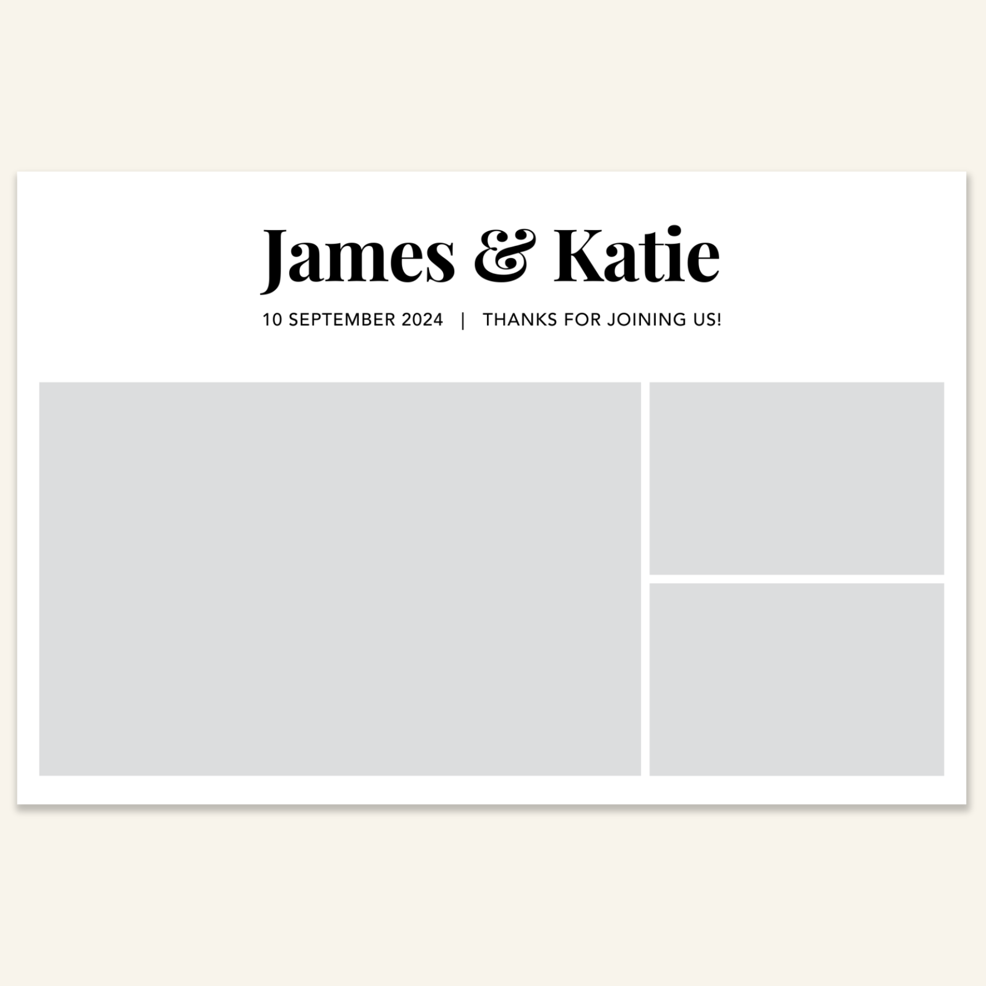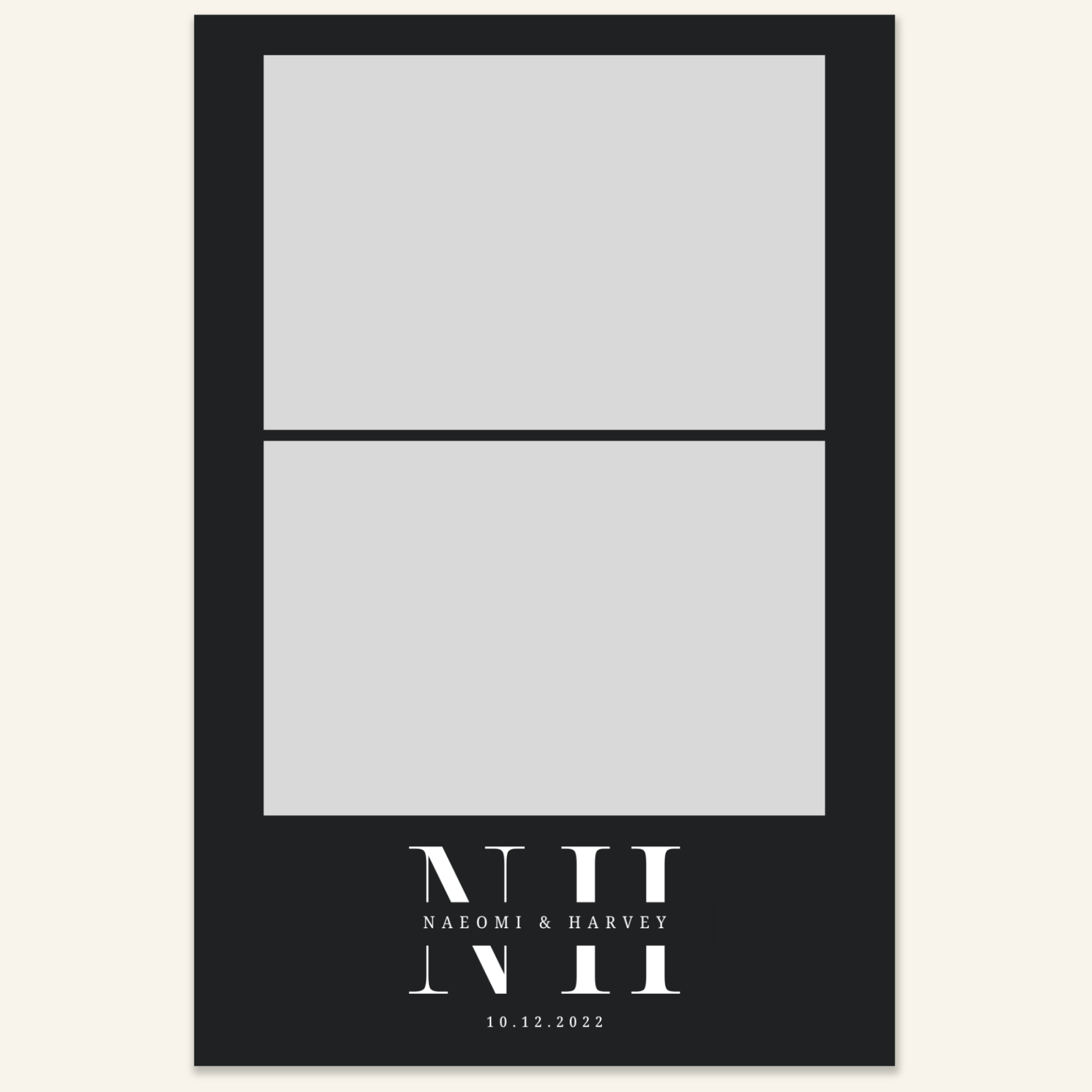 Step 3: Personalise your print template by adding your event name, date, and/or custom message. (eg. Sophia & Lucas / 12 April 2024 / Thanks for joining us!)