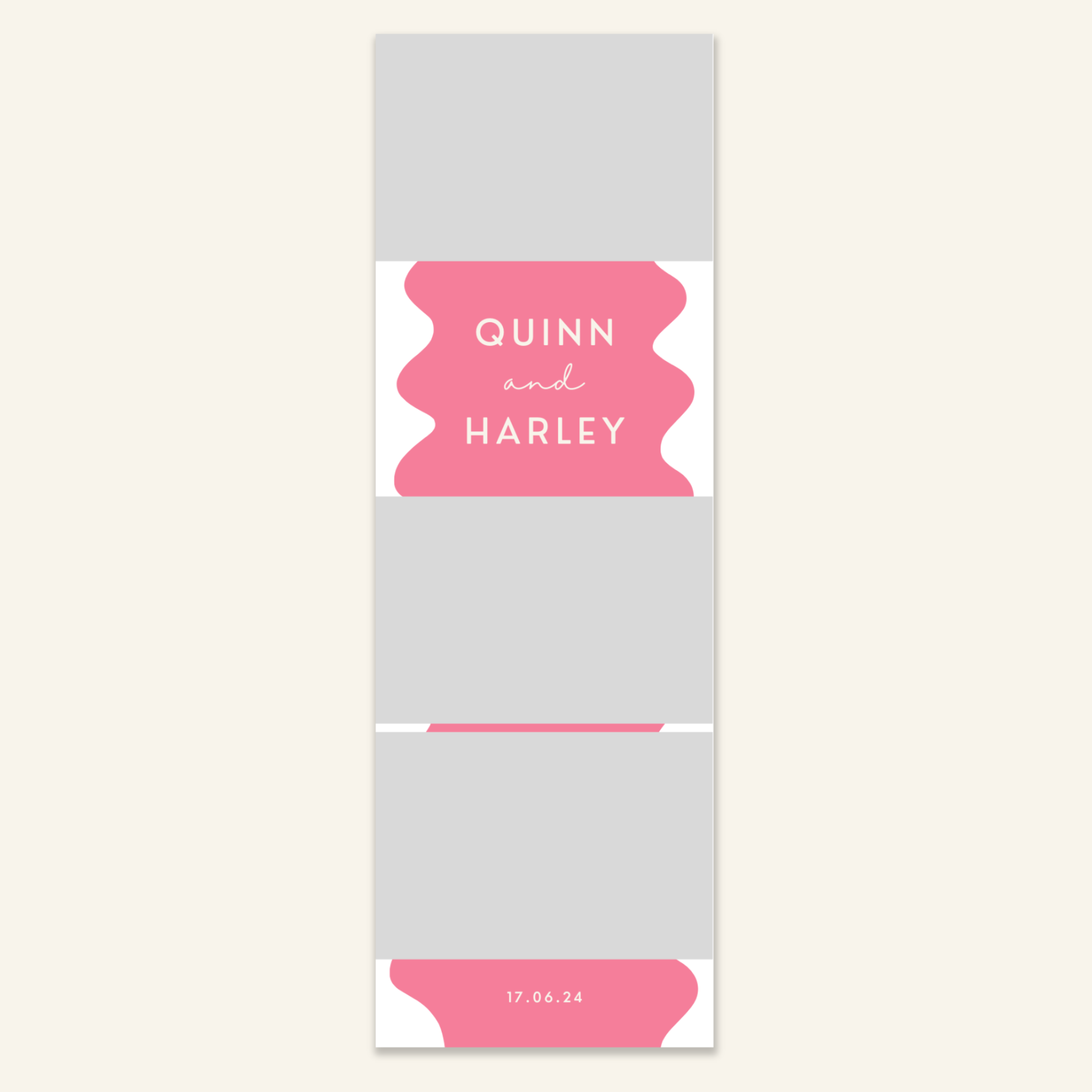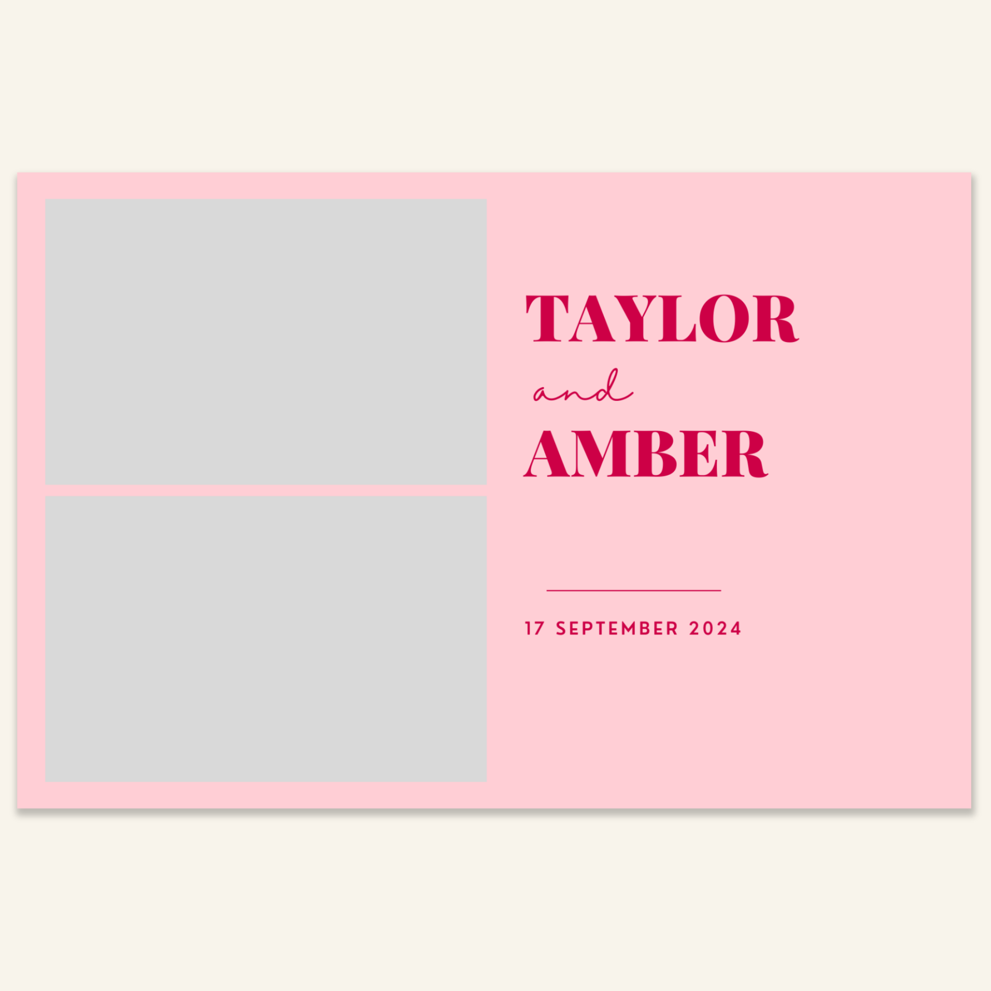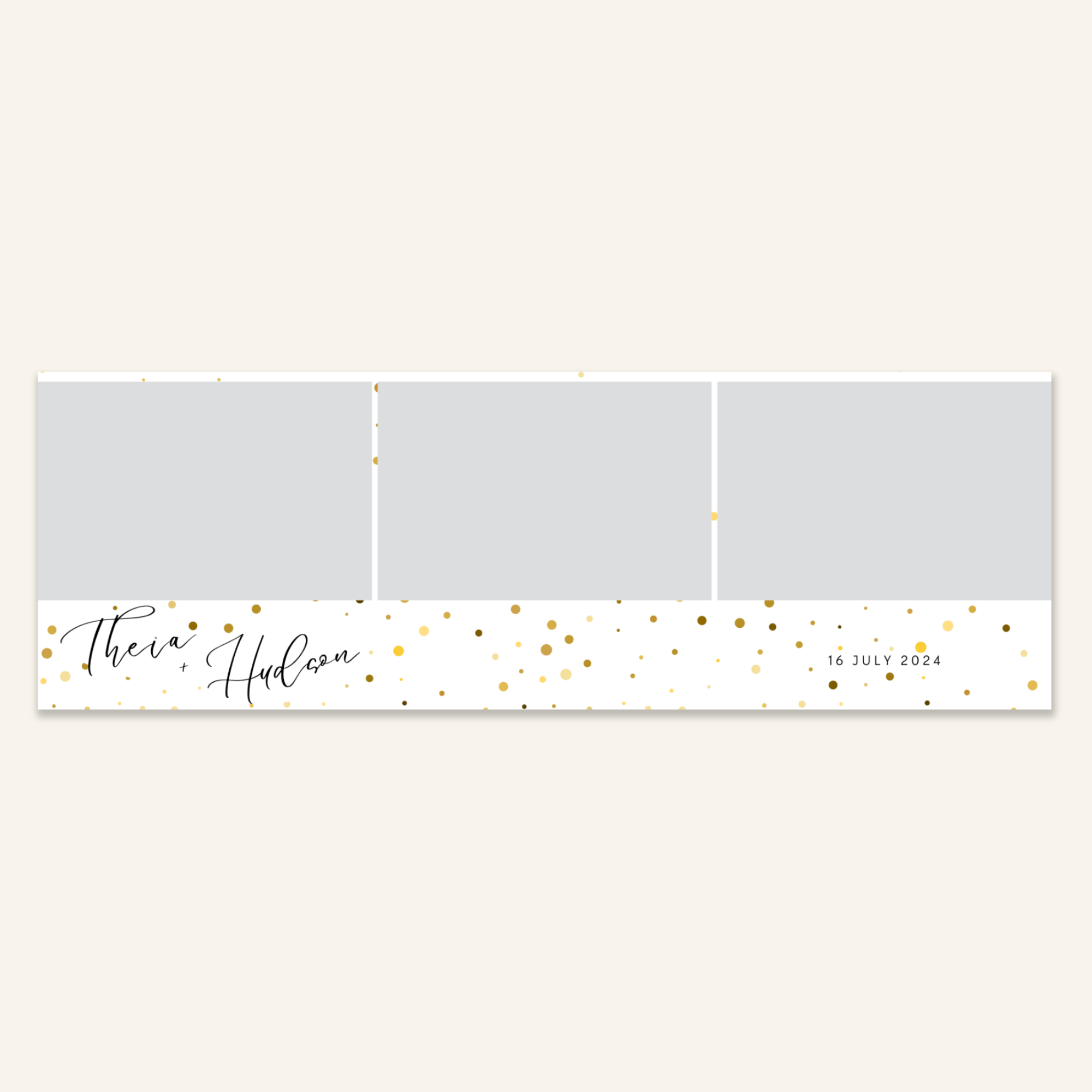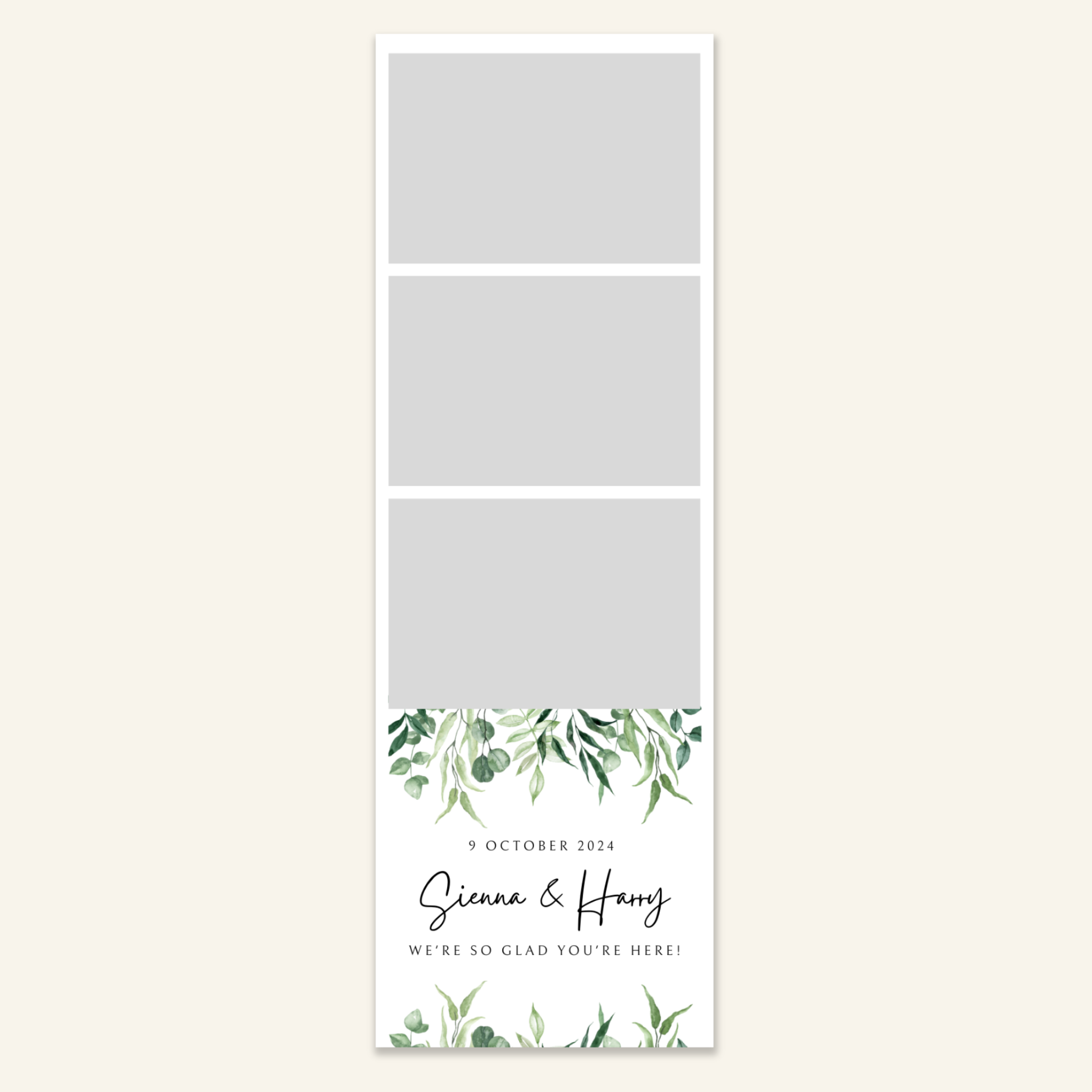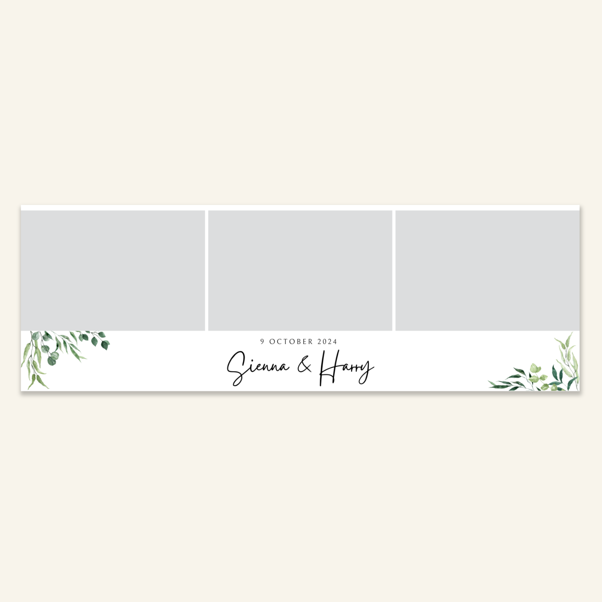 Step 3: Personalise your print template by adding your event name, date, and/or custom message. (eg. Sophia & Lucas / 12 April 2024 / Thanks for joining us!)
