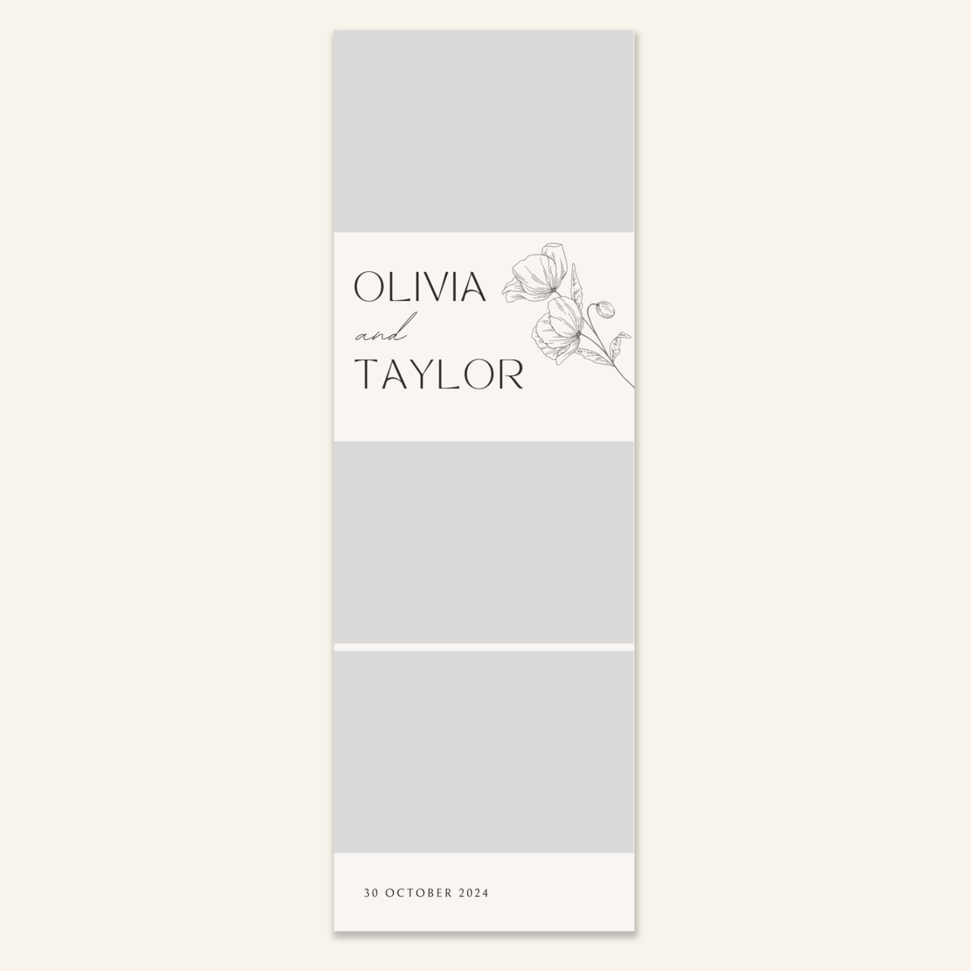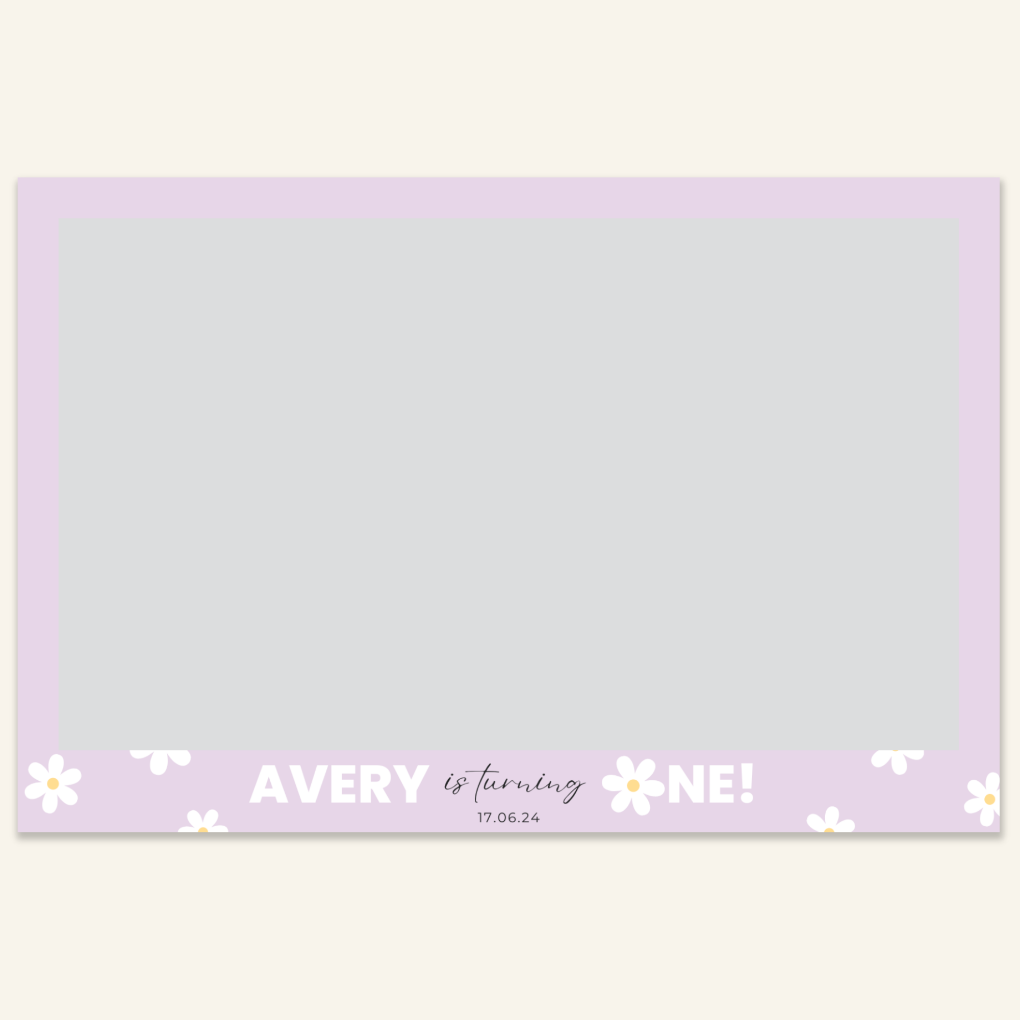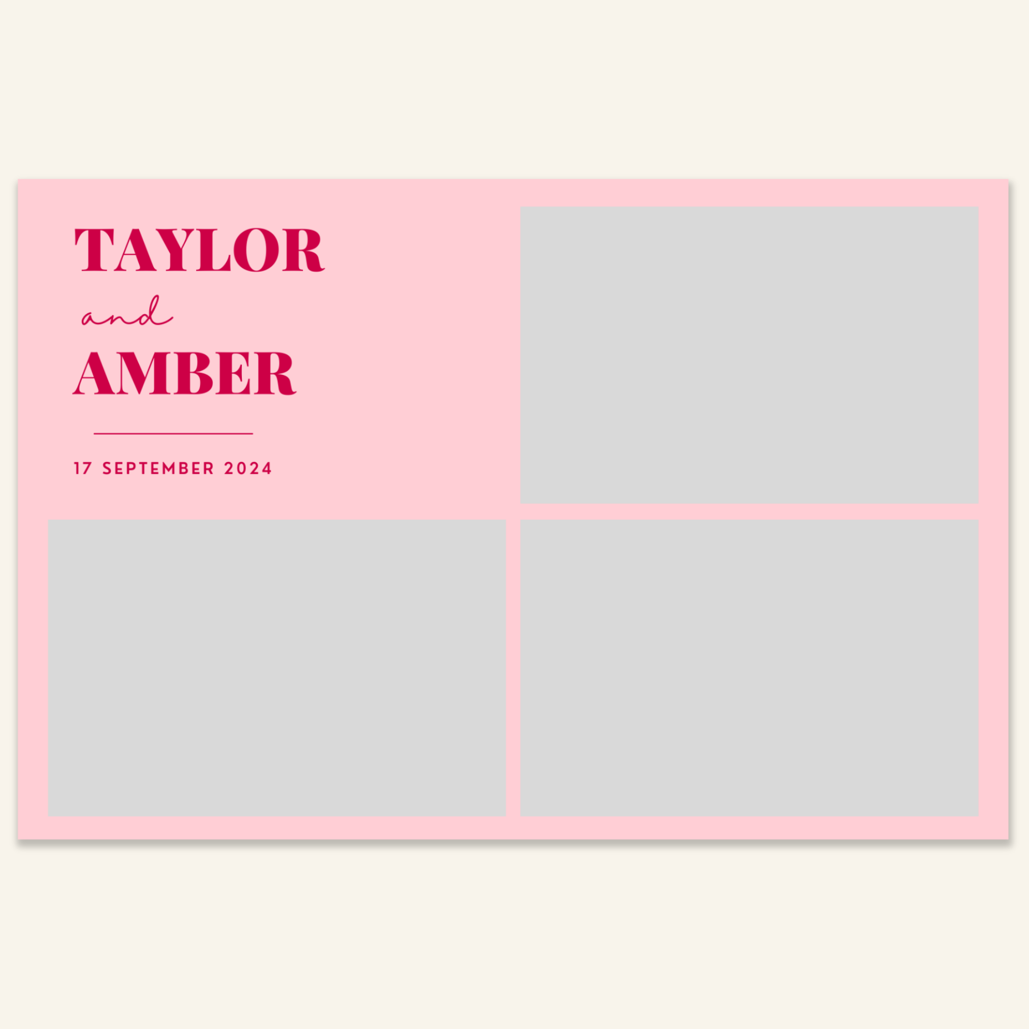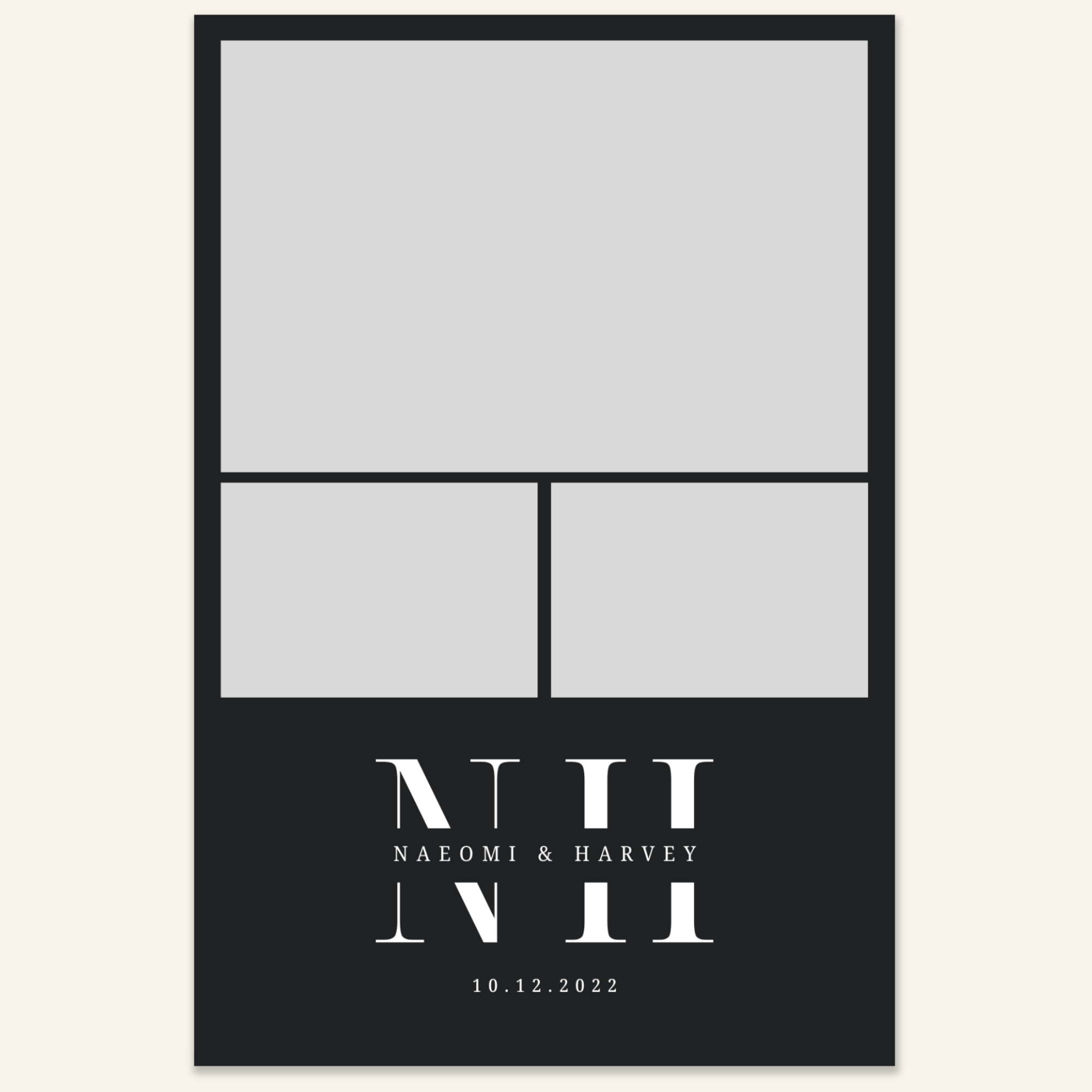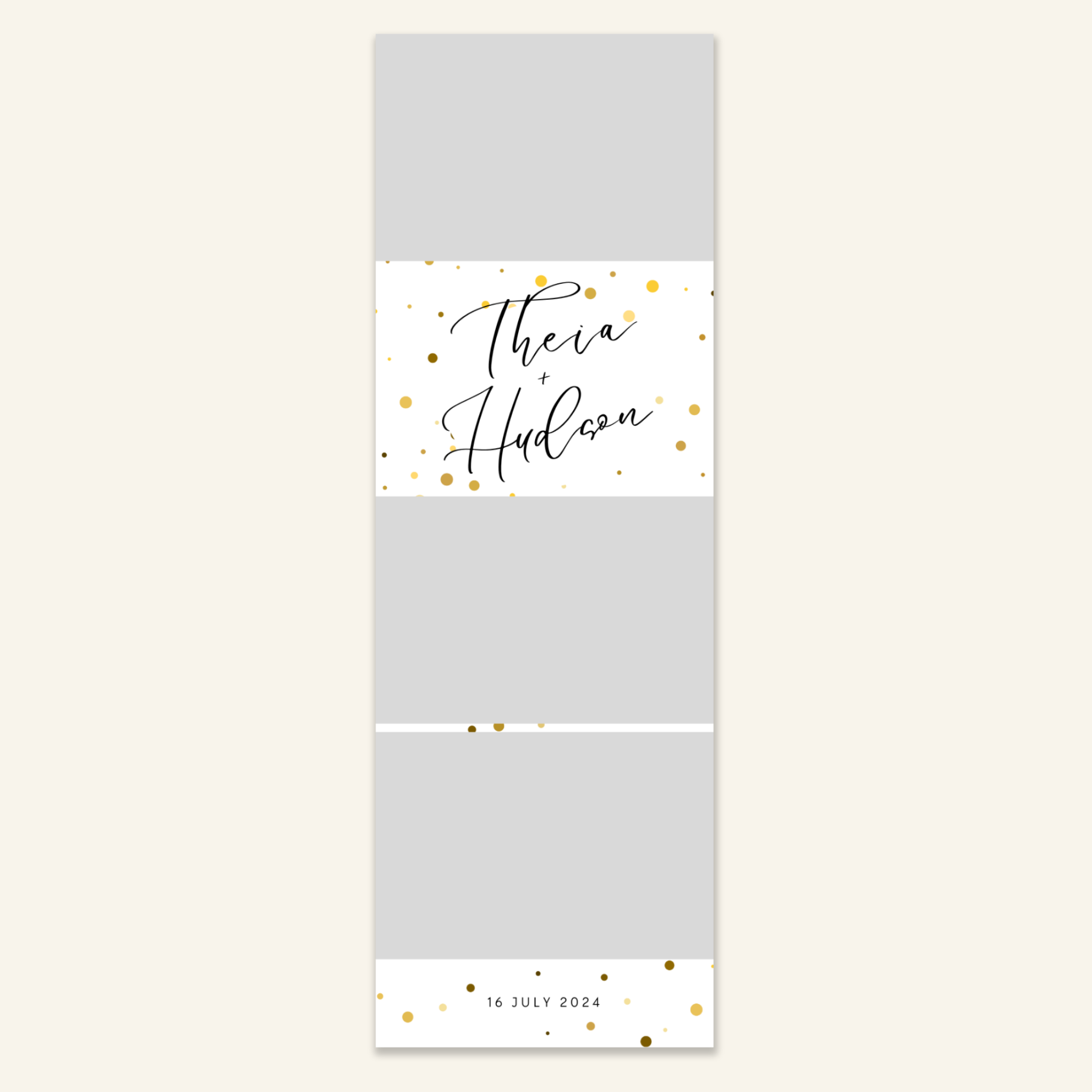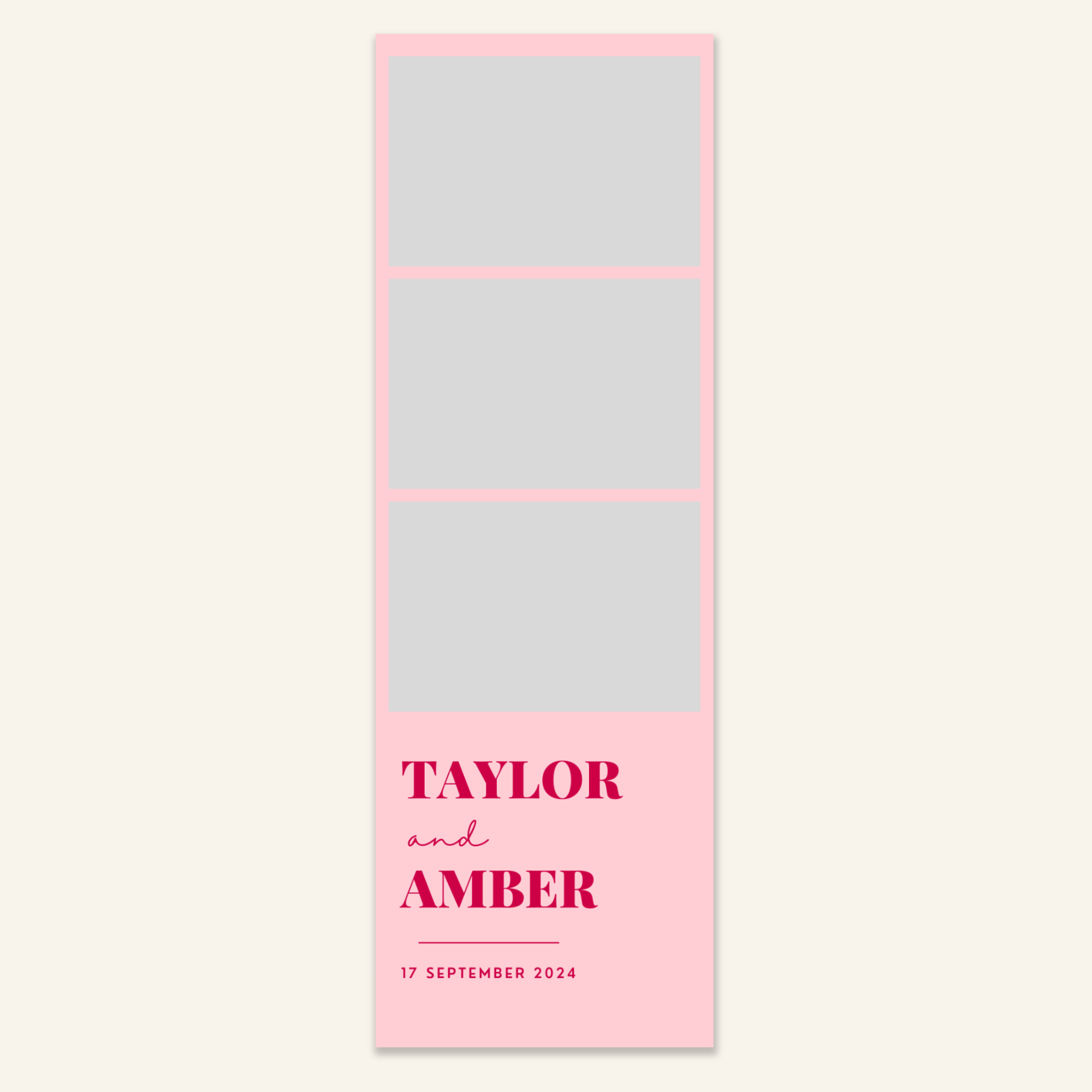 Step 3: Personalise your print template by adding your event name, date, and/or custom message. (eg. Sophia & Lucas / 12 April 2024 / Thanks for joining us!)