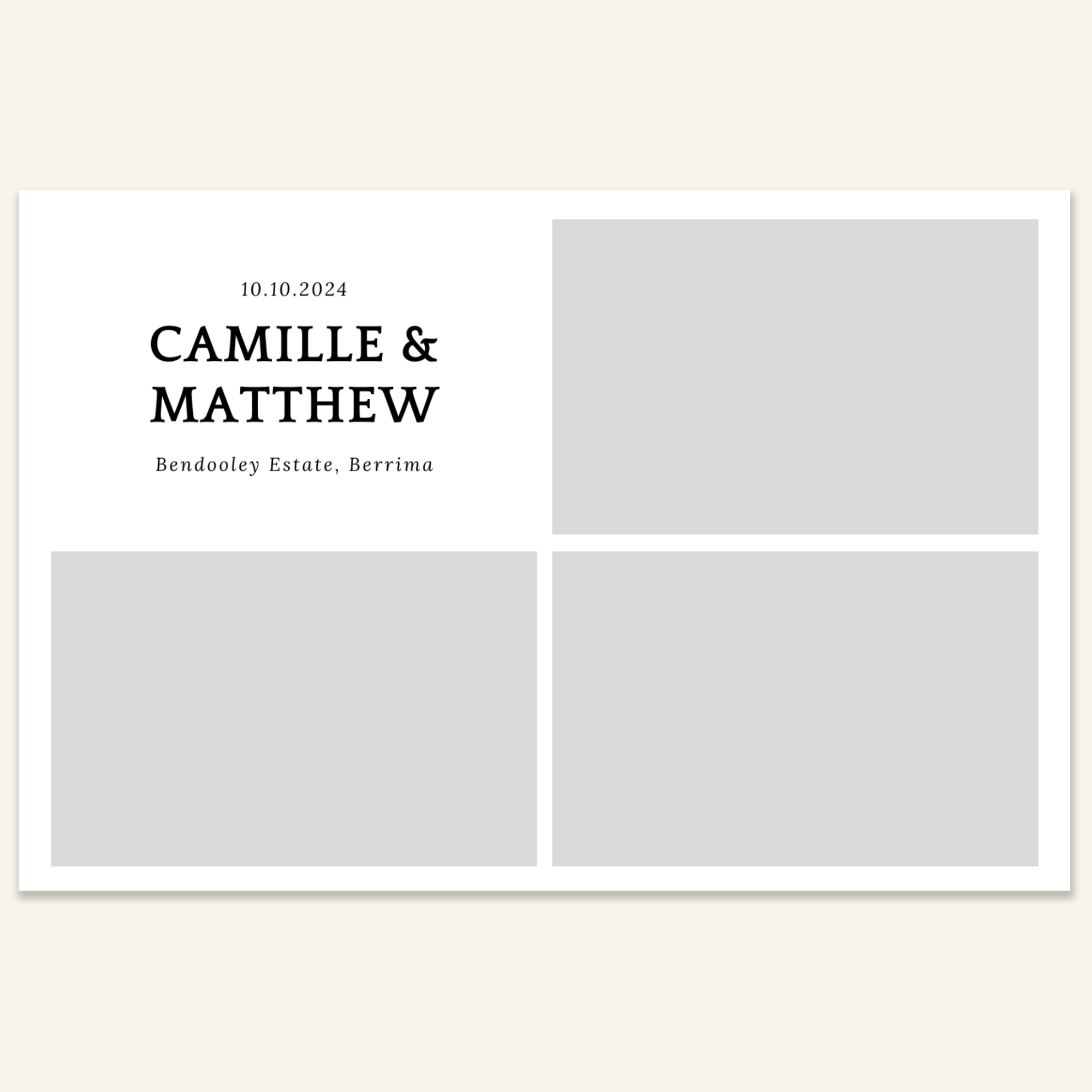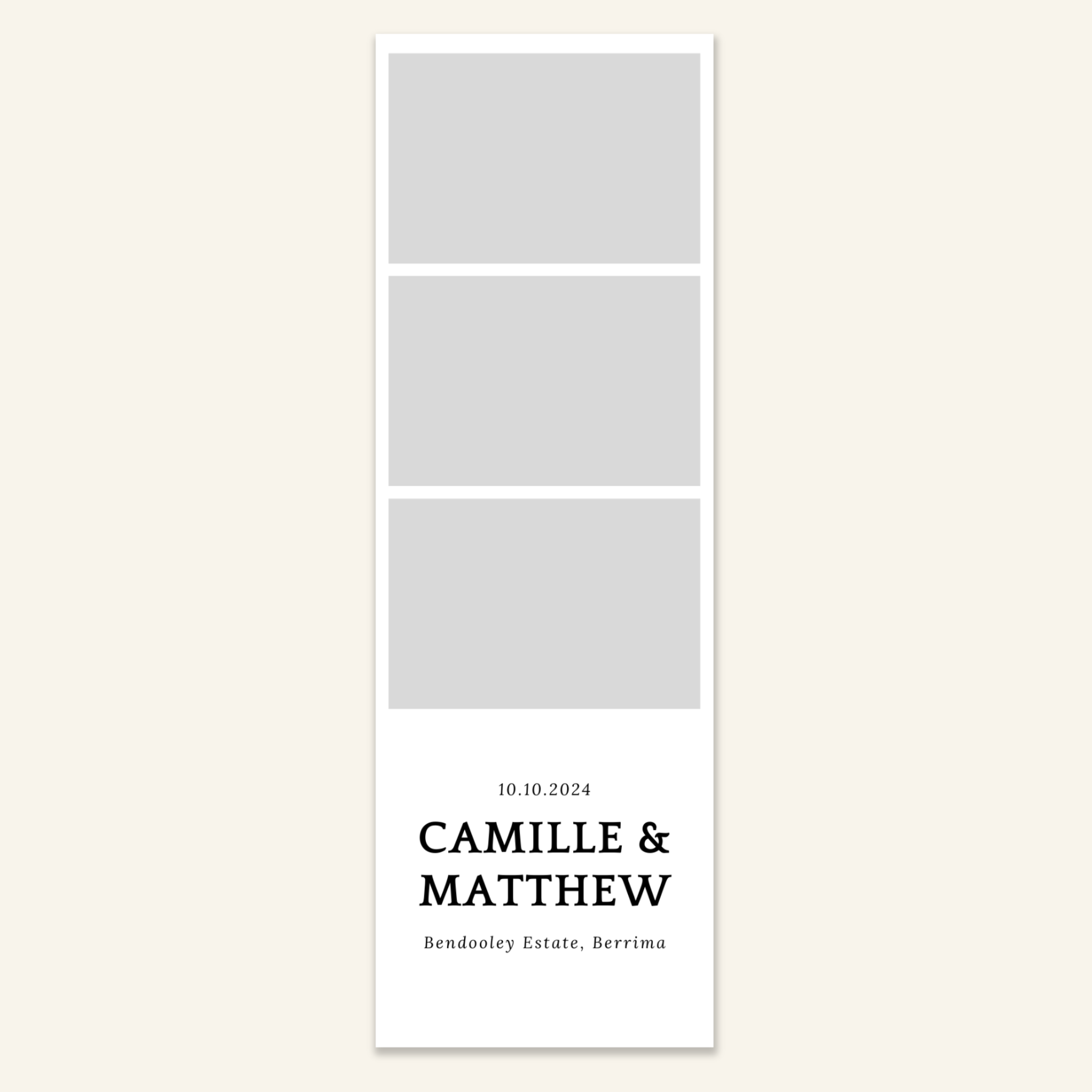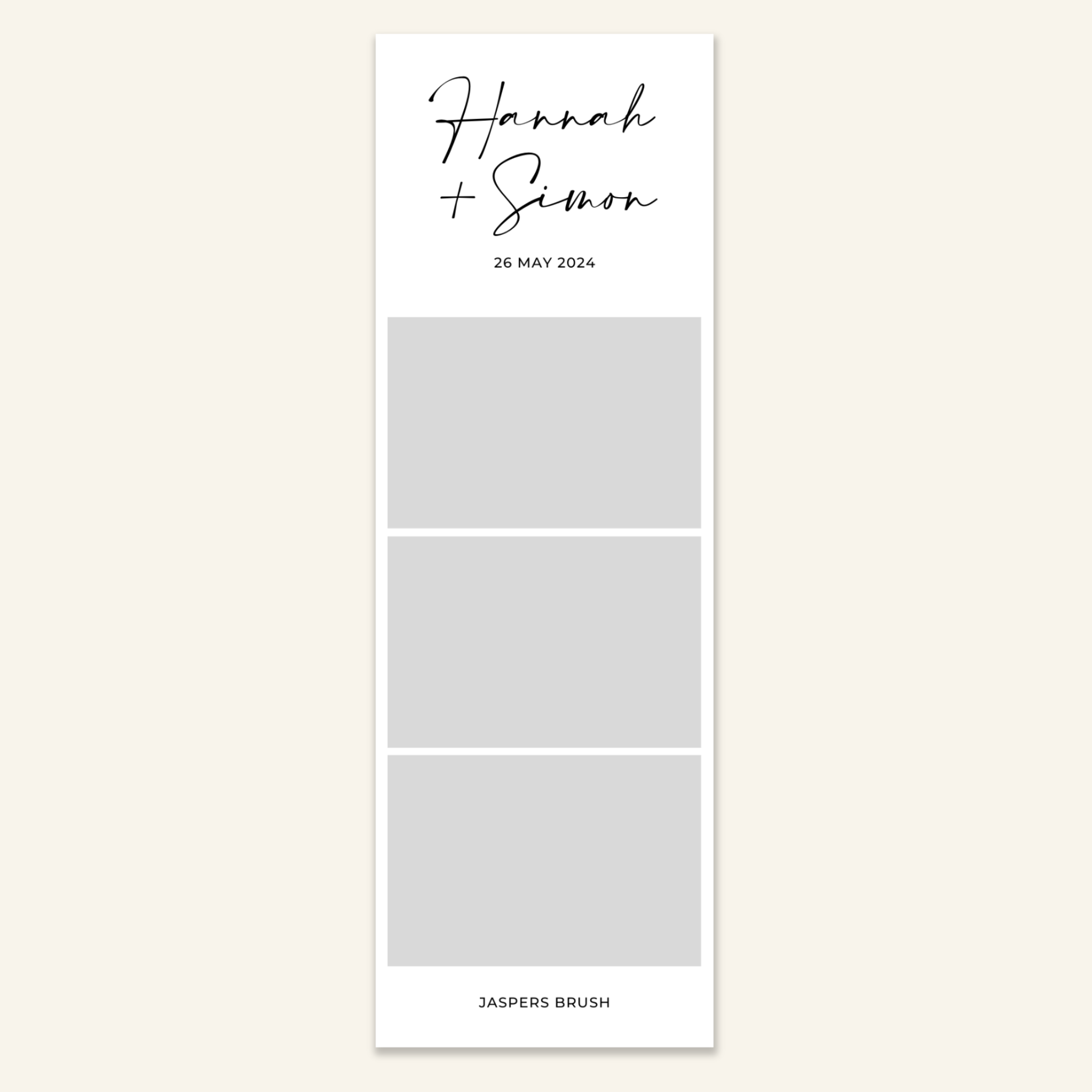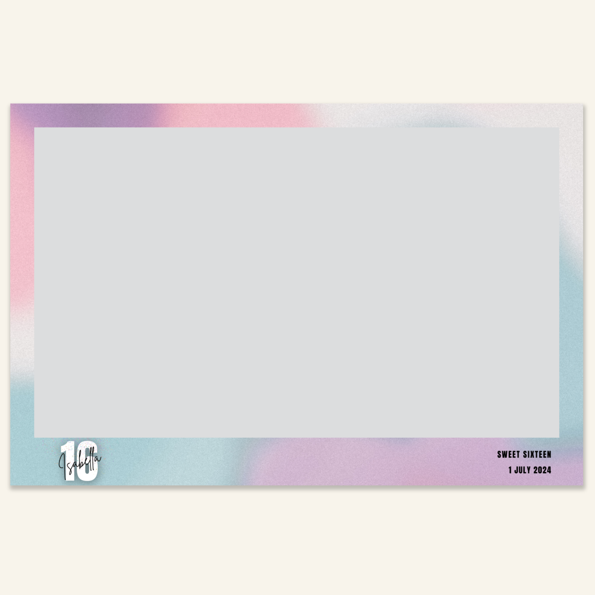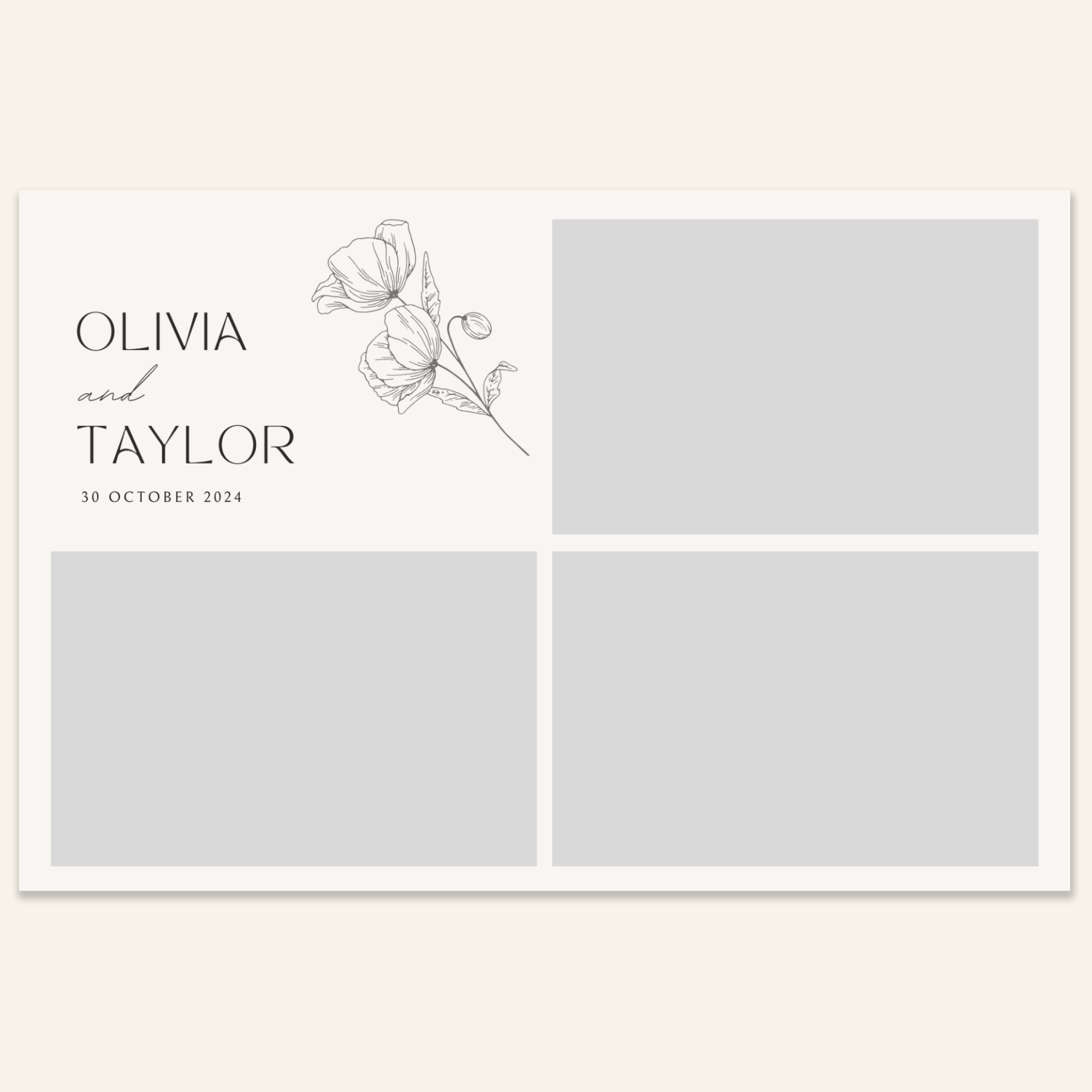Step 3: Personalise your print template by adding your event name, date, and/or custom message. (eg. Sophia & Lucas / 12 April 2024 / Thanks for joining us!)