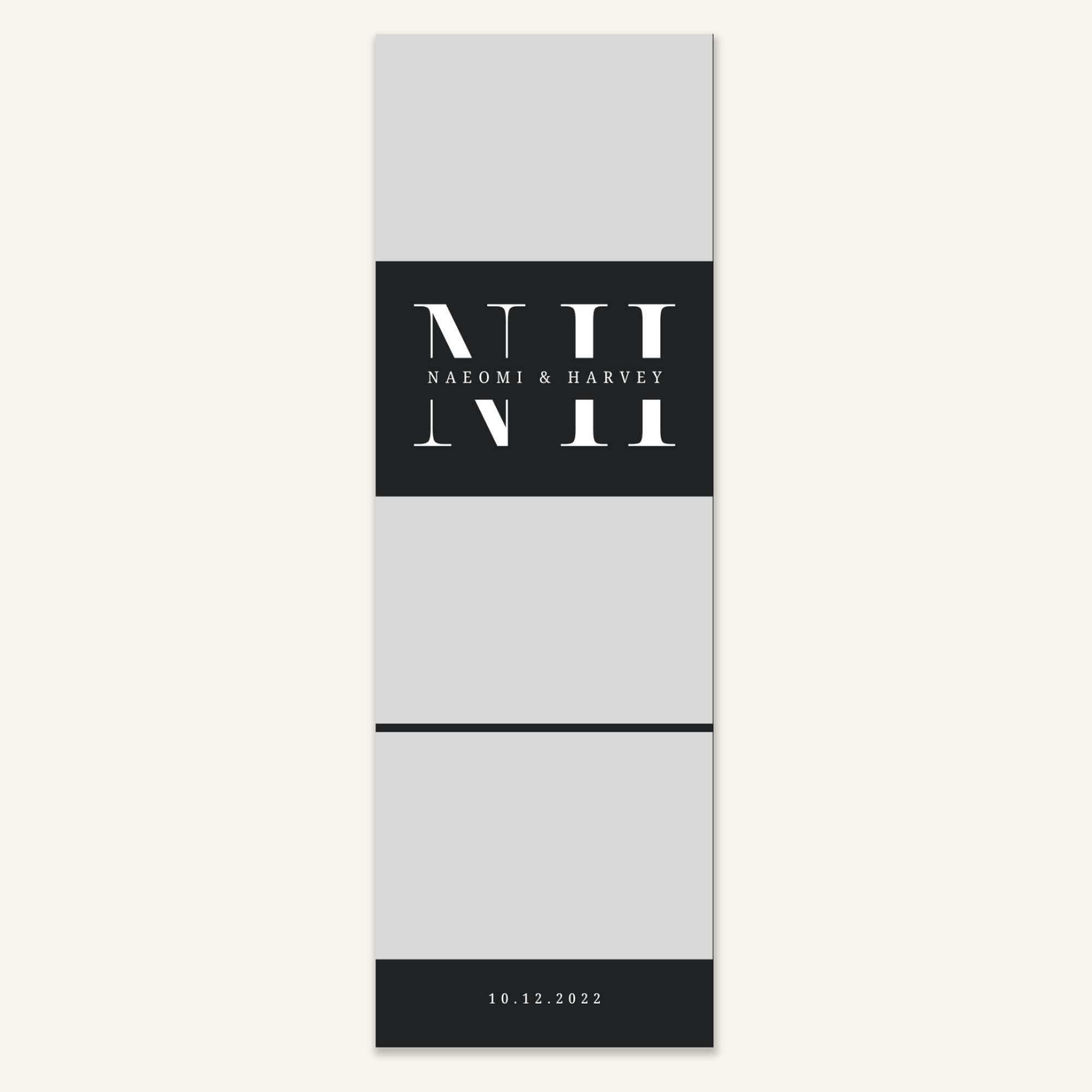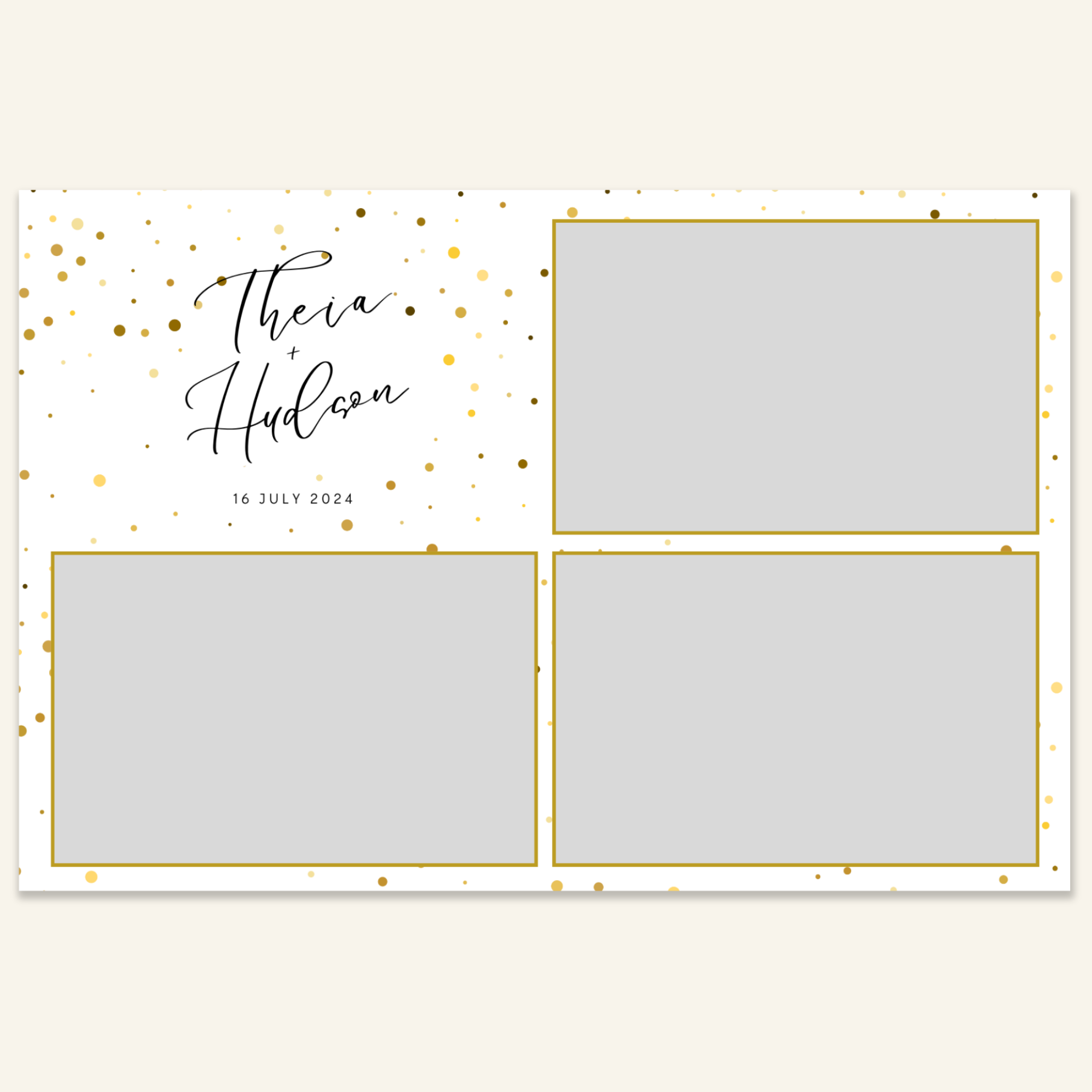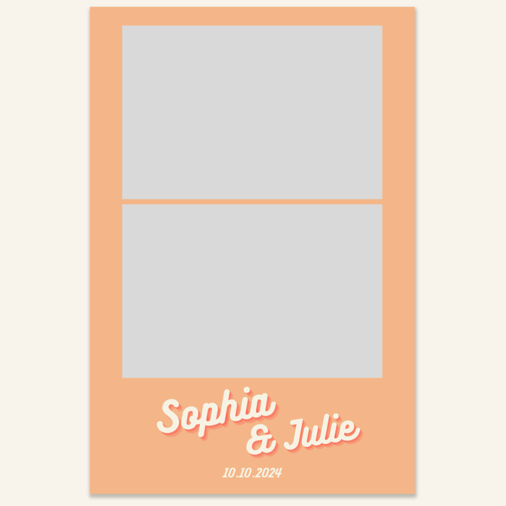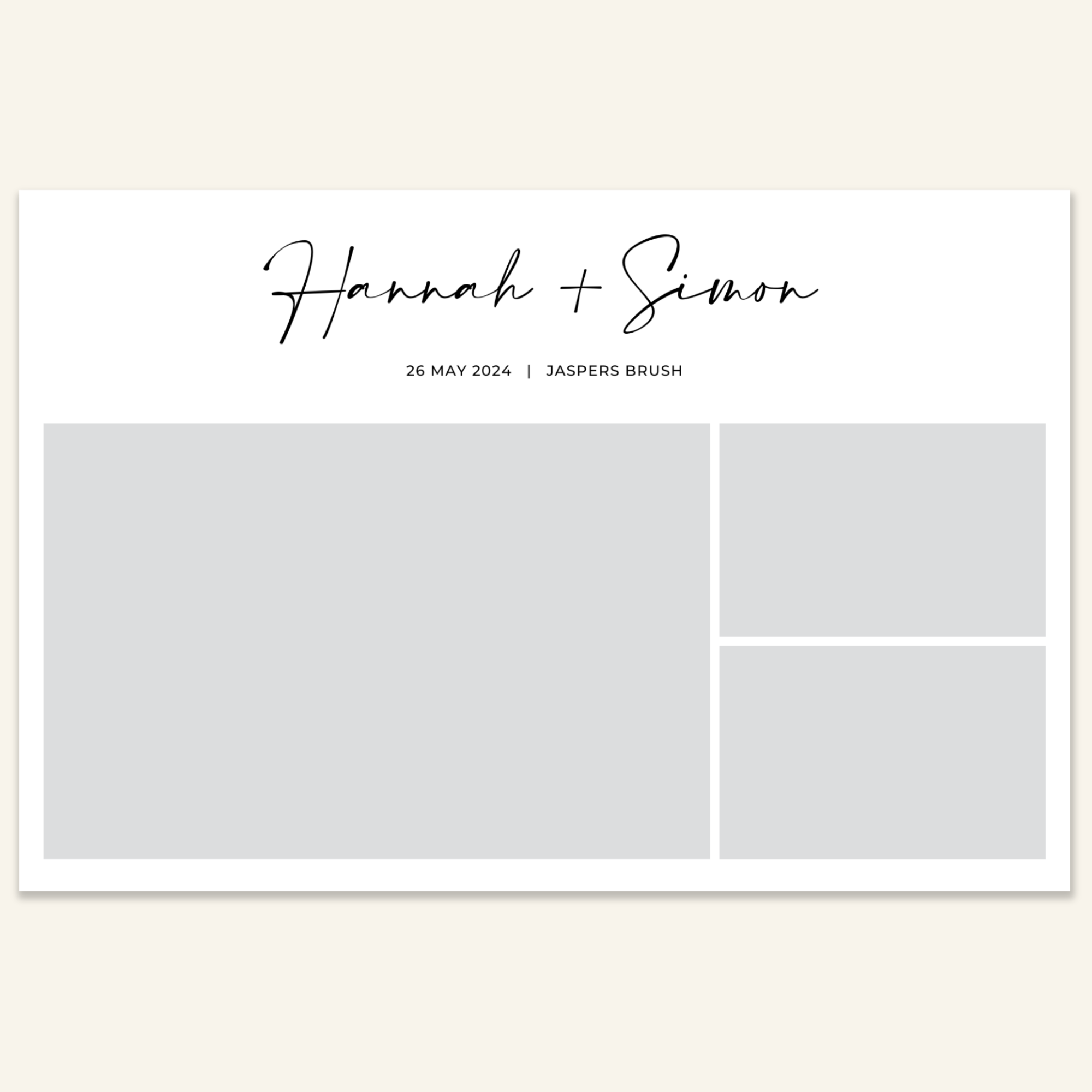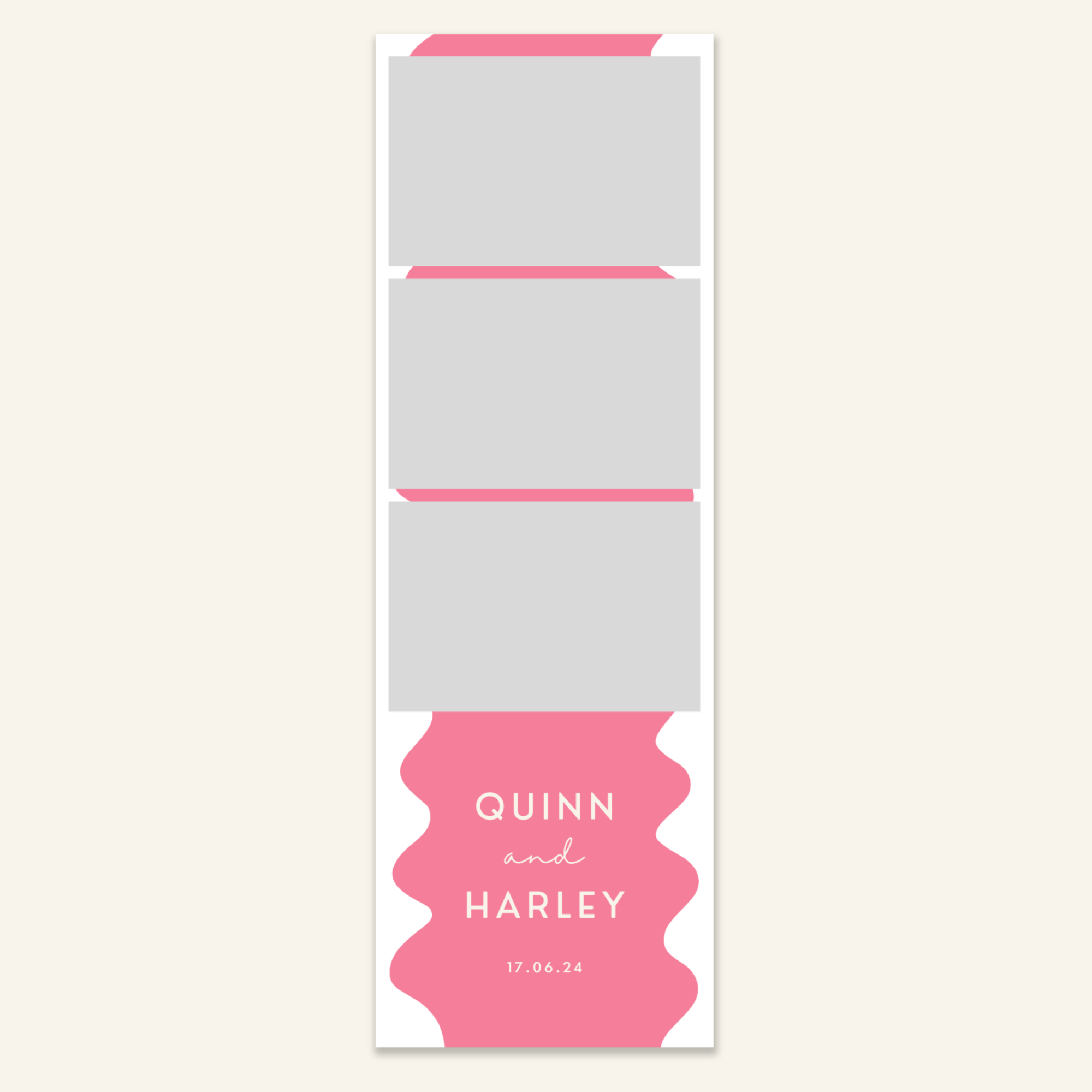 Step 3: Personalise your print template by adding your event name, date, and/or custom message. (eg. Sophia & Lucas / 12 April 2024 / Thanks for joining us!)