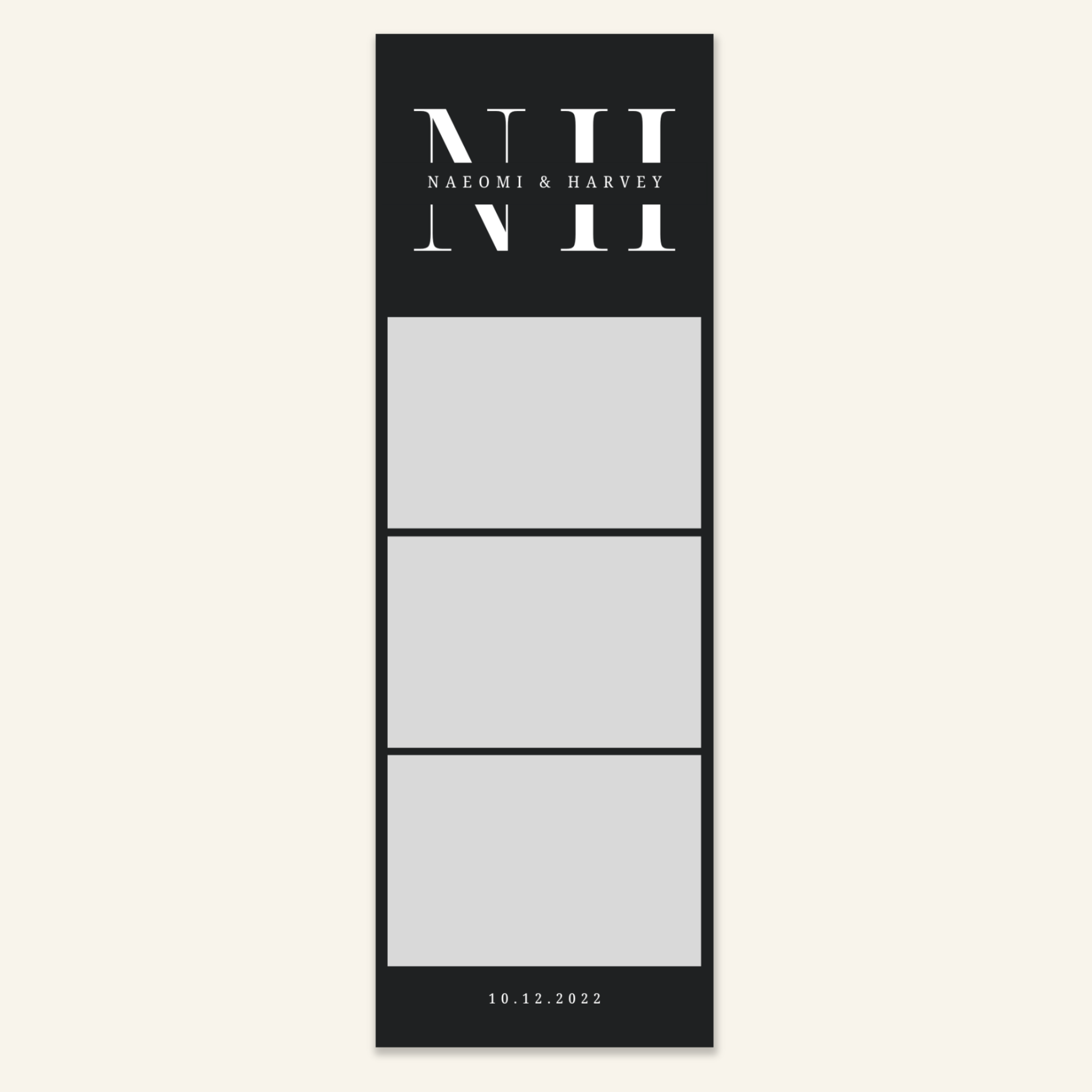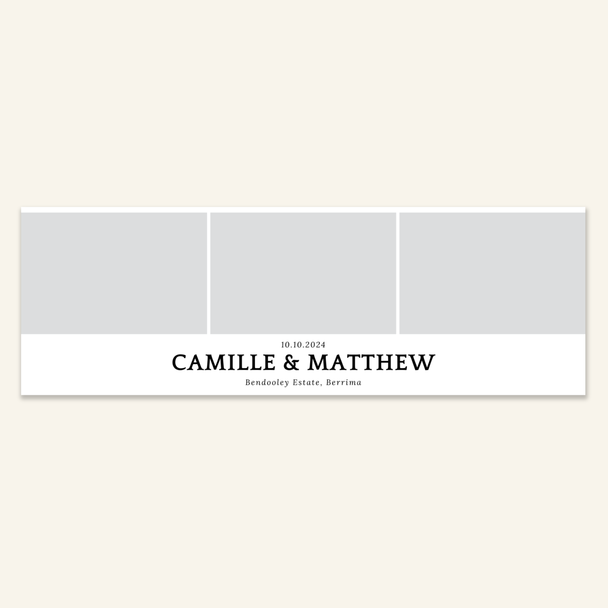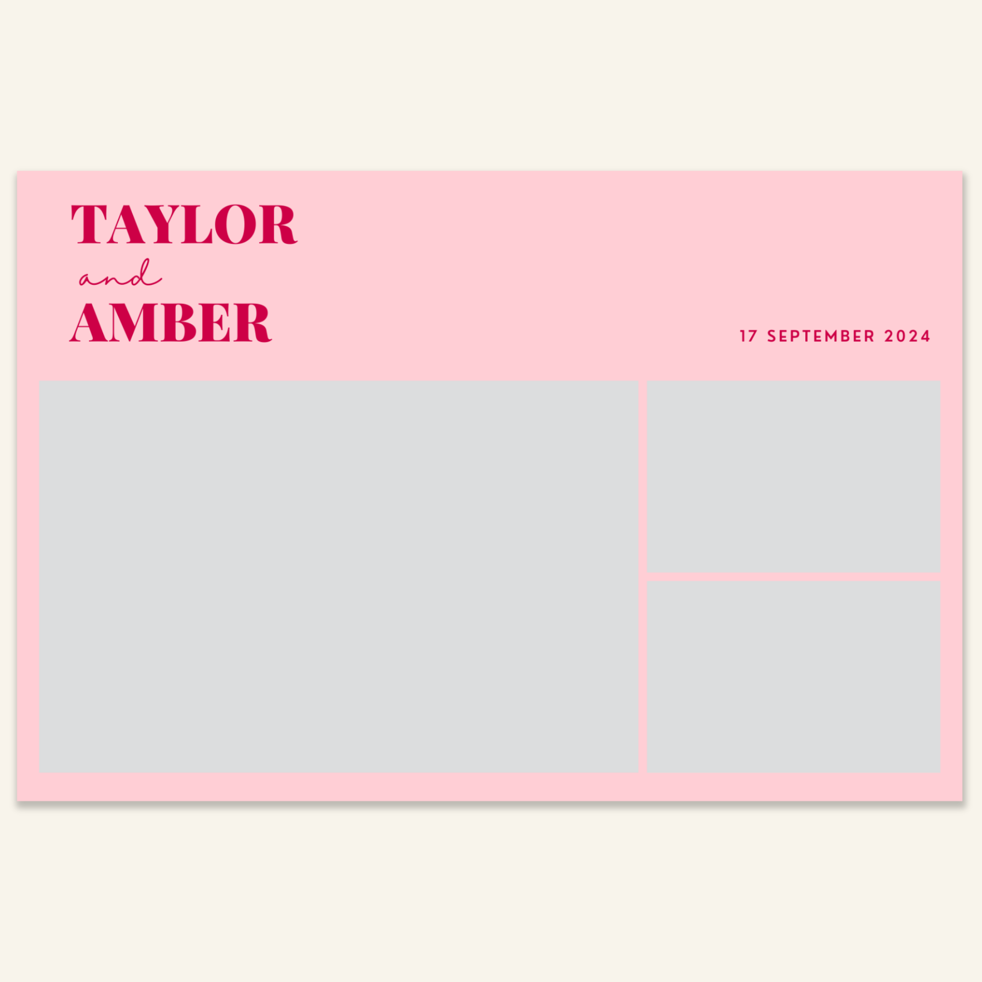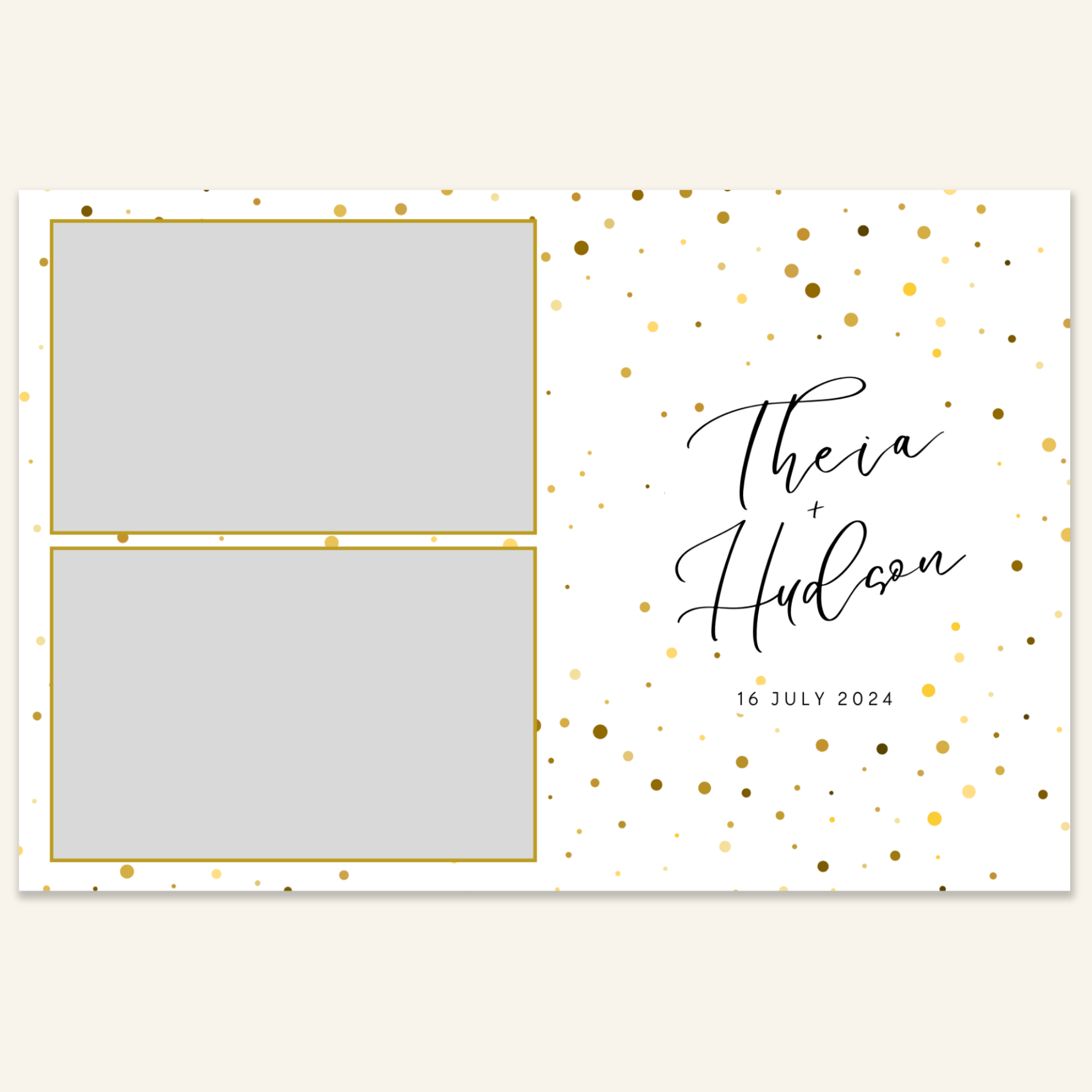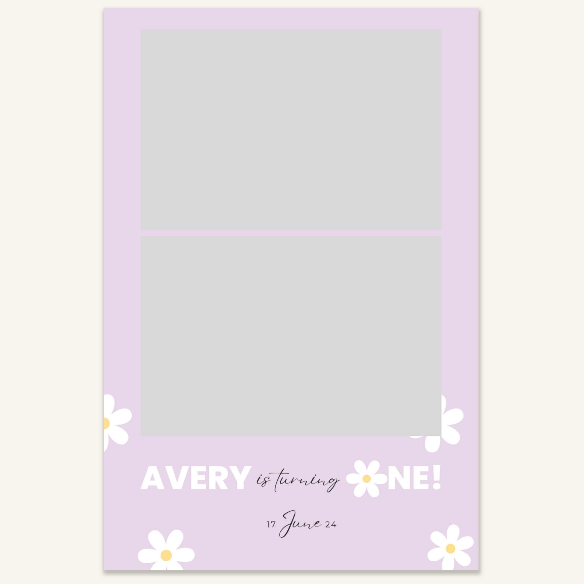 Step 3: Personalise your print template by adding your event name, date, and/or custom message. (eg. Sophia & Lucas / 12 April 2024 / Thanks for joining us!)