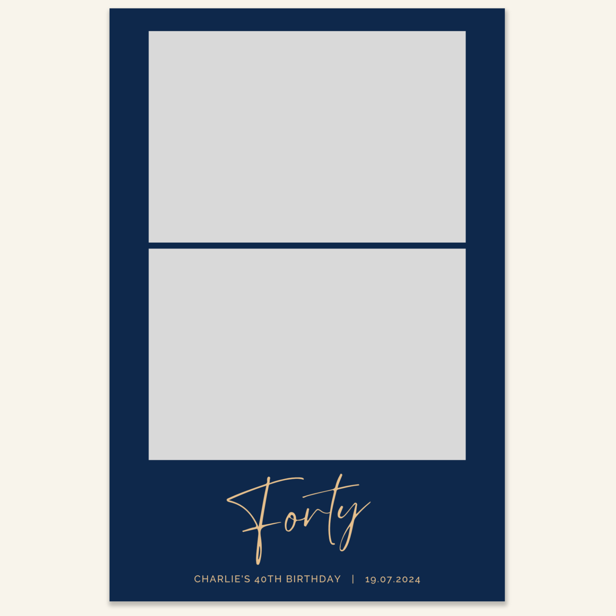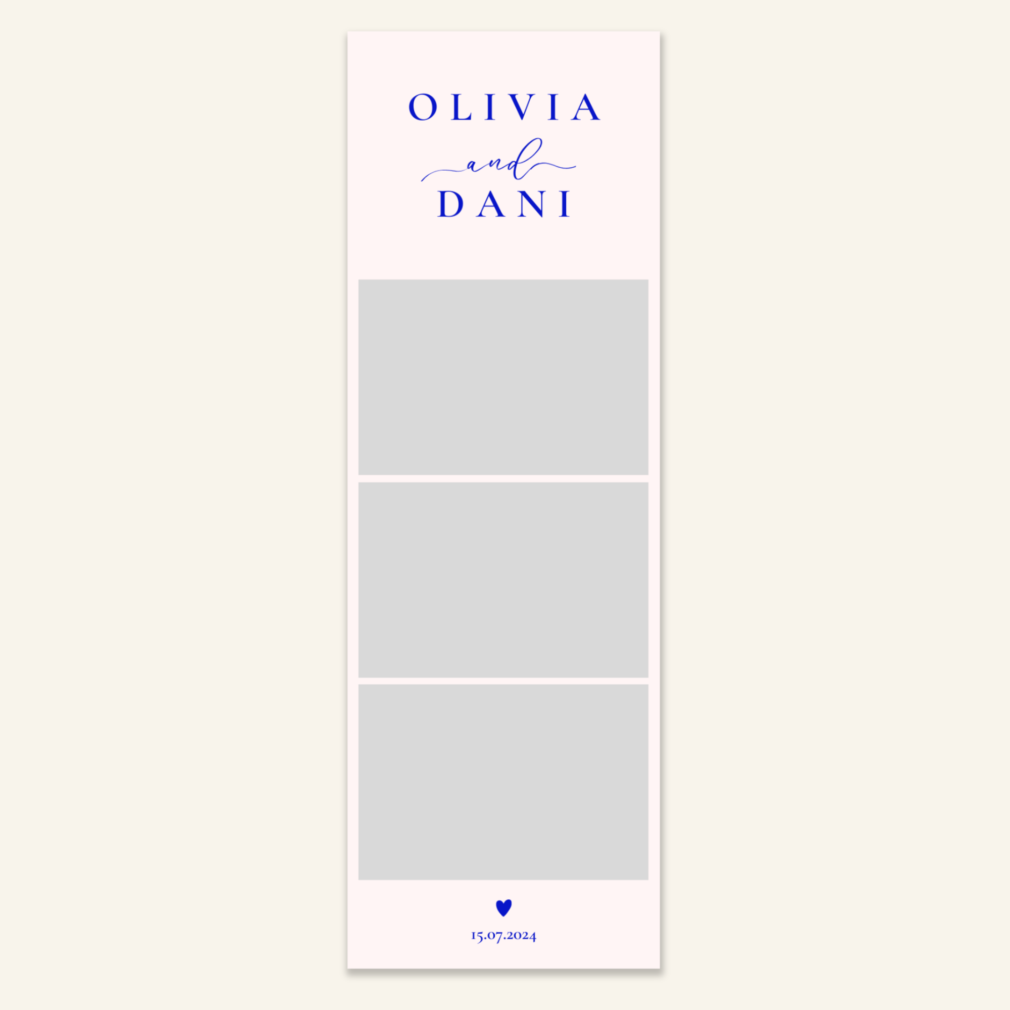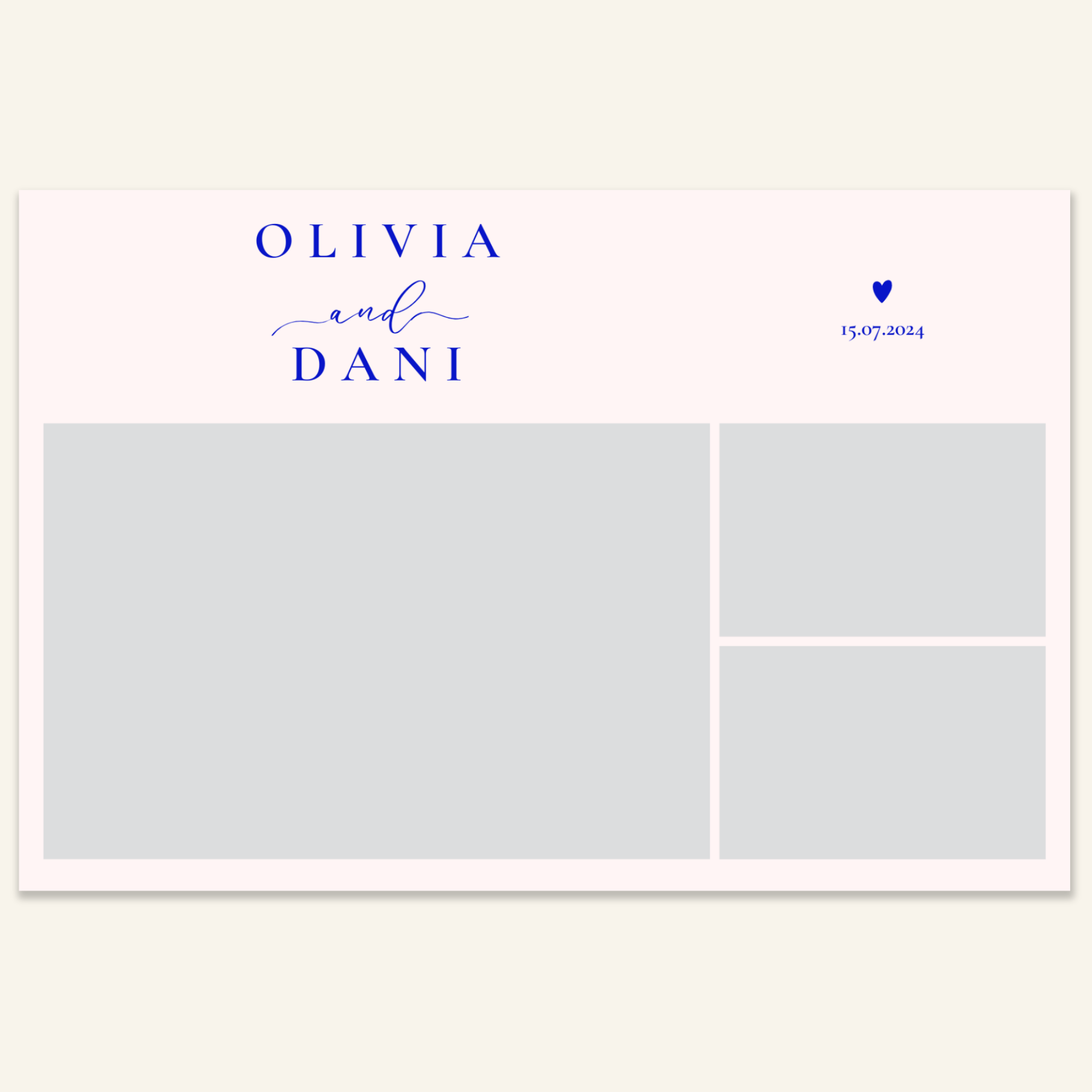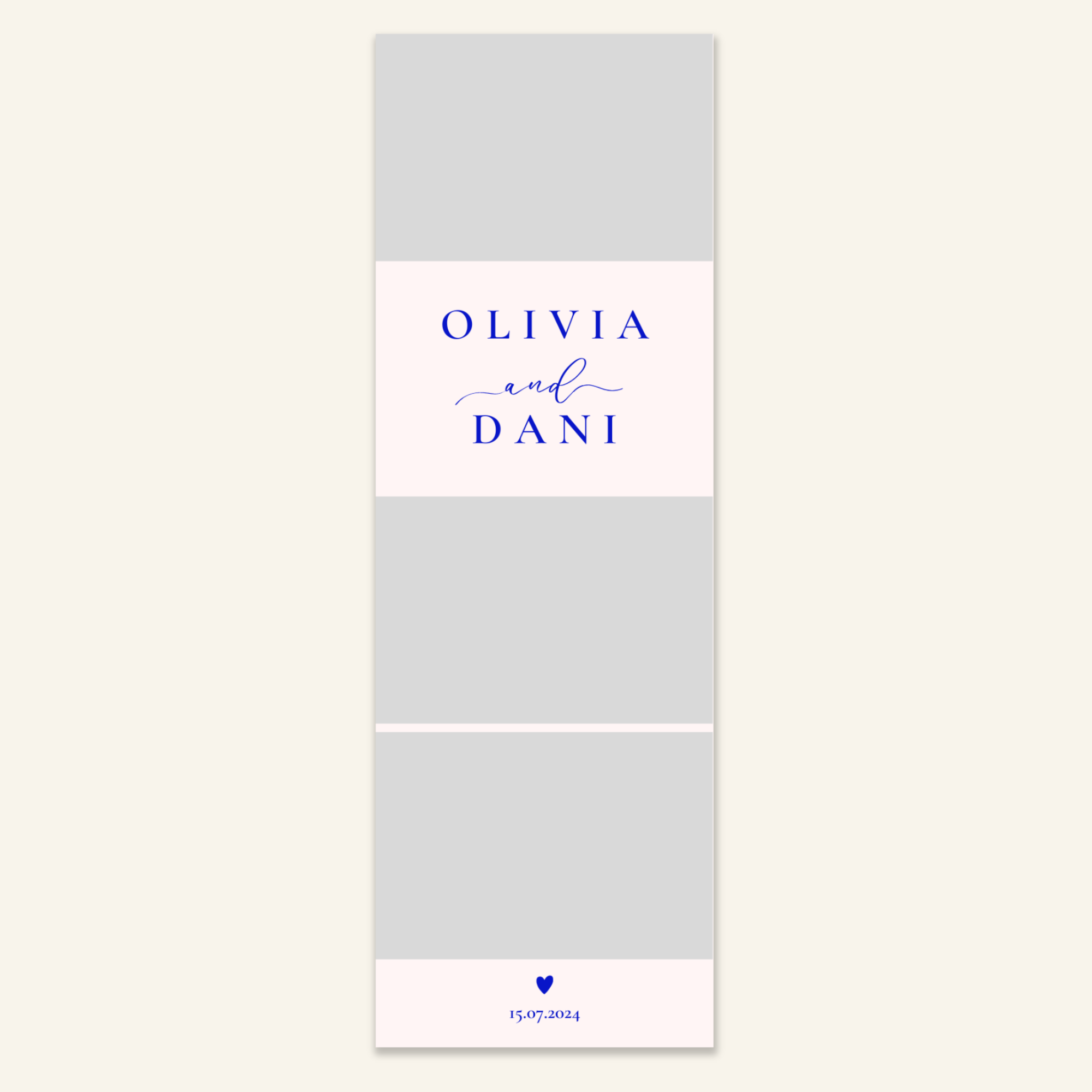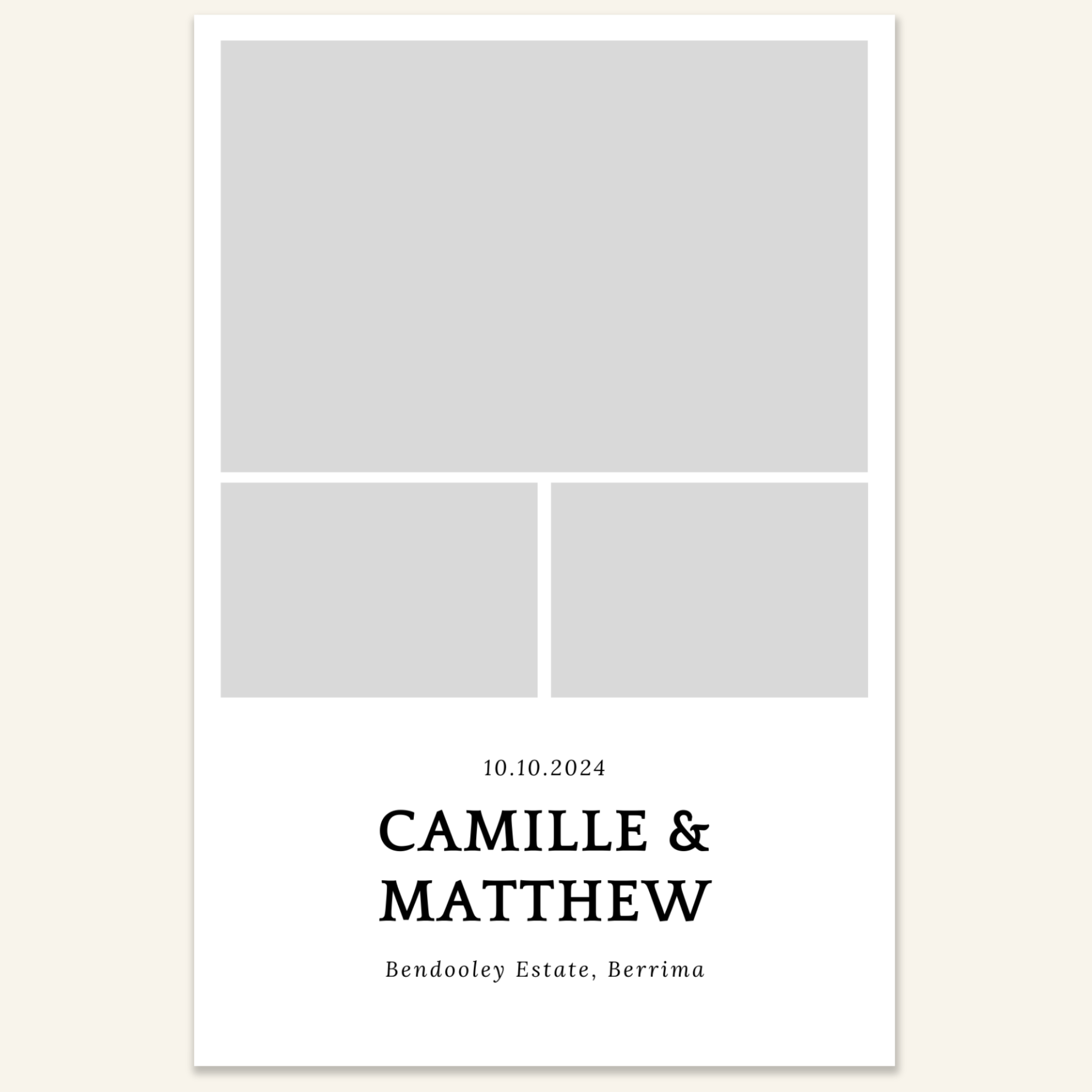 Step 3: Personalise your print template by adding your event name, date, and/or custom message. (eg. Sophia & Lucas / 12 April 2024 / Thanks for joining us!)