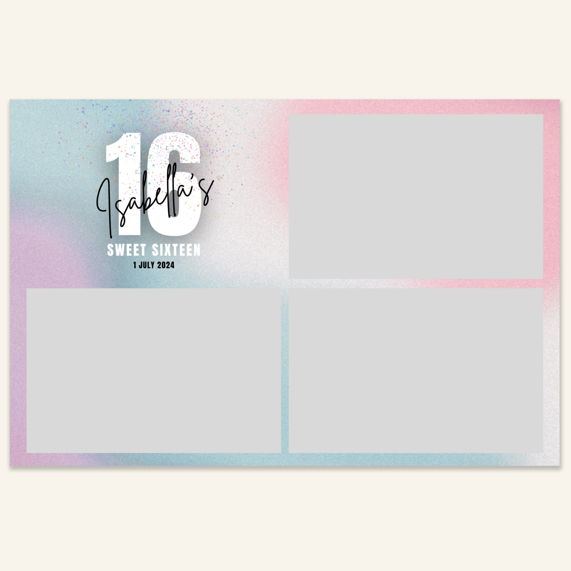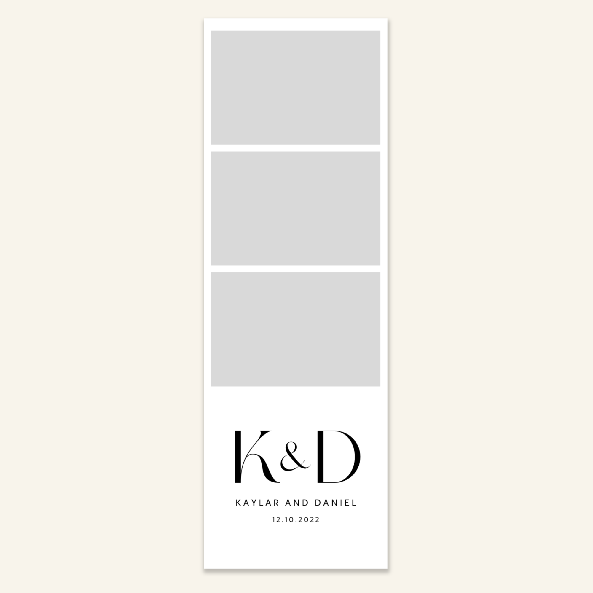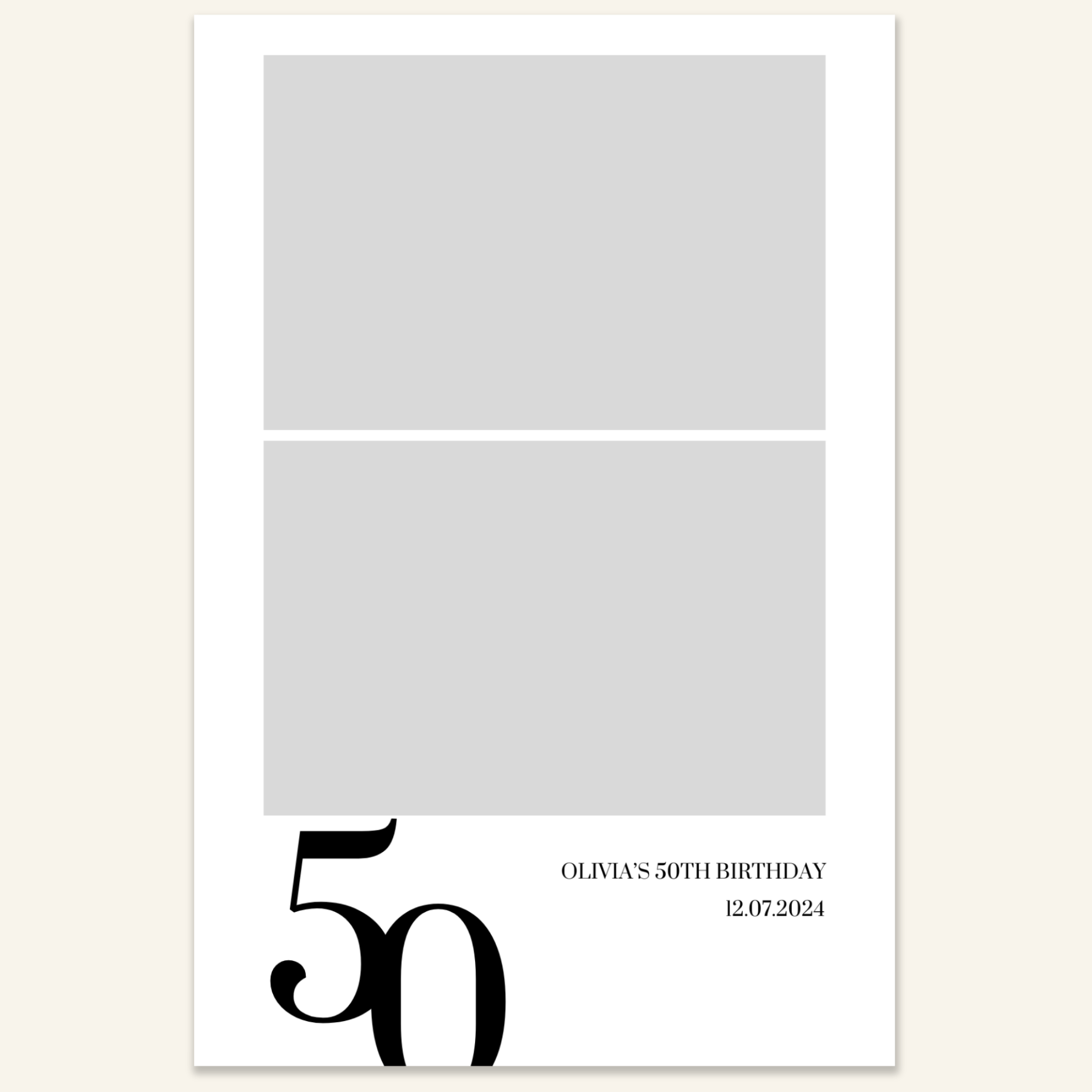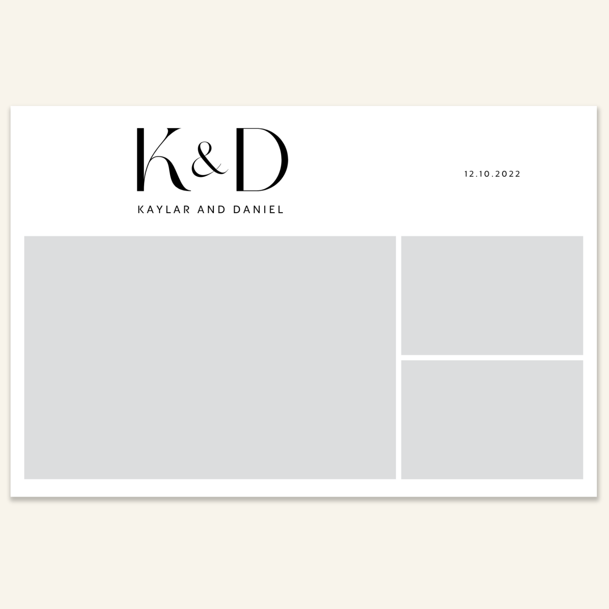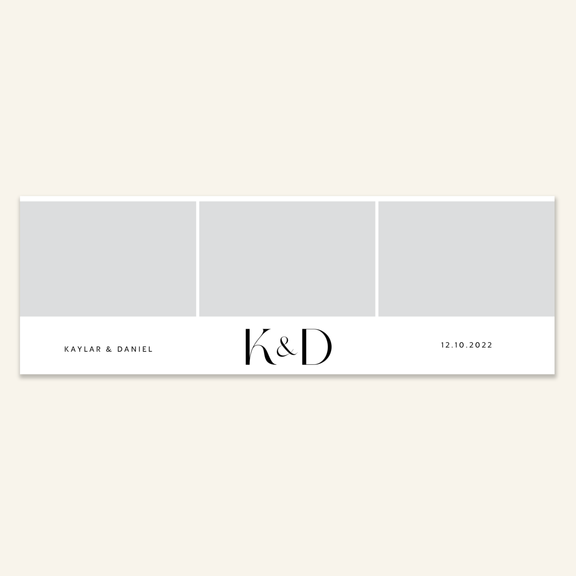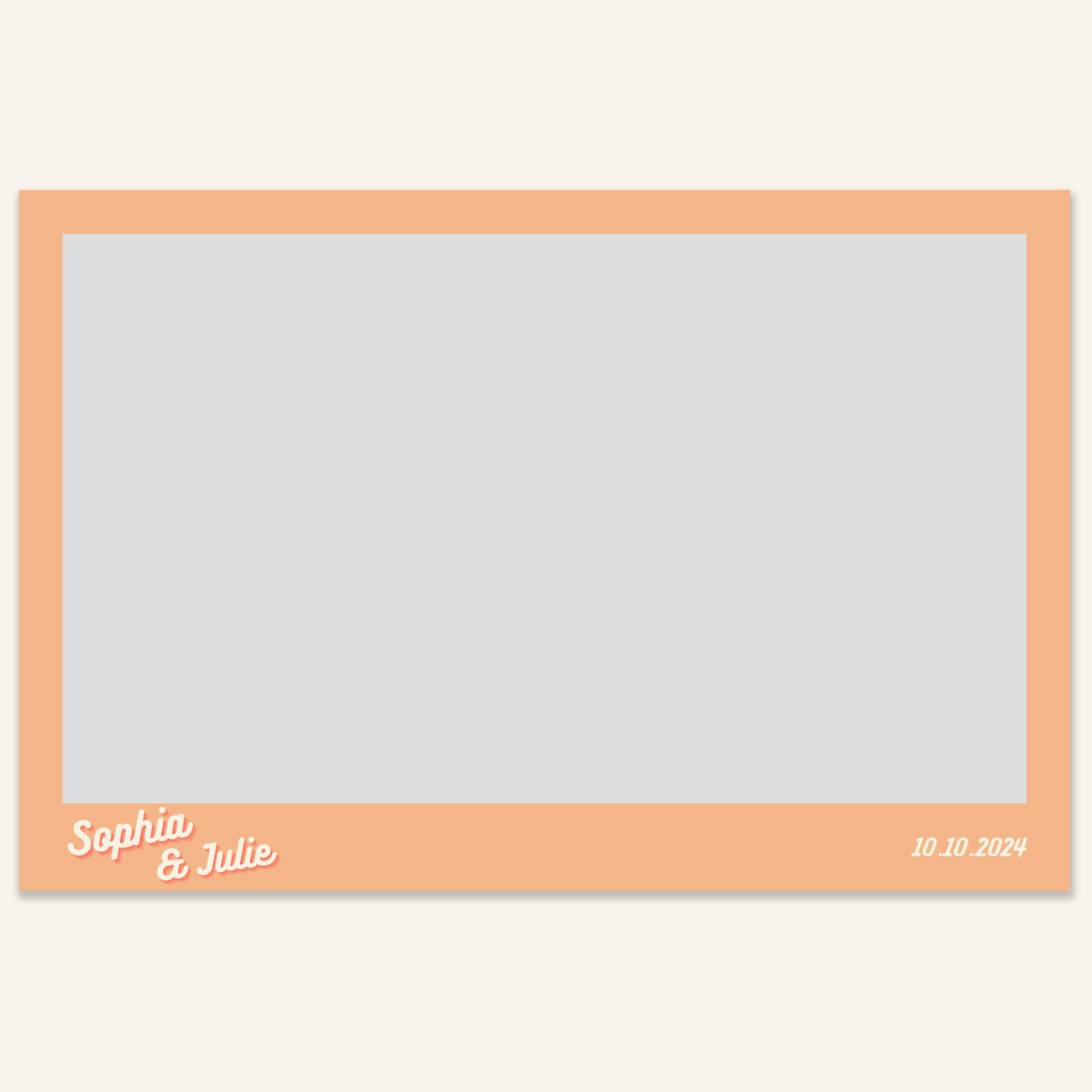 Step 3: Personalise your print template by adding your event name, date, and/or custom message. (eg. Sophia & Lucas / 12 April 2024 / Thanks for joining us!)
