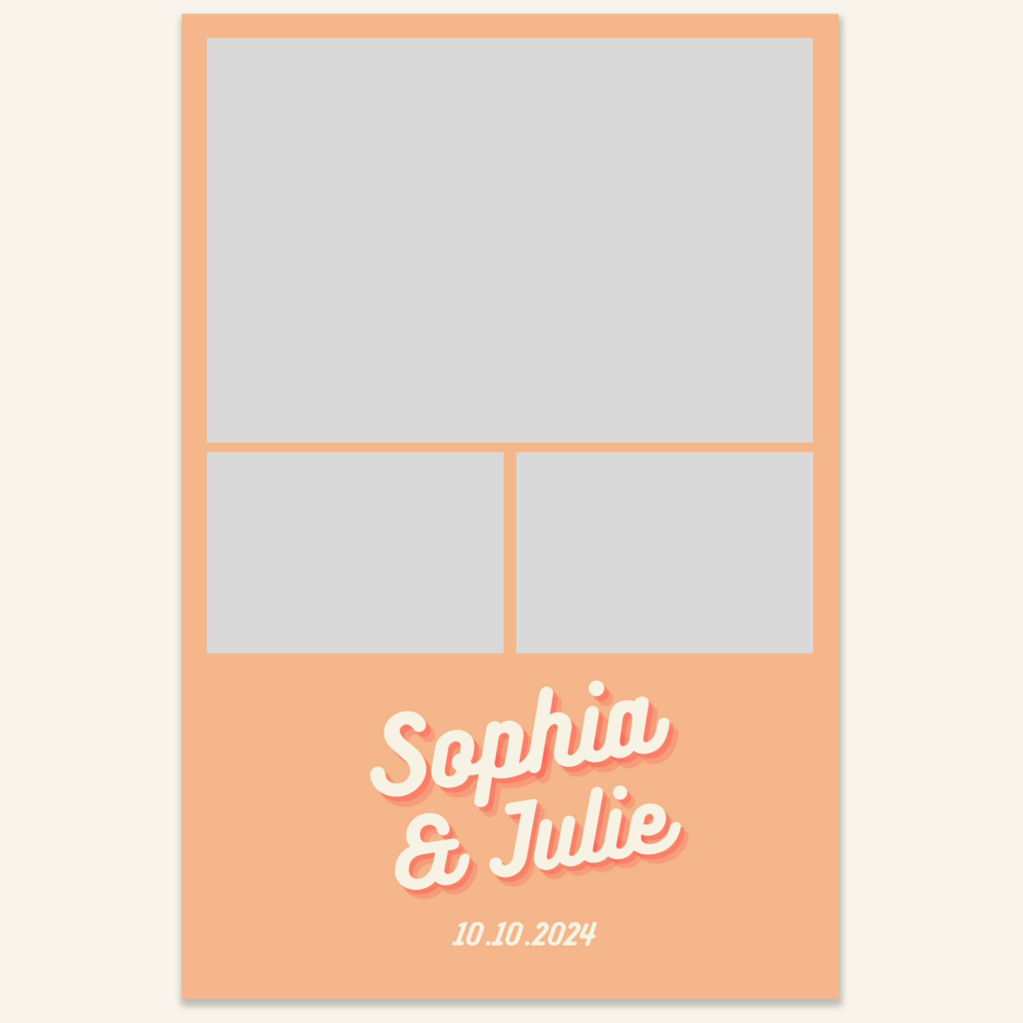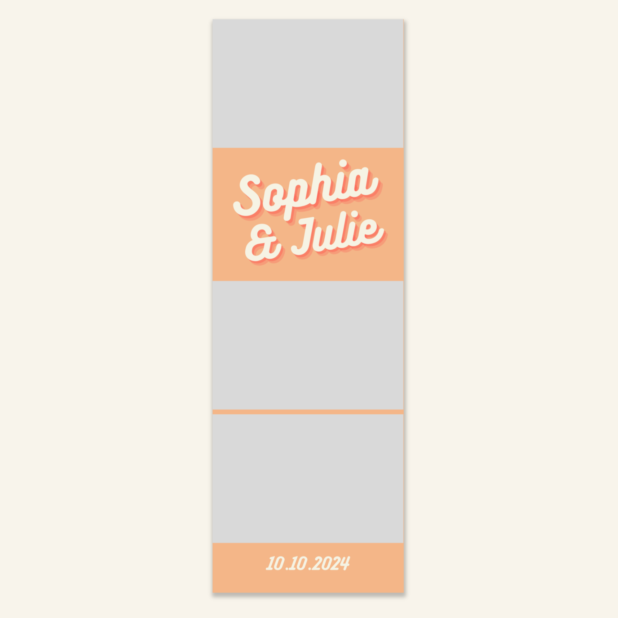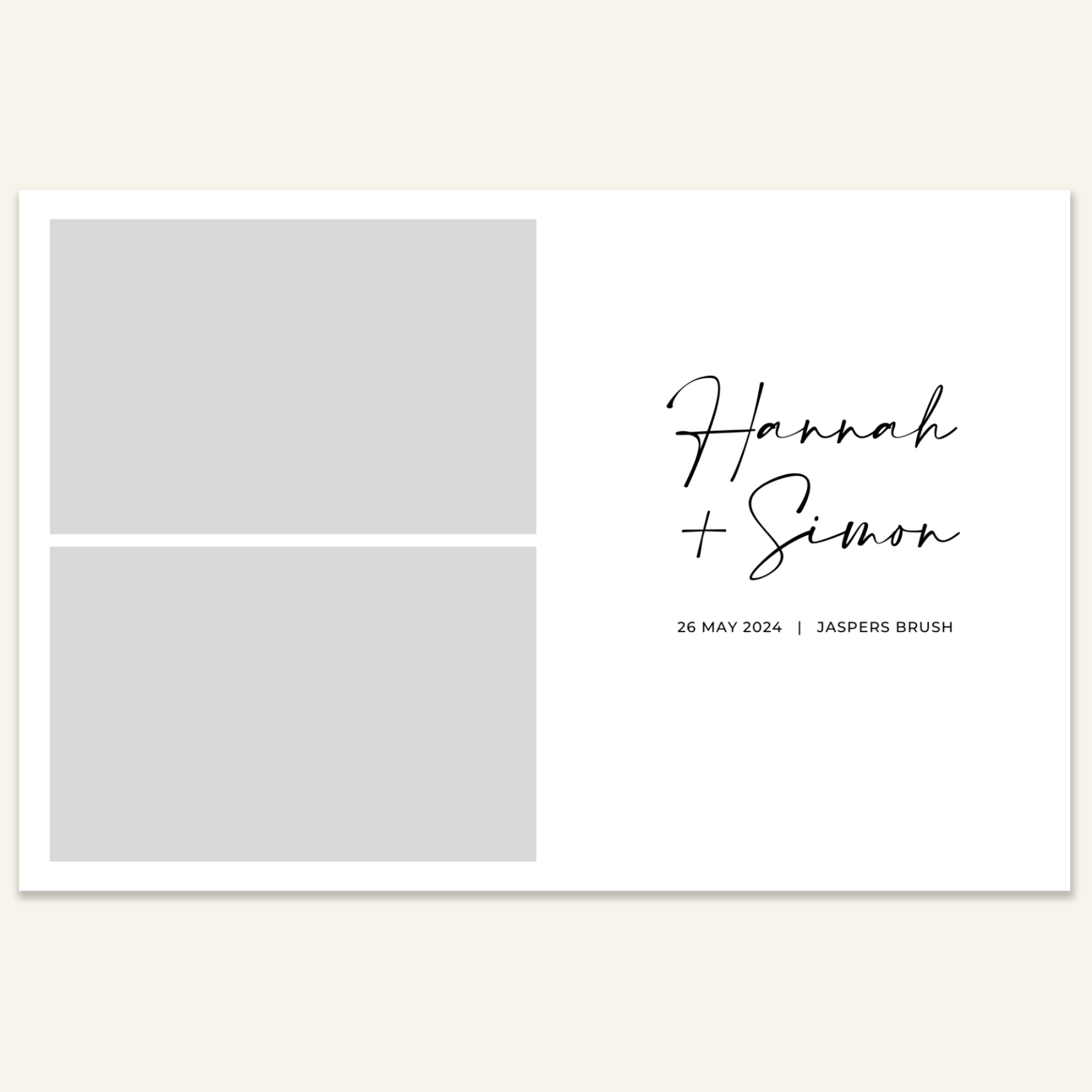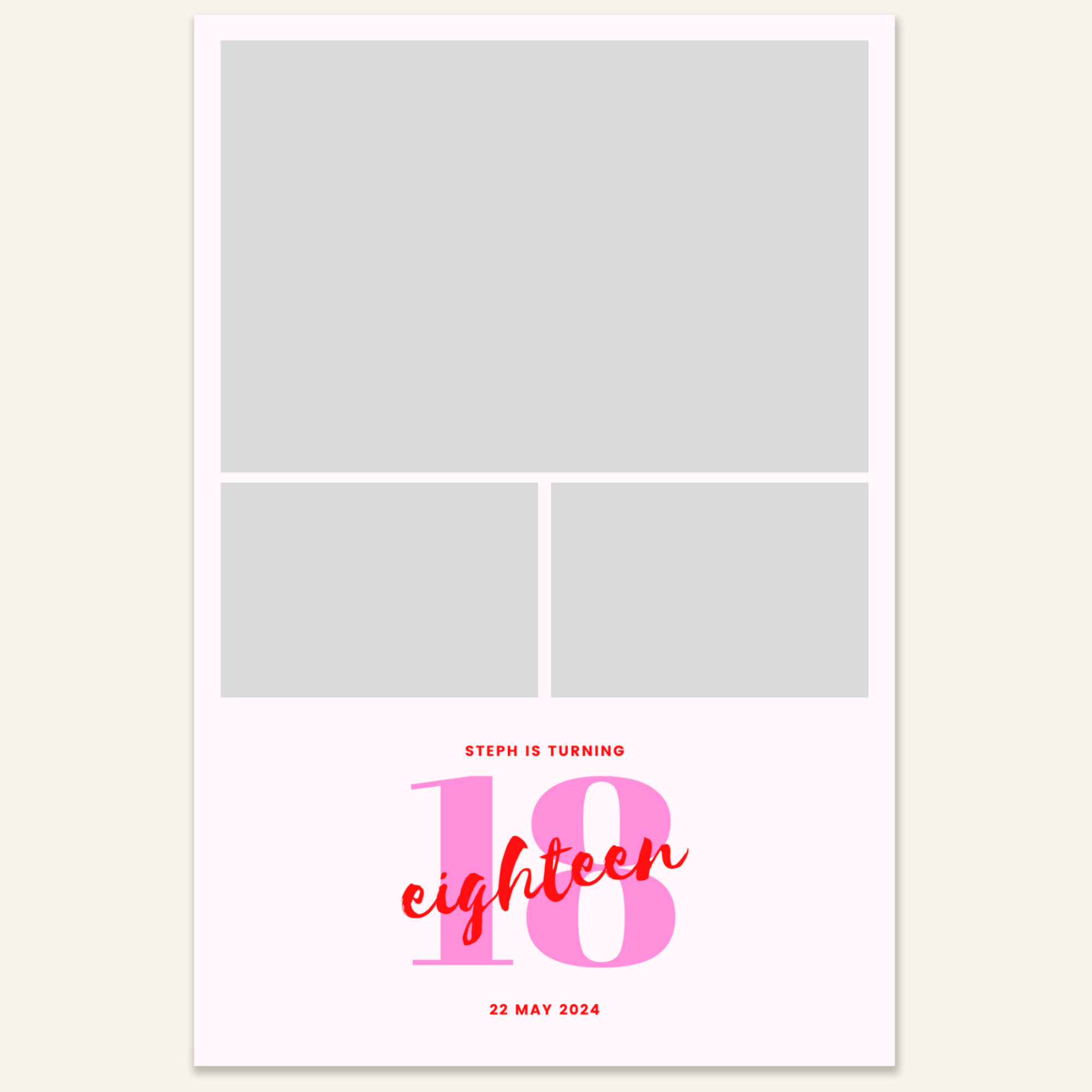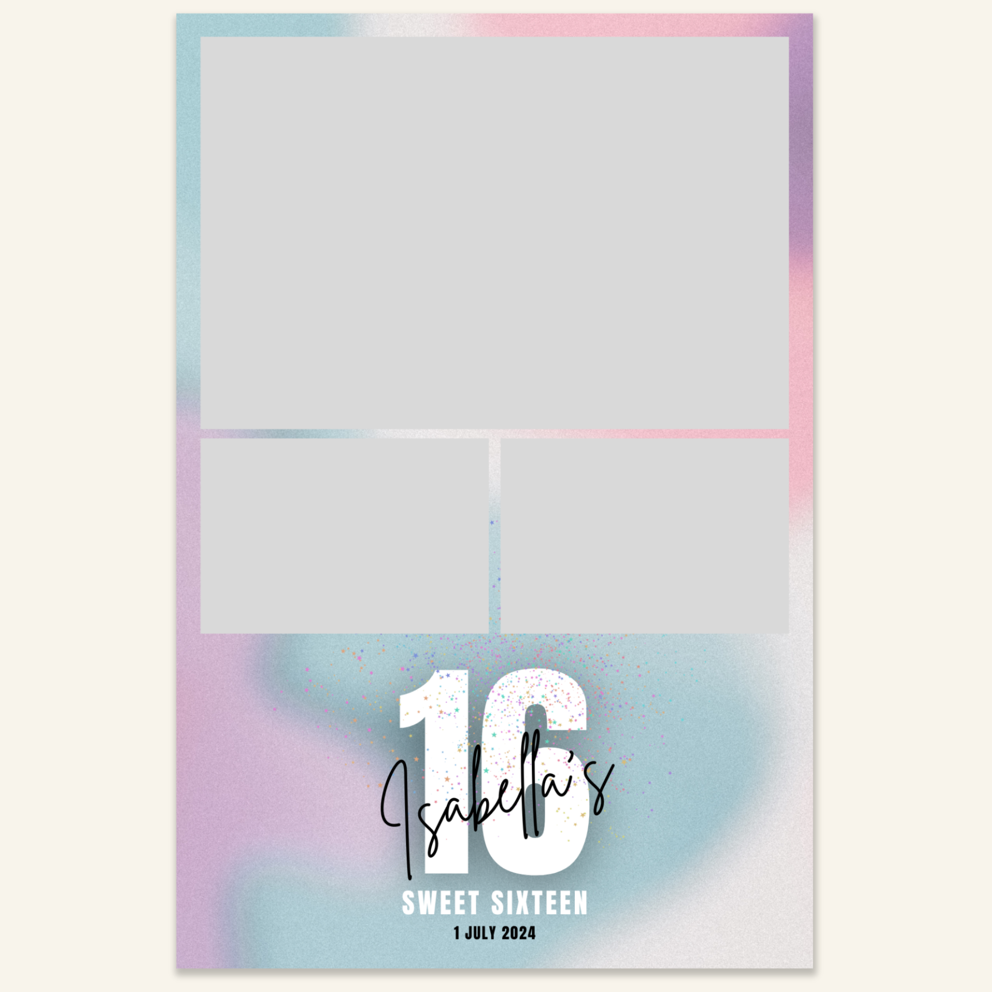 Step 3: Personalise your print template by adding your event name, date, and/or custom message. (eg. Sophia & Lucas / 12 April 2024 / Thanks for joining us!)