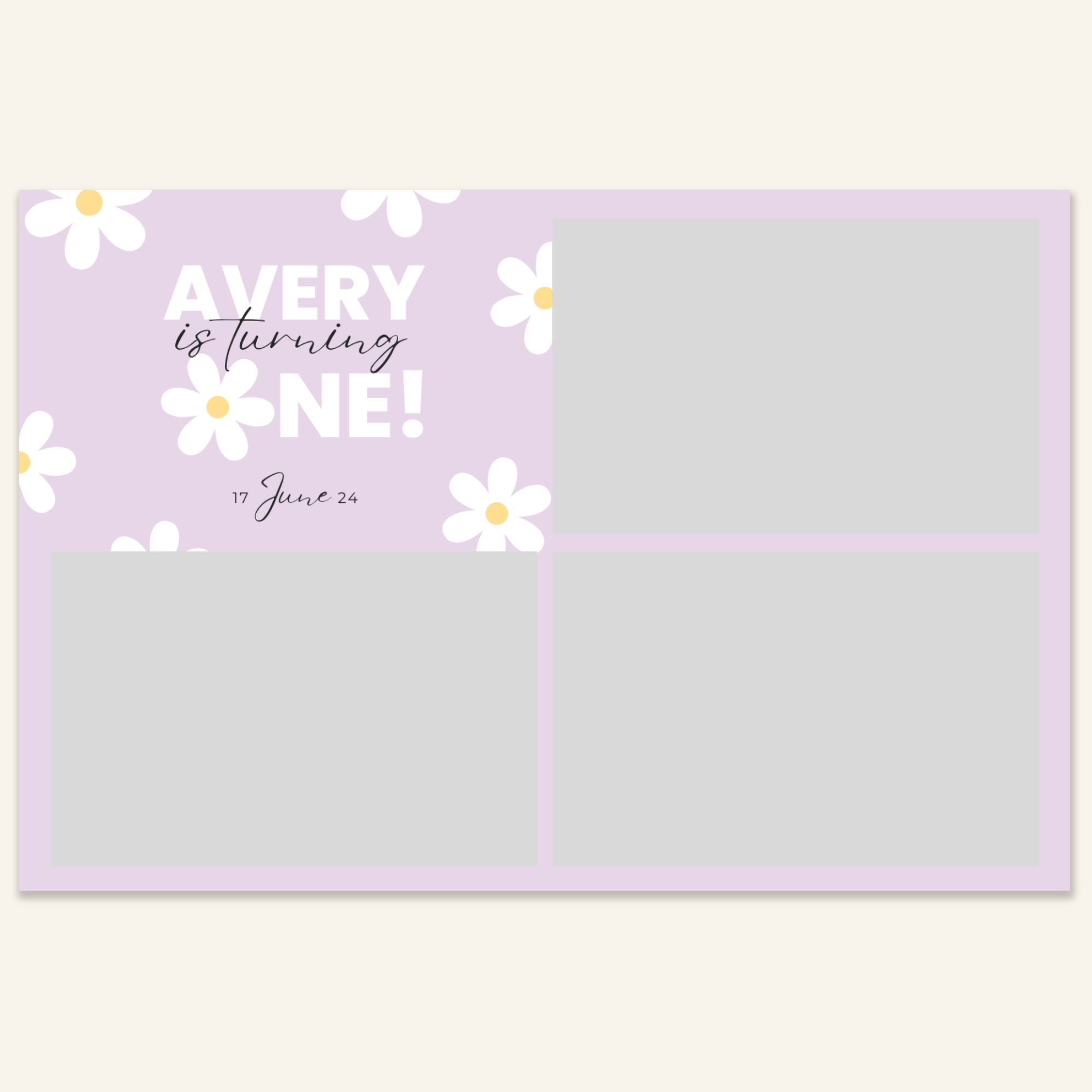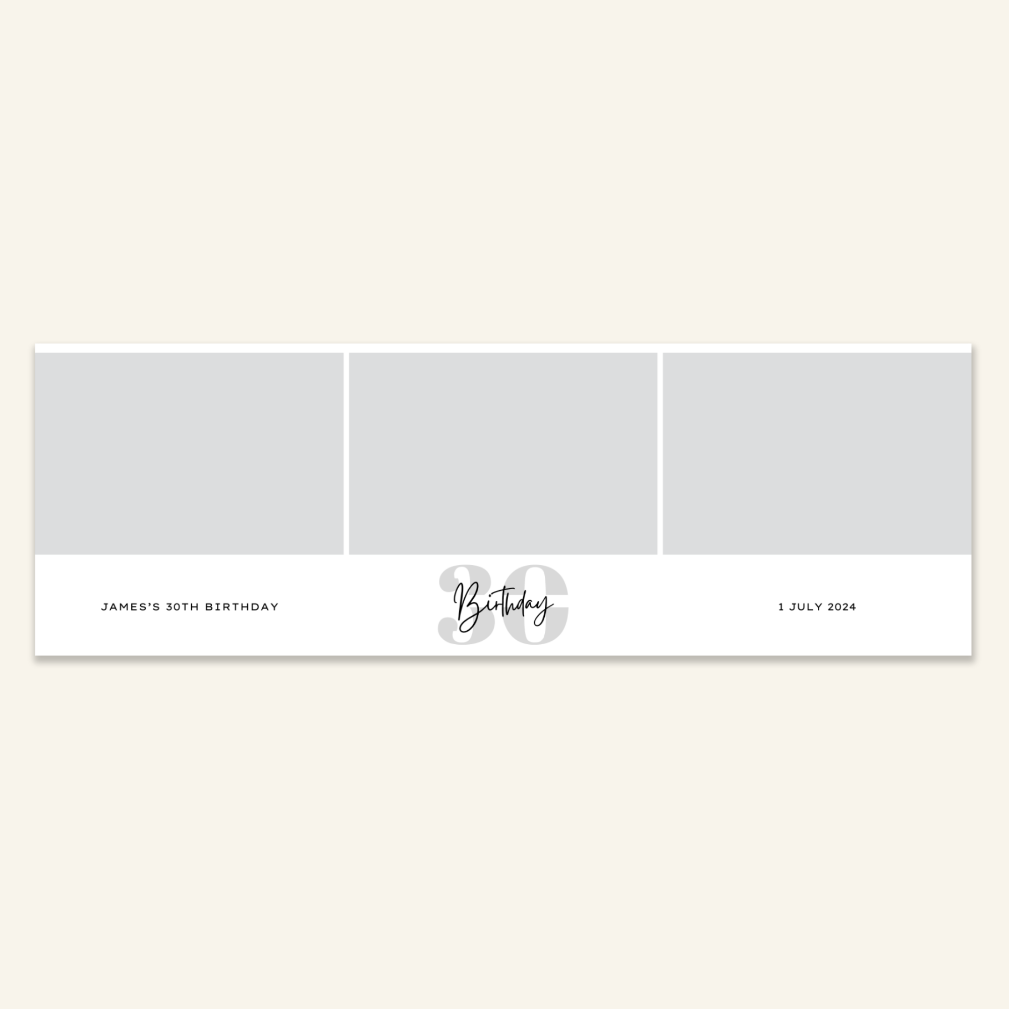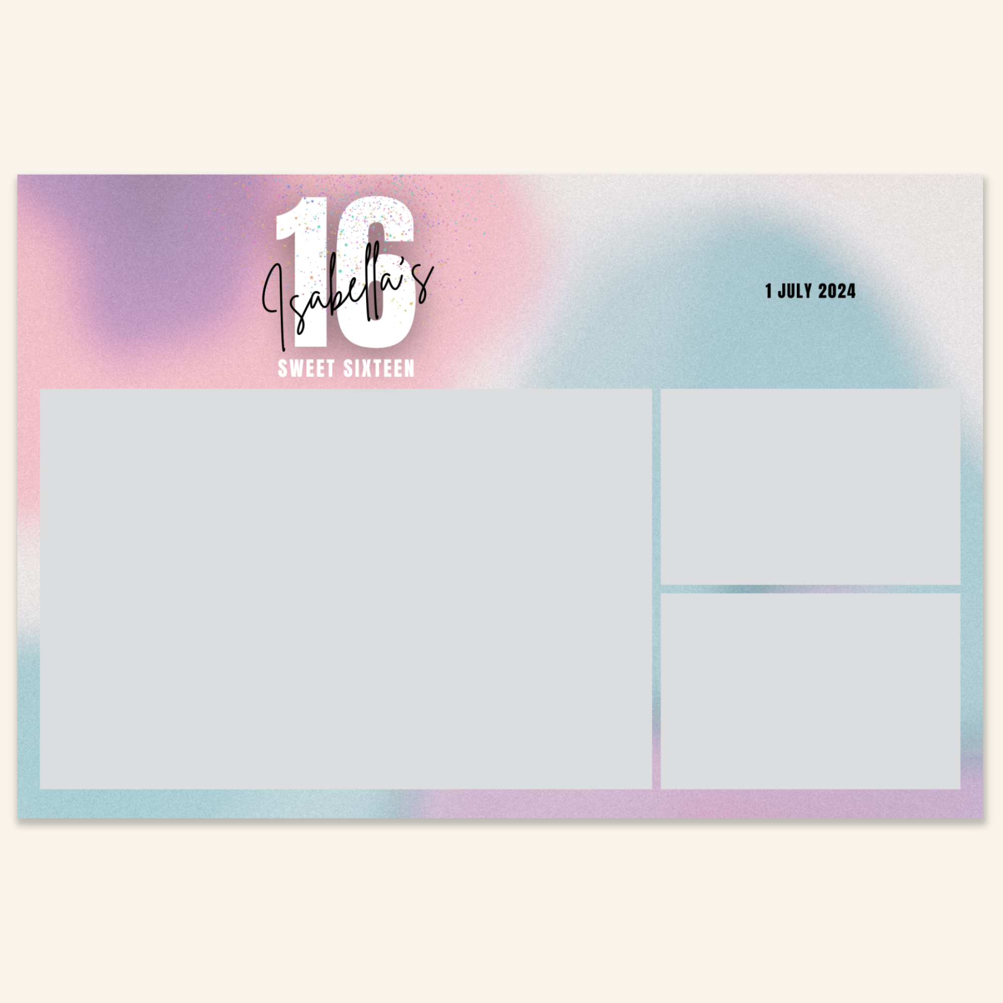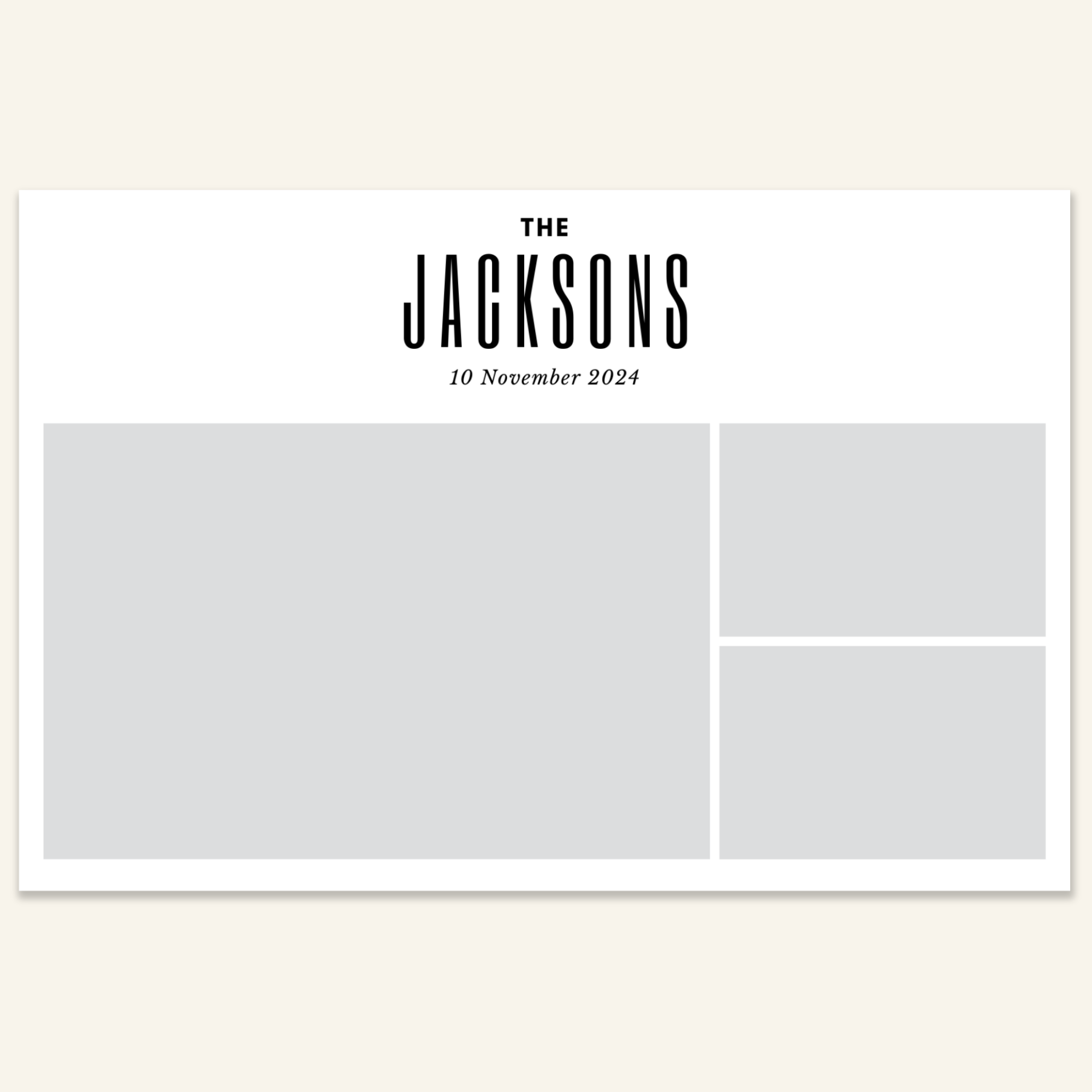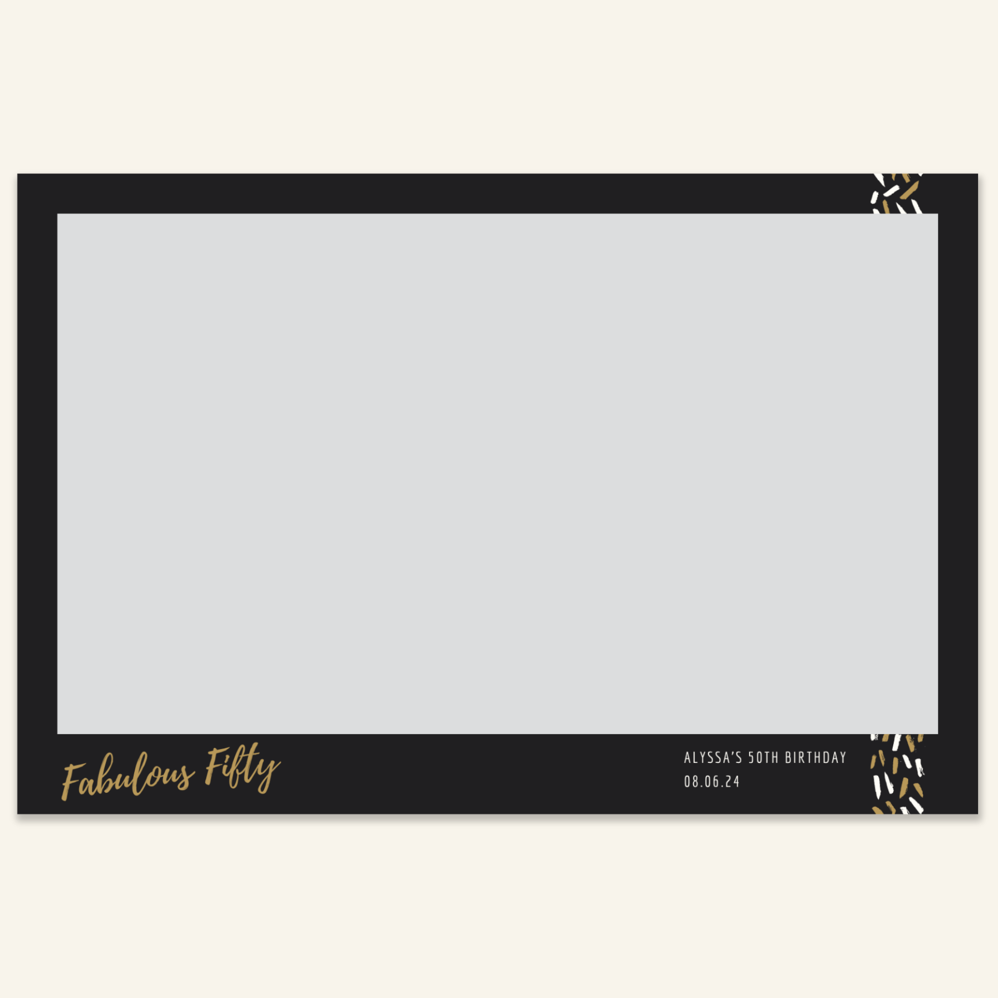 Step 3: Personalise your print template by adding your event name, date, and/or custom message. (eg. Sophia & Lucas / 12 April 2024 / Thanks for joining us!)