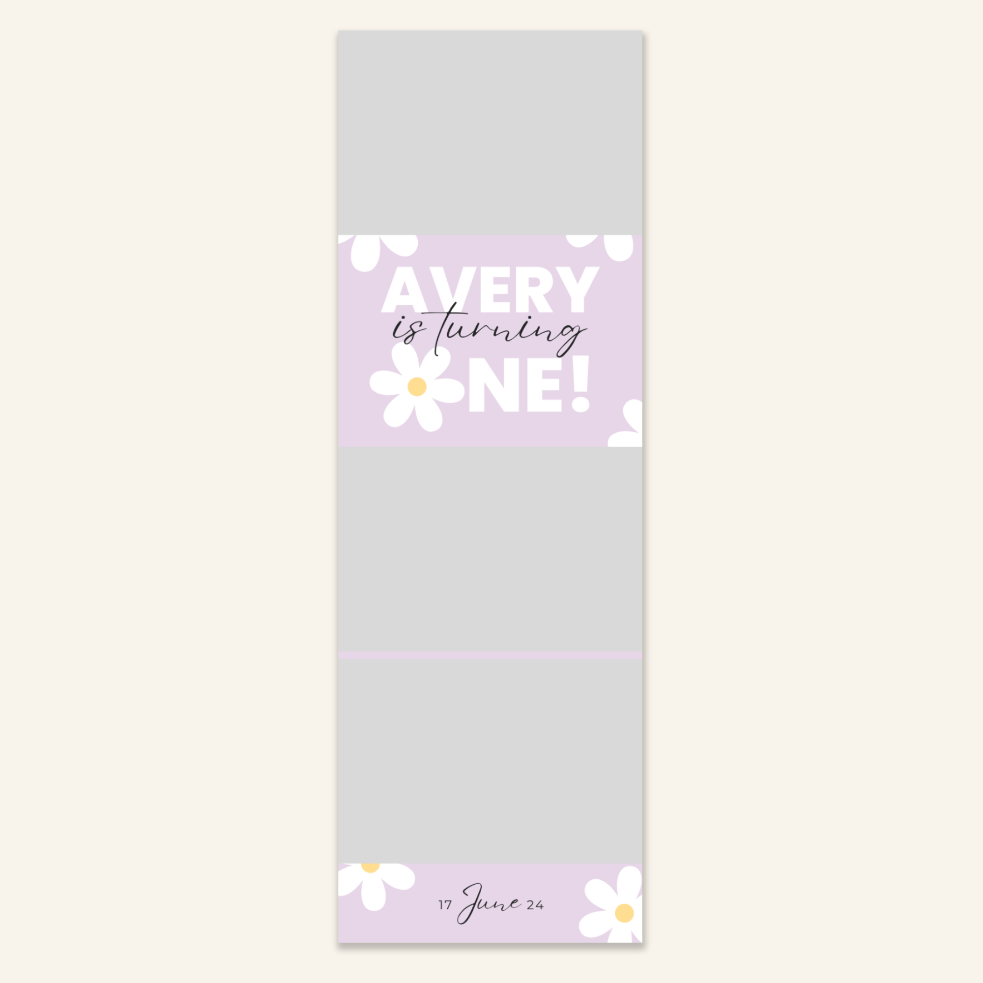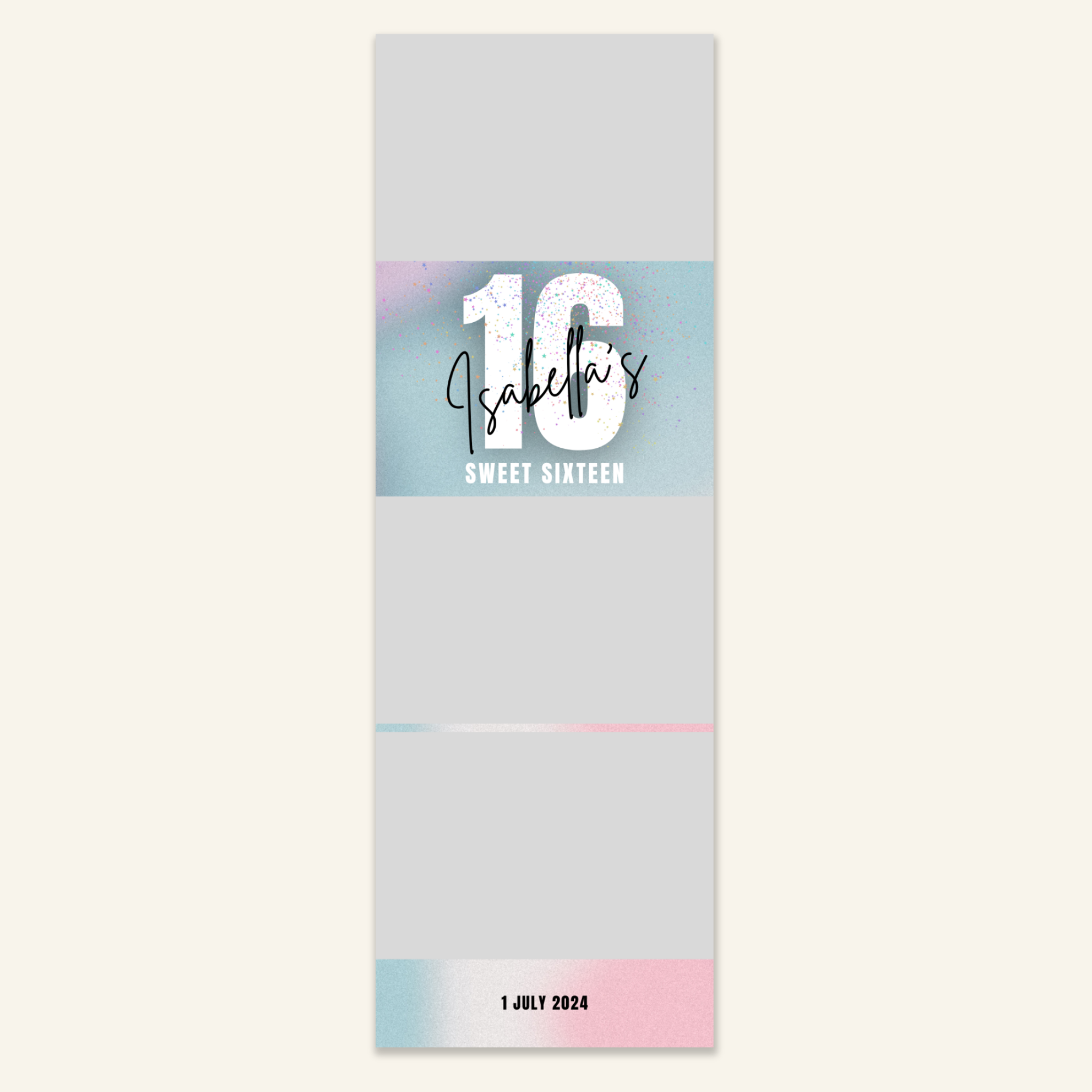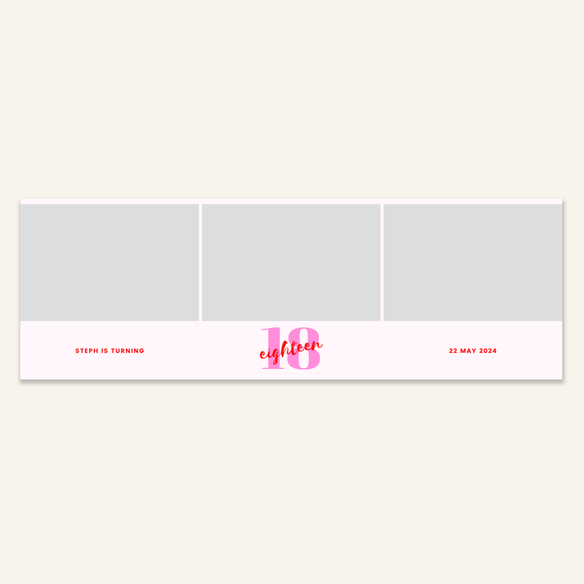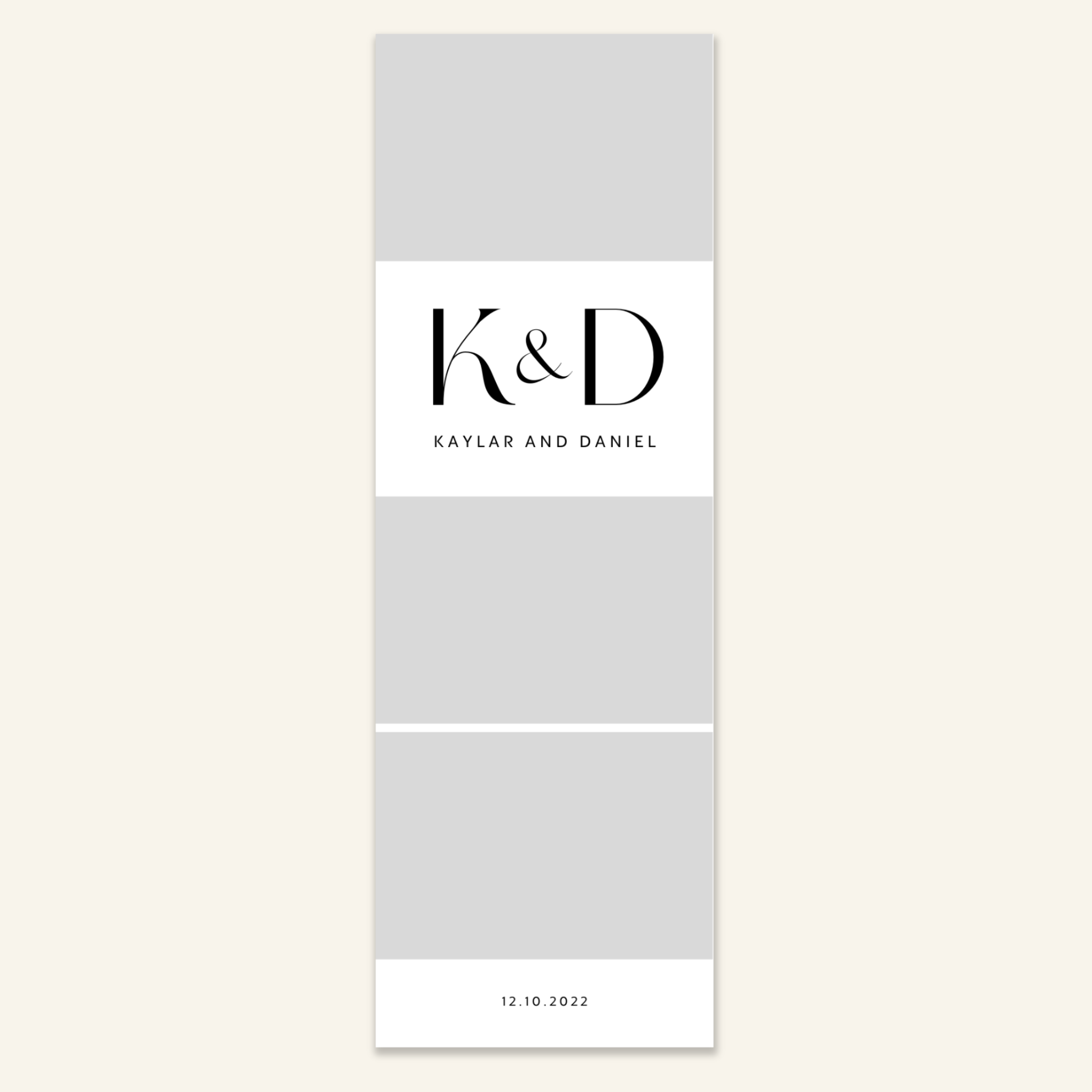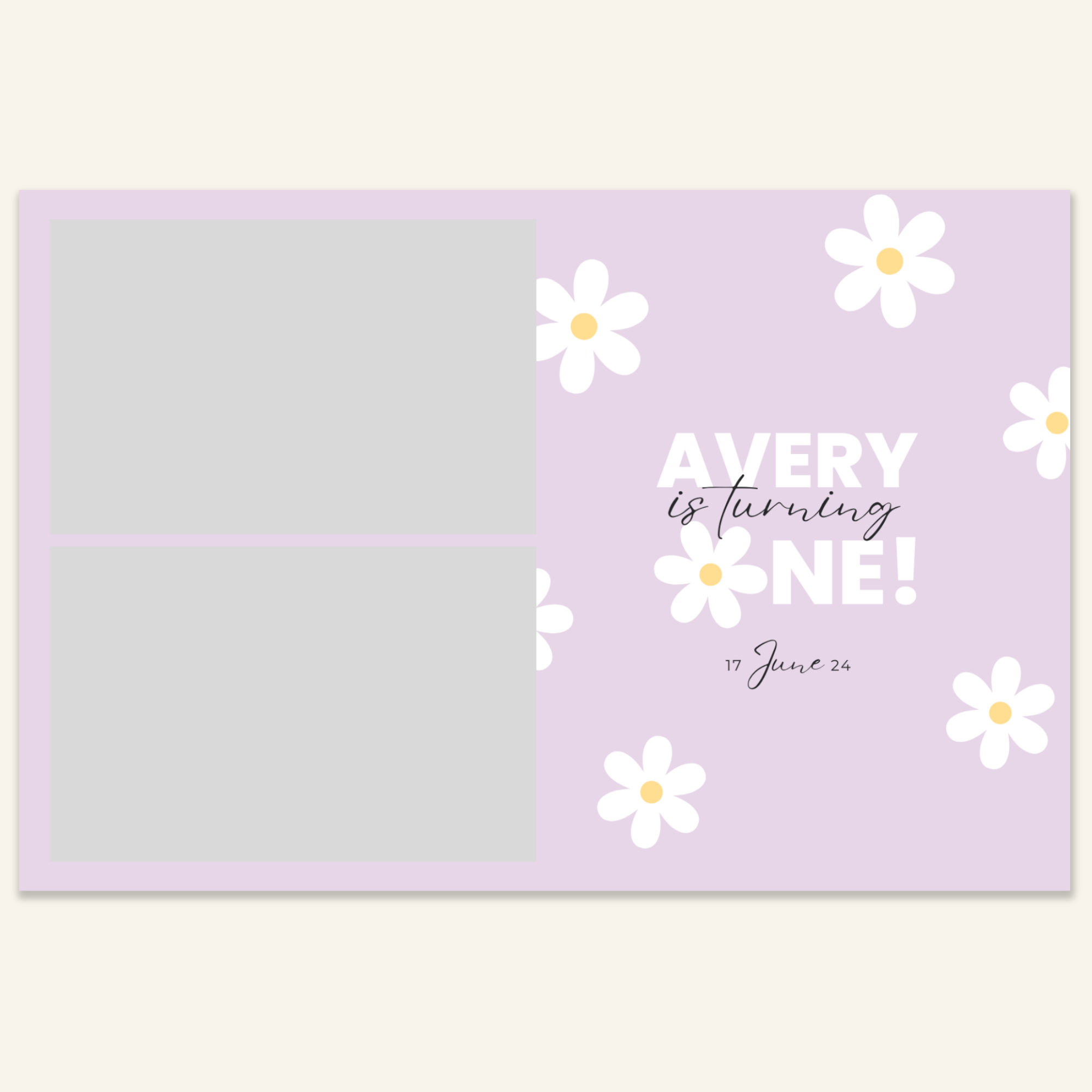Step 3: Personalise your print template by adding your event name, date, and/or custom message. (eg. Sophia & Lucas / 12 April 2024 / Thanks for joining us!)