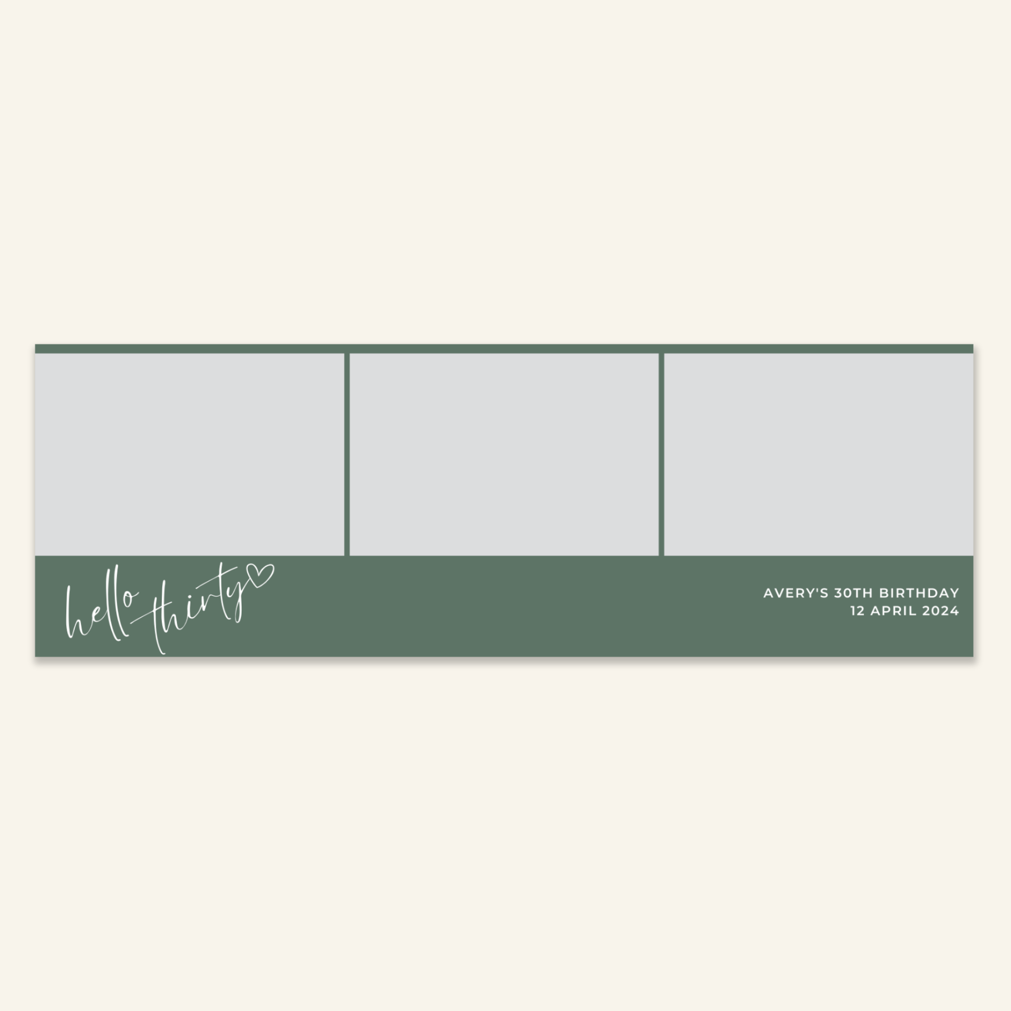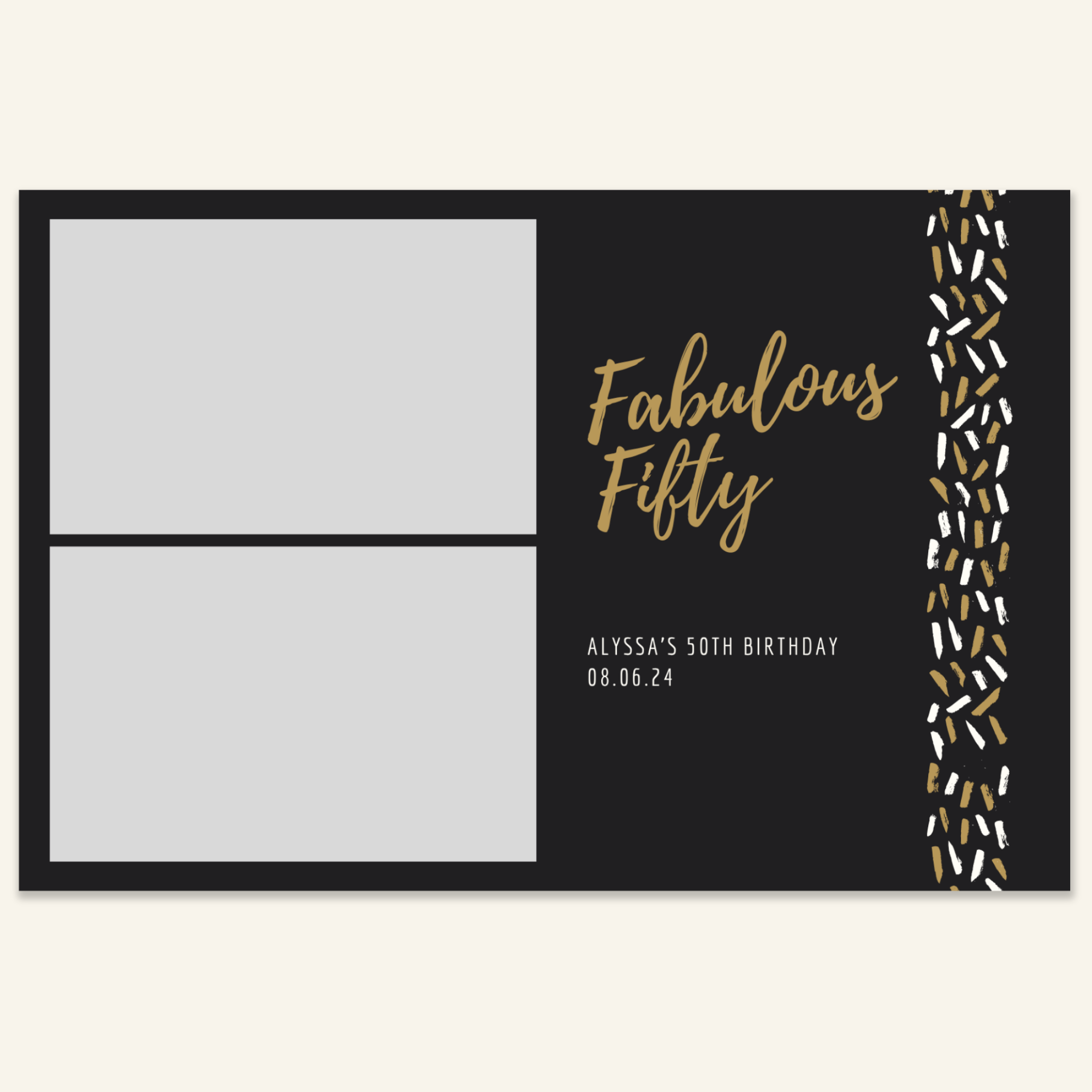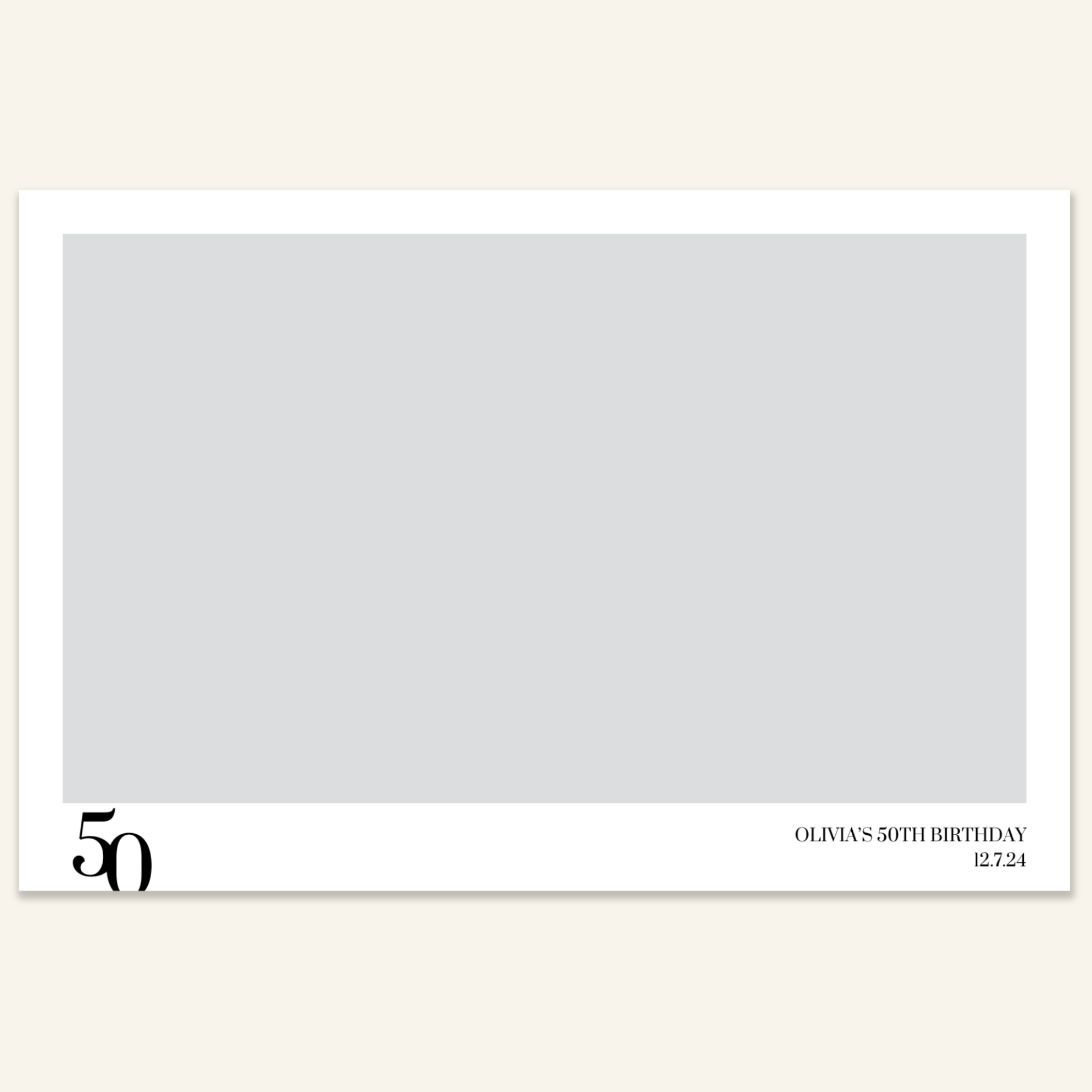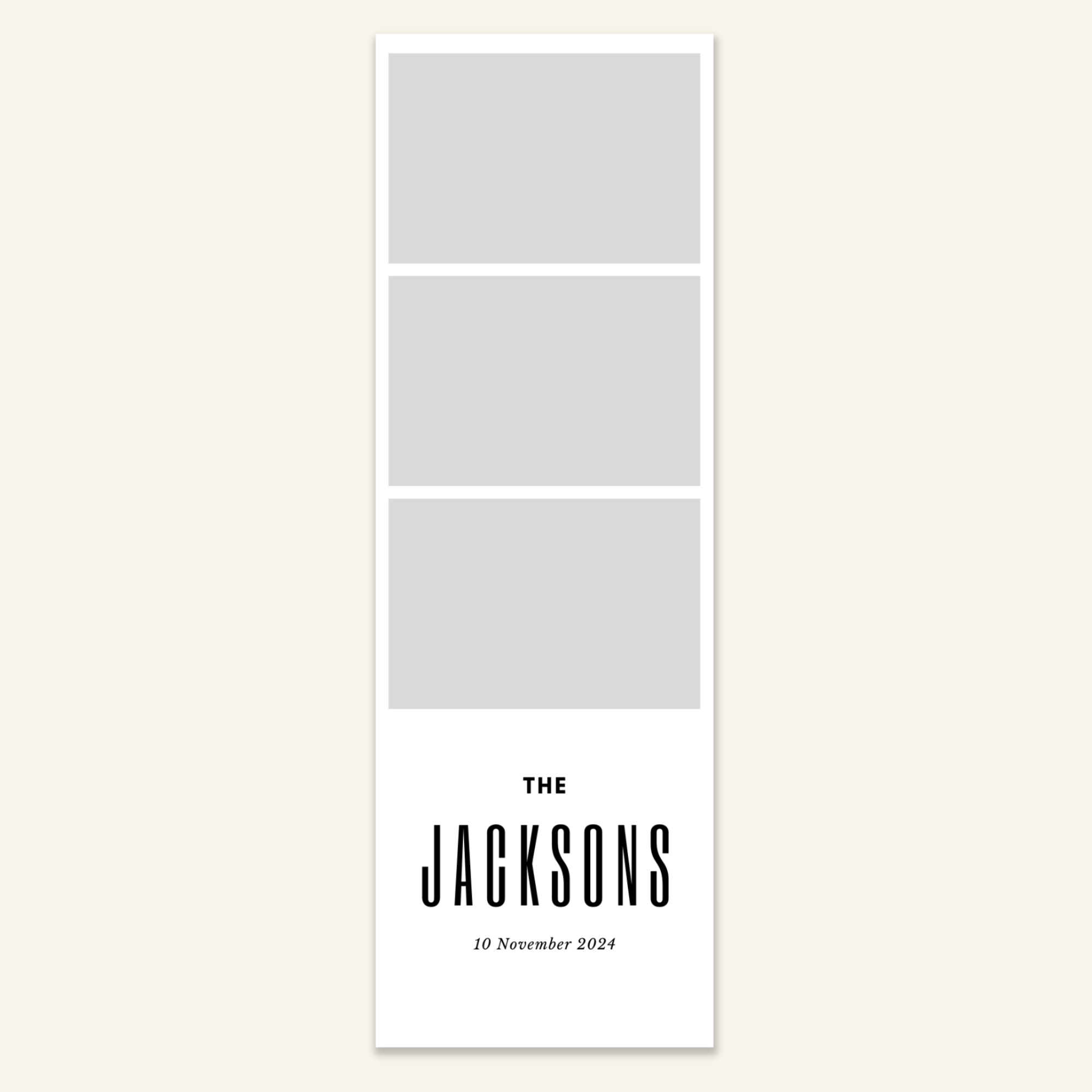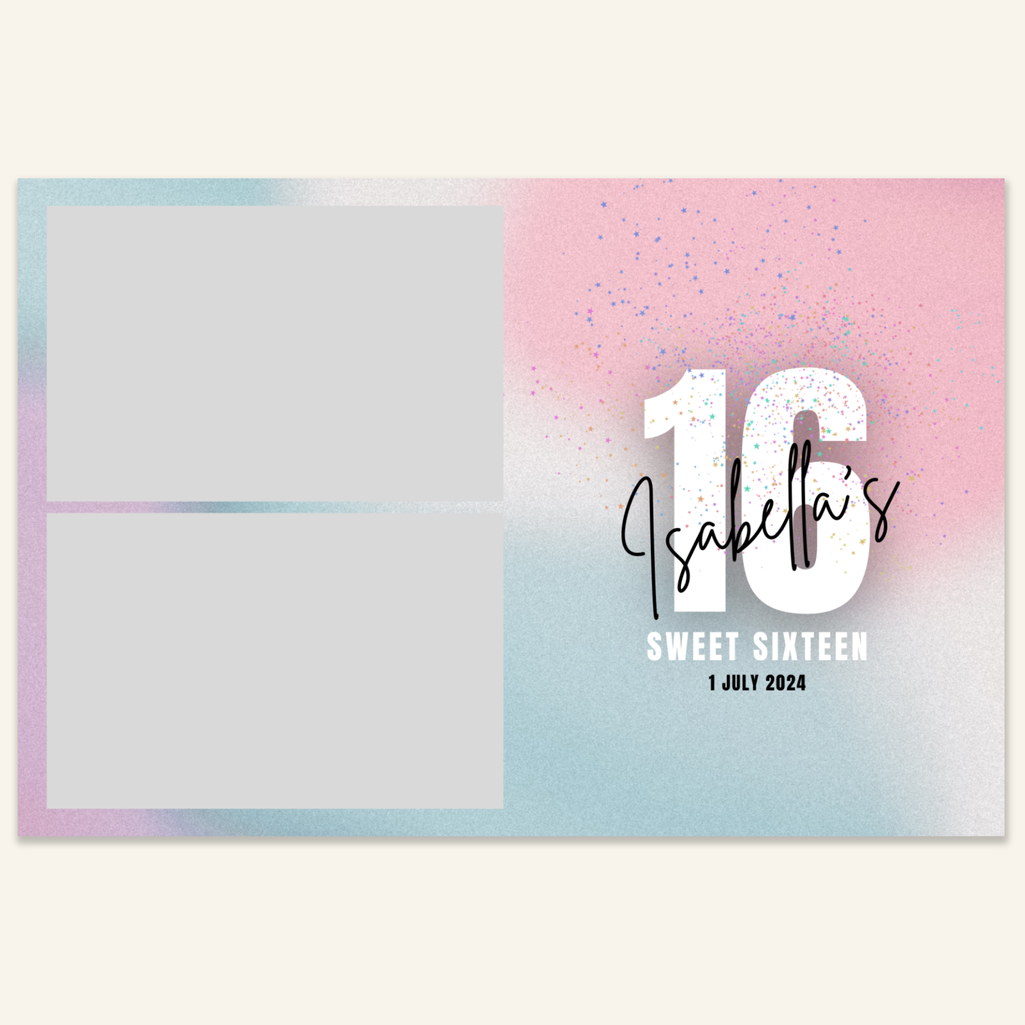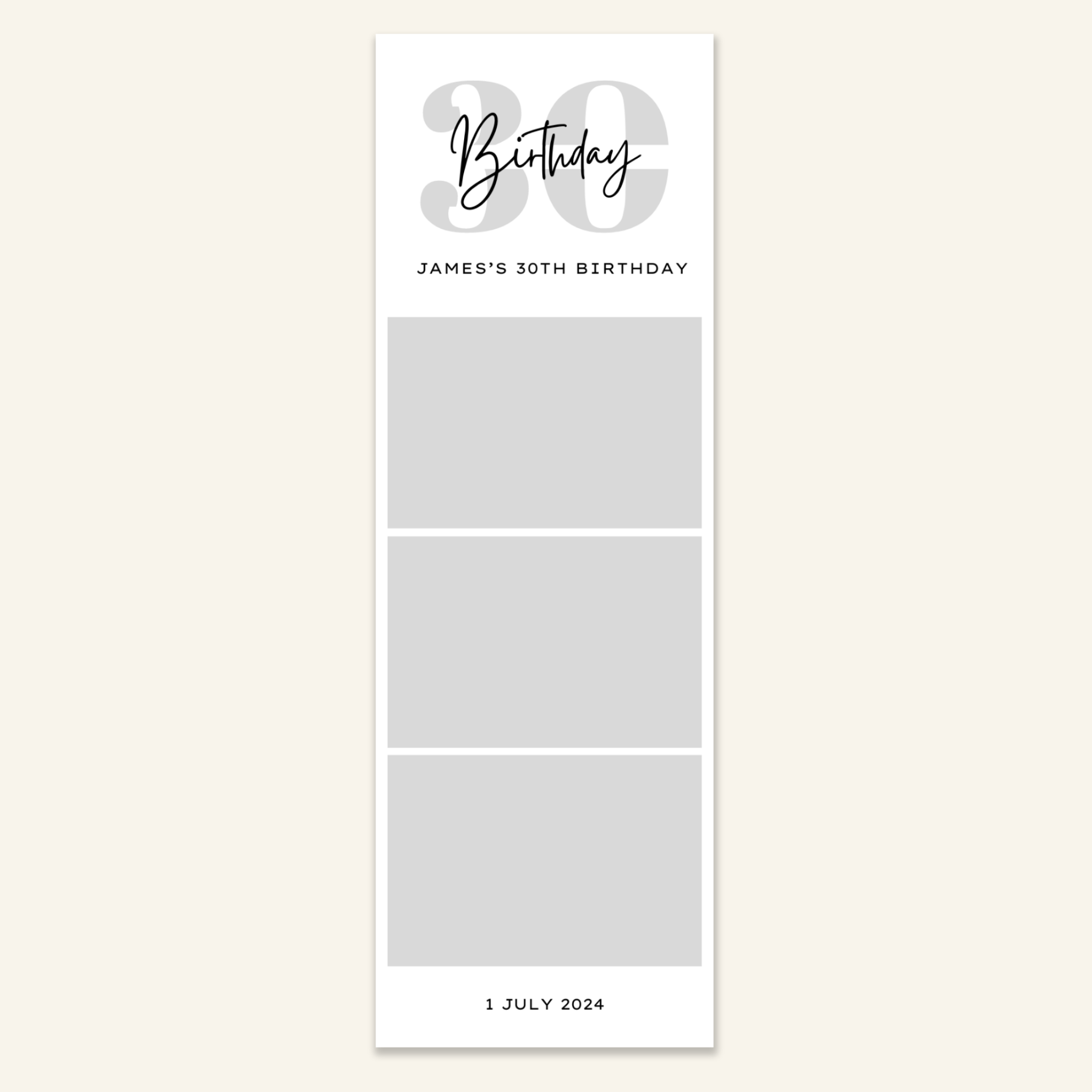 Step 3: Personalise your print template by adding your event name, date, and/or custom message. (eg. Sophia & Lucas / 12 April 2024 / Thanks for joining us!)