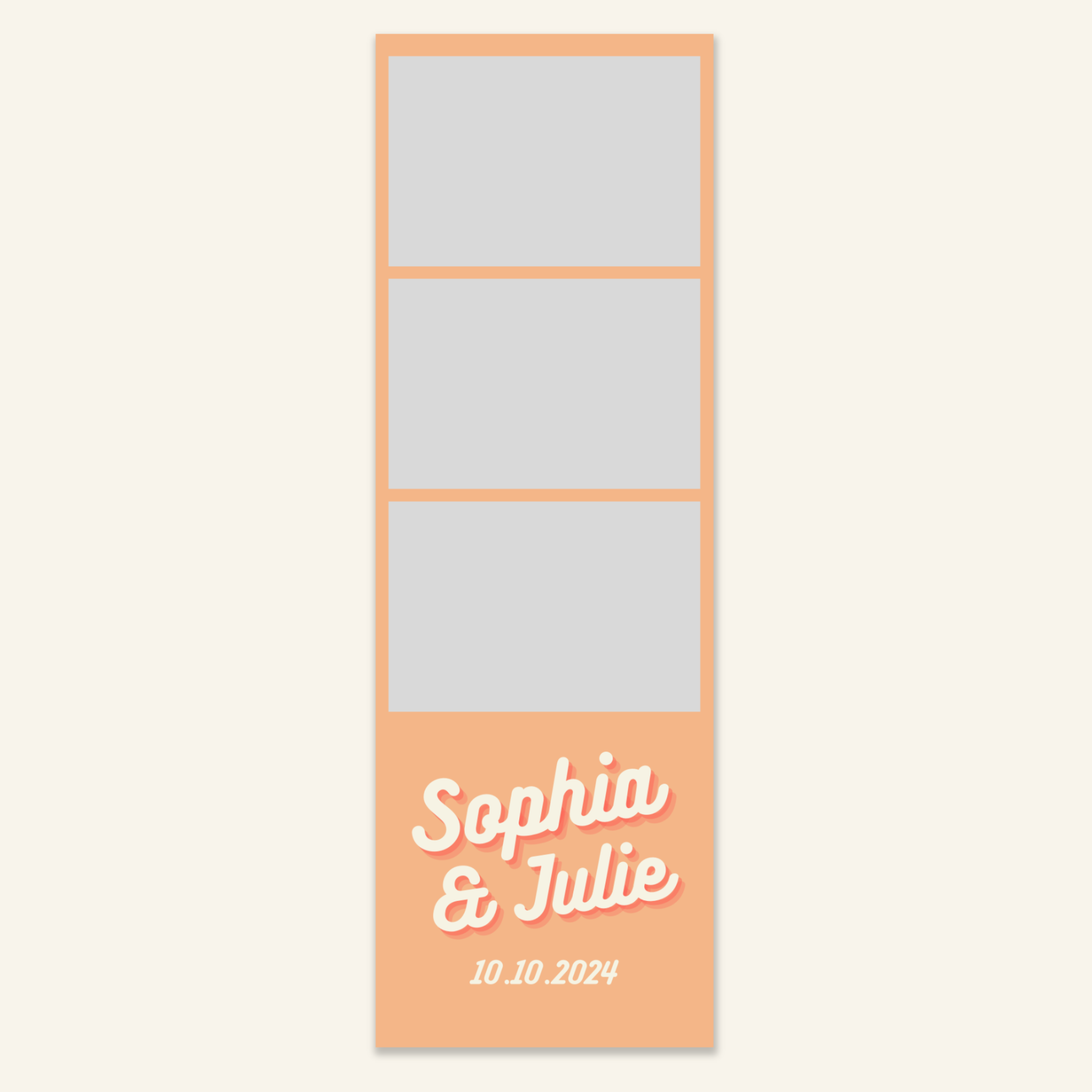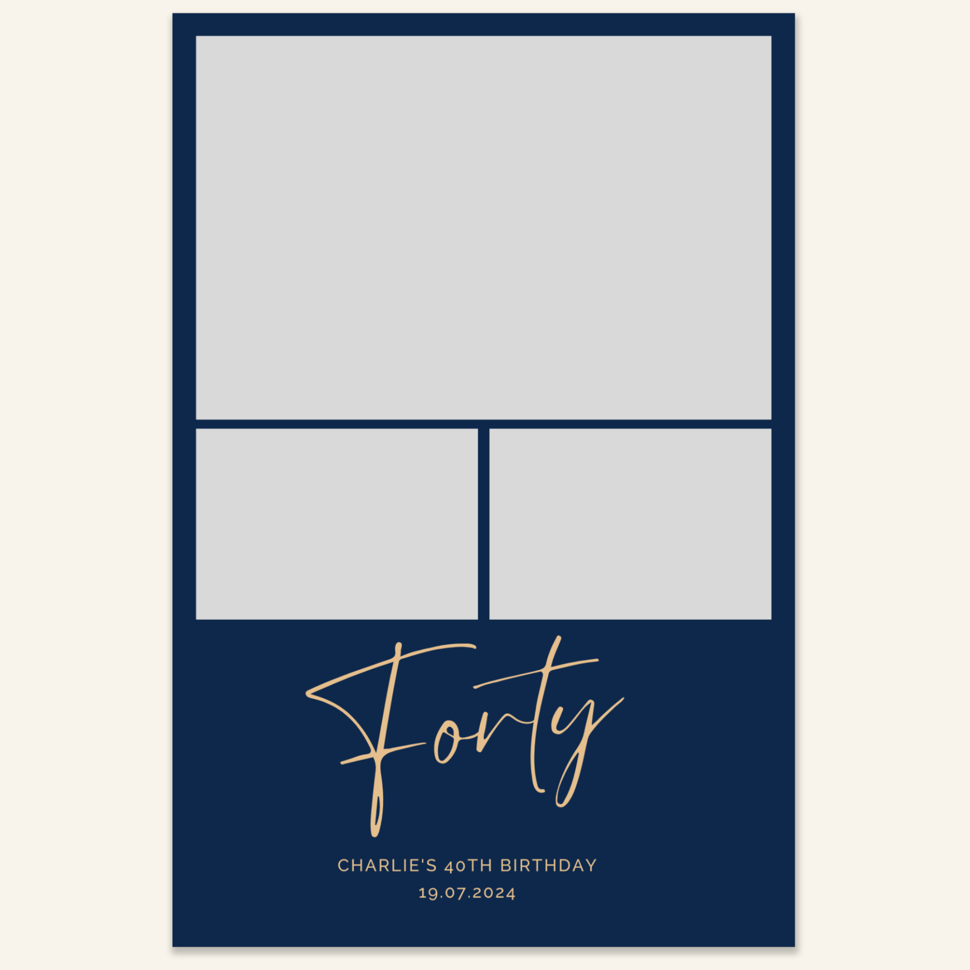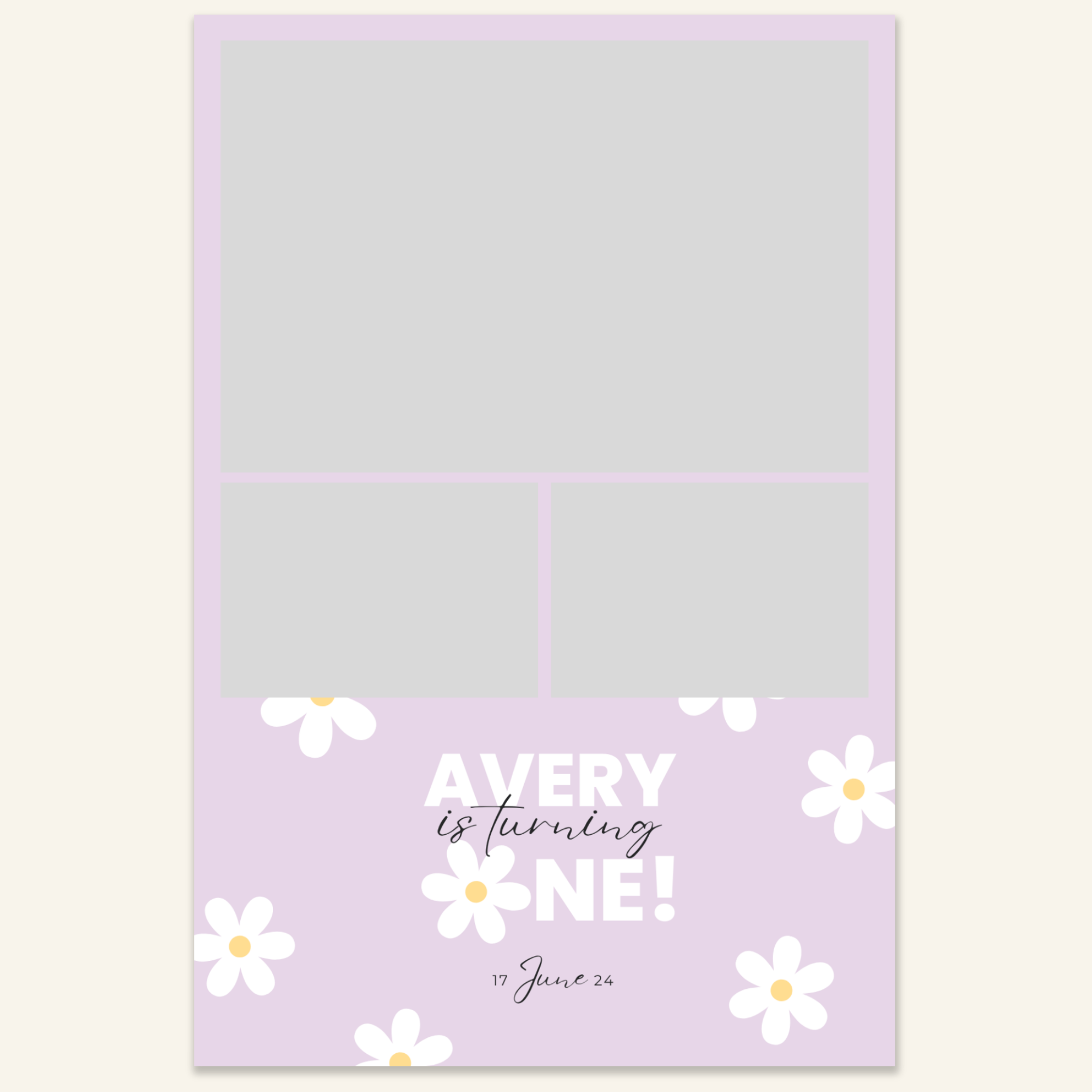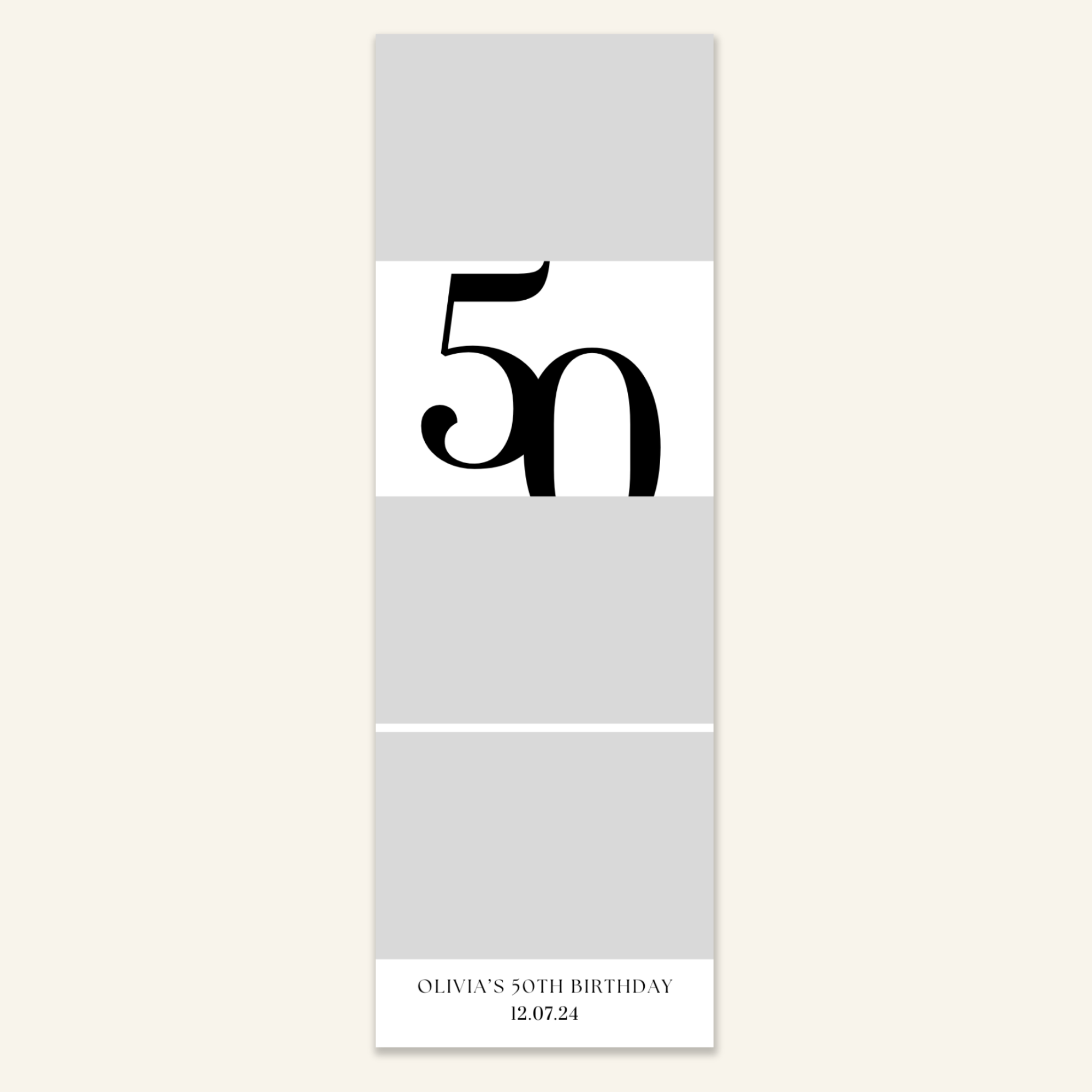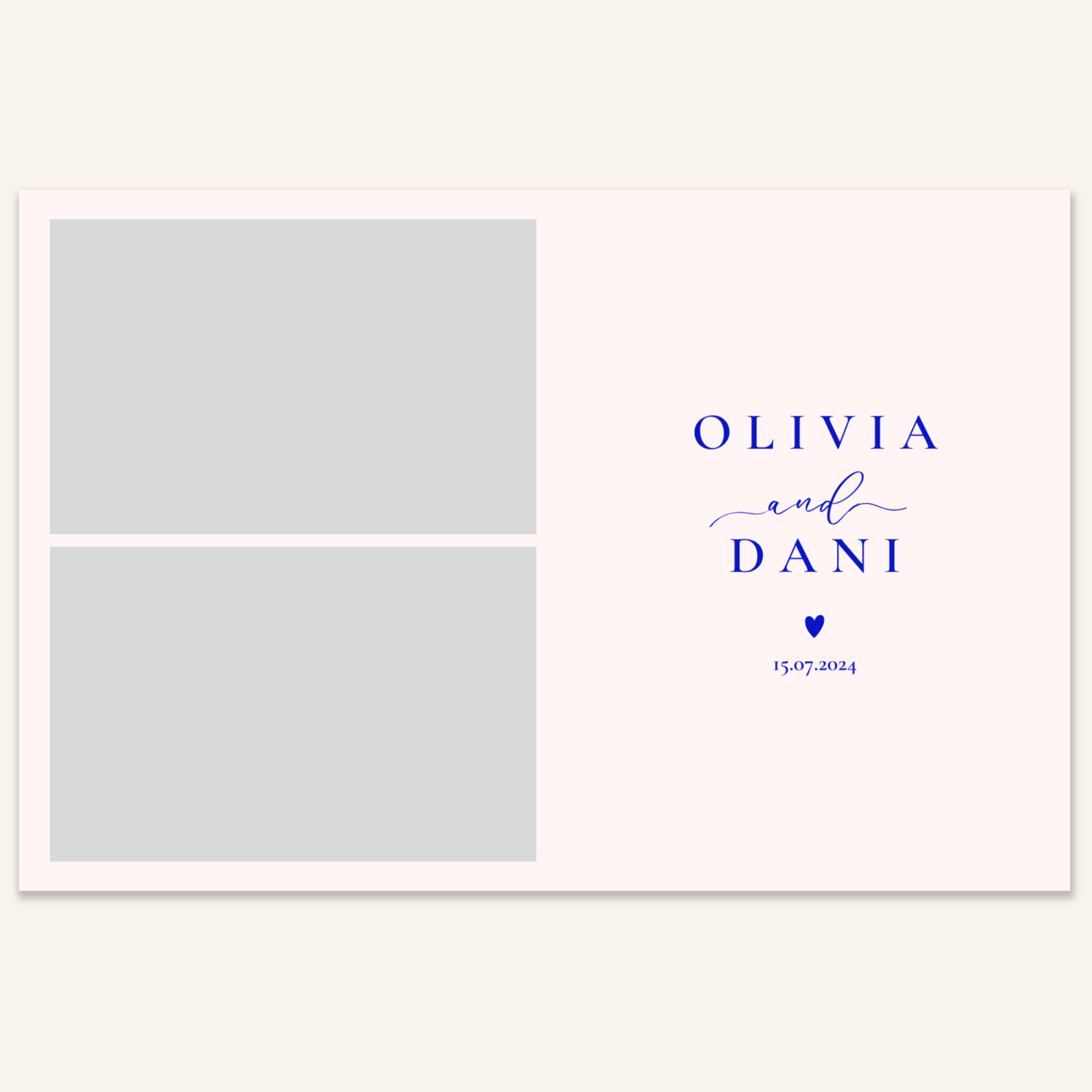Step 3: Personalise your print template by adding your event name, date, and/or custom message. (eg. Sophia & Lucas / 12 April 2024 / Thanks for joining us!)