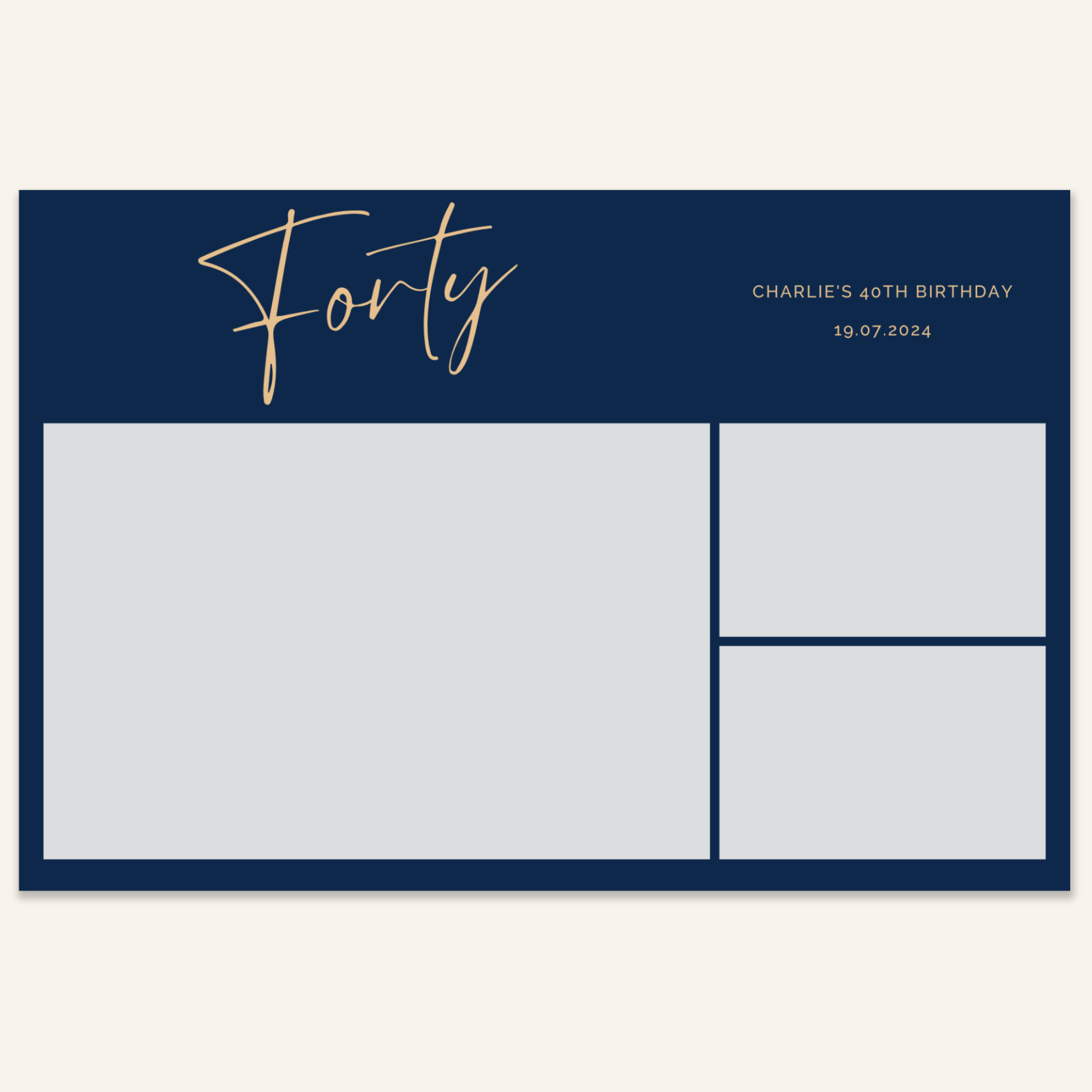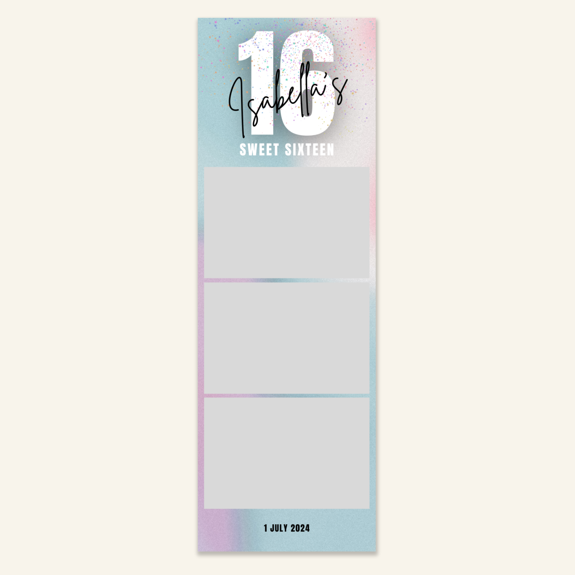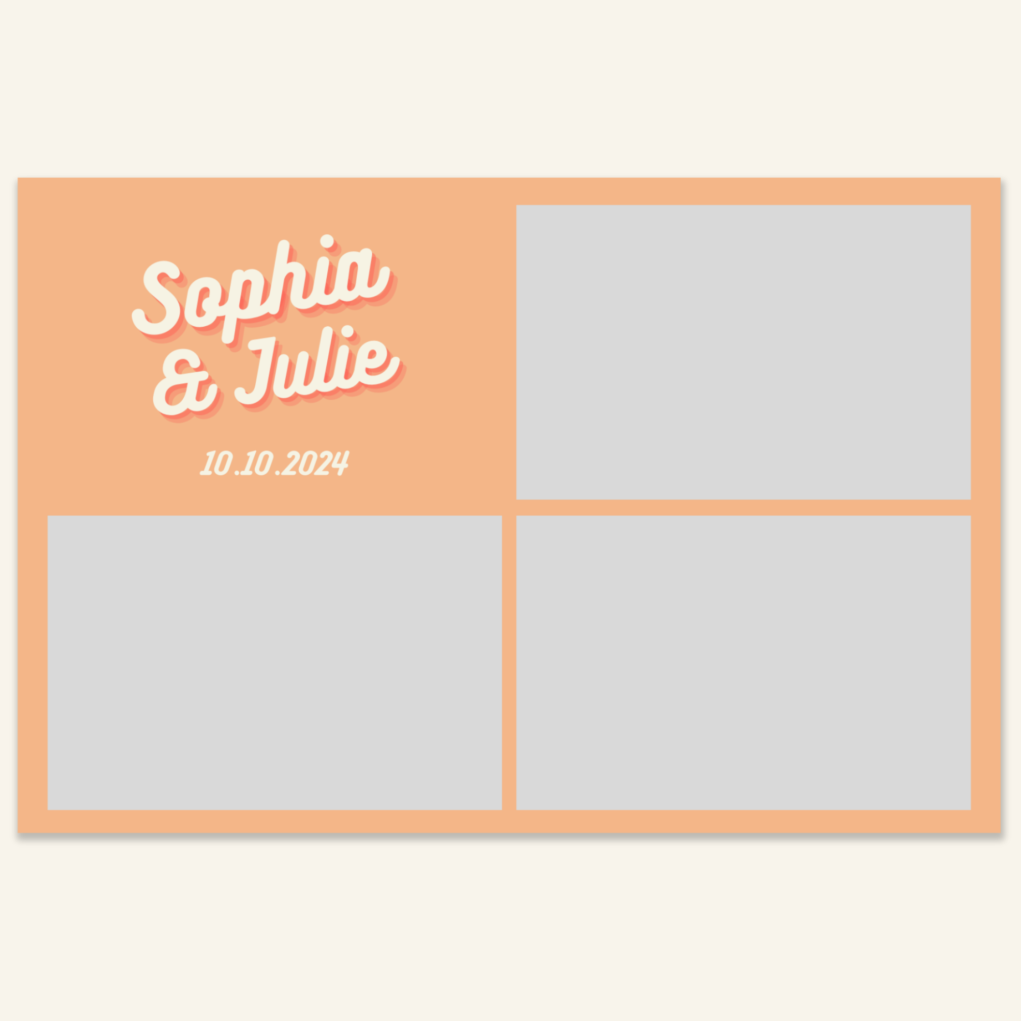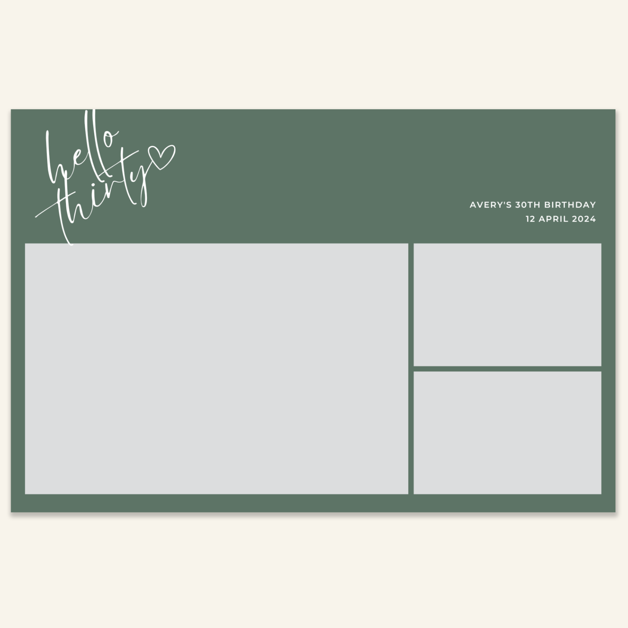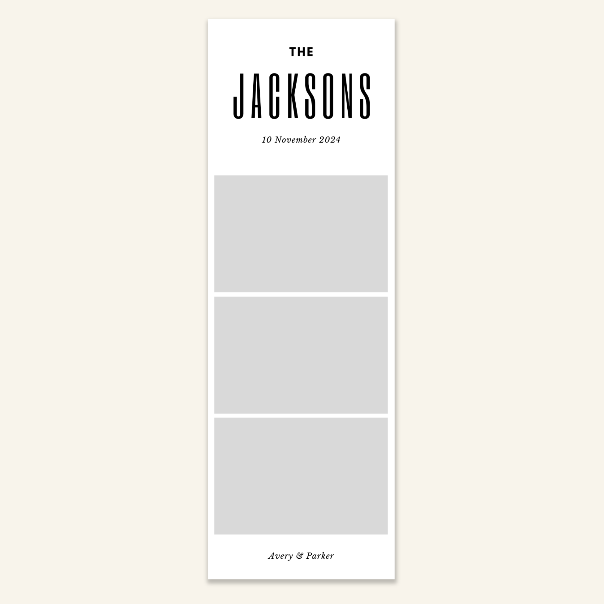 Step 3: Personalise your print template by adding your event name, date, and/or custom message. (eg. Sophia & Lucas / 12 April 2024 / Thanks for joining us!)