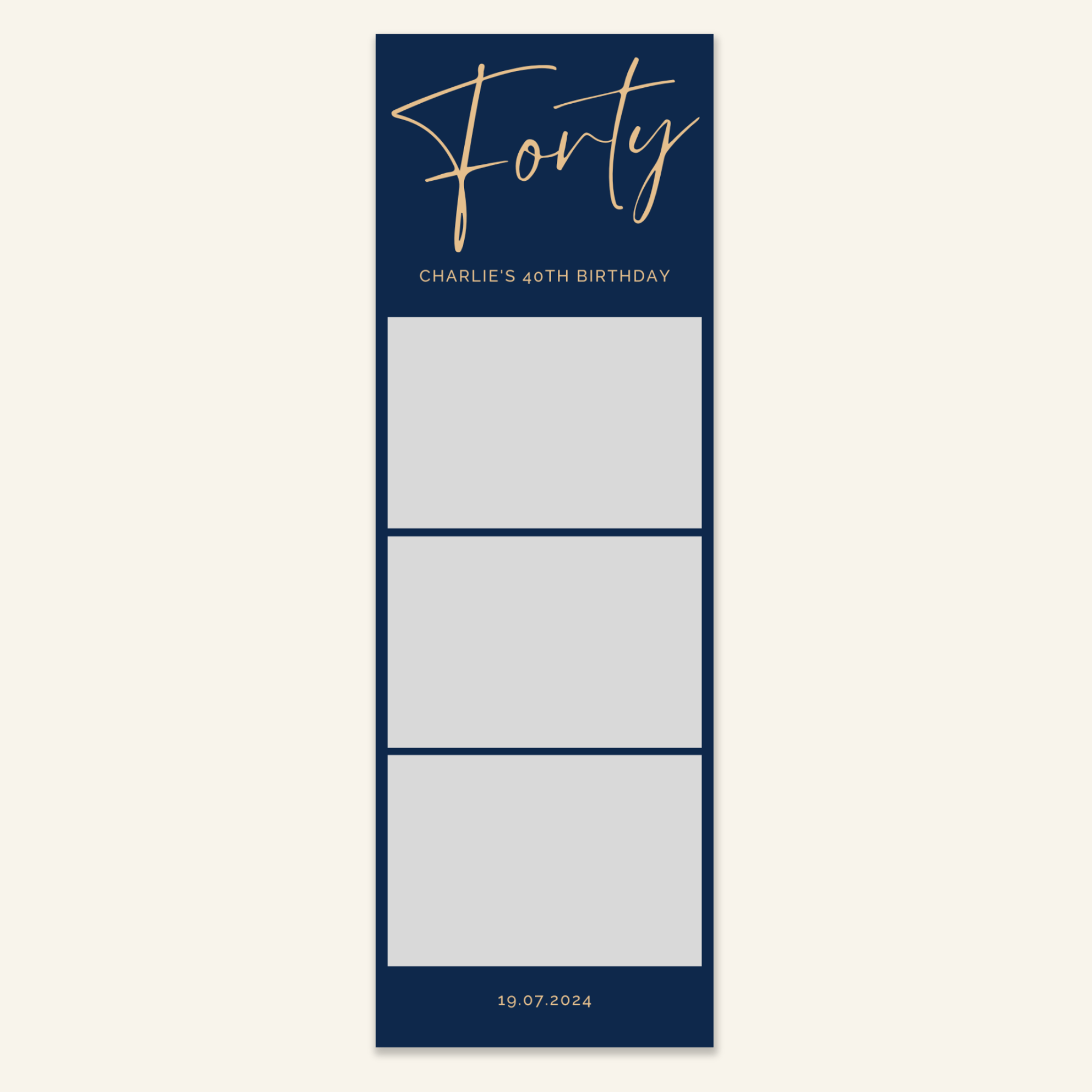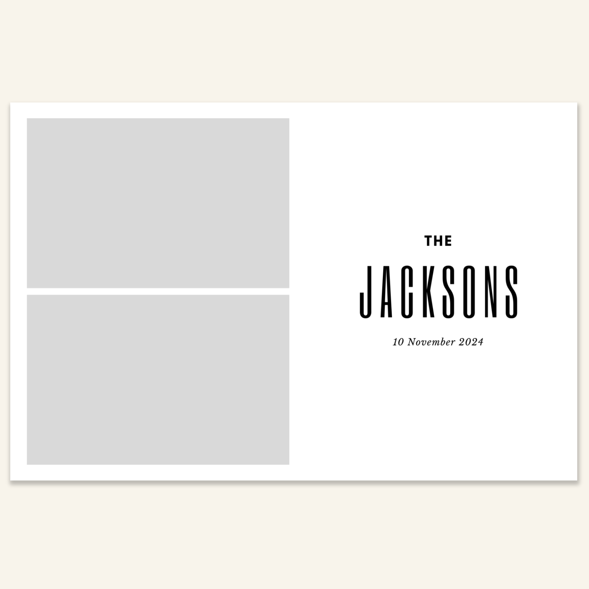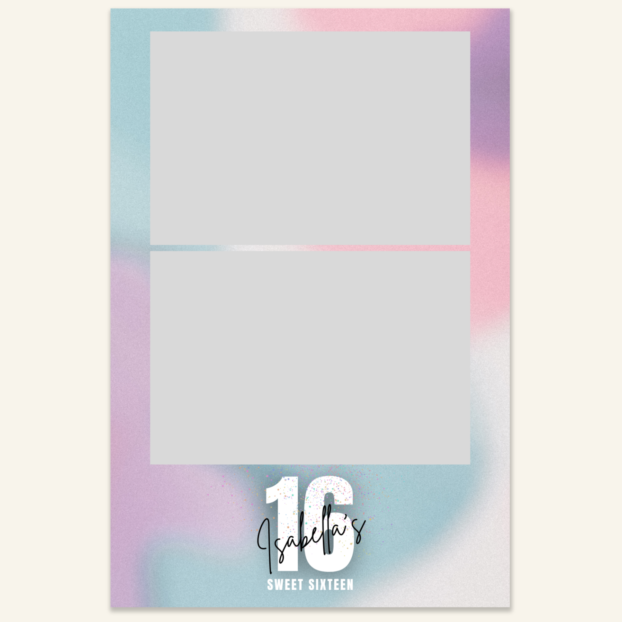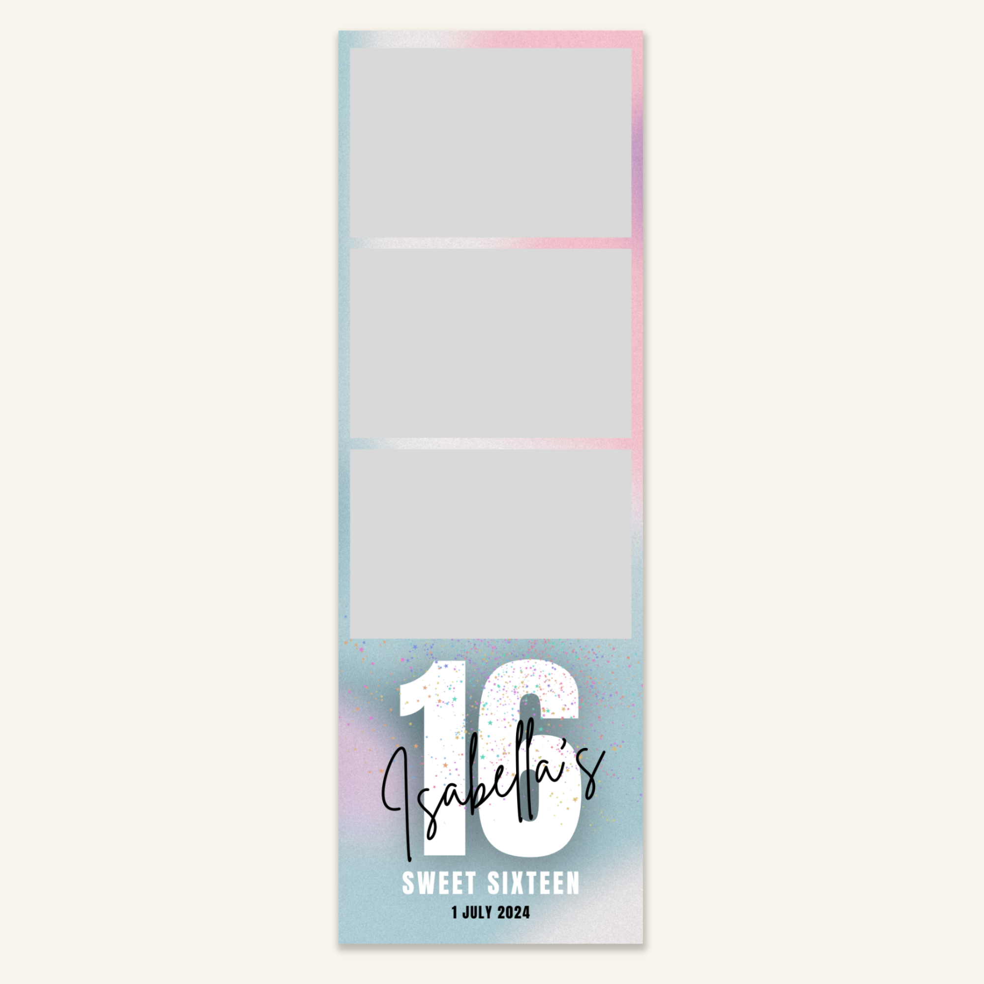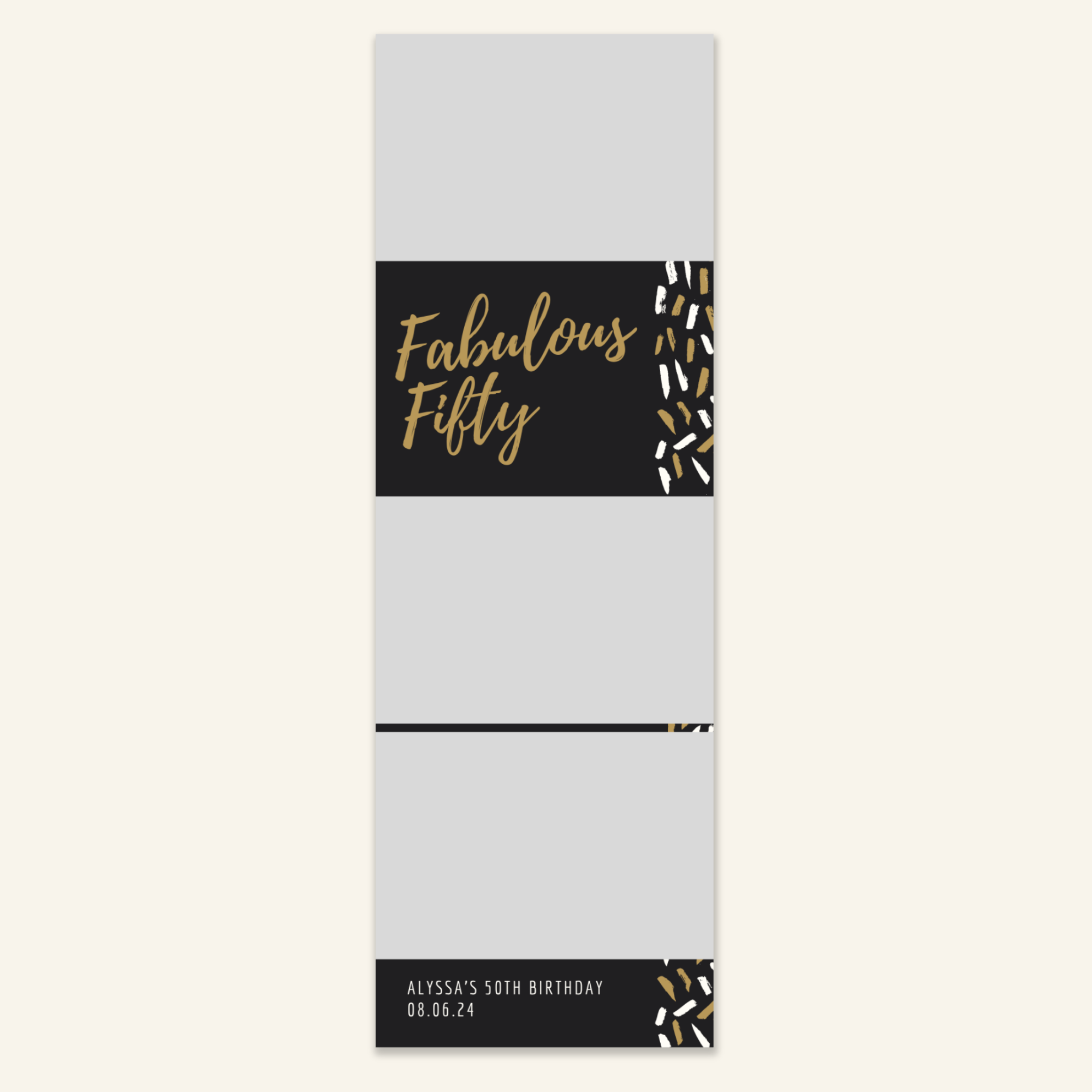 Step 3: Personalise your print template by adding your event name, date, and/or custom message. (eg. Sophia & Lucas / 12 April 2024 / Thanks for joining us!)