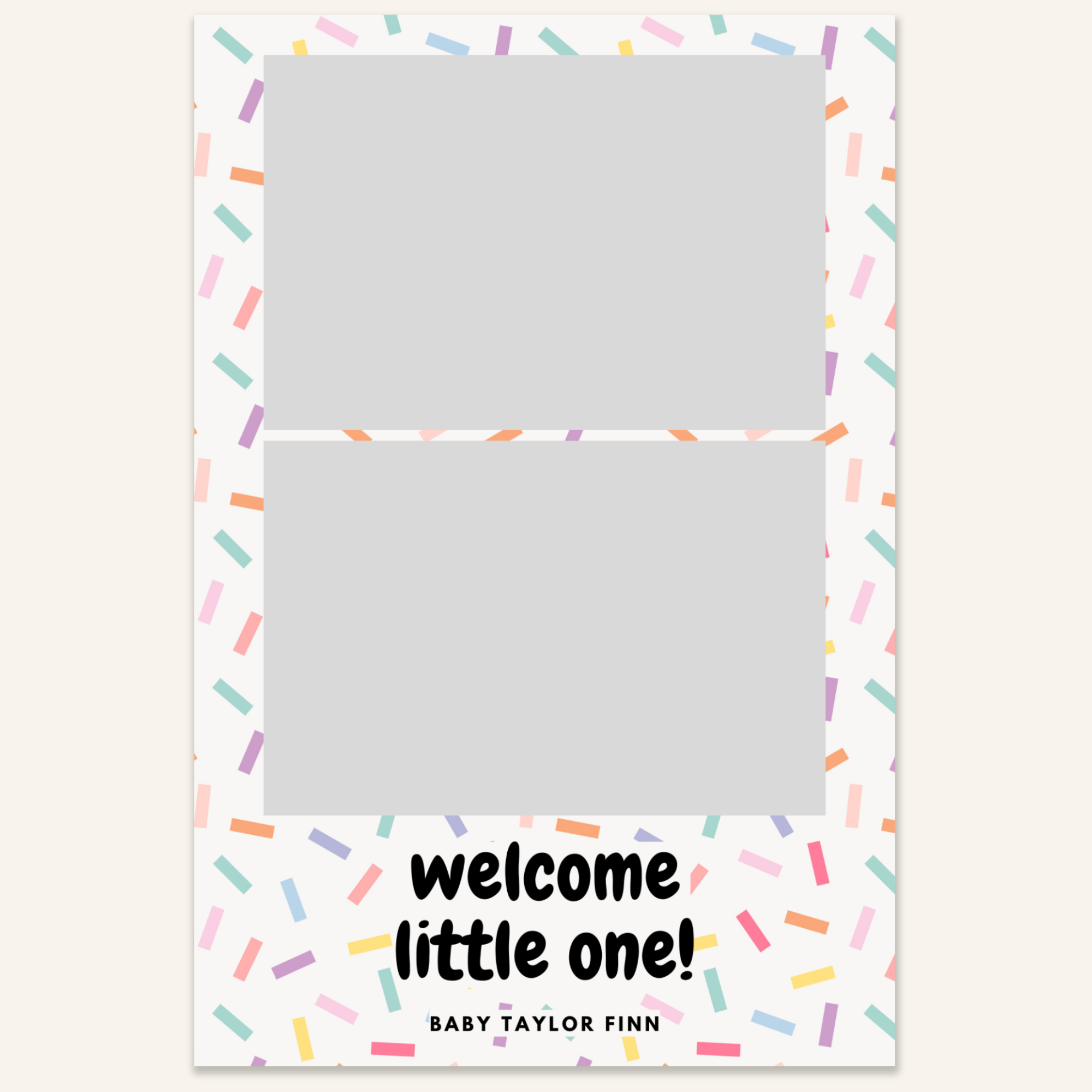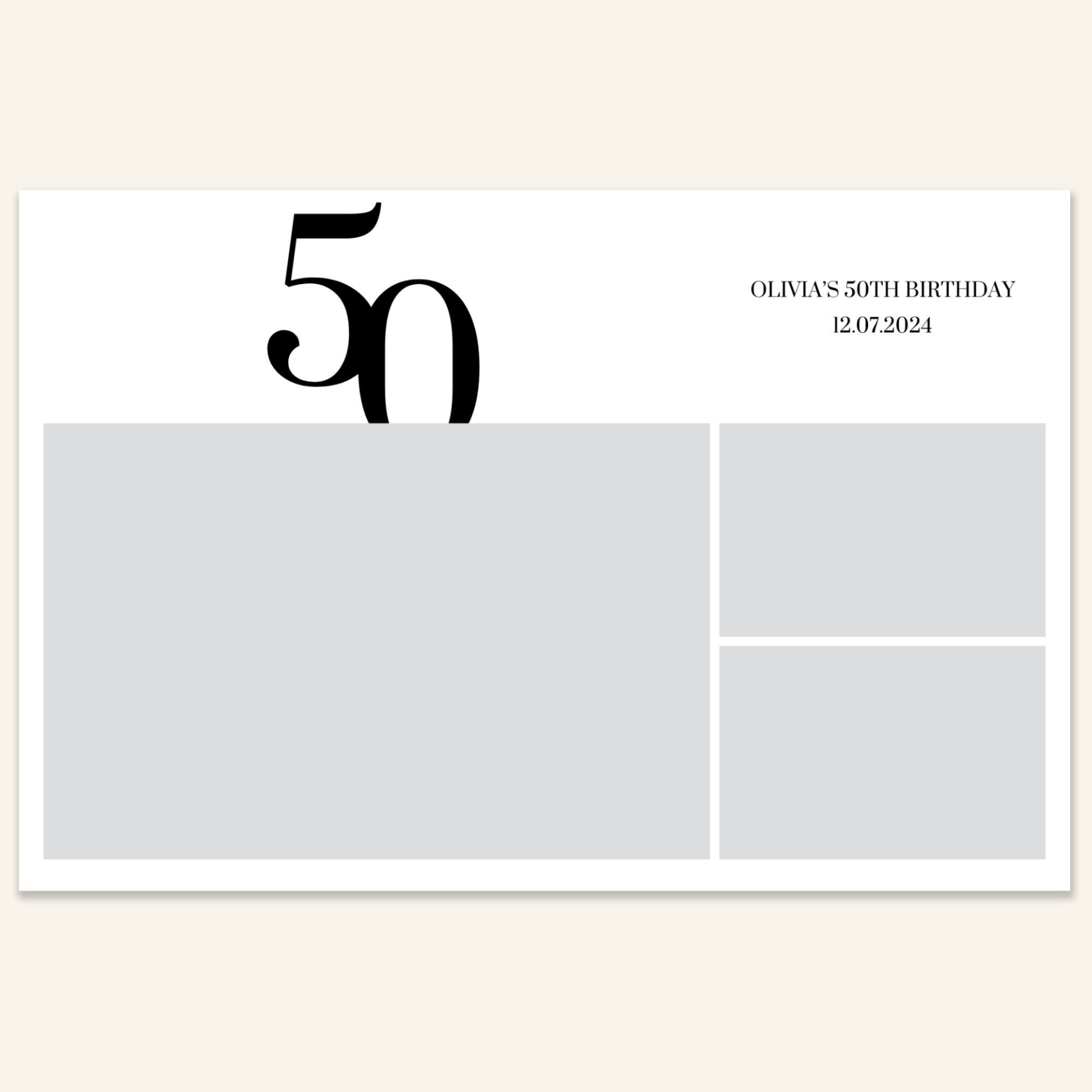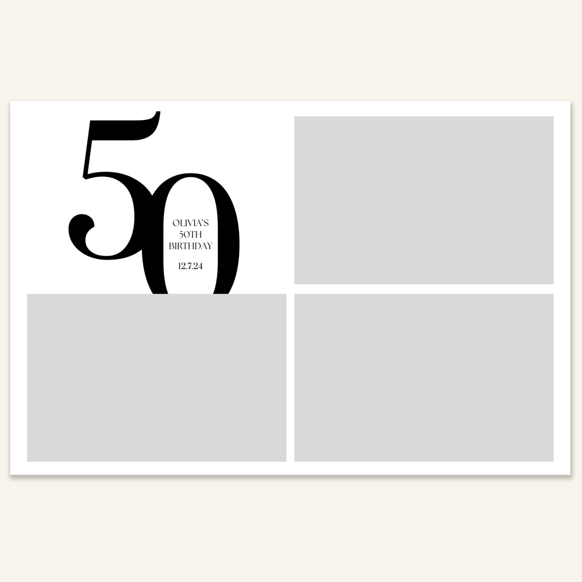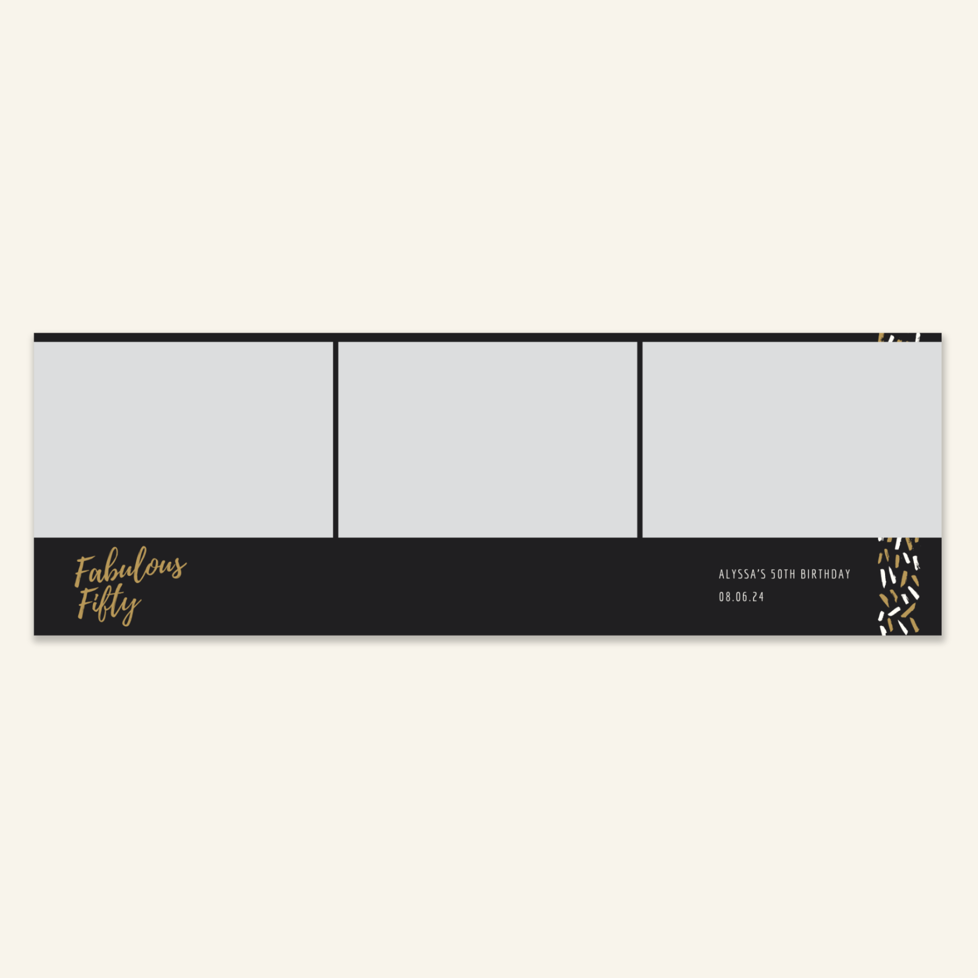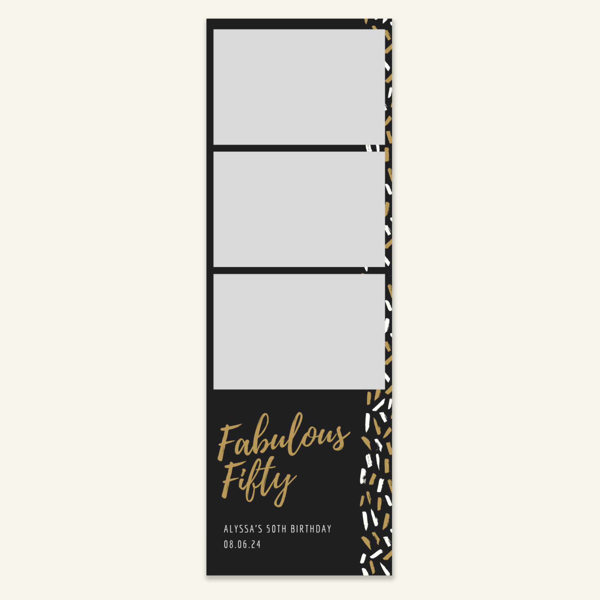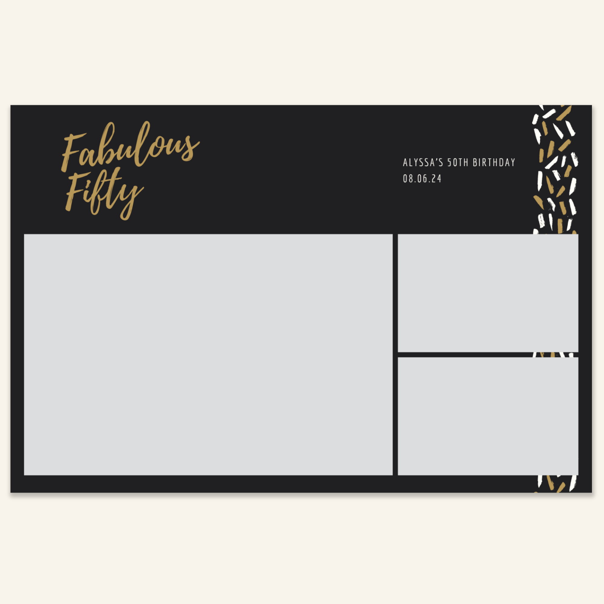 Step 3: Personalise your print template by adding your event name, date, and/or custom message. (eg. Sophia & Lucas / 12 April 2024 / Thanks for joining us!)