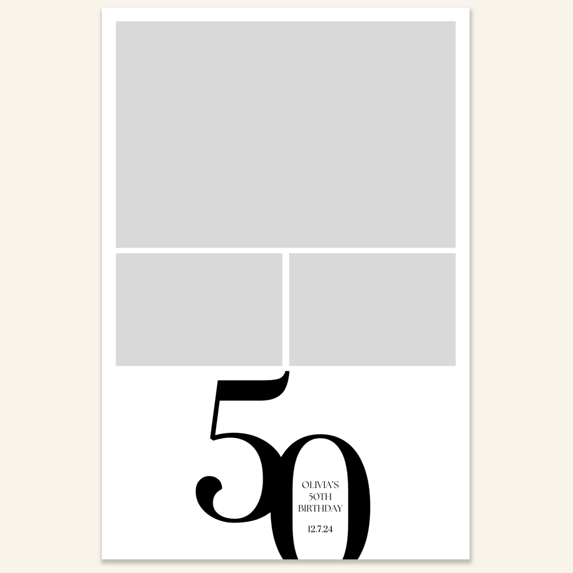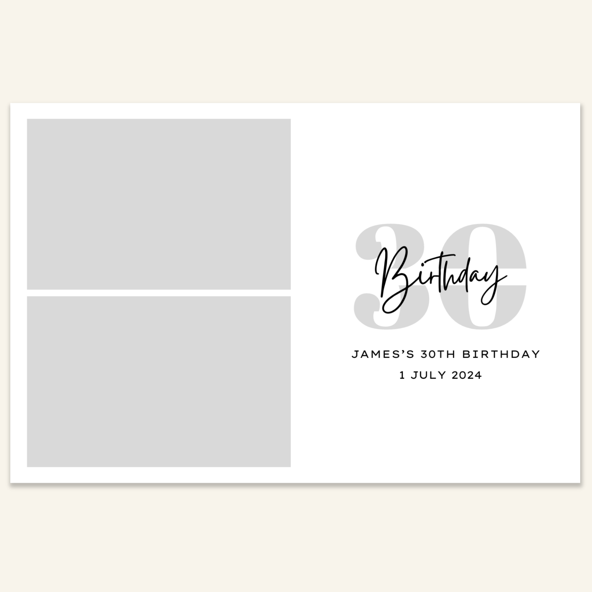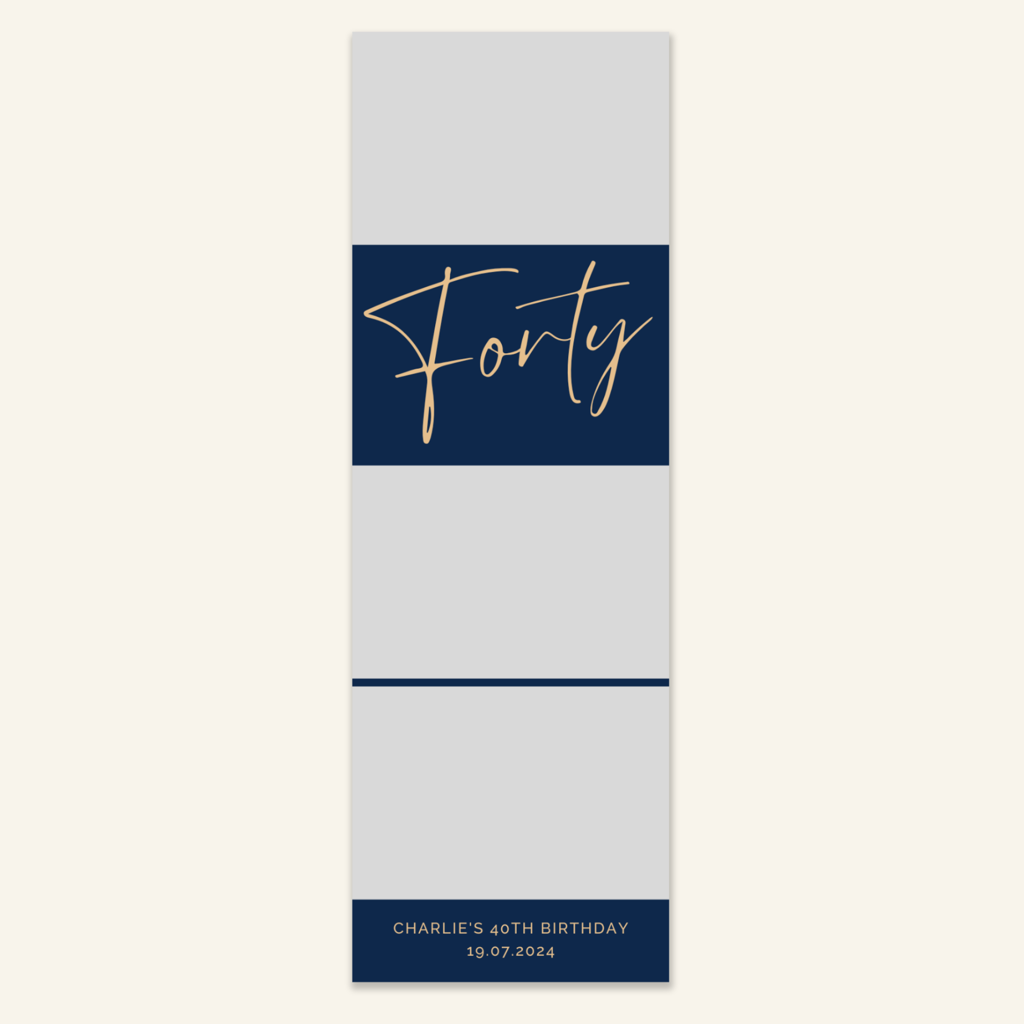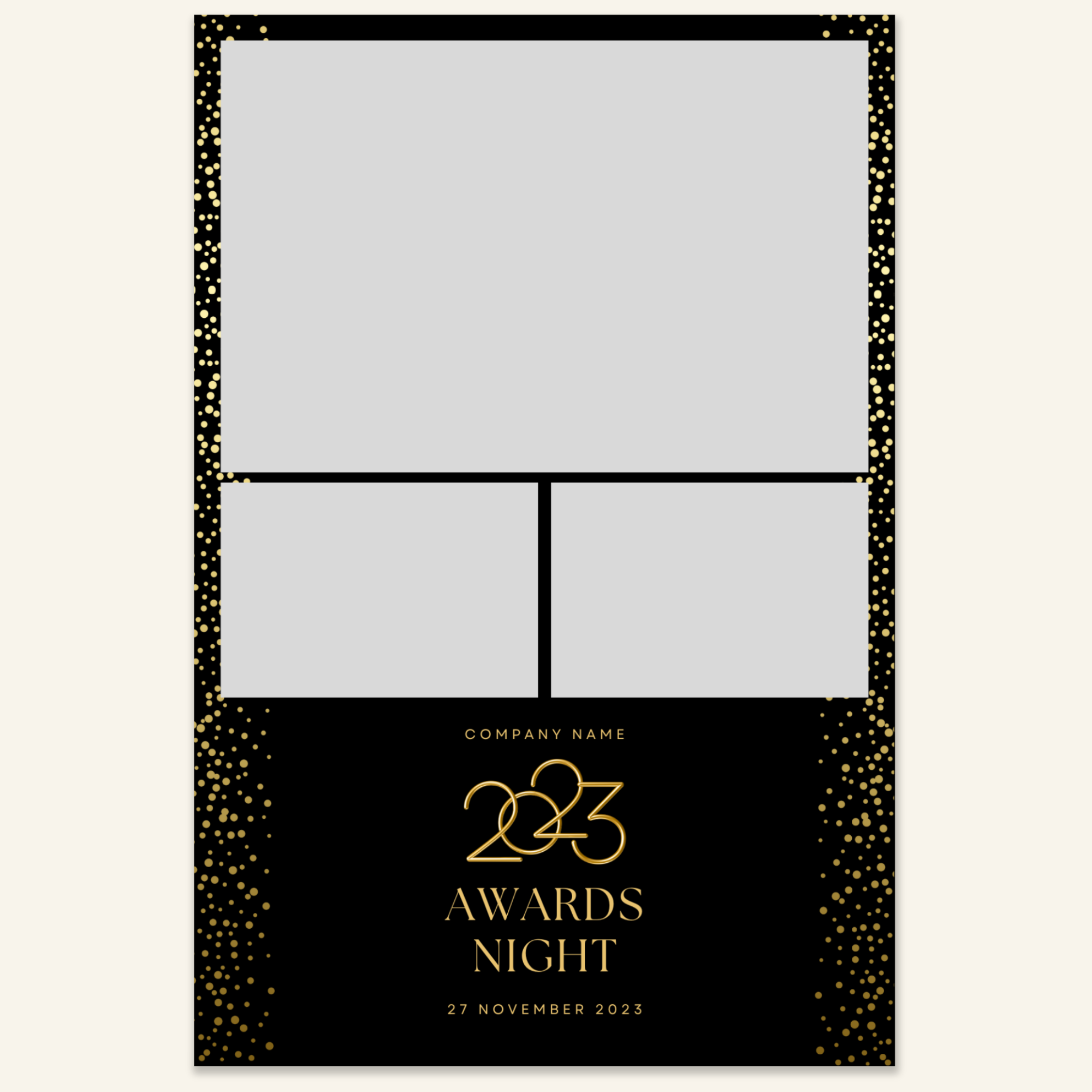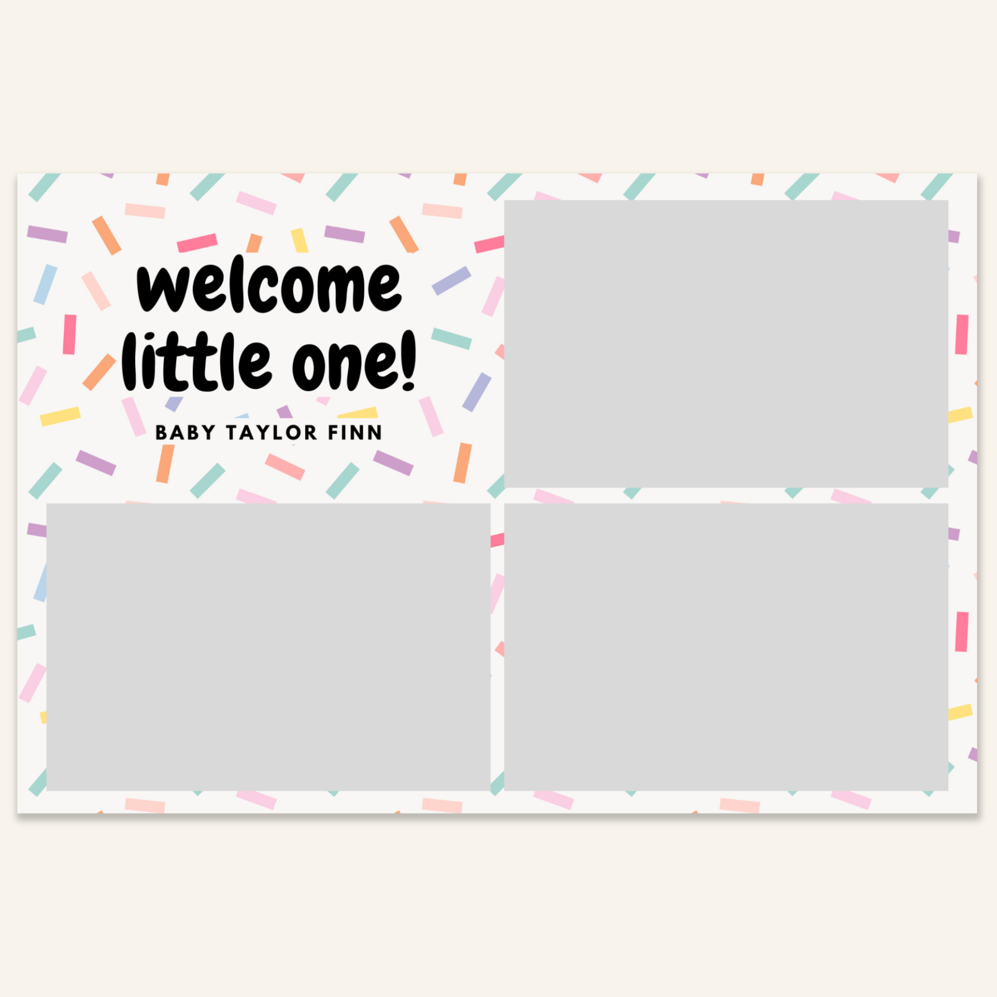 Step 3: Personalise your print template by adding your event name, date, and/or custom message. (eg. Sophia & Lucas / 12 April 2024 / Thanks for joining us!)