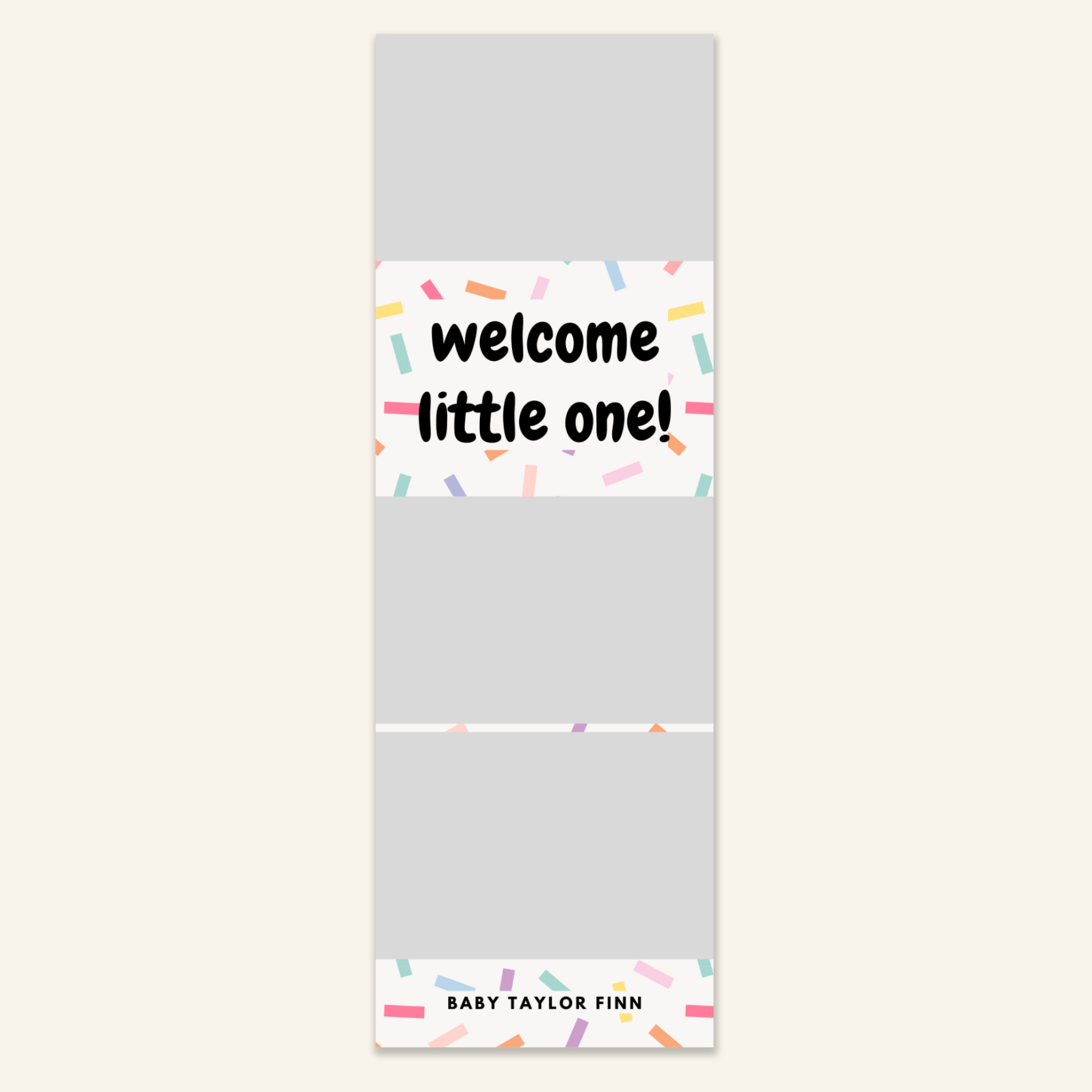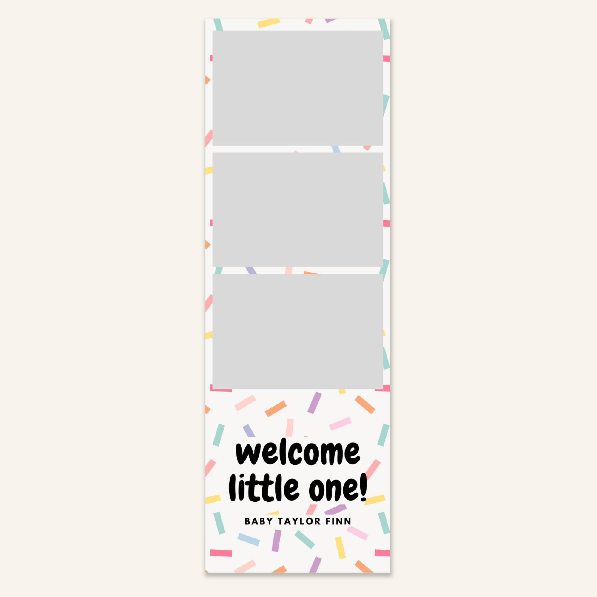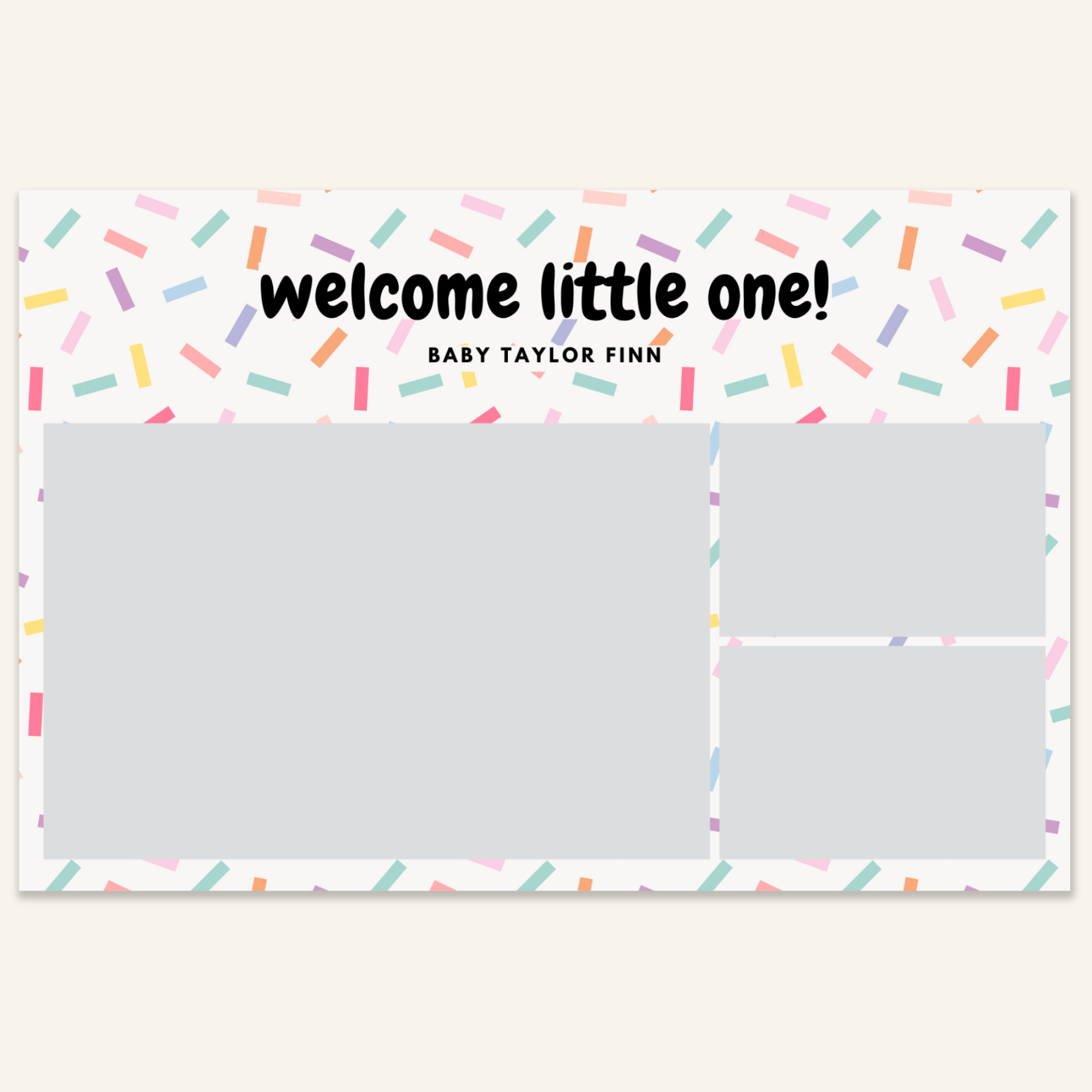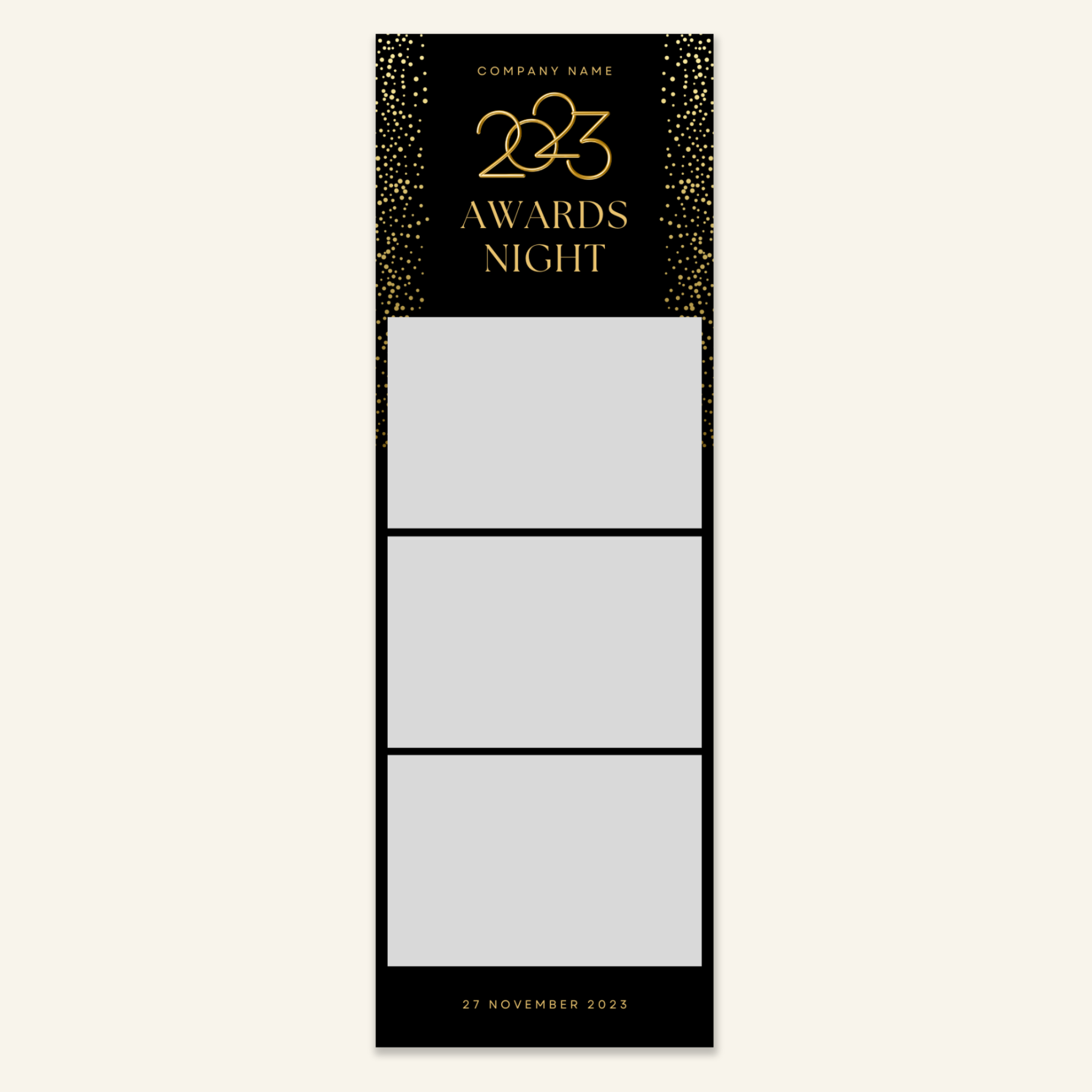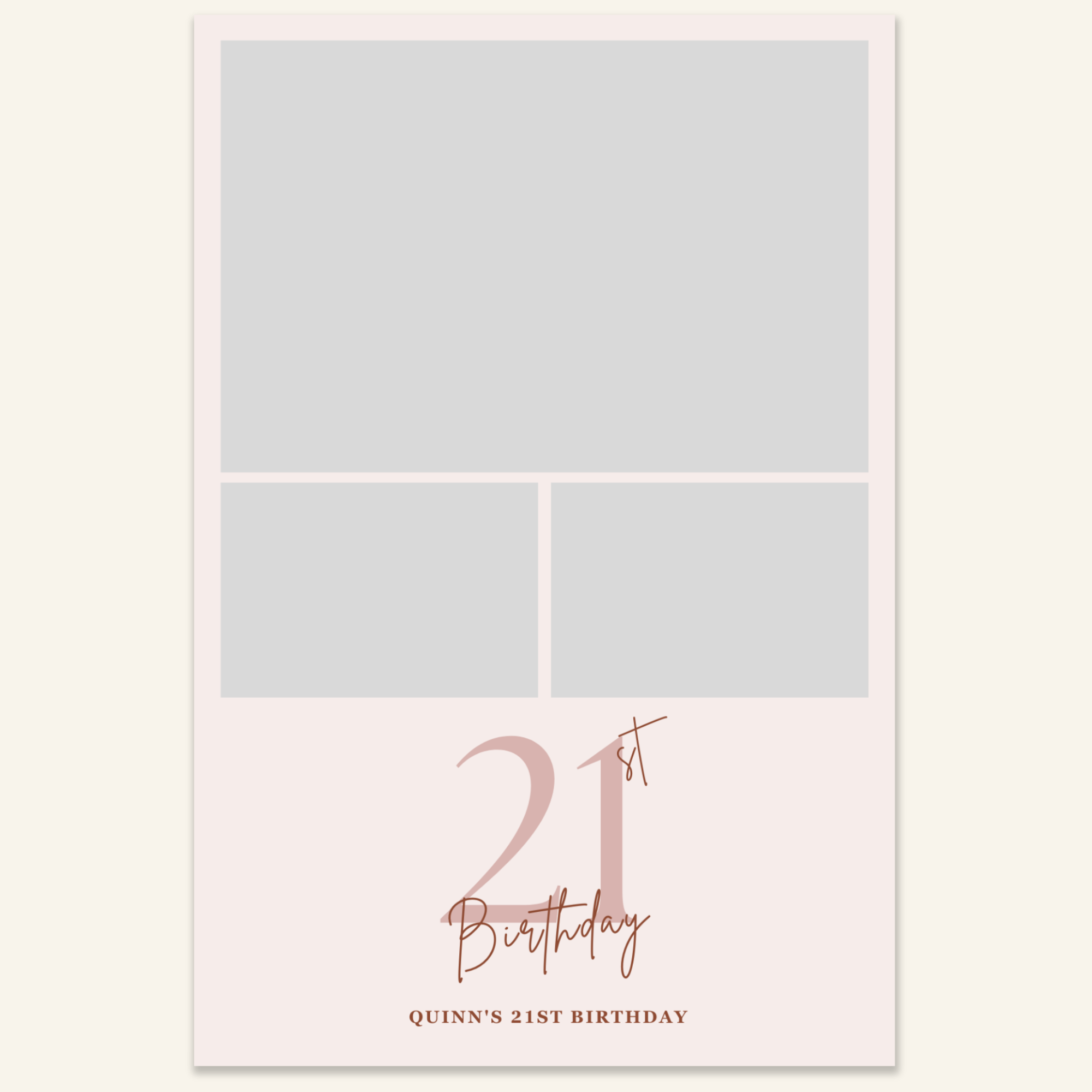 Step 3: Personalise your print template by adding your event name, date, and/or custom message. (eg. Sophia & Lucas / 12 April 2024 / Thanks for joining us!)